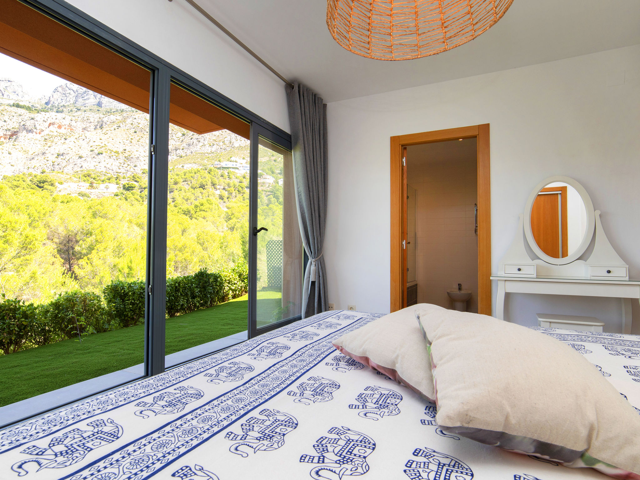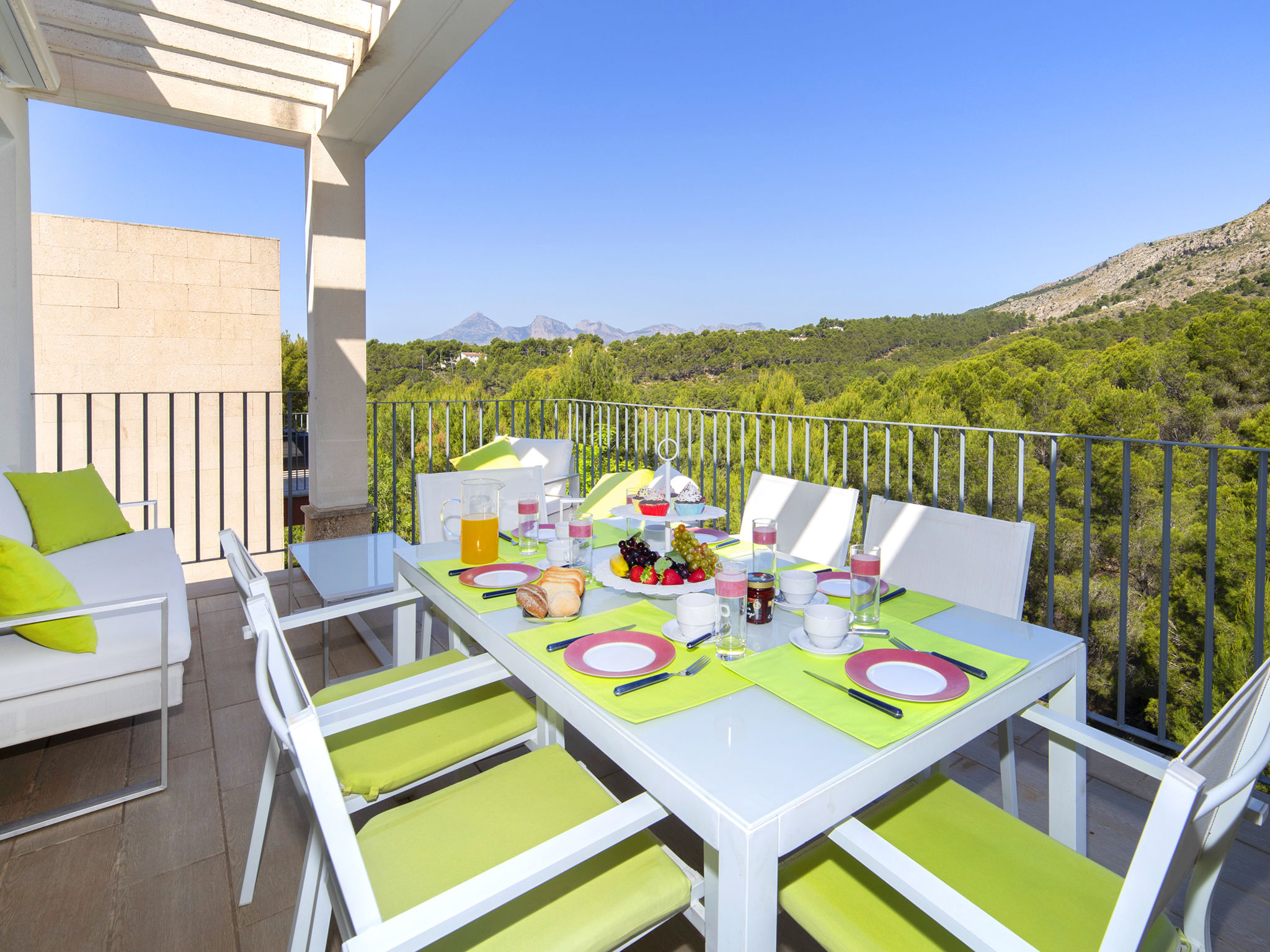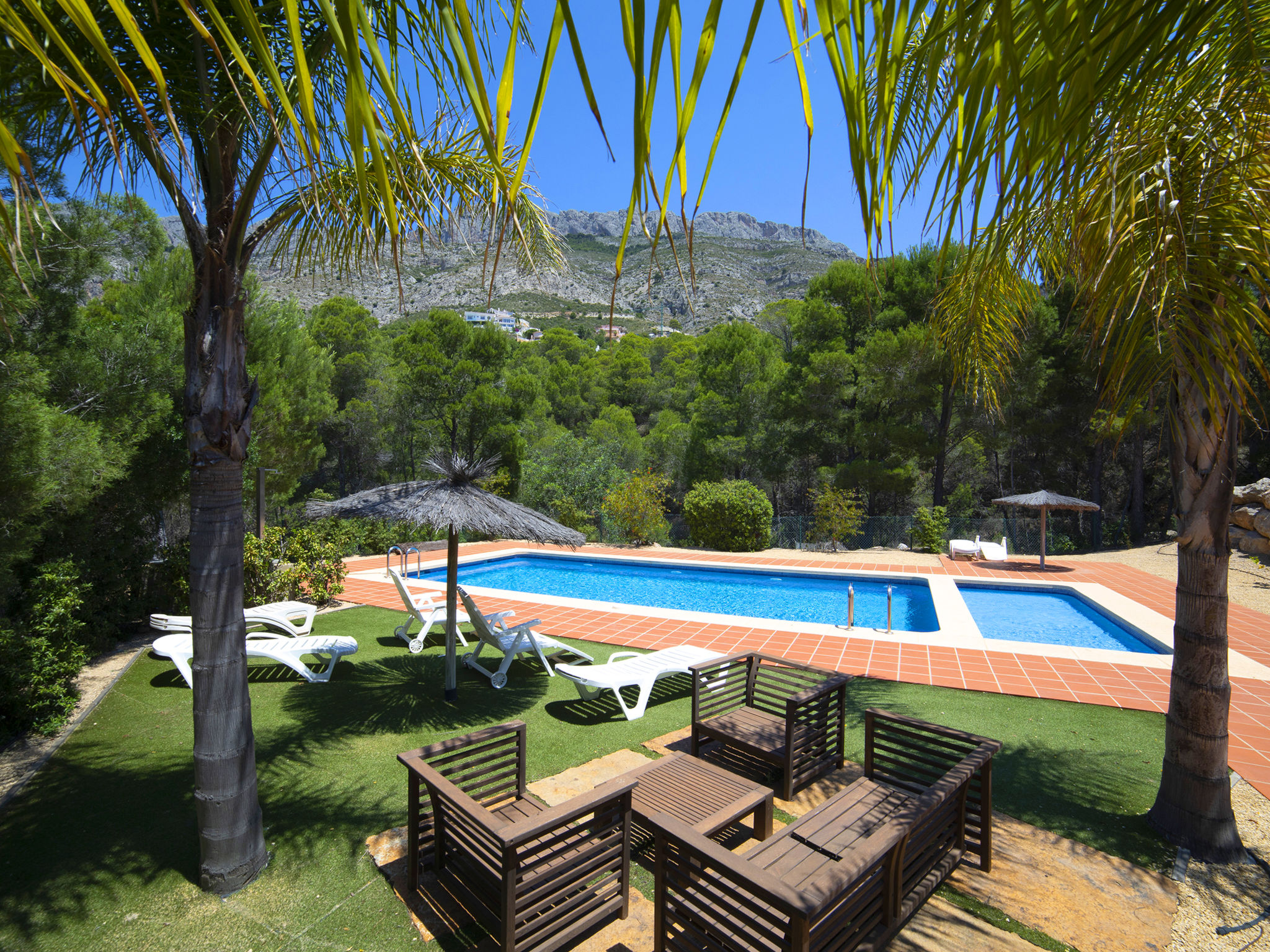 "Mont Verd", 4-Zimmer-Haus 166 m2 auf 2 Stockwerken. Objekt geeignet für 4 Erwachsene + 2 Kinder. Geräumig und hell, vollständig renoviert im Jahre 2021, schön und modern eingerichtet: offenes Wohn-/Esszimmer mit Digital-TV, Klimaanlage und Warmluftheizung. Ausgang zur Terrasse. Offene Küche (Backofen, Geschirrspüler, 3 Glaskeramikherd Platten, Toaster, Wasserkocher, Mikrowelle, Tiefkühler, elektrische Kaffeemaschine, Kombinationsmikrowelle). Sep. WC. Unteres Geschoss: 1 Zimmer mit 1 franz. Bett (180 cm, Länge 200 cm), Bad/WC, Klimaanlage und Warmluftheizung. 1 Zimmer mit 2 Betten (90 cm, Länge 190 cm), Klimaanlage und Warmluftheizung. 1 Zimmer mit 1 Ausziehbett (90 cm, Länge 190 cm), Klimaanlage und Warmluftheizung. Dusche/WC, Doppelwaschbecken. Grosse Terrasse. Terrassenmöbel, Gartengrill. Sicht auf die Berge. Zur Verfügung: Waschmaschine, Bügeleisen, Kinderhochstuhl, Babybett bis 2 Jahre, Haartrockner. Internet (Wireless LAN, gratis). Parkplatz. Bitte beachten: TV nur ES, FR. VT-488189-A