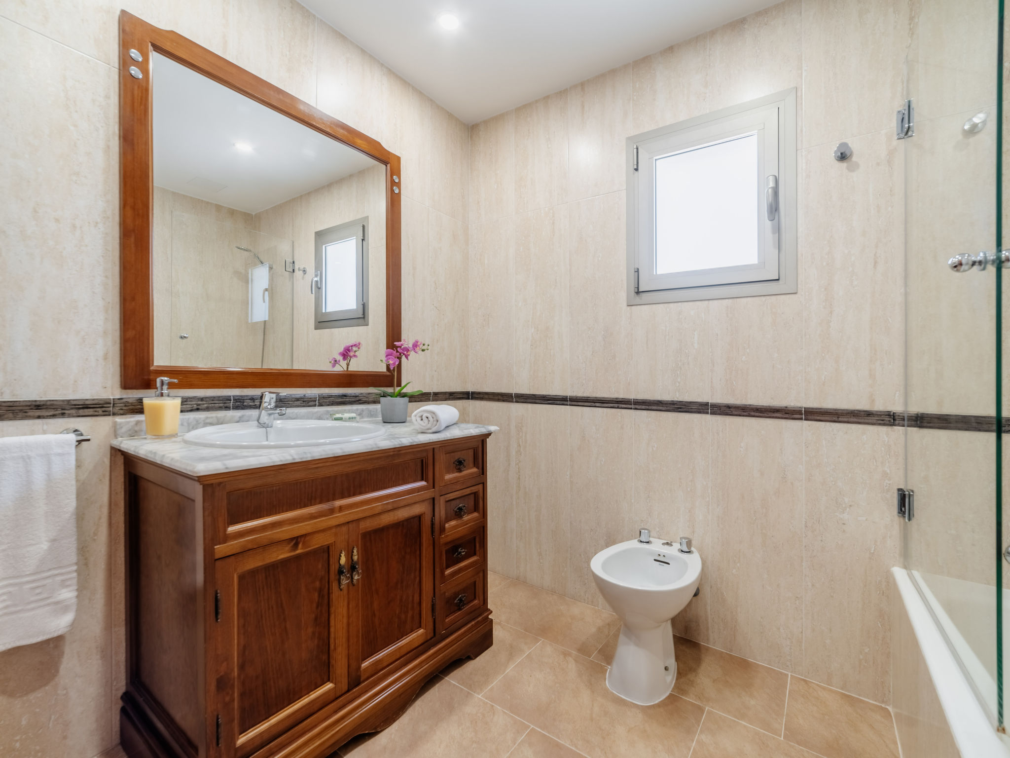 "Pintor Beach House", 5-Zimmer-Haus 150 m2 auf 2 Stockwerken. Objekt geeignet für 8 Erwachsene. Renoviert, sehr zweckmässig und gemütlich eingerichtet: Wohn-/Esszimmer mit Panoramafenster mit Esstisch, Sat-TV, Digital-TV, Flachbildschirm, Klimaanlage und Warmluftheizung. Ausgang zur Terrasse, zum Schwimmbad. 1 Doppelzimmer mit 1 franz. Bett (150 cm, Länge 190 cm), Klimaanlage und Warmluftheizung. Wohnküche (Backofen, Geschirrspüler, 3 Glaskeramikherd Platten, Toaster, Wasserkocher, Mikrowelle, Tiefkühler, elektrische Kaffeemaschine) mit Esstisch. Ausgang zur Terrasse, zum Schwimmbad. Dusche/WC. Obergeschoss: 1 grosses Doppelzimmer mit Panoramafenster mit 1 franz. Bett (150 cm, Länge 190 cm), Klimaanlage und Warmluftheizung. 2 grosse Doppelzimmer mit Panoramafenster, jedes Zimmer mit 2 Betten (90 cm, Länge 190 cm), Klimaanlage und Warmluftheizung. Bad/WC. Terrasse, Laube. Terrassenmöbel, Gartengrill, Liegestühle, Loggia. Sicht auf die Ortschaft. Zur Verfügung: Waschmaschine, Bügeleisen, Kinderhochstuhl, Babybett, Haartrockner. Internet (Wireless LAN, gratis). Bitte beachten: geeignet für Familien. Nichtraucher-Haus. Feuerlöscher. ETV3880
