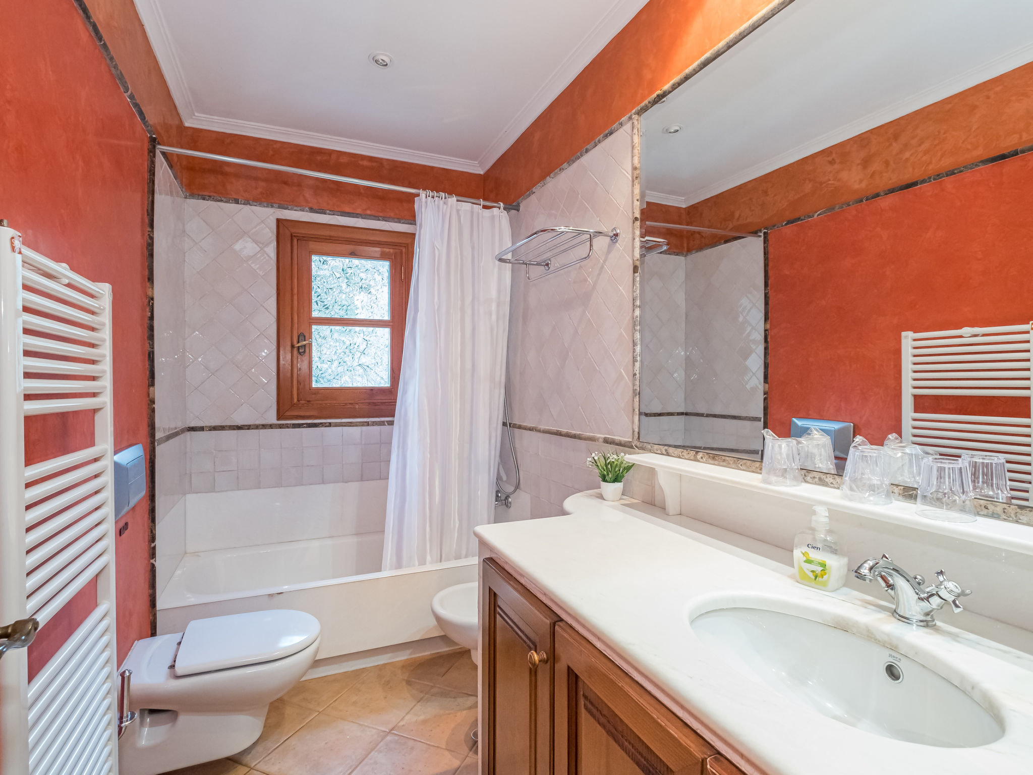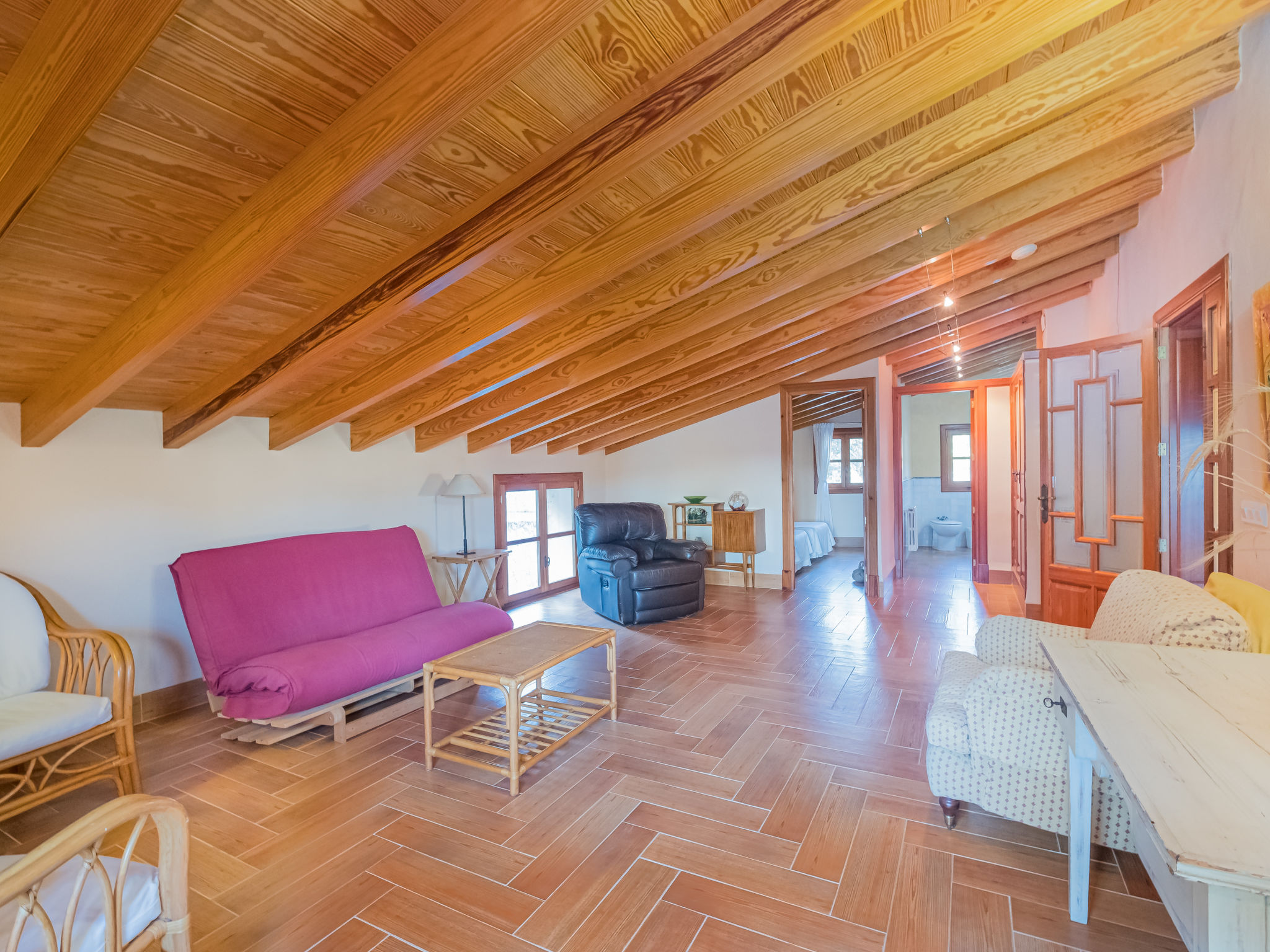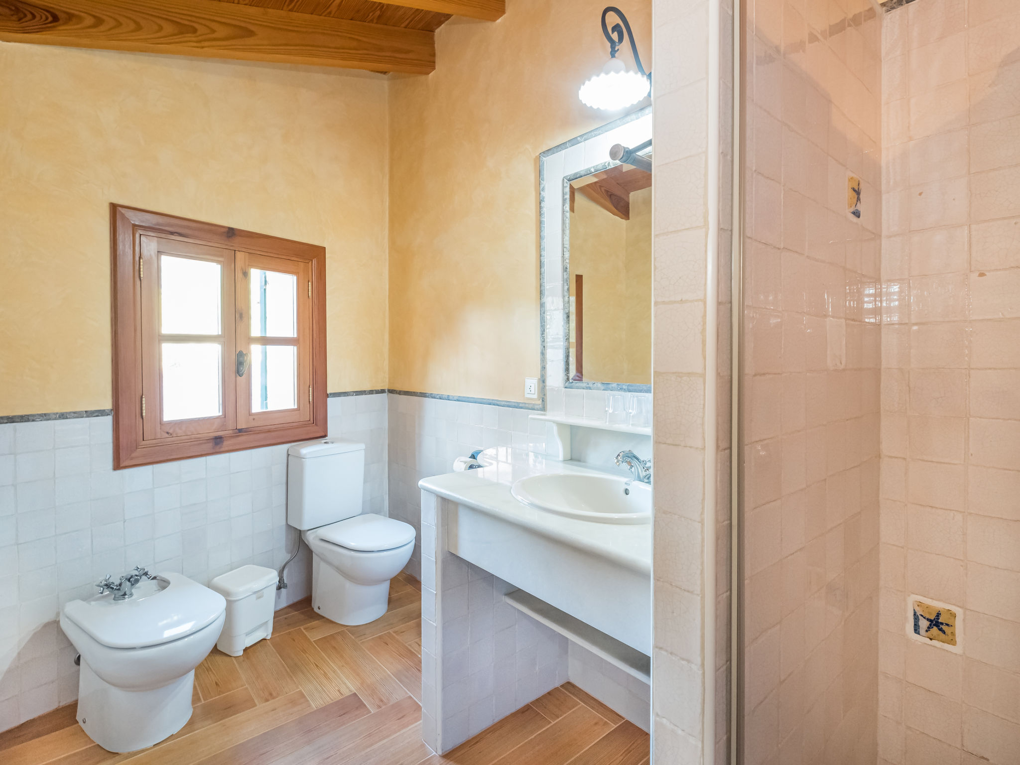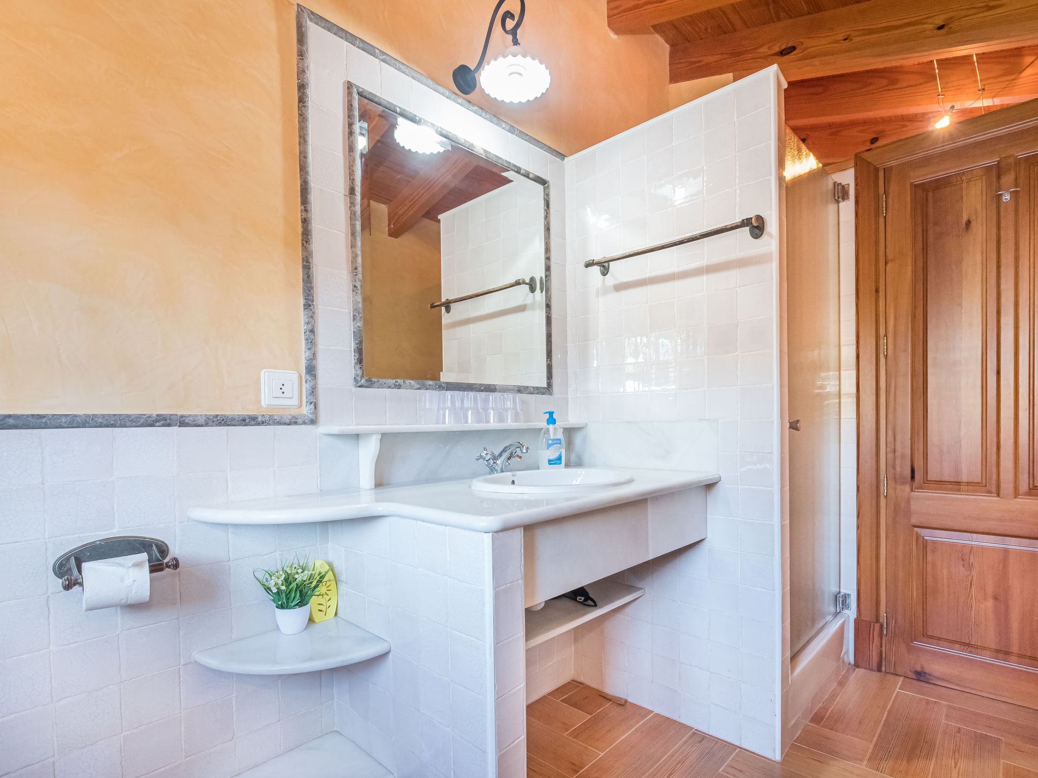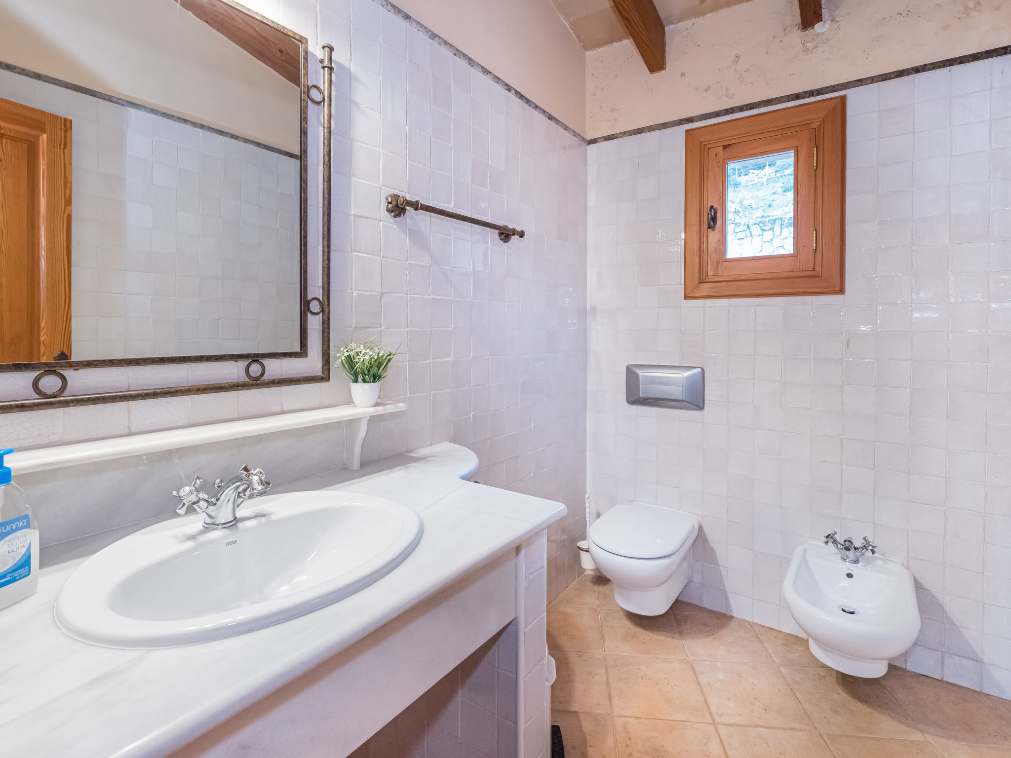 Die traditionsreiche Naturstein-Finca steht in herrlicher Panoramalage, auf ca. 350 m Höhe, zwischen Caimari (4 km) und Lluc (7 km). Restaurant in Caimari, Supermarkt in Inca (12 km). Zum Wanderweg "Camí Vell de Lluc" ca. 250m. Umgeben vom prächtigen Bergmassiv der Tramuntana genießt man von den Terrassen des Hauses die weite Sicht auf die umliegenden Täler und Berggipfel. Das 70 ha große Hanggrundstück bietet 2 private Spazierwege durch die hügelige Landschaft mit ca. 1500 Olivenbäumen (der Besitzer produziert Olivenöl) und einer kleinen Schafherde. Parkmöglichkeiten auf dem Grundstück. Am Haus ca. 400 m² mit Naturstein geflieste, zur Hangseite abgeschlossene Terrassenflächen, geschmückt mit Blumentöpfen, Bougainvillea und Ziersträuchern. Neben dem Pool (6 x 3 m, gesamte Saison geöffnet, 3x wöchentlich Poolpflege durch einen Gärtner) mit Außendusche, Sonnenterrasse, Sonnenliegen und Sonnenschirm, die gemauerte, überdachte Grillstelle mit Kaltwasseranschluss und Terrassenmobiliar. Gute und geschmackvolle Einrichtung mit einigen mallorquinischen Details. Fliesenböden. Sat-TV (deutsche Programme). Internetzugang (WLAN, inklusive). Waschmaschine, Bügeleisen/-brett, Fön. Öl-Zentralheizung. 2x mobiler Ventilator. Hinweise: Stromversorgung mit Solaranlage und Generator. Rauchen ist im Haus nicht gestattet.