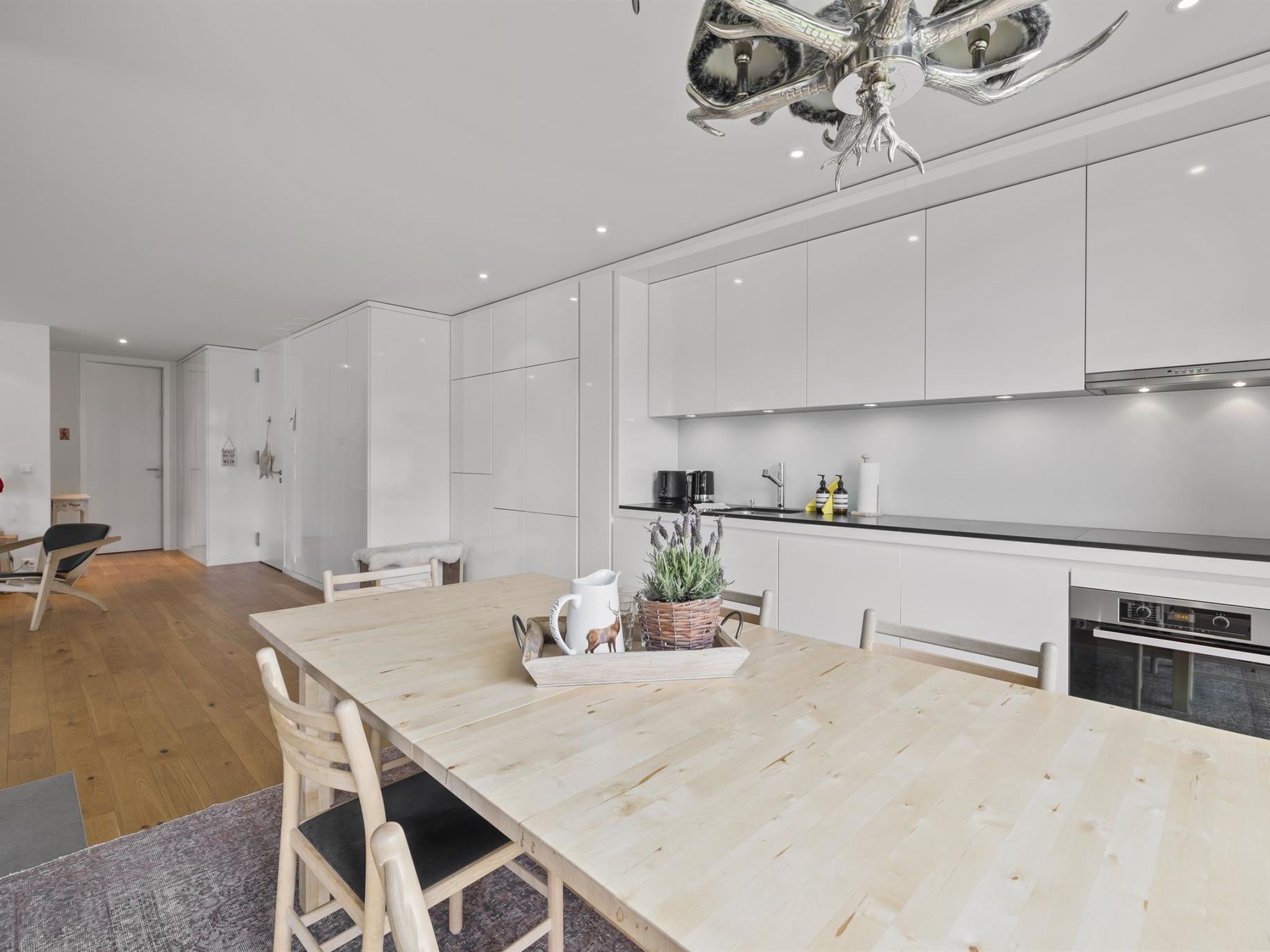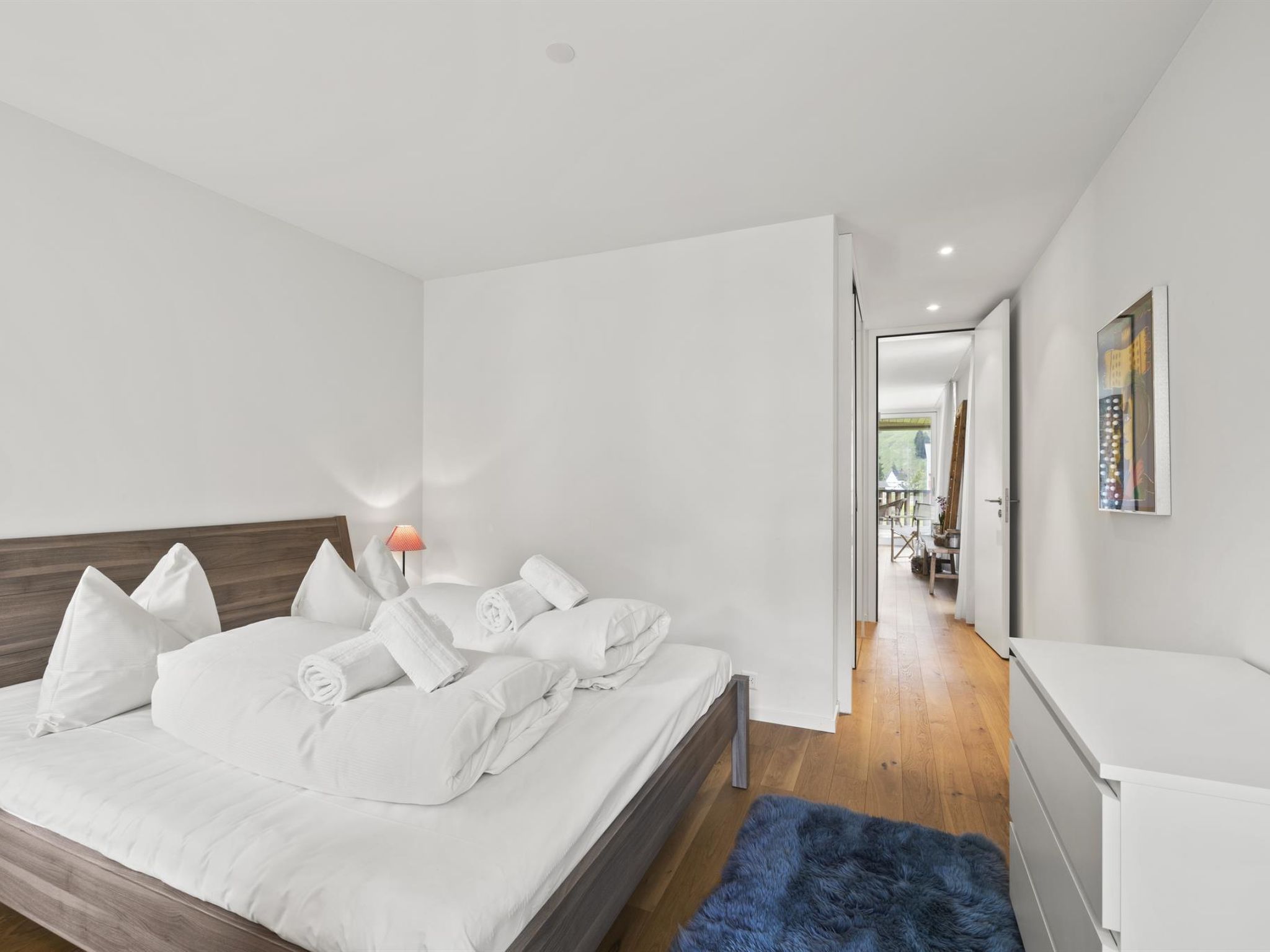 2 Schlafzimmer, zwei Nasszellen. Grosser Wohnraum mit Cheminée. Top eingerichtete Wohnküche. Gedeckter grosser Balkon mit Windschutz und schöner Bergsicht.2 Garagenplätze.Kaffeemaschine Nespresso / Wasserkocher / Abwaschmaschine Swisscom TV, W-Lan