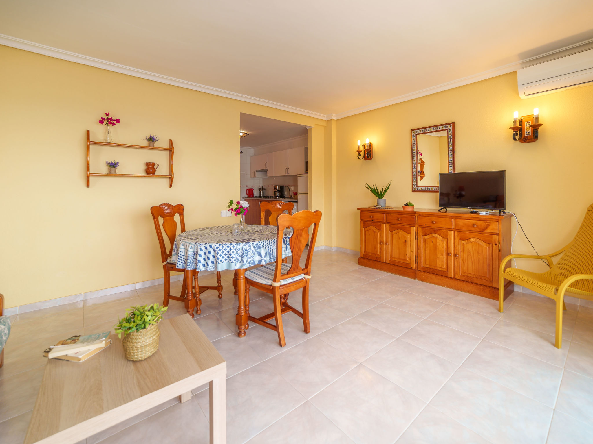 2-Zimmer-Wohnung, ca. 55 m². Wohnraum mit Sitzcouch, Essplatz, durch Theke vom Wohnraum abgeteilte Küchenzeile (4 Flammen, Mikrowelle, Kühlschrank, Kaffeemaschine, Toaster). Zweibettzimmer. Bad/WC. Balkon (ca. 12 m²). VTV0607BAL