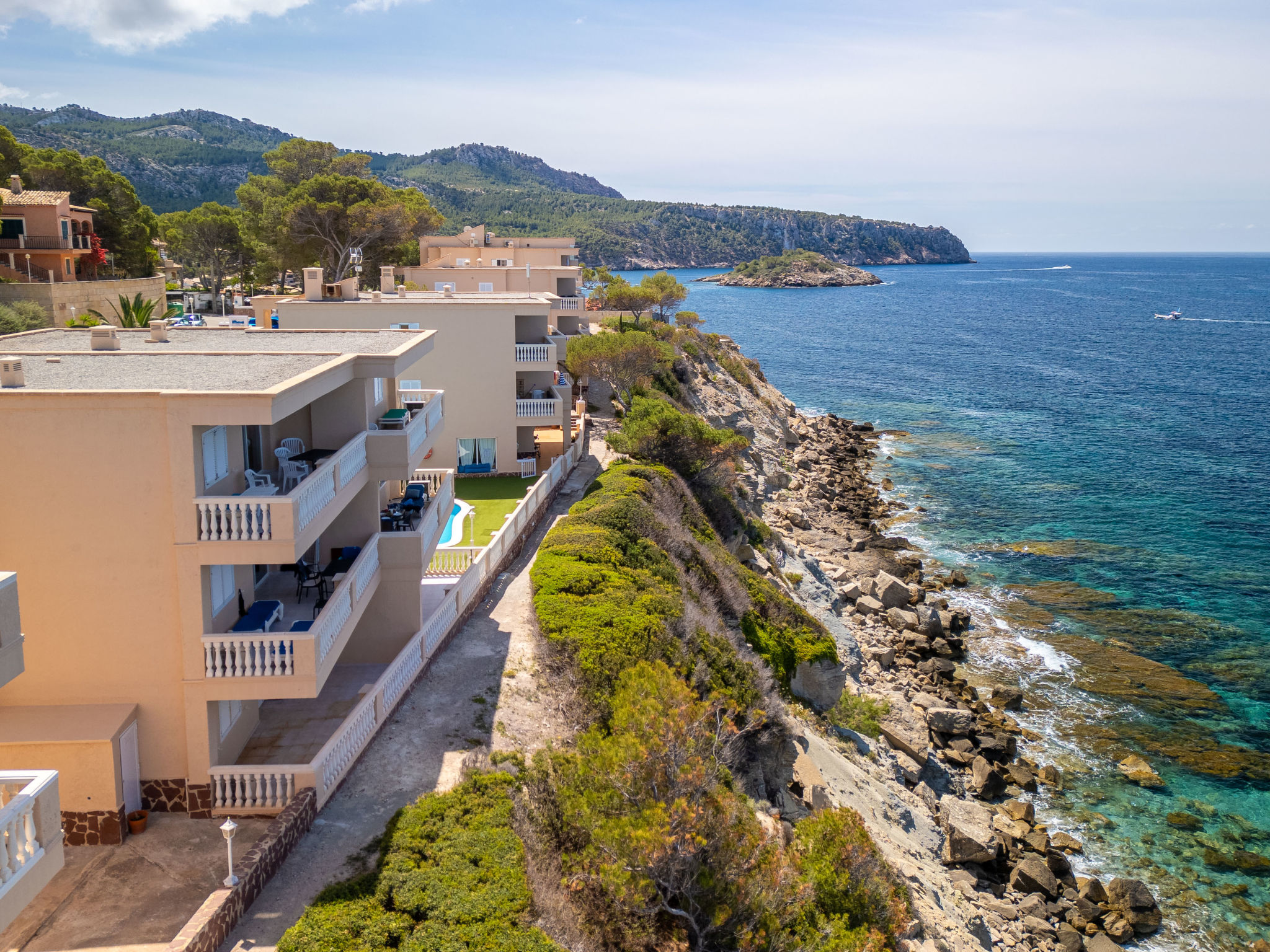 Die Ferienanlage AMORES liegt am Ortsende von San Telmo, an der Steilküste, gegenüber der unter Naturschutz stehenden Isla Dragonera. Die ruhig gelegenen Wohnungen in 5 Appartementhäusern haben alle direkten Meerblick. Zur Ortsmitte San Telmo 1 km, zum Sandstrand 1,1 km. Kleine Naturbadebuchten mit Felseinstieg in der näheren Umgebung (ca. 300 m). Tauchschule und Restaurant jeweils in ca. 450 m Entfernung. Zum Wanderweg "Kloster Sa Trapa" ca. 300m. Zur Anlage gehört ein ca. 70 m² großer Pool (0,90 - 1,50 cm tief, gesamte Saison geöffnet) mit Kinderbecken, Sonnenterrasse, Sonnenliegen und Außenduschen. Jede Wohnung hat einen Balkon in Richtung Meer mit Mobiliar und 2 Sonnenliegen. Parkmöglichkeit an der Straße. Feriengerechte Einrichtung. Fliesenböden. Sat-TV (deutsche Programme). WLAN im Poolbereich und in den meisten Wohnungen (inklusive). Waschmaschine. Safe. Elektroradiatoren (Bestellung). Hinweis: Rauchen ist in den Wohnungen nicht gestattet.