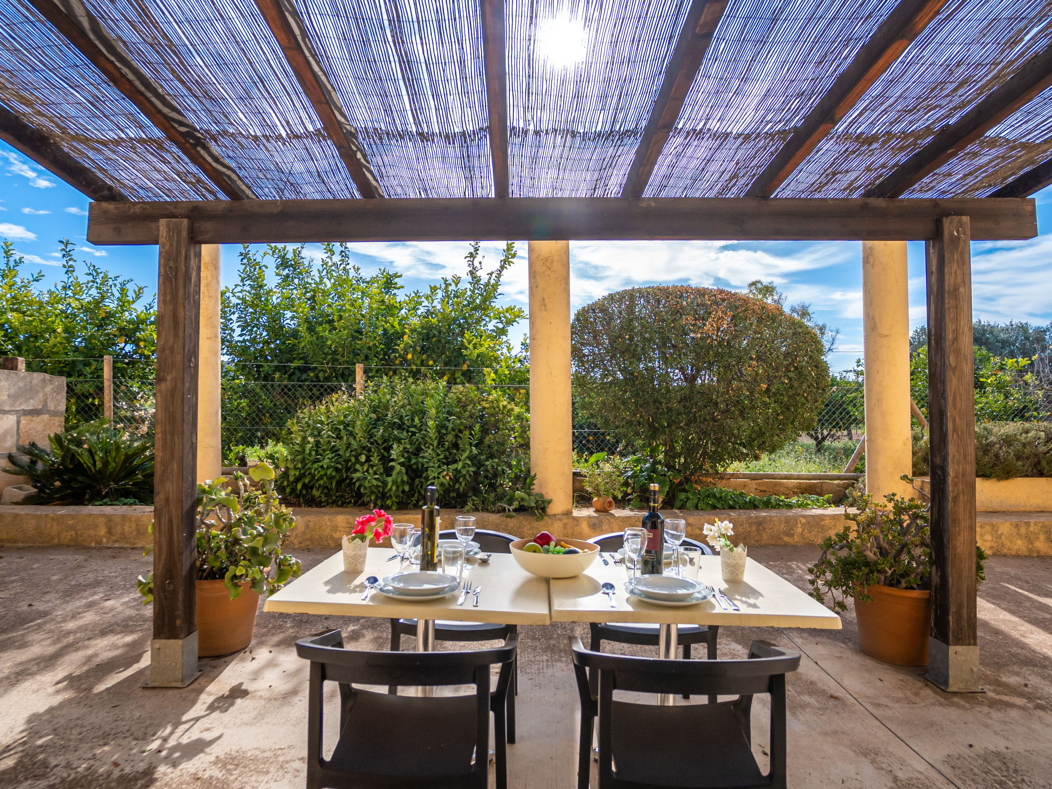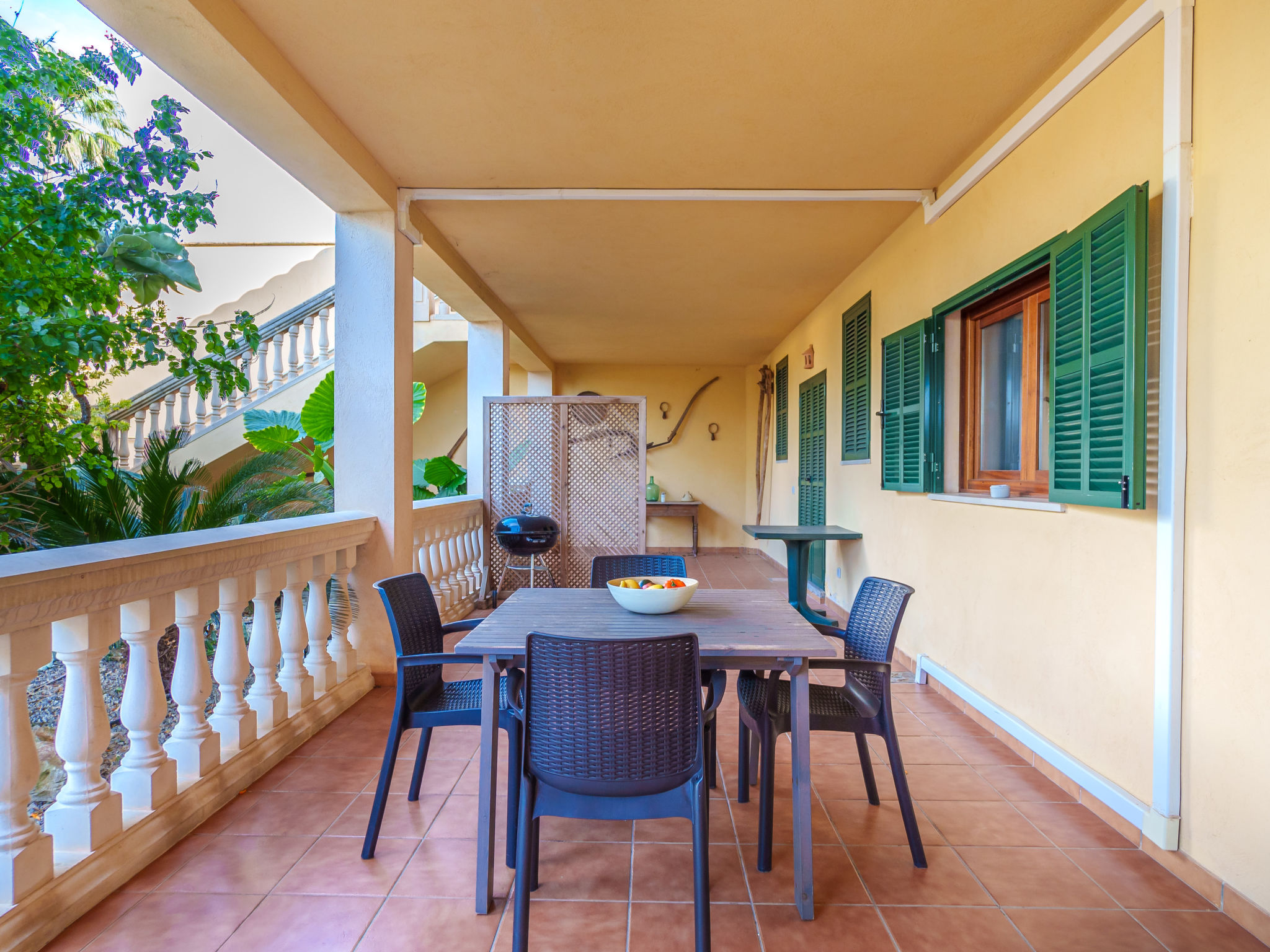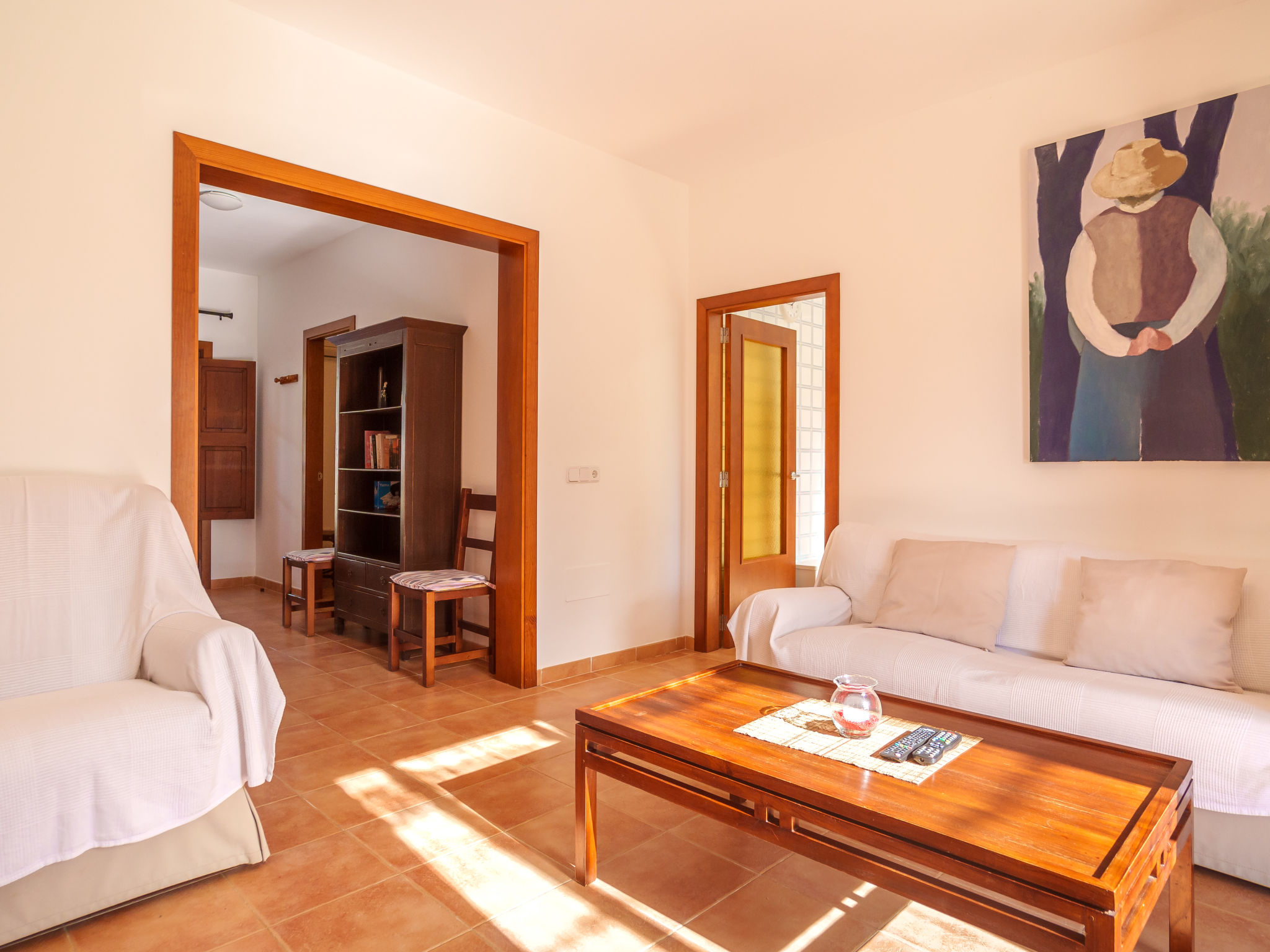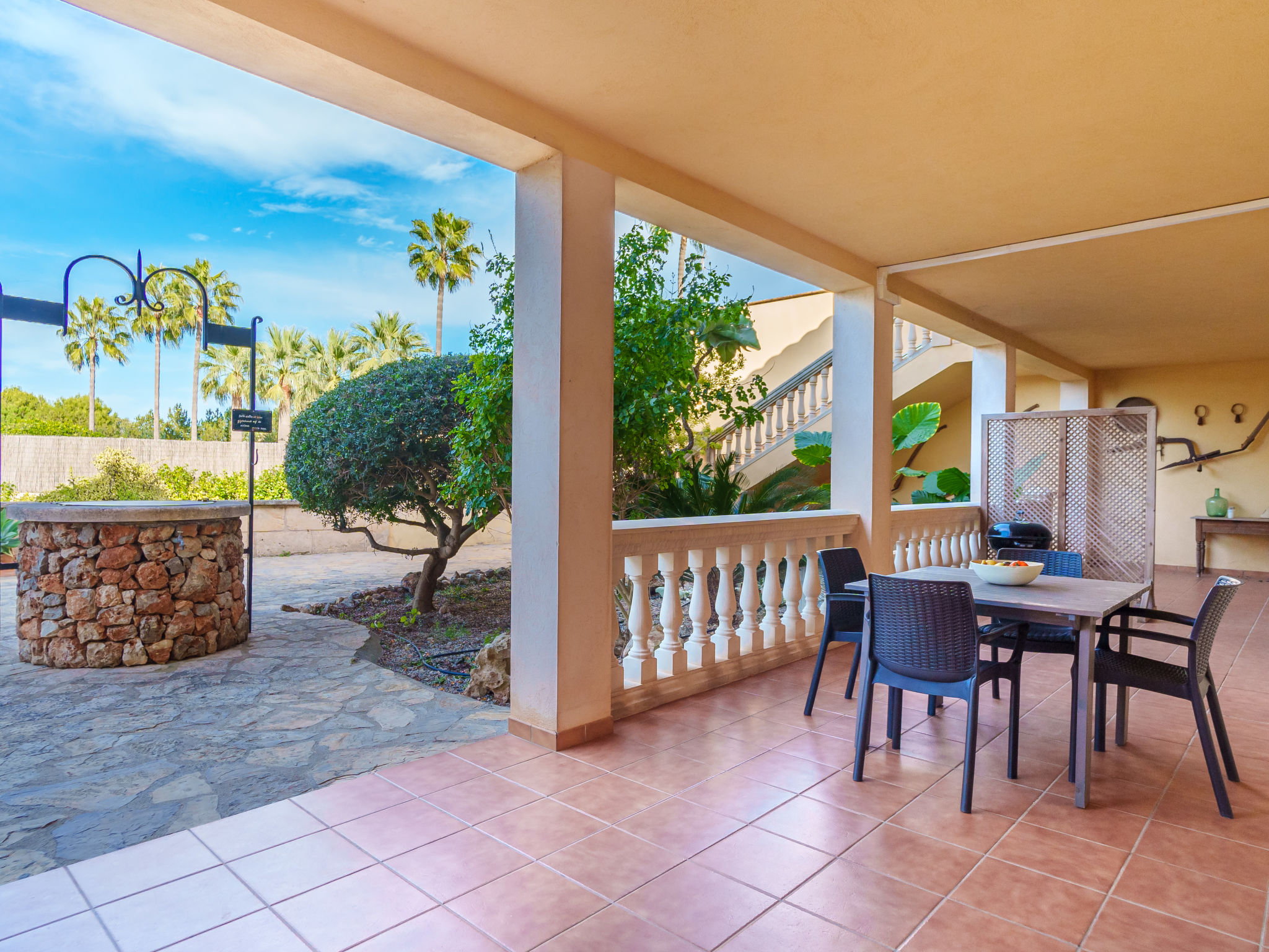 Das Landgut steht im Hinterland der Bucht von Alcúdia, nur 4 km von den langen Sandstränden in Ca'n Picafort entfernt. Nach Muro 7 km. Restaurant 1,5 km. Das ca. 100.000 m² große Grundstück wird größtenteils als Weideland genutzt. Der Besitzer hält Schafe, einen Esel, ein Pony und Hühner. Ein Teil des Grundstückes ist mit Orangen bepflanzt (es darf geerntet werden). Schräg gegenüber vom Gebäude, durch Hecken und Palmen geschützt, liegt der Freizeitbereich des Anwesens: großer, während der gesamten Saison geöffneter Pool (20 x 12 m, davon 5 x 12 m als Kinderbecken abgetrennt), Außendusche, Rasenflächen, Sonnenliegen, Sonnenterrasse, überdachte Terrasse sowie beschatteter Pavillon mit bequemer Sitzgruppe. Tennishartplatz (Schläger und Bälle gratis). Carport. Abschließbarer Fahrradraum. Die Wohnungen MUO 125/126 liegen im rechten Teil des Landgutes. Die beiden großen Wohnungen (MUO 126) liegen nebeneinander im Erdgeschoss. Jeweils große überdachte Terrasse (ca. 25 m²). Die drei kleineren Wohnungen (MUO 125) im Obergeschoss erreicht man über eine Außentreppe, jeweils Terrasse (ca. 15 m²). Vor dem rechten Hausteil des Landgutes ein ca. 300 m² großes Rasengrundstück, das von den Gästen der Ferienwohnungen genutzt werden kann. In dem linken Hausteil des Gebäudes im Erdgeschoss befinden sich die Wohnungen MUO 127/128, jeweils mit großer überdachter Terrasse (30 m²) sowie weiterer Terrasse (10 m²). Das Obergeschoss wird vom Besitzer bewohnt. Auf jeder Terrasse Mobiliar und Grill. Gute Einrichtung. Fliesenböden. Sat-TV (deutsche Programme). Internetzugang (WLAN, inklusive). Waschmaschine, Bügeleisen/-brett, Fön. Klimaanlage mit Kühl-/Heizfunktion. Hinweis: Das Rauchen ist in den Wohnungen nicht gestattet.