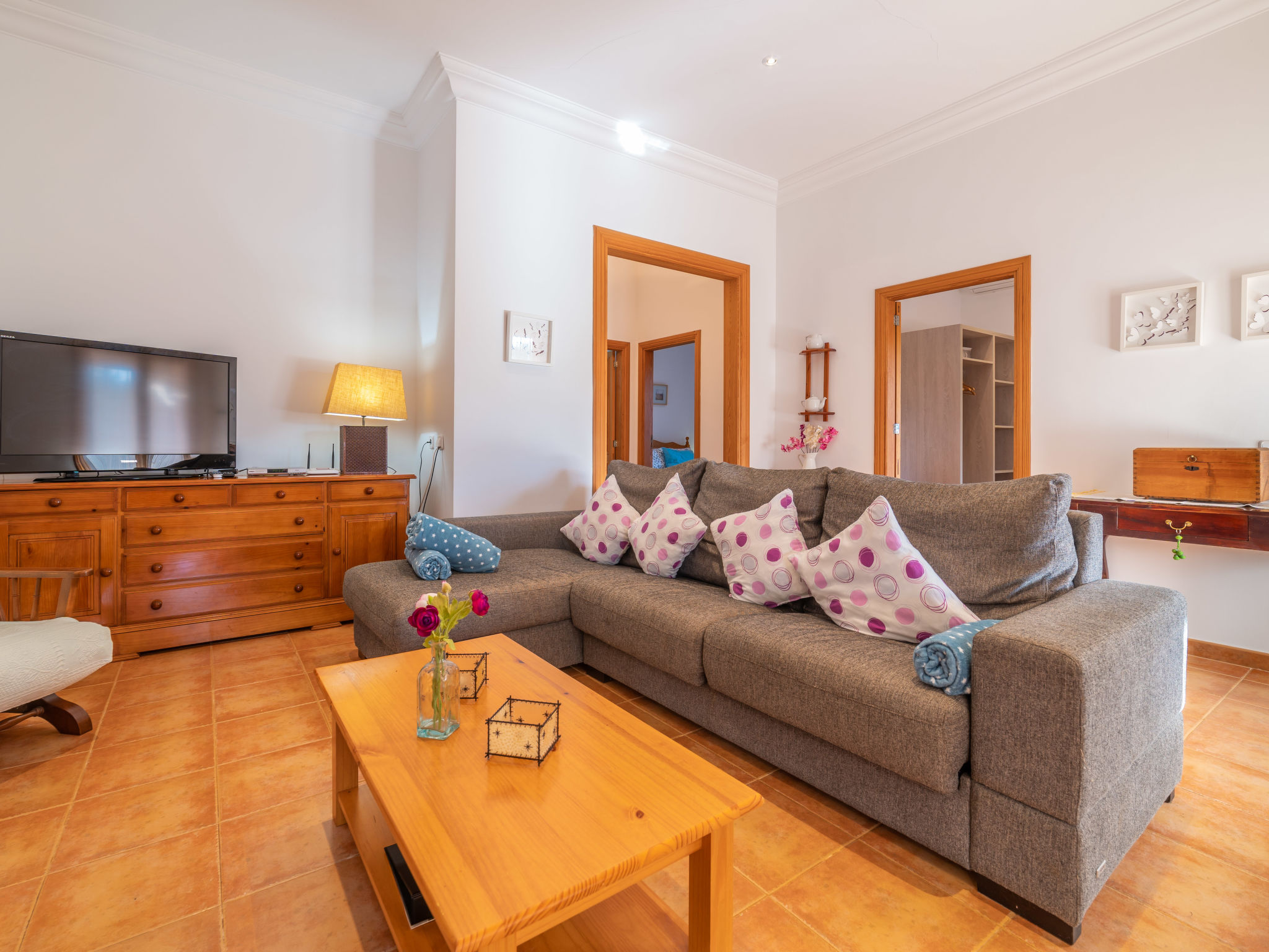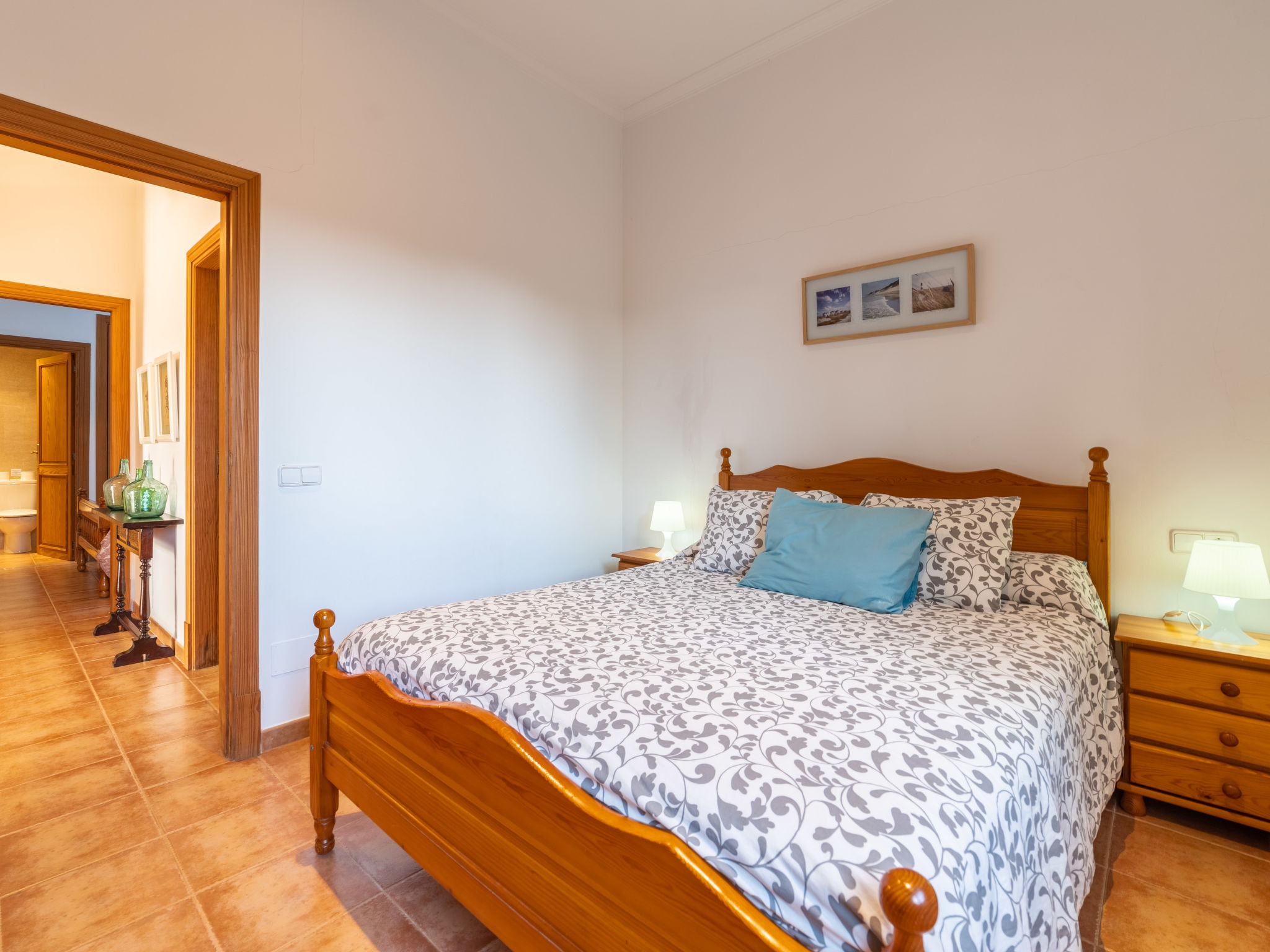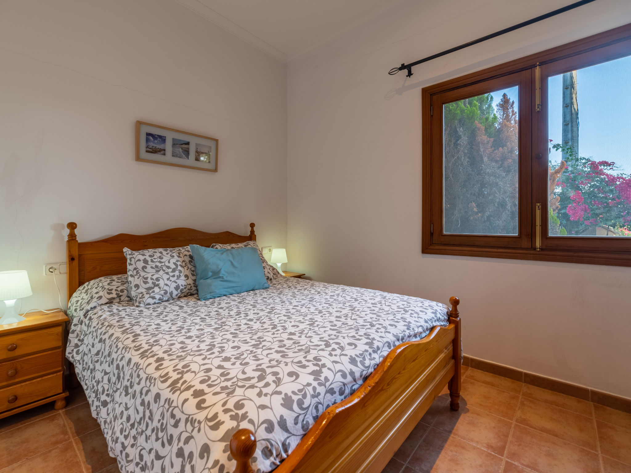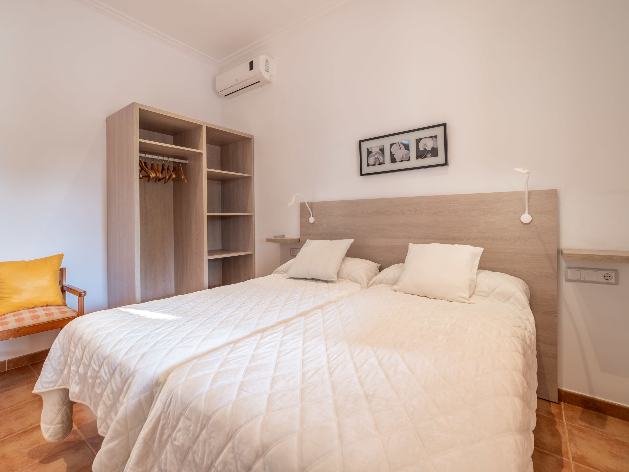 "Morla (PSR130)", 4-Zimmer-Haus 100 m2. Einfach und zweckmässig eingerichtet: Wohnzimmer mit Sat-TV, Digital-TV, Radio und CD. 1 Zimmer mit 2 Betten. 1 Zimmer mit 1 franz. Bett (150 cm). 1 Zimmer mit Dachfenster mit 1 franz. Bett (150 cm), Dusche/WC. Offene Küche (Backofen, Geschirrspüler, 4 Flammen, Toaster, Wasserkocher, Mikrowelle, Tiefkühler, elektrische Kaffeemaschine) mit Esstisch. Ausgang zur Terrasse. Bad/WC. Heizung, Klimaanlage. Terrasse 20 m2, überdacht, Gartensitzplatz. Terrassenmöbel, Gartengrill, Liegestühle. Zur Verfügung: Waschmaschine, Bügeleisen, Kinderhochstuhl, Babybett, Haartrockner. Internet (Wireless LAN, gratis). Bitte beachten: Nichtraucher-Haus. 4-Zimmer-Haus, ca. 100 m². Wohnraum mit Sitzgruppe, durch offenen Bogen in Küche (4 Flammen, Backofen, Mikrowelle, Geschirrspüler, Kühl-/Gefrierkombination, Kaffeemaschine, Wasserkocher, Toaster) mit Essplatz und Terrassenausgang. Zweibettzimmer. Schlafzimmer mit franz. Bett (1,50 m breit). Weiteres Schlafzimmer mit franz. Bett (1,50 m breit), mit Oberlicht und Zugang zu Dusche/WC. Bad/WC. ET/3069