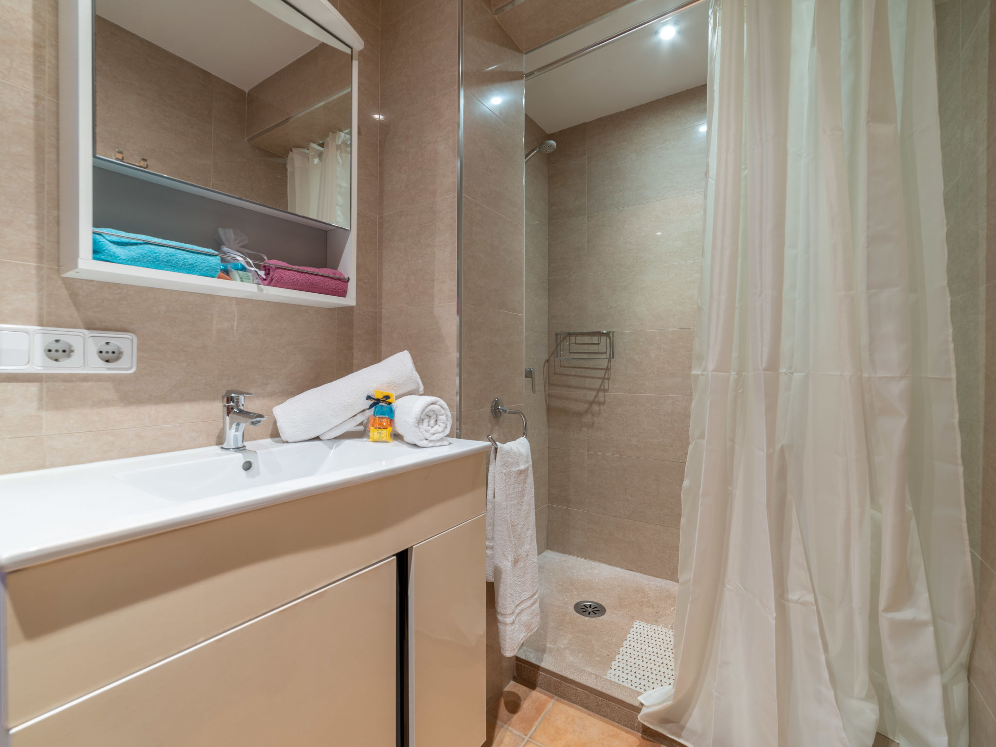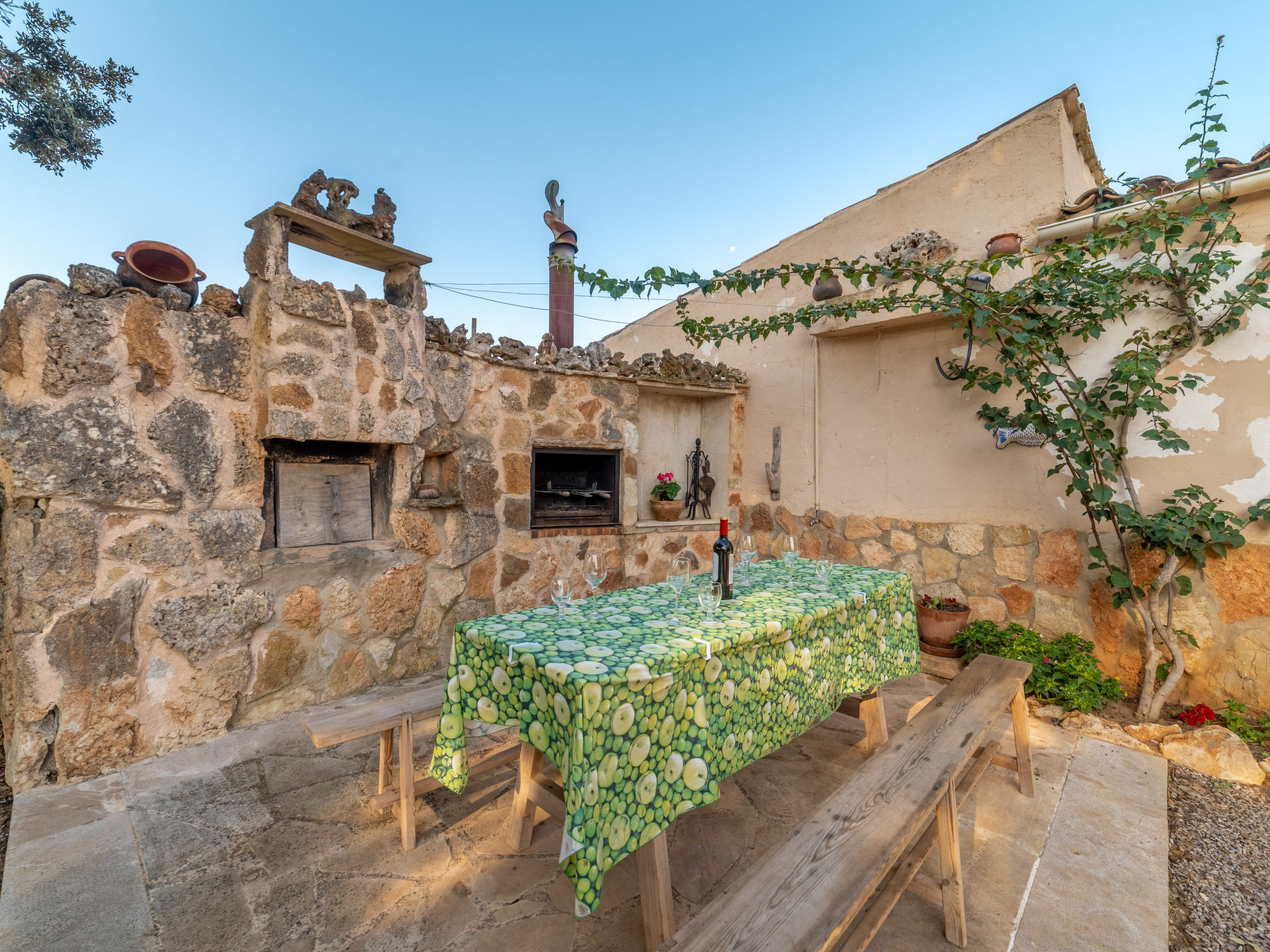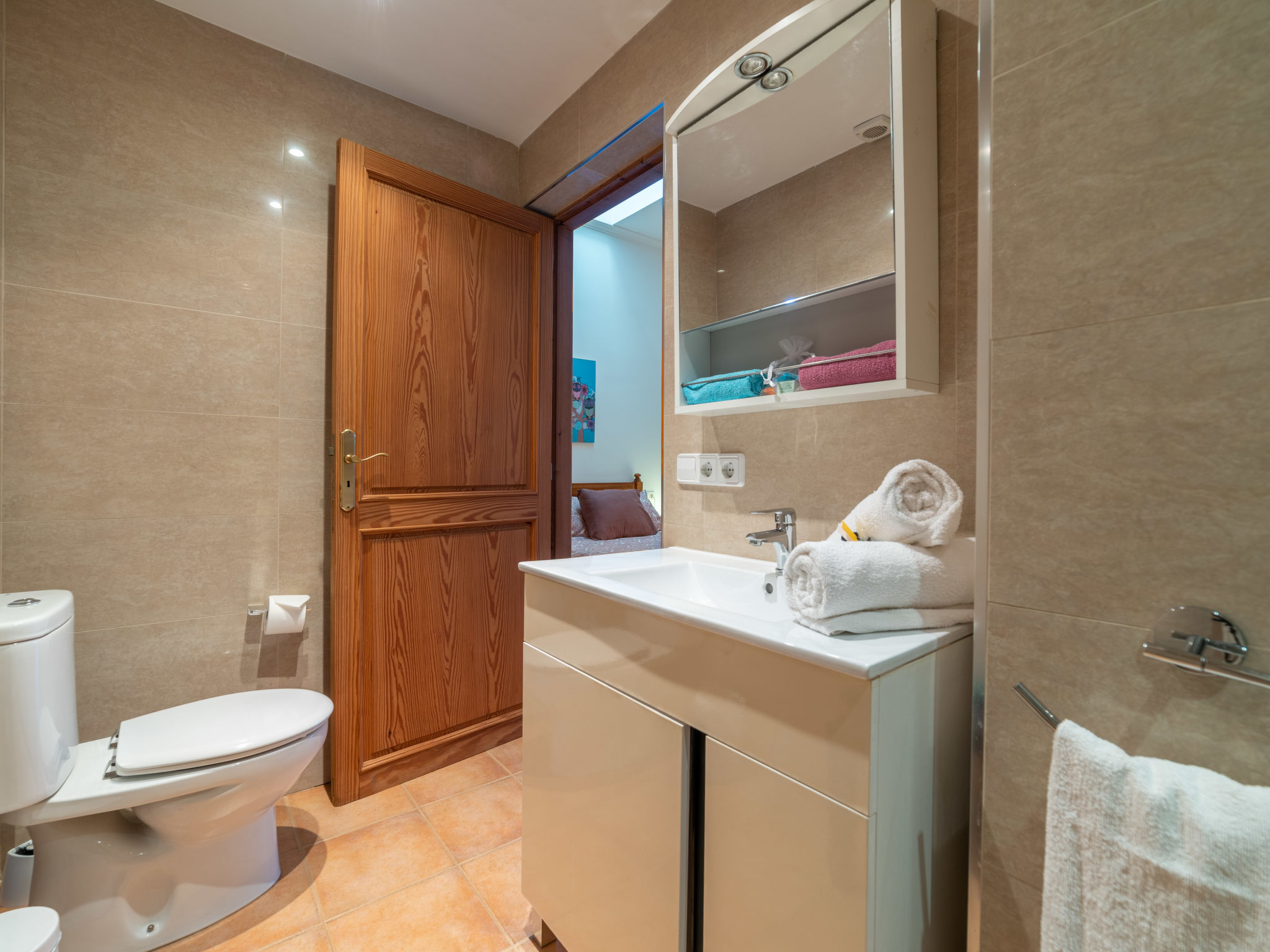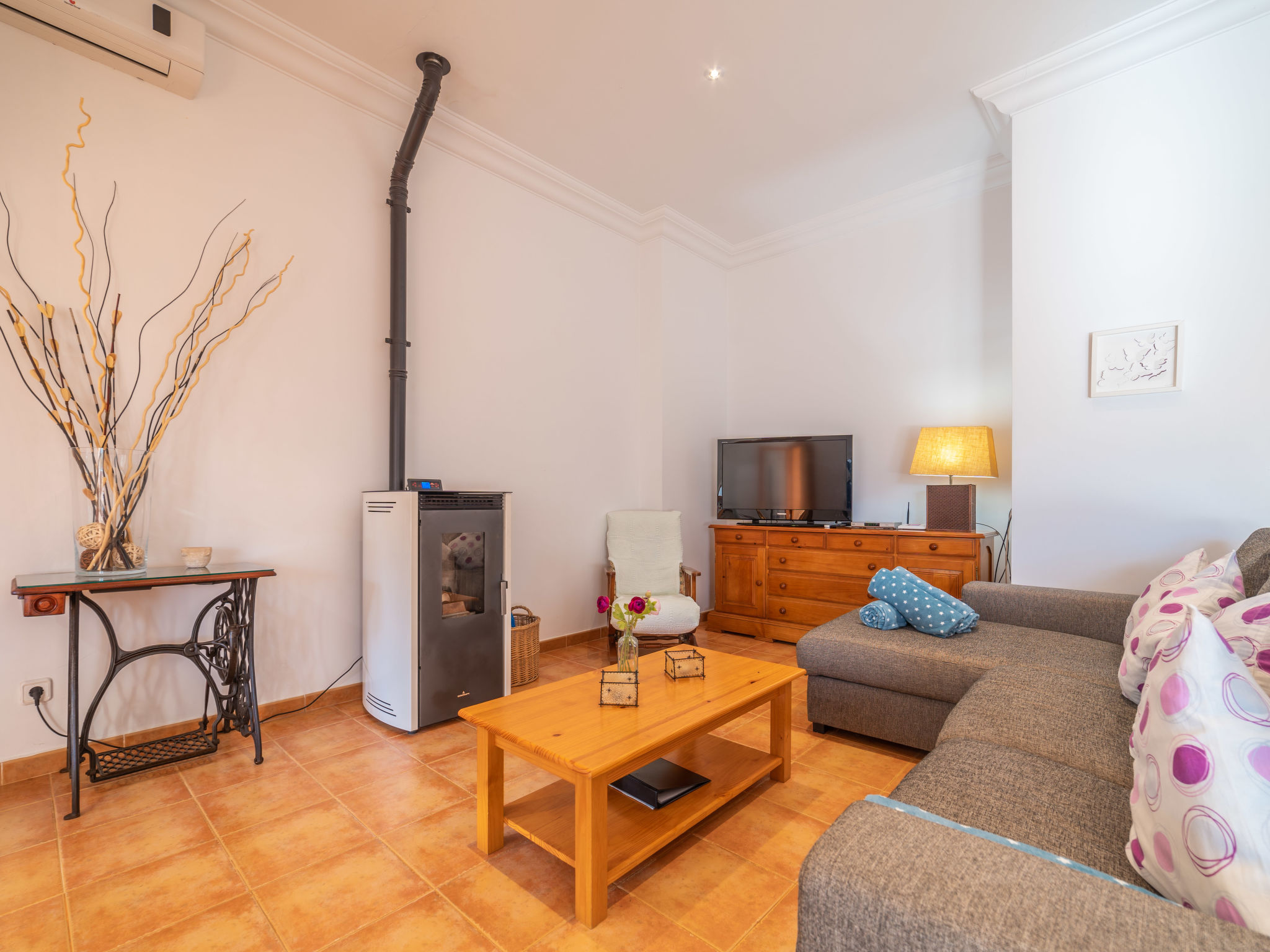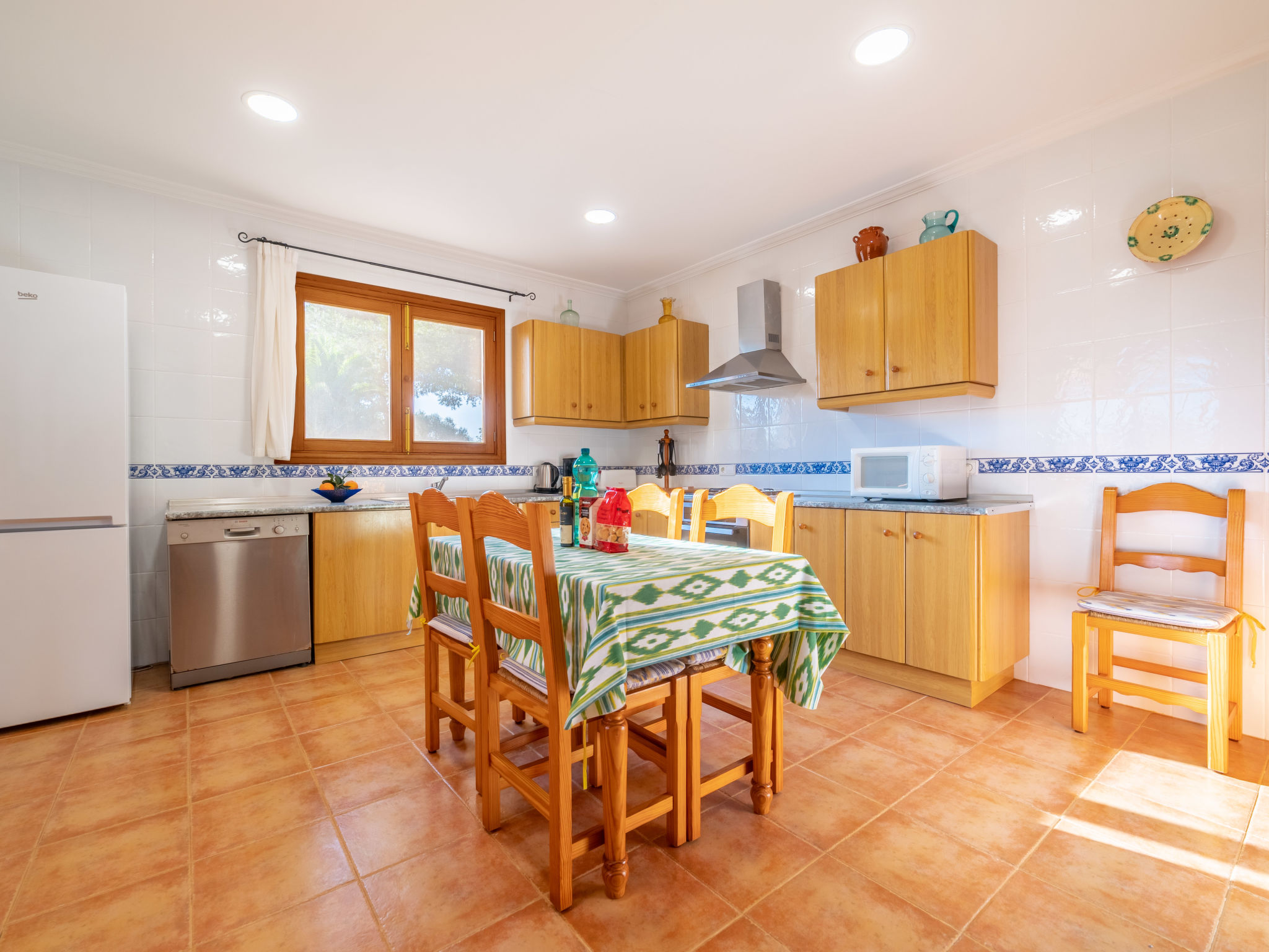 "Morla (PSR130)", 4-Zimmer-Haus 100 m2. Einfach und zweckmässig eingerichtet: Wohnzimmer mit Sat-TV, Digital-TV, Radio und CD. 1 Zimmer mit 2 Betten. 1 Zimmer mit 1 franz. Bett (150 cm). 1 Zimmer mit Dachfenster mit 1 franz. Bett (150 cm), Dusche/WC. Offene Küche (Backofen, Geschirrspüler, 4 Flammen, Toaster, Wasserkocher, Mikrowelle, Tiefkühler, elektrische Kaffeemaschine) mit Esstisch. Ausgang zur Terrasse. Bad/WC. Heizung, Klimaanlage. Terrasse 20 m2, überdacht, Gartensitzplatz. Terrassenmöbel, Gartengrill, Liegestühle. Zur Verfügung: Waschmaschine, Bügeleisen, Kinderhochstuhl, Babybett, Haartrockner. Internet (Wireless LAN, gratis). Bitte beachten: Nichtraucher-Haus. 4-Zimmer-Haus, ca. 100 m². Wohnraum mit Sitzgruppe, durch offenen Bogen in Küche (4 Flammen, Backofen, Mikrowelle, Geschirrspüler, Kühl-/Gefrierkombination, Kaffeemaschine, Wasserkocher, Toaster) mit Essplatz und Terrassenausgang. Zweibettzimmer. Schlafzimmer mit franz. Bett (1,50 m breit). Weiteres Schlafzimmer mit franz. Bett (1,50 m breit), mit Oberlicht und Zugang zu Dusche/WC. Bad/WC. ET/3069