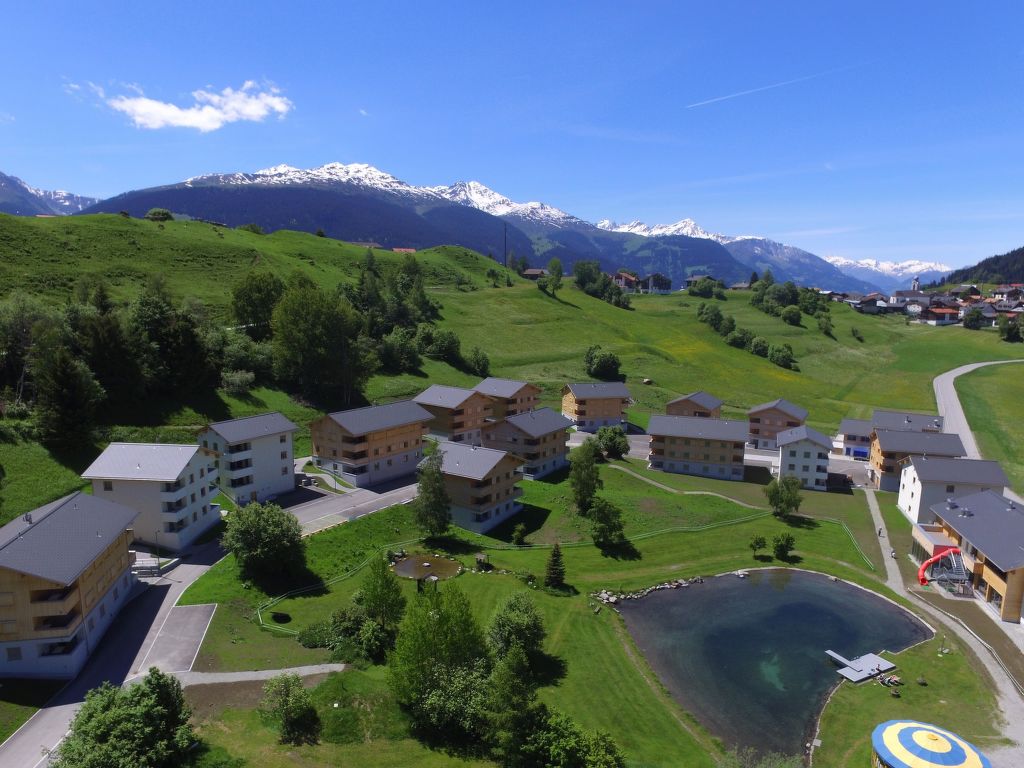 45 m2. Weitere Angaben des Anbieters: Die modern gestalteten Ferienwohnungen im Resort Pradas mit alpenschicken Innenausbau verfügen über eine grossartige Aussicht auf die imposante Bergwelt der Brigelser Hörner. Alle sind mit Balkon ausgestattet. Sämtliche 1 ½-Zimmer Ferienwohnungen (25 m2) verfügen über 1 Doppelbett mit 2 Matratzen, 1 Flatscreen-TV (Kabel mit über 80 Digital-TV-Sender und 100 Digital-Radiostationen), eine offene moderne, top ausgestattete Küche (mit 4 Glaskeramikplatten und Dampfabzug, Mikrowelle, Kühlschrank mit Gefrierfach, Geschirrspüler, Backofen, Kapsel-Kaffeemaschine) inklusive kompletter und hochwertiger Kücheneinrichtung (Gläser, Teller, Besteck, Pfannen, sämtliches Kochzubehör usw.) sowie Balkon (möbliert) oder Sitzplatz im Parterre und 1 Nasszelle mit moderner Glasdusche und WC. Alle Zimmerböden sind mit Eichen-Parkett ausgestattet. In den Wohnungen ist Wireless Internet kostenlos verfügbar. 1 Parkplatz pro Wohnung ist inbegriffen, weitere Parkplätze mit Voranmeldung und gegen Aufpreis (CHF 8.-). Der Eintritt ins Hallenbad (u.a. ebenfalls mit Kinderplantschbecken inkl. Wasserrutsche sowie Whirlpool), in die Saunalandschaft und in die Freizeit- und Spielräume für Kinder im Resort sind inbegriffen (Öffnungszeiten gemäss Aushang vor Ort; Sauna-Zutritt ab 16 Jahren). Kostenfreie Nutzung des naturnah angelegten Badesees (Sommer) im Herzen des Pradas Resort und des Kinderspielplatzes. Bemerkungen: Bettwäsche ist inbegriffen - die Betten sind bei Ankunft bezogen. Die Nutzung von Waschmaschine und Tumbler/Trockner im Gemeinschaftsraum, Endreinigung/Heizung/Strom/Wasser sowie die kommunale Abgabe (Gästetaxe) sind ebenfalls inbegriffen. Zusatzleistungen (gegen Aufpreis): Brötchen-/Frühstück-/Picknick-Lieferung bis an die Wohnungstüre; Miete der Wintersportausrütung, Bikes/E-Bikes bei Pradas Sport. Bitte im Rahmen der Buchung mitteilen, ob die Wohnung behindertengerecht bzw. rollstuhlgerecht sein soll: Die entsprechenden Wohnungen sind u.a. alle mit dem Aufzug erreichbar. Auch das Hallenbad ist behinderten- und rollstuhlgerecht.