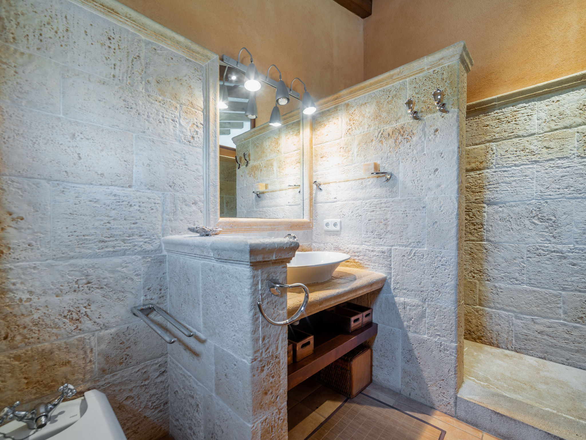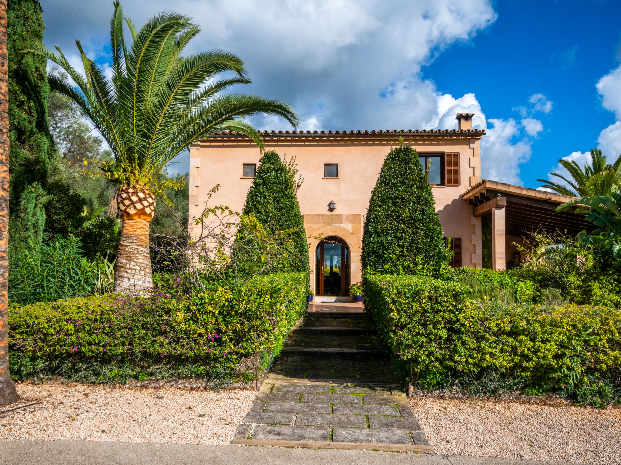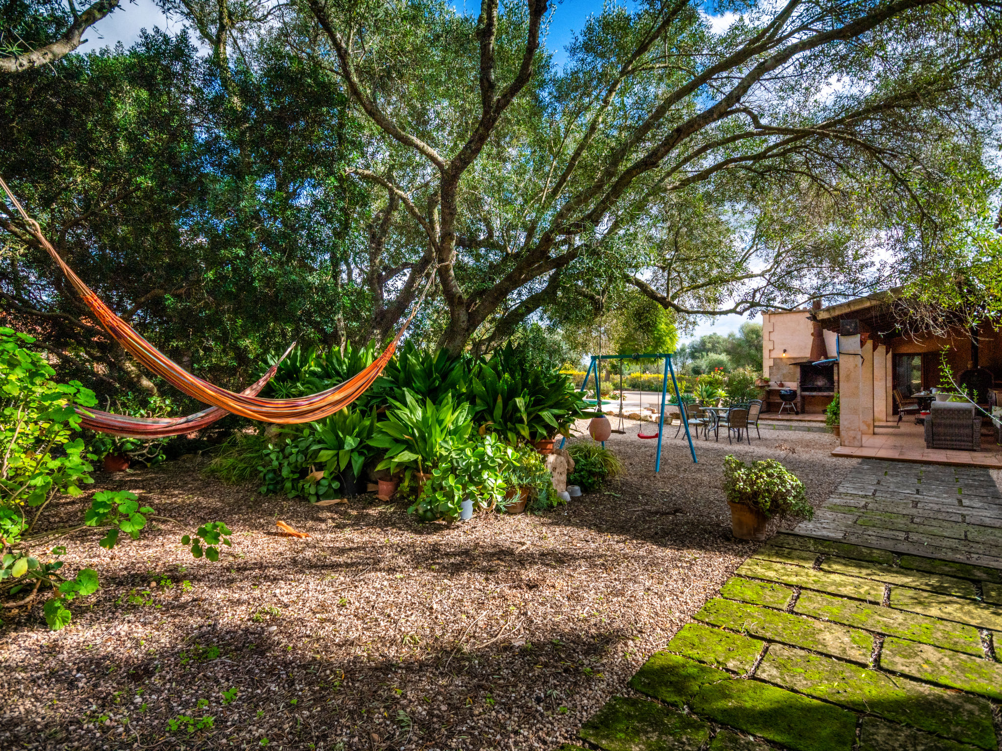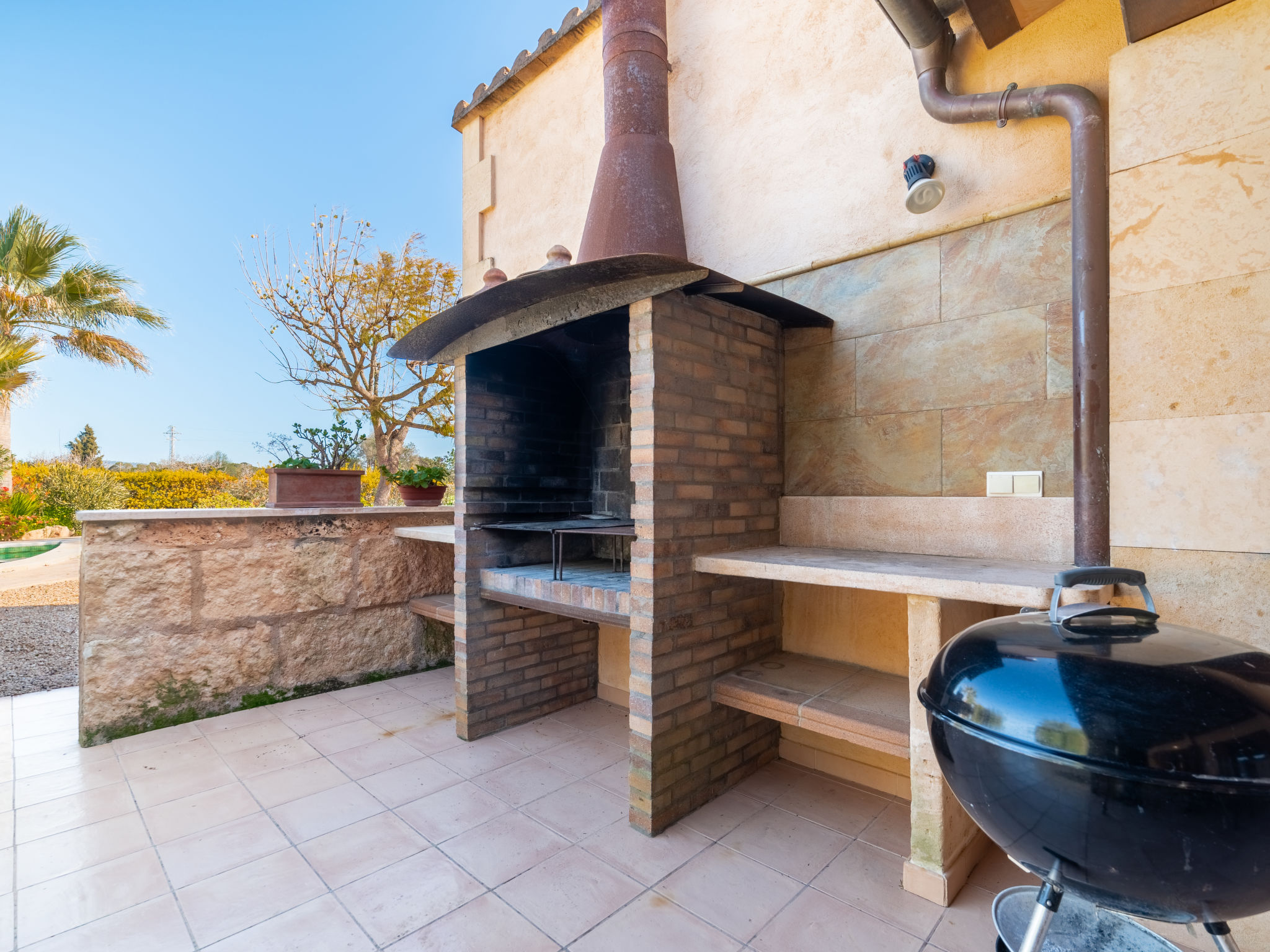Sehr grosse, schöne, komfortable Finca "Es Rafalet", auf 2 Stockwerken, renoviert. Ausserhalb des Ortes, 5.5 km vom Zentrum von Llucmajor, ruhige, sonnige Lage, 10 km vom Waldrand, 7.2 km vom Meer, im Grünen. Zur Alleinbenutzung: naturbelassenes Grundstück (eingezäunt), schöner, gepflegter Garten mit Pflanzen und Bäumen, Schwimmbad (6 x 4 m, 20 - 150 cm tief, 01.01.-31.12.). Ungleichmässige Schwimmbadform, Tischtennis, Sitzplatz, Laube, Pergola, Gartenmöbel, Grill (Rutschbahn, Schaukel), Poolpflege durch den Besitzer/Gärtner. Im Hause: Internetzugang, Wireless LAN, Einstellraum für Fahrräder, Klimaanlage, Wäscherei, Waschmaschine, Wäschetrockner. Parkplatz (überdacht) beim Haus auf dem Grundstück. Einkaufsgeschäft 6 km, Supermarkt 5.2 km, Einkaufszentrum 15 km, Restaurant 5.5 km, Bar 5.2 km, Bäckerei 5.5 km, Fußgängerzone 6 km, Fahrradverleih 6.9 km, Zentrum zu Fuss in 70 Minuten erreichbar, Bushaltestelle "Polígono Son Noguera" 2.3 km, Sandstrand "S'Arenal" 7.2 km, Steinstrand "Es Caló de Sant Antoni" 7.6 km. Sporthafen 7.5 km, Jacht-Hafen 7.5 km, Golfplatz (18 Loch) 3.1 km, Segelschule 7.5 km, Tennis 7.6 km, Wanderwege ab Haus, Radweg 500 m. Nahe gelegene Sehenswürdigkeiten: Pueblos de Llucmajor, Campos, Algaida. Ciudad Palma de Mallorca 20 km, Acuatic Park Aqualand 7 km, Fan Mallorca Shoping Center 16 km, Golf Son Antem 3.1 km, Bodegas Bordoy 11.5 km. Wandergebiete: Santuari de Cura 16 km, Serra de Tramuntana 45 km. Bitte beachten: Fahrzeug empfohlen. Geeignet für Familien, geeignet für Senioren. Objekt geeignet für 8 Erwachsene. Der Besitzer akzeptiert keine Jugendgruppen. Autobahn in der Nähe. Flugplatz 16 km vom Haus.
