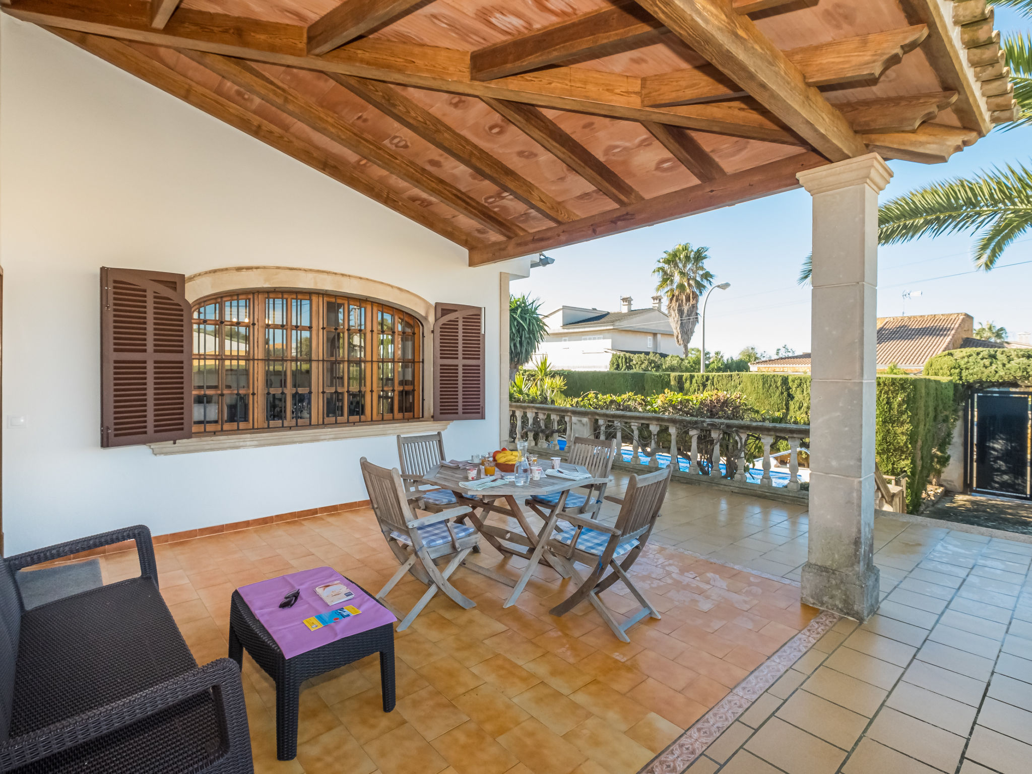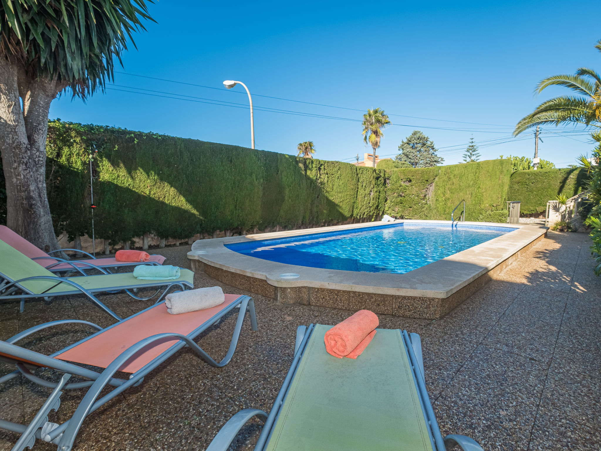 Bahía Azul 17 km von Llucmajor: Sehr grosse, gemütliche, komfortable Villa "Dofins Bahia Azul", renoviert. Im Ortsteil Bahía Azul, im Ort Llucmajor, ruhige, sonnige Lage im Villenviertel, 25 km vom Waldrand, 800 m vom Meer. Zur Alleinbenutzung: gepflegter Garten mit Rasen und Pflanzen, Hof, Schwimmbad eckig (8 x 4 m, 100 - 220 cm tief, 01.01.-31.12.). Sitzplatz, Laube, Pergola, Gartenmöbel, Grill, Poolpflege durch den Besitzer/Gärtner. Im Hause: Internetzugang, Wireless LAN, Klimaanlage, Waschmaschine, Wäschetrockner. Parkplatz beim Haus auf dem Grundstück. Supermarkt 750 m, Restaurant 650 m, Bar 700 m, Bäckerei 650 m, Fahrradverleih 1 km, Bushaltestelle "Badia Gran (31112), 07609 Badia" 400 m, Sandstrand "El Arenal" 9.5 km, Felsstrand "Playa Maioris" 4.2 km, Badebucht 900 m. Sporthafen 9.5 km, Jacht-Hafen 9.5 km, Golfplatz (18 Loch) 15 km, Tennis 550 m, Wanderwege ab Haus, Radweg 900 m. Nahe gelegene Sehenswürdigkeiten: Sa Torre - Son Verí-Cala Blava-Cala Pí, Llucmajor Local Market Wednesdays 9-14h 15 km, El Arenal Can Pastilla 10 km, Palma de Mallorca 21 km, Es Trenc Beach 35 km, FAN Mallorca Shoping Center 17 km. Wandergebiete: Santuari de Cura 20 km, Serra de Tramuntana 45 km. Bitte beachten: Fahrzeug empfohlen. Geeignet für Familien, geeignet für Senioren. Objekt geeignet für 6 Erwachsene Jugendgruppen nur auf Anfrage. Der Besitzer akzeptiert keine Jugendgruppen. Flugplatz 18 km vom Haus. Die Nachbarschaft ist sehr lärmempfindlich. Ruhe und gutes Benehmen wird erwartet.