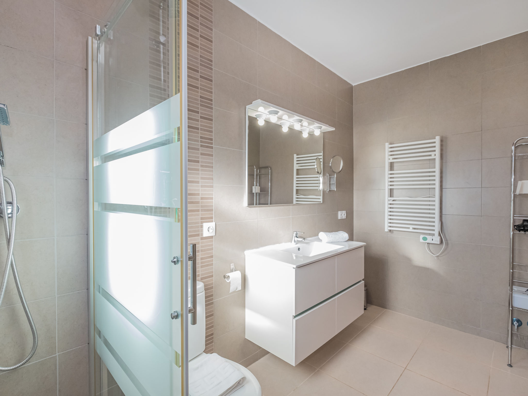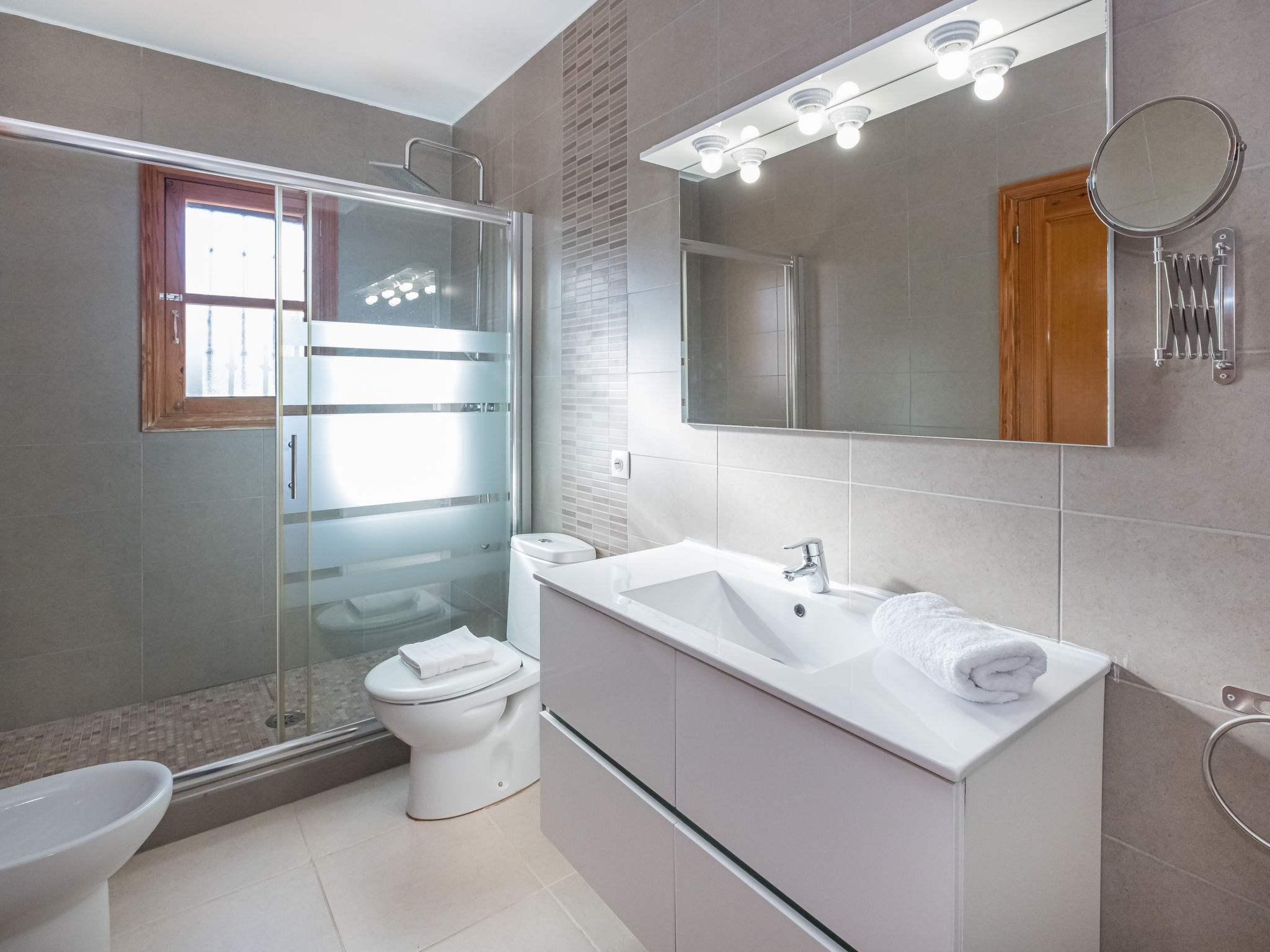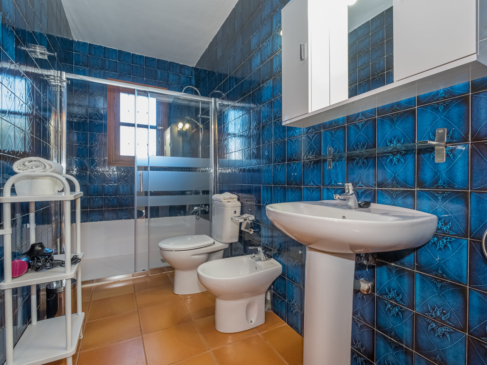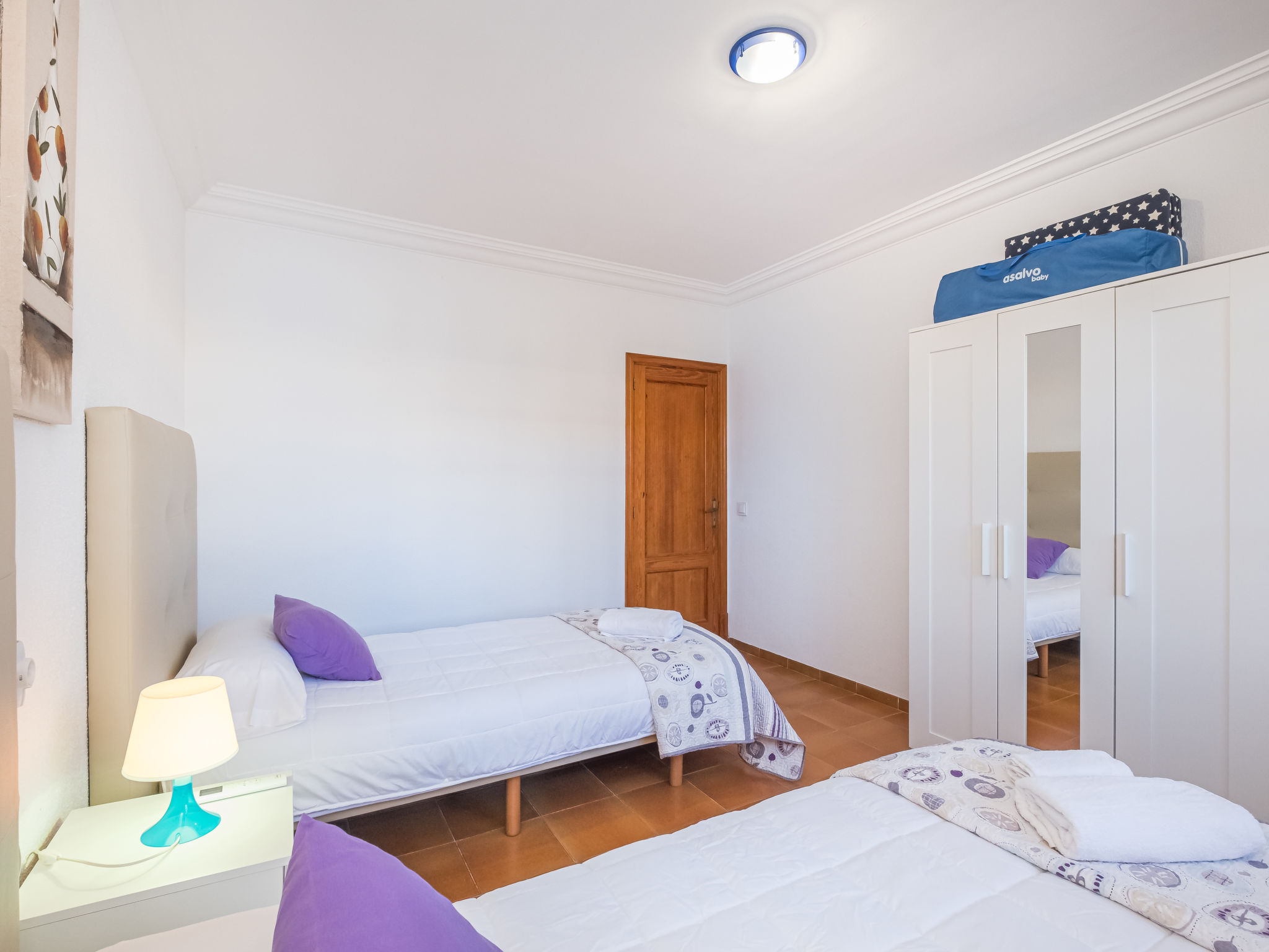 "Dofins Bahia Azul", 4-Zimmer-Villa 180 m2, im erhöhten Erdgeschoss. Objekt geeignet für 6 Erwachsene. Geräumig und hell, teilweise renoviert, zweckmässig und komfortabel eingerichtet: grosses Wohn-/Esszimmer mit offenem Kamin (nur Deko), Esstisch, Digital-TV, Flachbildschirm, E-Heizung, Klimaanlage und Warmluftheizung. Ausgang zum Gartensitzplatz, zum Schwimmbad. 1 grosses Doppelzimmer mit Panoramafenster mit 2 Betten (90 cm, Länge 200 cm), Dusche/WC, Digital-TV, Flachbildschirm, E-Heizung, Klimaanlage und Warmluftheizung. 2 grosse Doppelzimmer, jedes Zimmer mit 2 Betten (105 cm, Länge 200 cm), E-Heizung, Klimaanlage und Warmluftheizung. Wohnküche (Backofen, 3 Glaskeramikherd Platten, Toaster, Wasserkocher, Mikrowelle, Tiefkühler, elektrische Kaffeemaschine) mit Esstisch, E-Heizung. Ausgang zum Gartensitzplatz. Dusche/Bidet/WC. E-Heizung. 2 grosse Terrassen, Garten, Rasen, Laube. Terrassenmöbel, Gartengrill, Liegestühle, Loggia. Sicht auf die Ortschaft. Zur Verfügung: Waschmaschine, Wäschetrockner, Bügeleisen, Kinderhochstuhl, Babybett bis 2 Jahre, Haartrockner. Internet (Wireless LAN, gratis). Parkplatz (eingezäunt) beim Haus. Bitte beachten: geeignet für Familien. Nichtraucher-Haus. Feuerlöscher. ETV7913