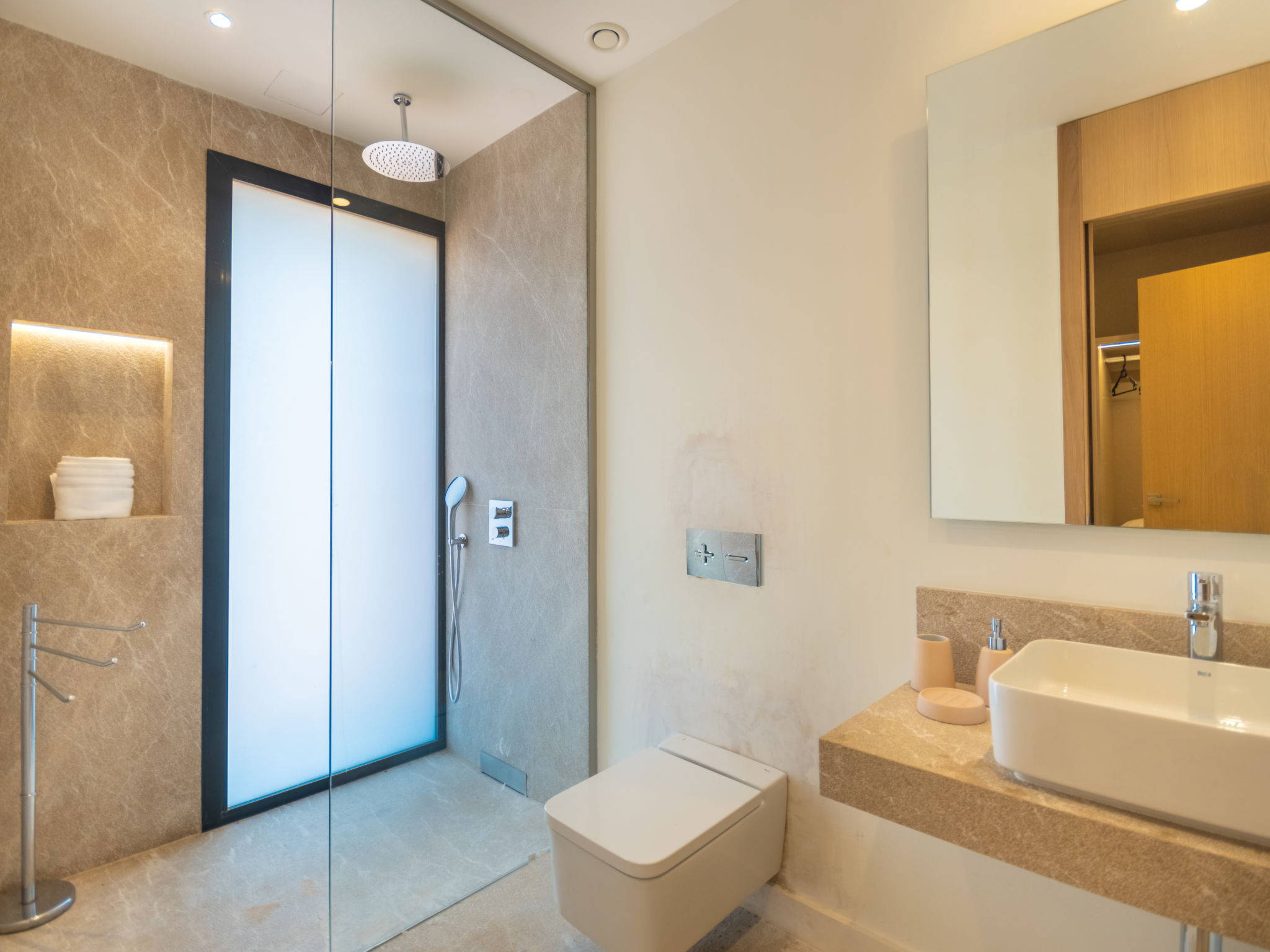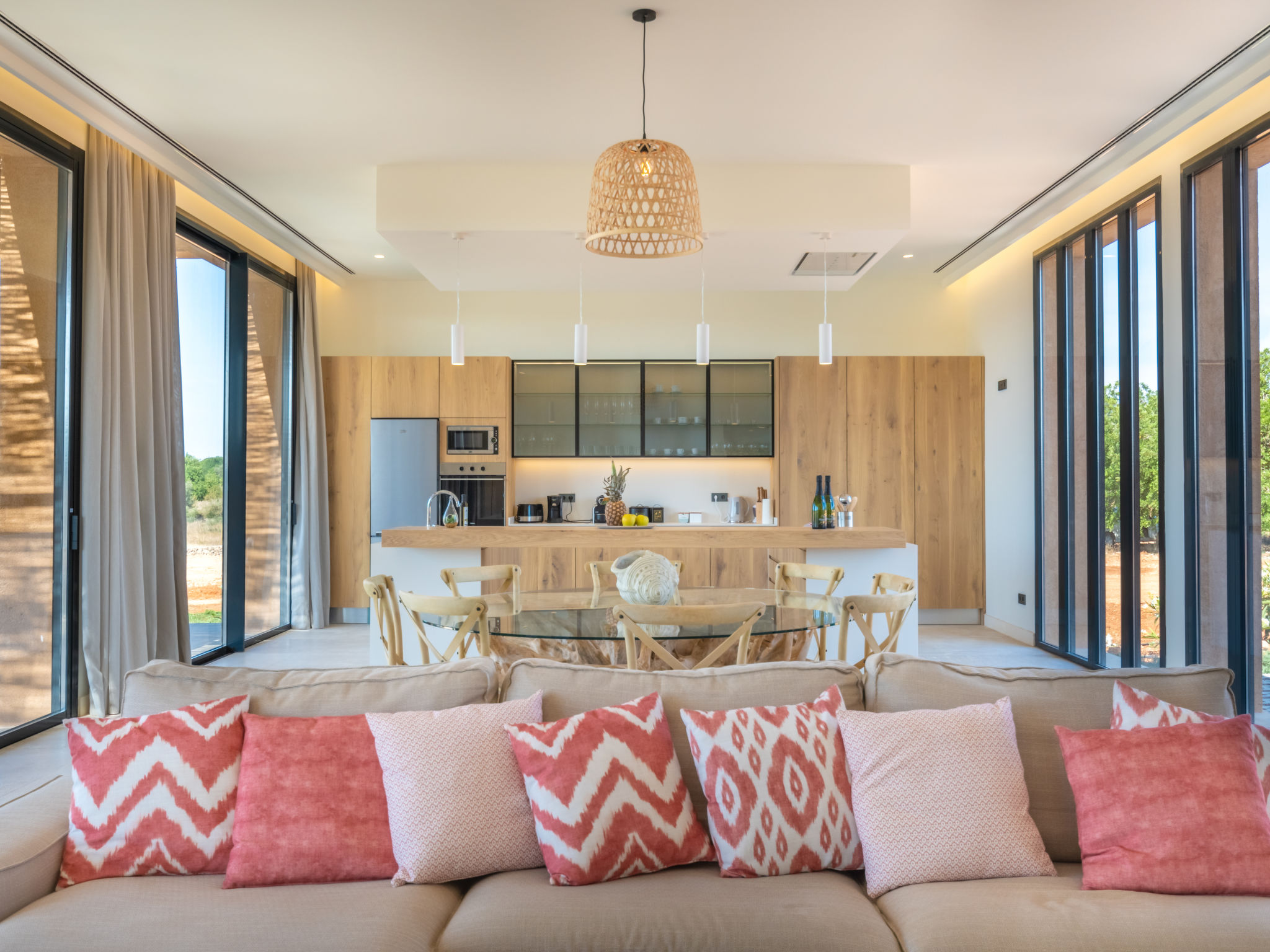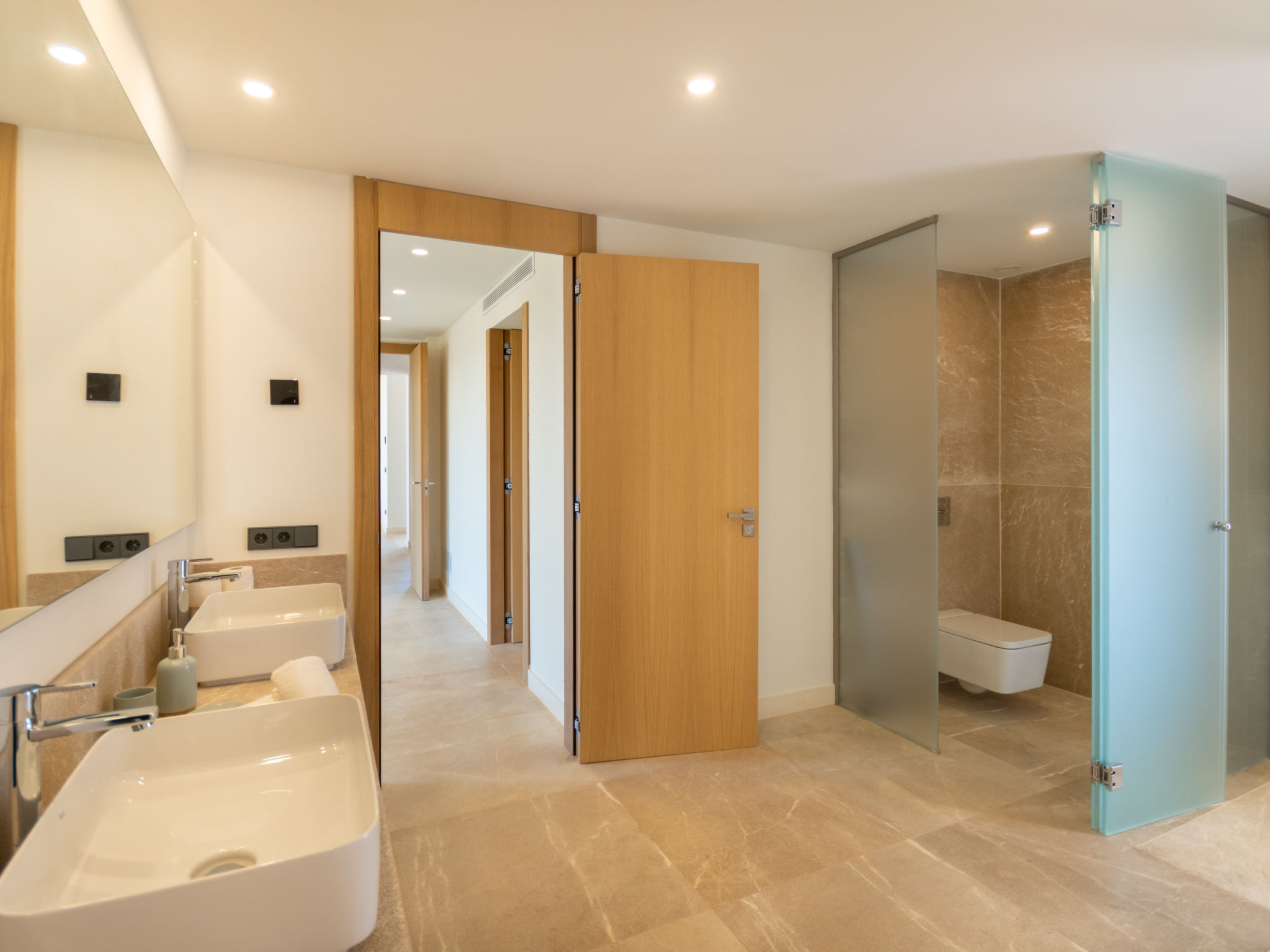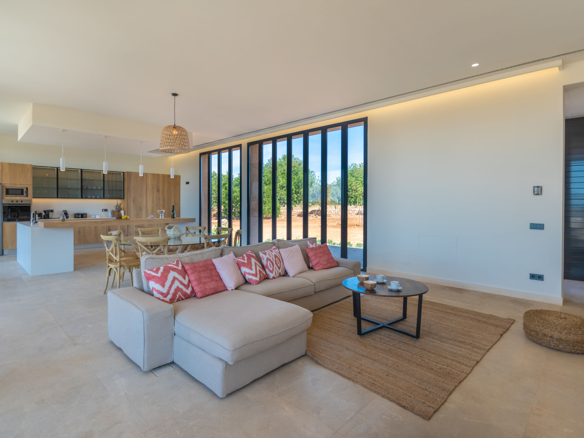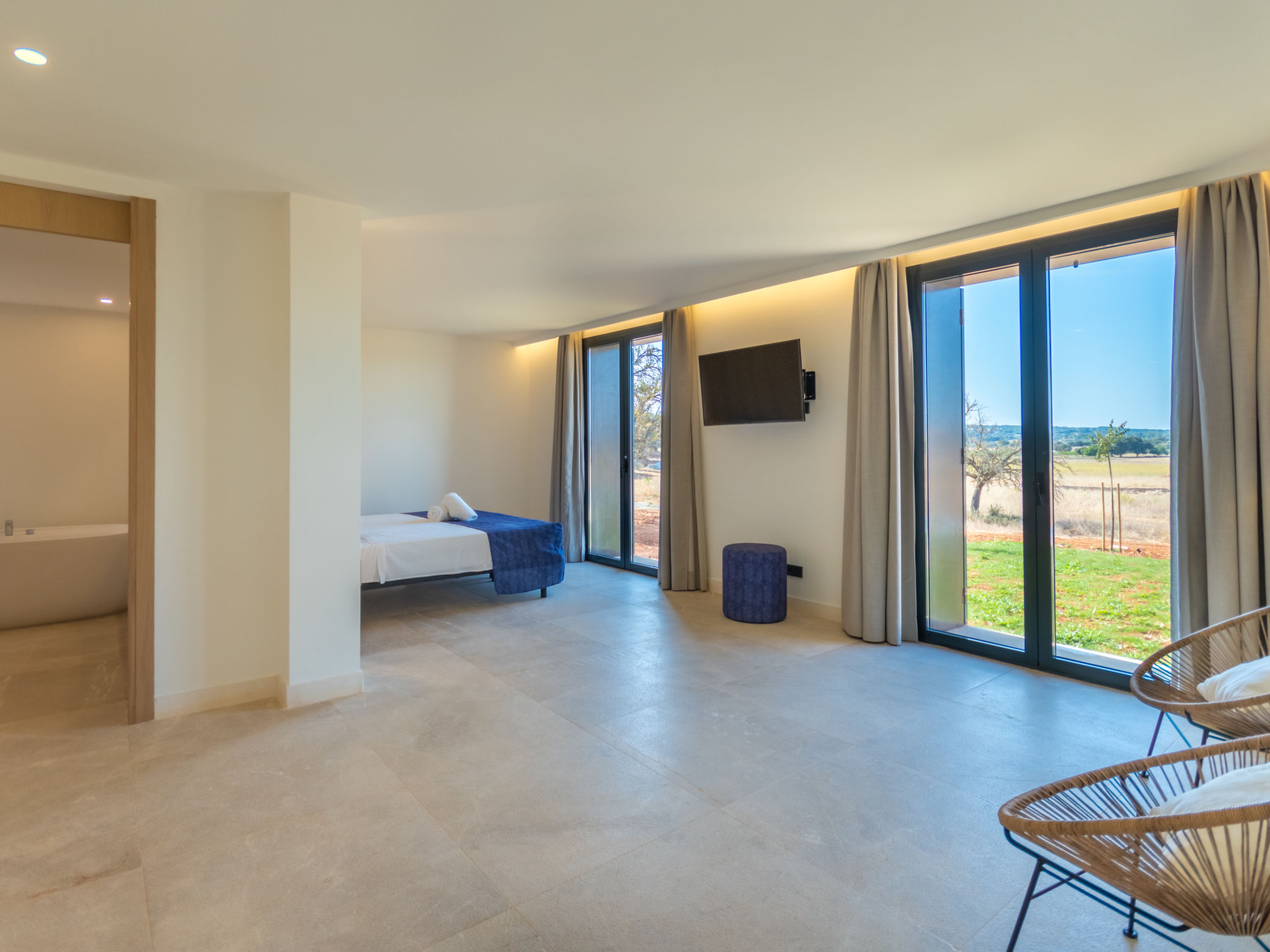 Sehr grosse, sehr moderne Villa "Can Navarro", auf 2 Stockwerken, umgeben von Feldern und Weinbergen. Ausserhalb des Ortes, 4.5 km vom Zentrum von Inca, ruhige, sonnige Lage, 500 m vom Waldrand, 25 km vom Meer, 25 km vom Strand, im Grünen. Zur Alleinbenutzung: naturbelassenes Grundstück, Garten mit Rasen und Pflanzen, Wiese, Schwimmbad eckig (14 x 4 m, 160 cm tief, 01.01.-31.12.) mit Salzelektrolyse-Reinigungssystem. Aussendusche, Sitzplatz, Laube, Pergola, Gartenmöbel, Grill. Im Hause: Internetzugang, Wireless LAN, Einstellraum für Fahrräder, Zentralheizung, Klimaanlage, Waschmaschine, Trockenraum. 100 m lange holprige Zufahrt bis zum Haus. Parkplatz beim Haus auf dem Grundstück. Einkaufsgeschäft 4.5 km, Lebensmittelgeschäft 4.5 km, Supermarkt 4.5 km, Einkaufszentrum 15 km, Restaurant 4 km, Bar 3.8 km, Bäckerei 4.2 km, Zentrum zu Fuss in 60 Minuten erreichbar, Bushaltestelle 4 km, Bahnstation 4.8 km, Fähre 26 km, Sandstrand "Playa de Muro - Port Alcudia" 25 km, Steinstrand "Alcúdia" 26 km. Sporthafen 25 km, Jacht-Hafen 25 km, Golfplatz (18 Loch) 29 km. Nahe gelegene Sehenswürdigkeiten: Sineu, Costitx, Sencelles, Llubí, Inca, Mallorca Fashion Outlet & Cinemas 20 km, Ruta Arqueológica Costitx, Lluc-Escorca. Serra Tramuntana, Observatorio Astronómico Costitx. Bitte beachten: Fahrzeug empfohlen. Geeignet für Familien, geeignet für Senioren. Objekt geeignet für 8 Erwachsene Jugendgruppen nur auf Anfrage. Flugplatz 55 km vom Haus. In diesem Haus sind weitere Ferienwohnungen mietbar. Ferienwohnung Ref. ES8200.137.1 befindet sich auf dem gleichen Grundstück. In dieser Anlage zusätzlich mietbar: 1 Haus.