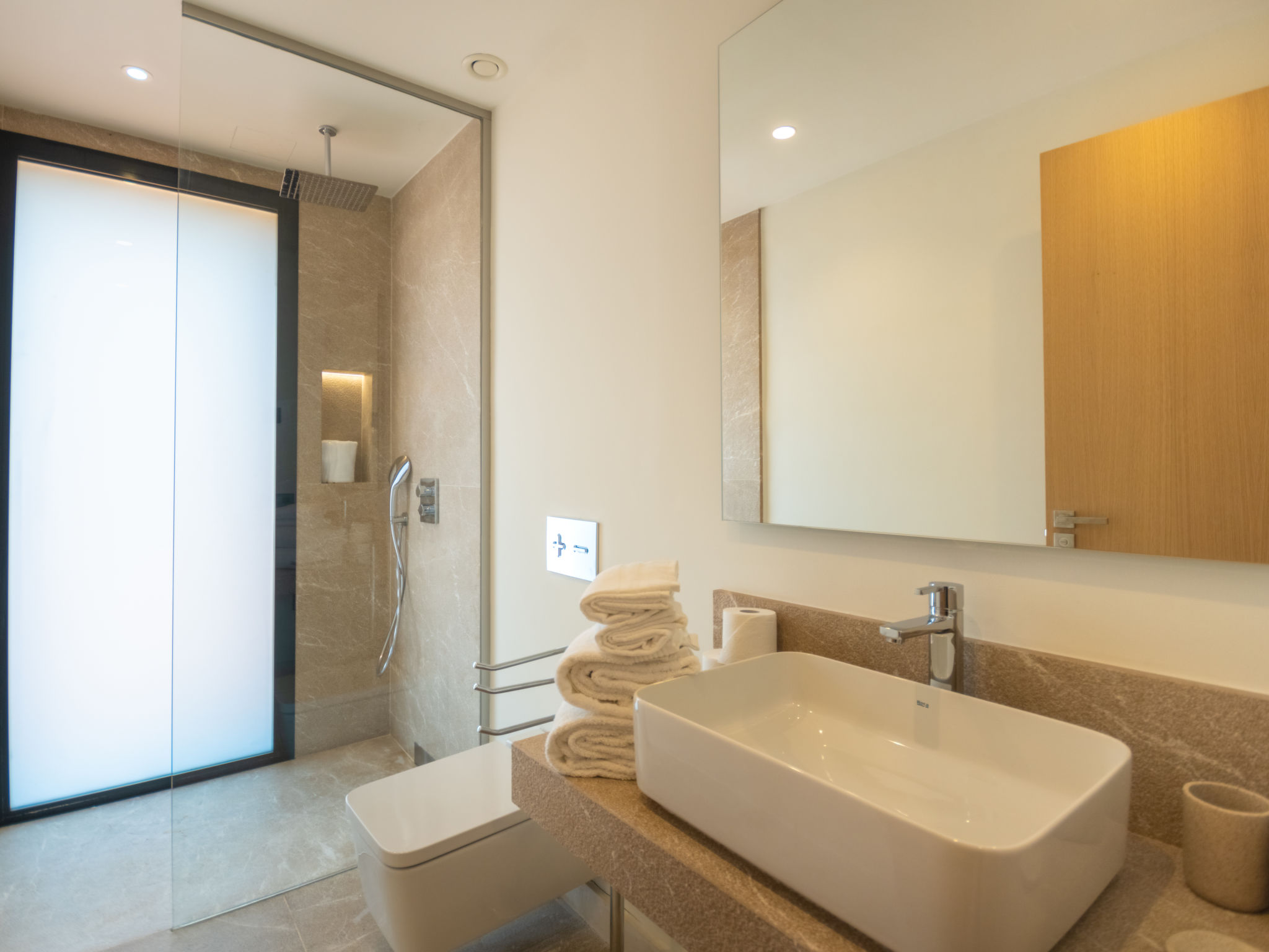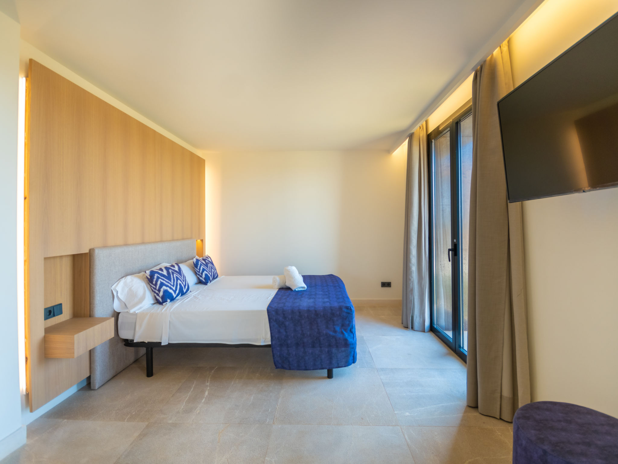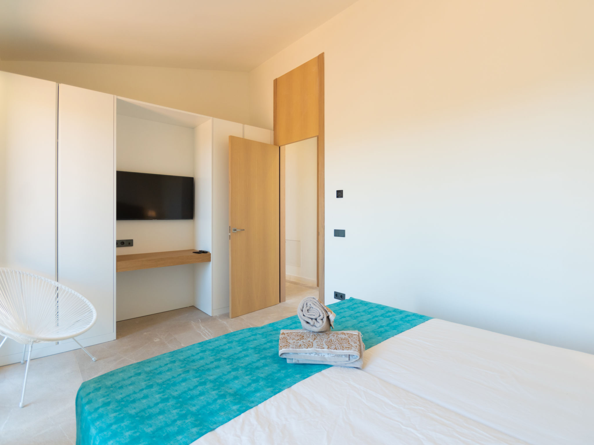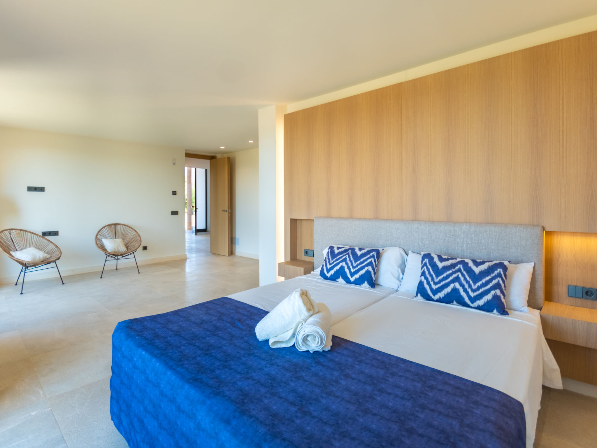 "Can Navarro", 5-Zimmer-Villa 250 m2 auf 2 Stockwerken. Objekt geeignet für 8 Erwachsene. Geräumig und hell, sehr komfortabel und modern eingerichtet: grosses Wohn-/Esszimmer mit Schiebetür, Panoramafenster mit Esstisch, Sat-TV, Digital-TV, Flachbildschirm, Radio, Stereoanlage, Klimaanlage und Warmluftheizung. Ausgang zum Gartensitzplatz, zum Schwimmbad. 1 grosses Doppelzimmer mit Schiebetür, Panoramafenster begehbarer Kleiderschrank mit 2 Betten (90 cm, Länge 200 cm), Bad/Dusche/WC, Doppelwaschbecken, TV, Flachbildschirm, Klimaanlage und Warmluftheizung. Ausgang zum Gartensitzplatz. Grosse, offene Küche (Backofen, Geschirrspüler, 4 Glaskeramikherd Platten, Mikrowelle, Tiefkühler, elektrische Kaffeemaschine, Kochinsel) mit Bar, Klimaanlage und Warmluftheizung. Ausgang zum Gartensitzplatz, zum Schwimmbad. Sep. WC. Obergeschoss: 1 grosses Doppelzimmer mit Panoramafenster begehbarer Kleiderschrank mit 2 Betten (90 cm, Länge 200 cm), Dusche/WC, TV, Flachbildschirm, Klimaanlage und Warmluftheizung. 2 grosse Doppelzimmer mit Panoramafenster, jedes Zimmer mit 2 Betten (90 cm, Länge 200 cm), TV, Flachbildschirm, Klimaanlage und Warmluftheizung. Dusche/WC. Grosser Gartensitzplatz, Rasen, Laube. Terrassenmöbel, Balkonmöbel, Gartengrill, Liegestühle, Loggia. Sehr schöne Panoramasicht auf die Landschaft. Zur Verfügung: Waschmaschine, Bügeleisen, Kinderhochstuhl, Babybett, Haartrockner. Internet (Wireless LAN, gratis). Parkplatz (eingezäunt). Geeignet für Familien. ETV11879