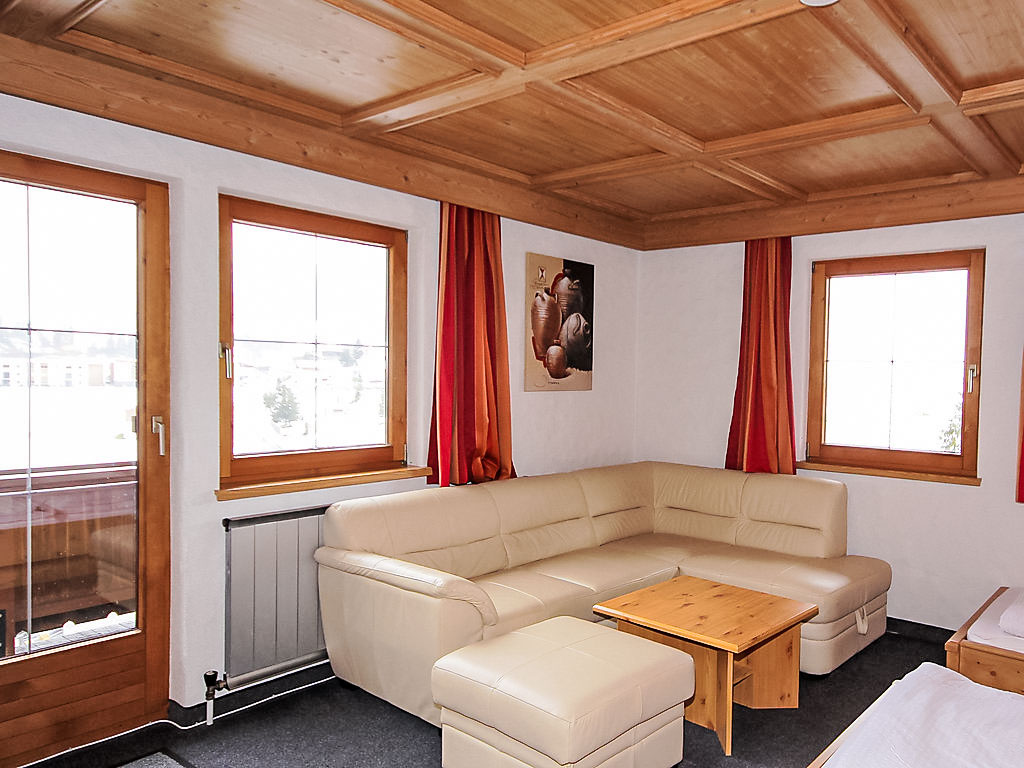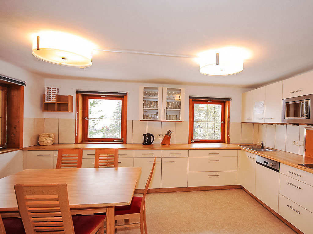 10-Zimmer-Haus 260 m2 auf 3 Stockwerken. Gemütlich eingerichtet: Eingang. Wohn-/Esszimmer mit Sat-TV (Flachbildschirm). 1 Zimmer mit 1 Bett, 1 Doppelbett und Waschbecken. Wohnküche (Backofen, Geschirrspüler, 8 Glaskeramikherd Platten, Mikrowelle, Tiefkühler) mit Esstisch, Durchreiche. 4 Duschen, 2 sep. WC's. Obergeschoss: 1 Zimmer mit 1 Bett, 1 Doppelbett, Waschbecken und Dusche. 1 Zimmer mit 1 Bett, 1 Doppelbett und Waschbecken. Ausgang zum Balkon. 2 Zimmer, jedes Zimmer mit 2 Betten, 1 Doppelbett und Waschbecken. Sep. WC. Dachgeschoss: Wohn-/Schlafzimmer mit 1 Bett, 1 Doppelbett und Sat-TV. Ausgang zum Balkon. 1 Zimmer mit 1 Bett und 1 Doppelbett. 1 kleines Zimmer mit 1 Doppelbett (160 cm, Länge 200 cm). 1 kleines Zimmer mit 2 Betten. Wohnküche (Backofen, Geschirrspüler, 4 Glaskeramikherd Platten, Mikrowelle) mit Essecke und Sat-TV (Flachbildschirm). Ausgang zum Balkon. Bad/Dusche/WC. Schöne Sicht auf die Berge und die Landschaft. Zur Verfügung: Internet (Wireless LAN, gratis). Bitte beachten: Nichtraucher-Unterkunft. Maximal 2 Haustiere/Hunde erlaubt. Die 4 Duschen im Erdgeschoss sind auf 2 Räume verteilt mit jeweils 2 Duschen und Waschbecken. Das Wohn-/Esszimmer im Erdgeschoss ist eine gemütliche Tiroler Bauernstube mit viel Zirbenholz. Die maximale Personenzahl von 27 inkl. Zusatzbetten, Babies und Kleinkinder darf nicht überschritten werden. Bei Belegung mit weniger Personen als der maximalen Personenzahl stehen nicht alle Wohneinheiten zur Verfügung.