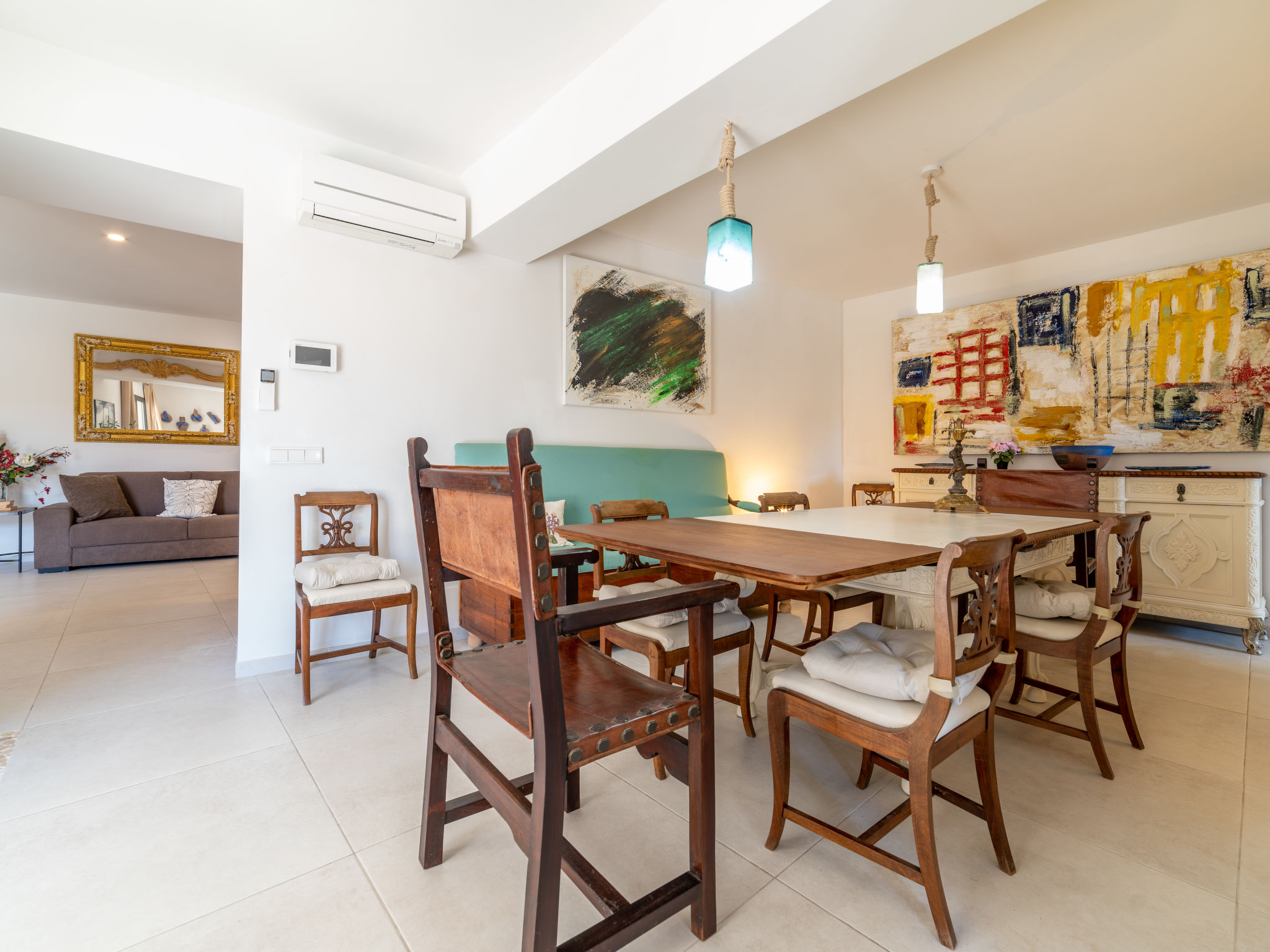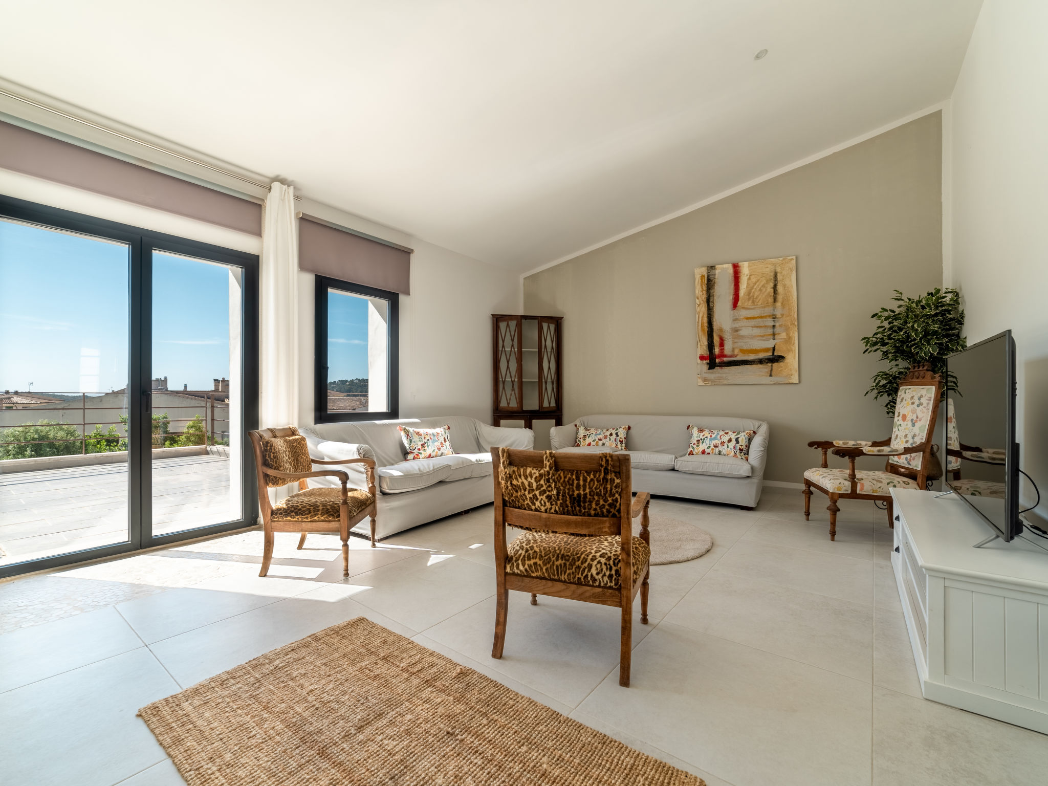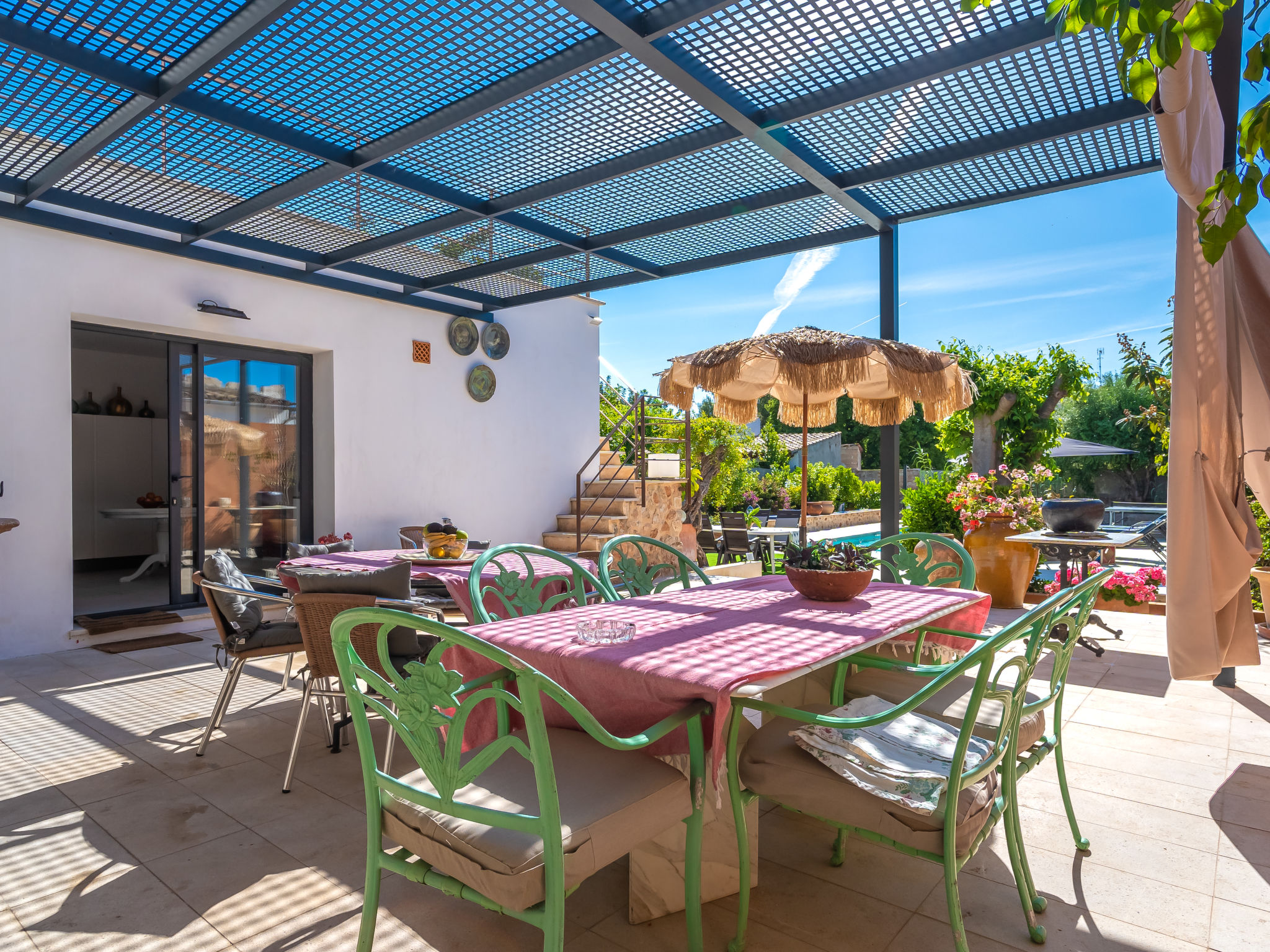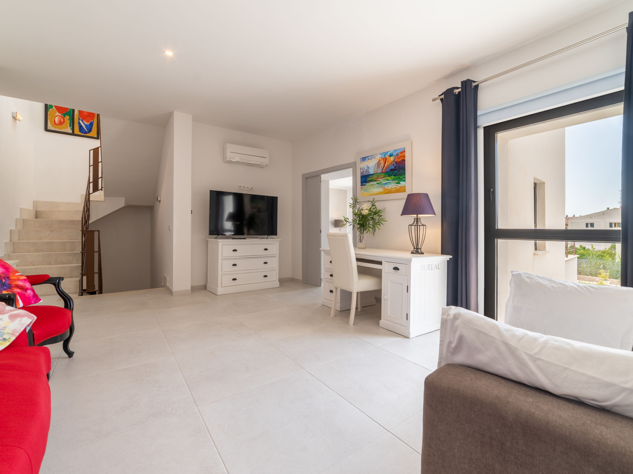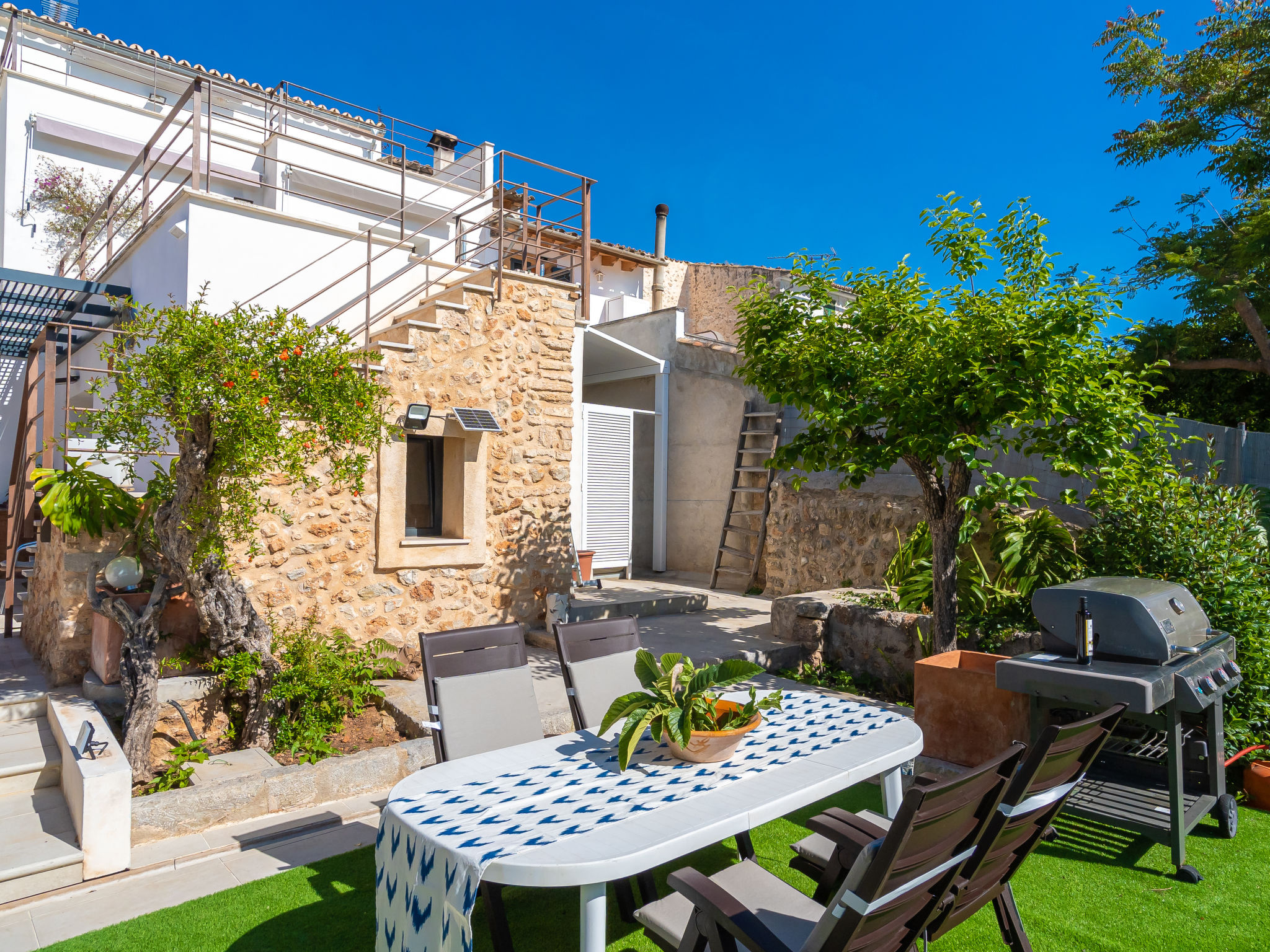 11-Zimmer-Reihenhaus 360 m2 auf 3 Stockwerken. Modern und geschmackvoll eingerichtet: Eingang. Wohnzimmer mit Klimaanlage und Warmluftheizung. Esszimmer mit Esstisch, Klimaanlage und Warmluftheizung. Ausgang zur Terrasse. 1 Zimmer mit 2 Betten (90 cm, Länge 200 cm), Klimaanlage und Warmluftheizung. Offene Küche (Backofen, Geschirrspüler, 3 Glaskeramikherd Platten, Toaster, Wasserkocher, Mikrowelle, elektrische Kaffeemaschine) mit kleinem Esstisch, Küchenblock. Ausgang zur Terrasse. Dusche/WC. Obergeschoss: Wohnzimmer mit Sat-TV und Digital-TV. 1 Zimmer mit 1 franz. Bett (1 x 140 cm, Länge 200 cm), Klimaanlage und Warmluftheizung. 1 Zimmer mit 1 Doppelbett (1 x 180 cm, Länge 200 cm), Klimaanlage und Warmluftheizung. Ausgang zum Balkon. 1 Zimmer mit 1 Doppelbett (1 x 180 cm, Länge 200 cm), Klimaanlage und Warmluftheizung. 1 Zimmer mit 1 Doppelbett (1 x 180 cm, Länge 200 cm), Klimaanlage und Warmluftheizung. 1 Zimmer mit 2 Betten (90 cm, Länge 200 cm), Klimaanlage und Warmluftheizung. 3 Duschen/WC. 2. Obergeschoss: 1 Zimmer mit 1 Doppelbett (1 x 180 cm, Länge 200 cm), Klimaanlage und Warmluftheizung. Wohnzimmer mit Sat-TV und Digital-TV. Dusche/WC. Grosse Terrasse 50 m2. Terrassenmöbel, Gartengrill (mobil), Liegestühle. Schöne Sicht auf die Berge und die Ortschaft. Zur Verfügung: Waschmaschine, Wäschetrockner, Kinderhochstuhl, Babybett bis 2 Jahre (extra), Haartrockner. Internet (Wireless LAN, gratis). Garage auf dem Grundstück (2 Autos). Bitte beachten: Nichtraucher-Haus. L12E11630