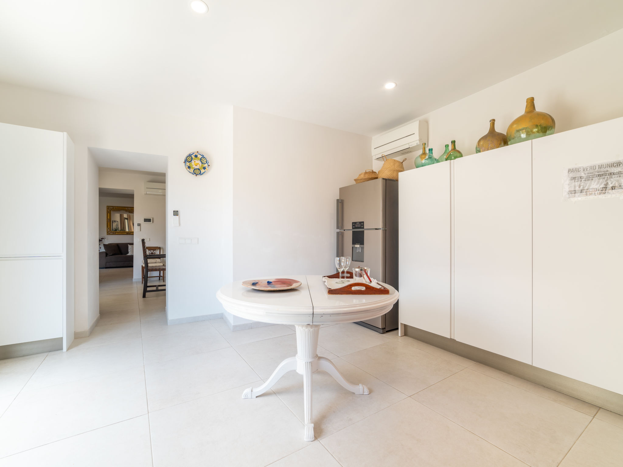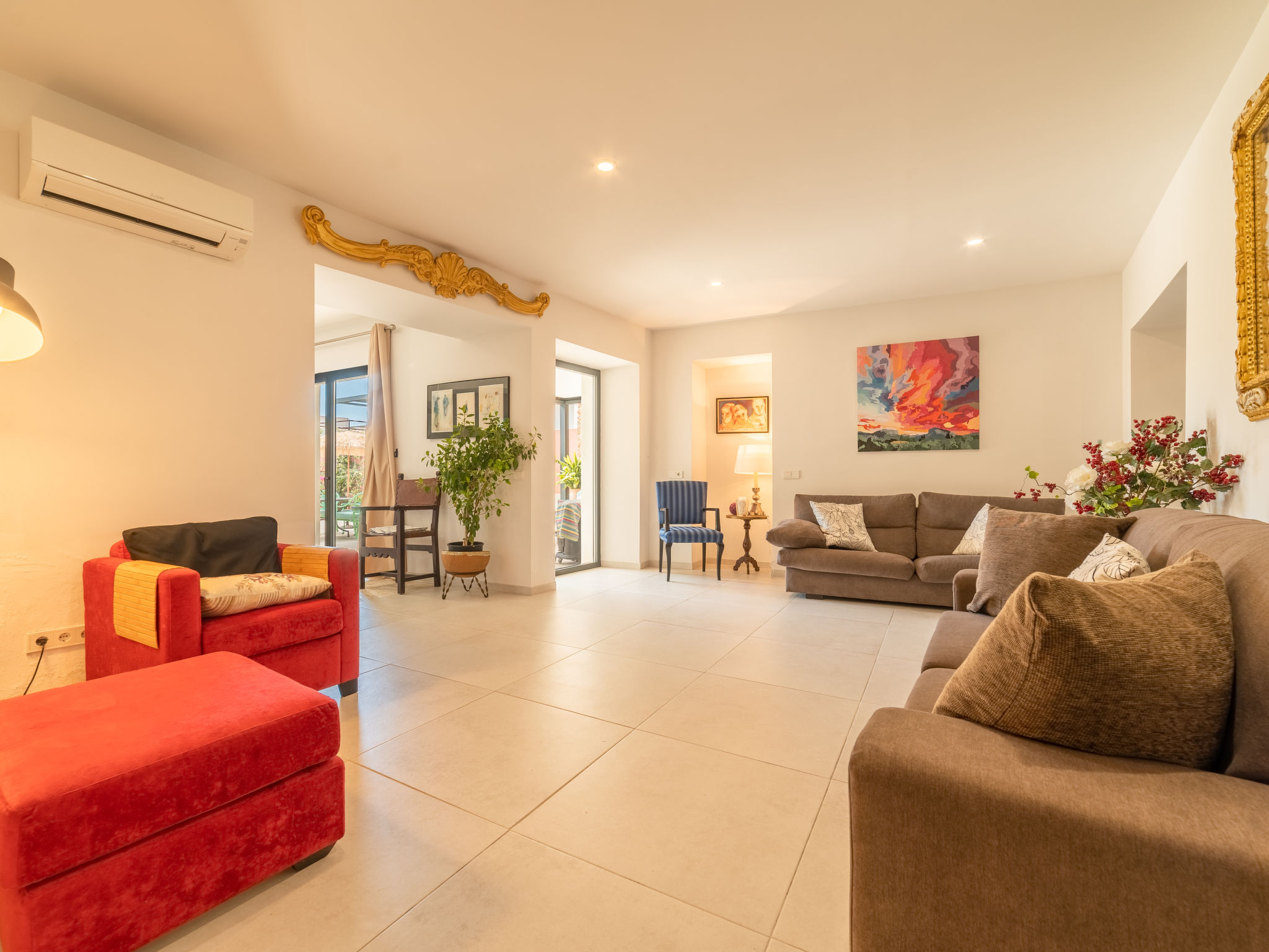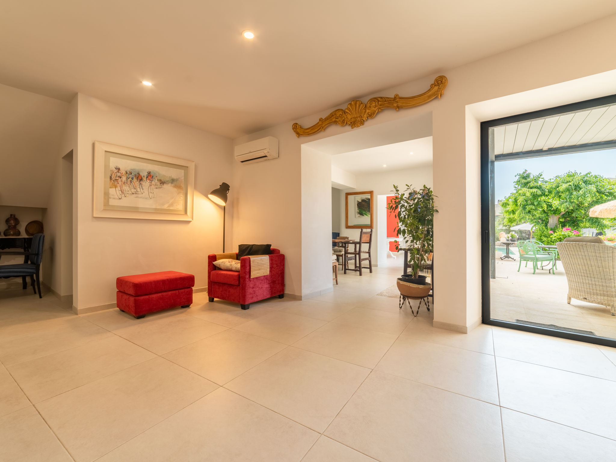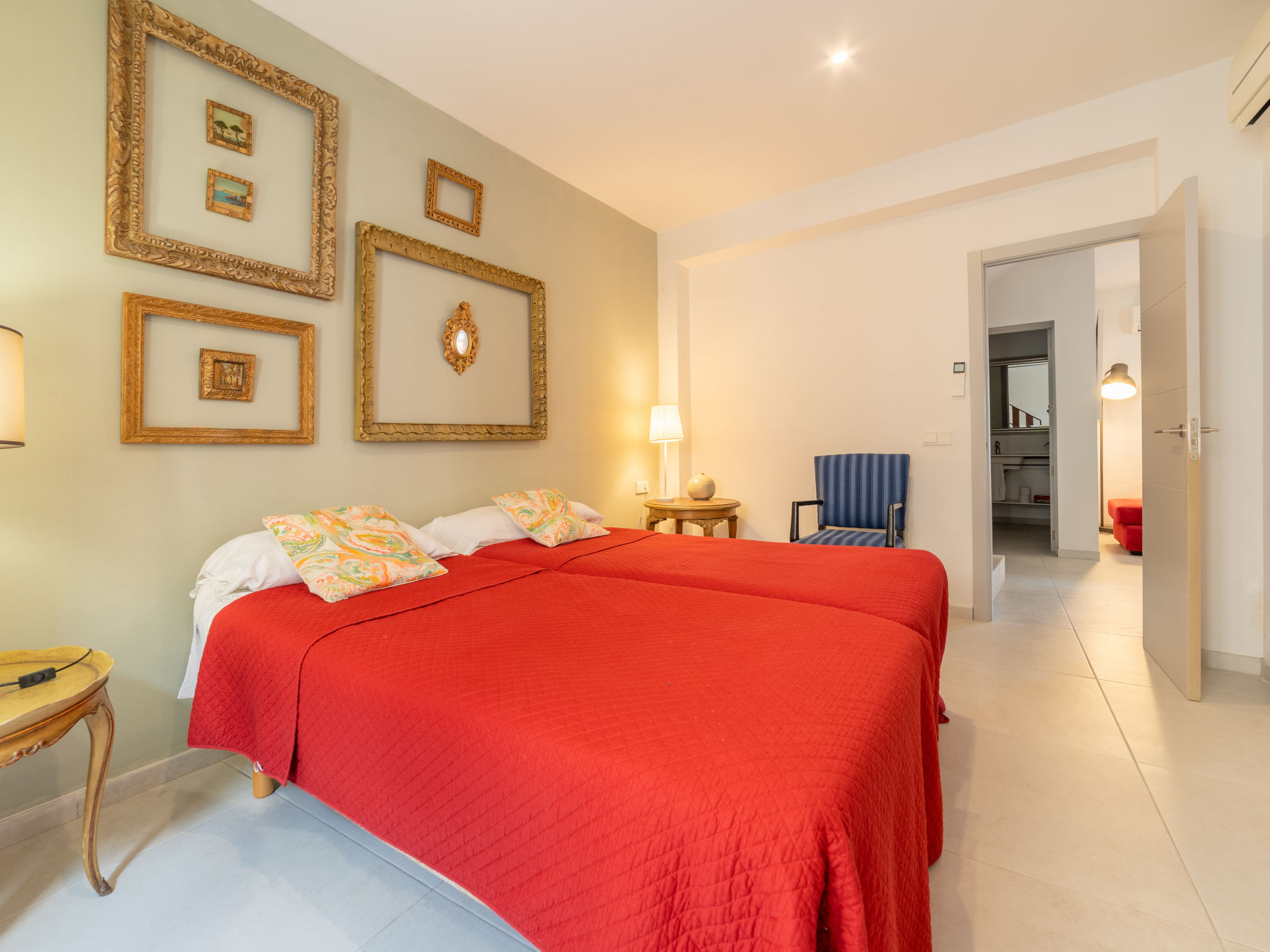 11-Zimmer-Reihenhaus 360 m2 auf 3 Stockwerken. Modern und geschmackvoll eingerichtet: Eingang. Wohnzimmer mit Klimaanlage und Warmluftheizung. Esszimmer mit Esstisch, Klimaanlage und Warmluftheizung. Ausgang zur Terrasse. 1 Zimmer mit 2 Betten (90 cm, Länge 200 cm), Klimaanlage und Warmluftheizung. Offene Küche (Backofen, Geschirrspüler, 3 Glaskeramikherd Platten, Toaster, Wasserkocher, Mikrowelle, elektrische Kaffeemaschine) mit kleinem Esstisch, Küchenblock. Ausgang zur Terrasse. Dusche/WC. Obergeschoss: Wohnzimmer mit Sat-TV und Digital-TV. 1 Zimmer mit 1 franz. Bett (1 x 140 cm, Länge 200 cm), Klimaanlage und Warmluftheizung. 1 Zimmer mit 1 Doppelbett (1 x 180 cm, Länge 200 cm), Klimaanlage und Warmluftheizung. Ausgang zum Balkon. 1 Zimmer mit 1 Doppelbett (1 x 180 cm, Länge 200 cm), Klimaanlage und Warmluftheizung. 1 Zimmer mit 1 Doppelbett (1 x 180 cm, Länge 200 cm), Klimaanlage und Warmluftheizung. 1 Zimmer mit 2 Betten (90 cm, Länge 200 cm), Klimaanlage und Warmluftheizung. 3 Duschen/WC. 2. Obergeschoss: 1 Zimmer mit 1 Doppelbett (1 x 180 cm, Länge 200 cm), Klimaanlage und Warmluftheizung. Wohnzimmer mit Sat-TV und Digital-TV. Dusche/WC. Grosse Terrasse 50 m2. Terrassenmöbel, Gartengrill (mobil), Liegestühle. Schöne Sicht auf die Berge und die Ortschaft. Zur Verfügung: Waschmaschine, Wäschetrockner, Kinderhochstuhl, Babybett bis 2 Jahre (extra), Haartrockner. Internet (Wireless LAN, gratis). Garage auf dem Grundstück (2 Autos). Bitte beachten: Nichtraucher-Haus. L12E11630