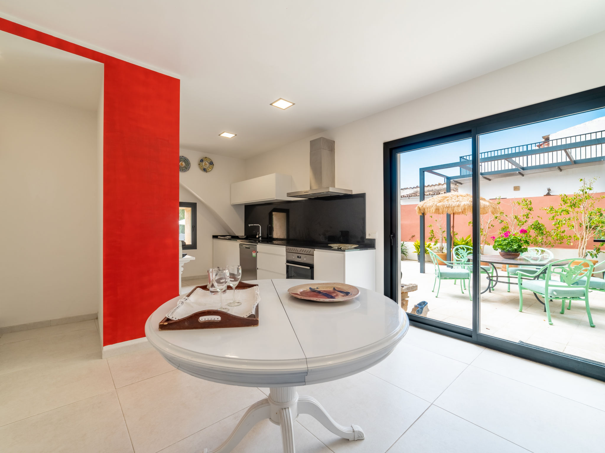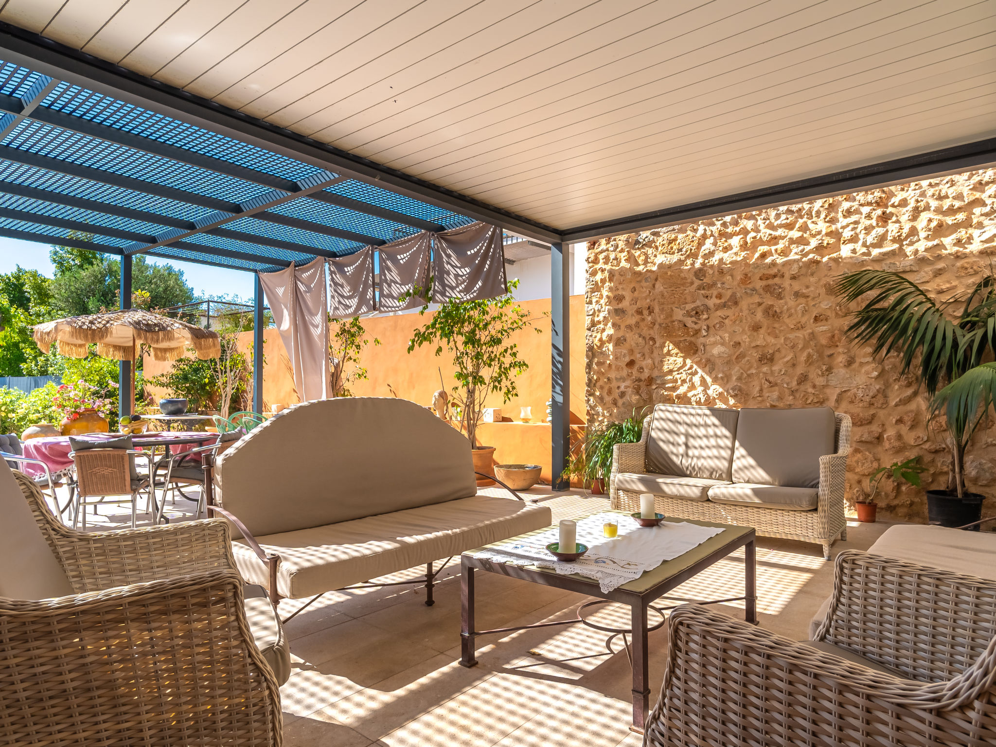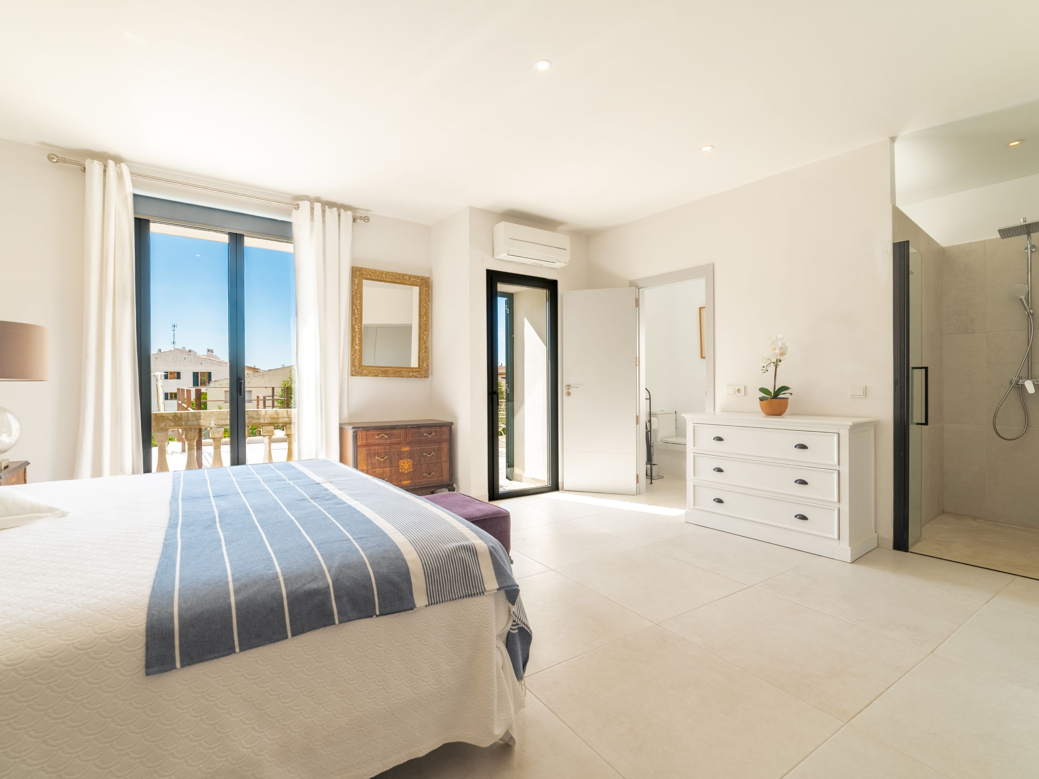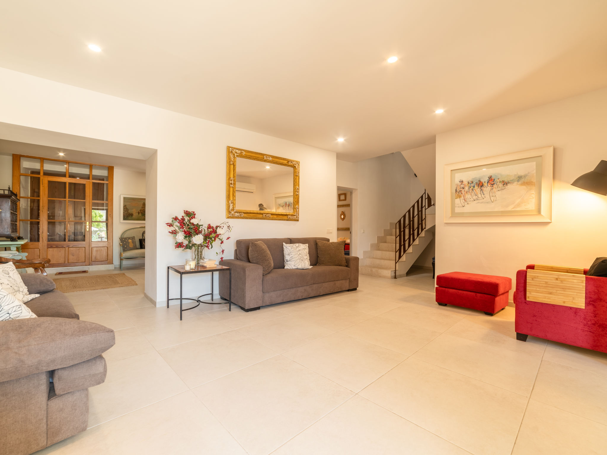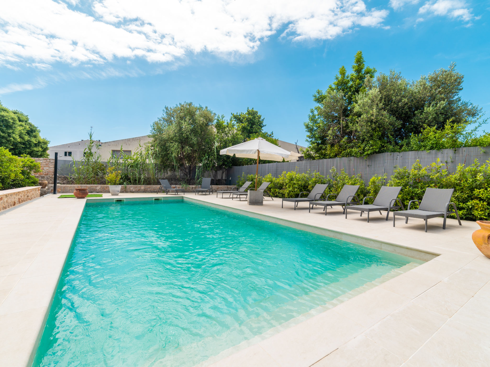 11-Zimmer-Reihenhaus 360 m2 auf 3 Stockwerken. Modern und geschmackvoll eingerichtet: Eingang. Wohnzimmer mit Klimaanlage und Warmluftheizung. Esszimmer mit Esstisch, Klimaanlage und Warmluftheizung. Ausgang zur Terrasse. 1 Zimmer mit 2 Betten (90 cm, Länge 200 cm), Klimaanlage und Warmluftheizung. Offene Küche (Backofen, Geschirrspüler, 3 Glaskeramikherd Platten, Toaster, Wasserkocher, Mikrowelle, elektrische Kaffeemaschine) mit kleinem Esstisch, Küchenblock. Ausgang zur Terrasse. Dusche/WC. Obergeschoss: Wohnzimmer mit Sat-TV und Digital-TV. 1 Zimmer mit 1 franz. Bett (1 x 140 cm, Länge 200 cm), Klimaanlage und Warmluftheizung. 1 Zimmer mit 1 Doppelbett (1 x 180 cm, Länge 200 cm), Klimaanlage und Warmluftheizung. Ausgang zum Balkon. 1 Zimmer mit 1 Doppelbett (1 x 180 cm, Länge 200 cm), Klimaanlage und Warmluftheizung. 1 Zimmer mit 1 Doppelbett (1 x 180 cm, Länge 200 cm), Klimaanlage und Warmluftheizung. 1 Zimmer mit 2 Betten (90 cm, Länge 200 cm), Klimaanlage und Warmluftheizung. 3 Duschen/WC. 2. Obergeschoss: 1 Zimmer mit 1 Doppelbett (1 x 180 cm, Länge 200 cm), Klimaanlage und Warmluftheizung. Wohnzimmer mit Sat-TV und Digital-TV. Dusche/WC. Grosse Terrasse 50 m2. Terrassenmöbel, Gartengrill (mobil), Liegestühle. Schöne Sicht auf die Berge und die Ortschaft. Zur Verfügung: Waschmaschine, Wäschetrockner, Kinderhochstuhl, Babybett bis 2 Jahre (extra), Haartrockner. Internet (Wireless LAN, gratis). Garage auf dem Grundstück (2 Autos). Bitte beachten: Nichtraucher-Haus. L12E11630