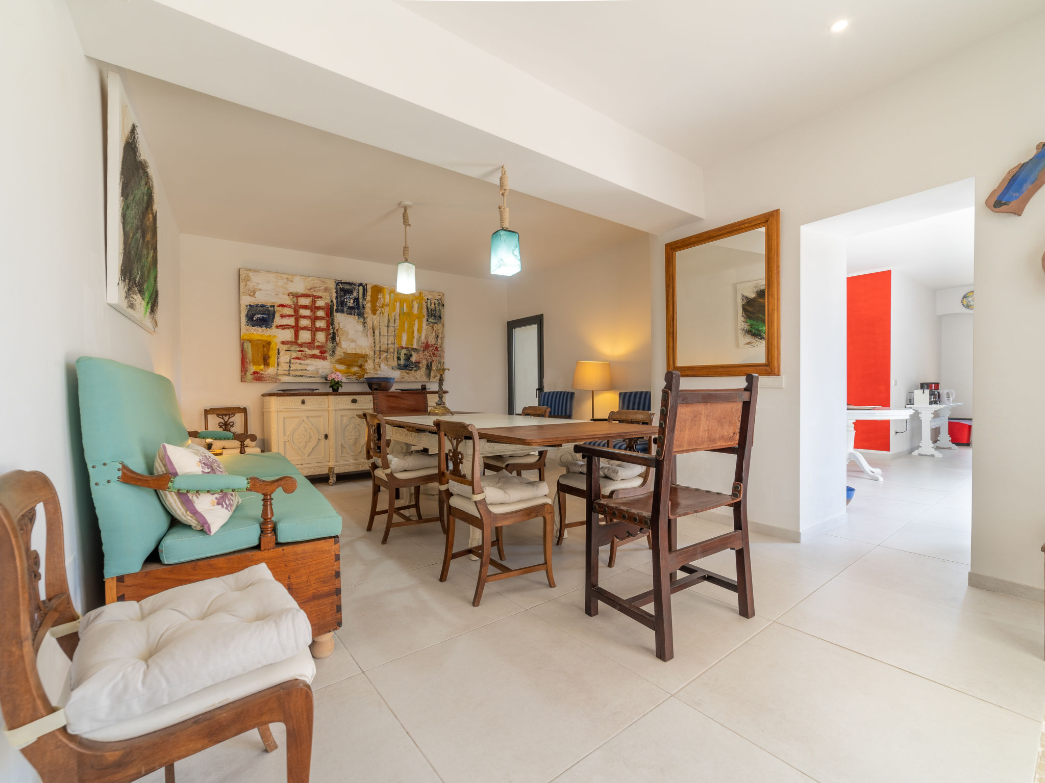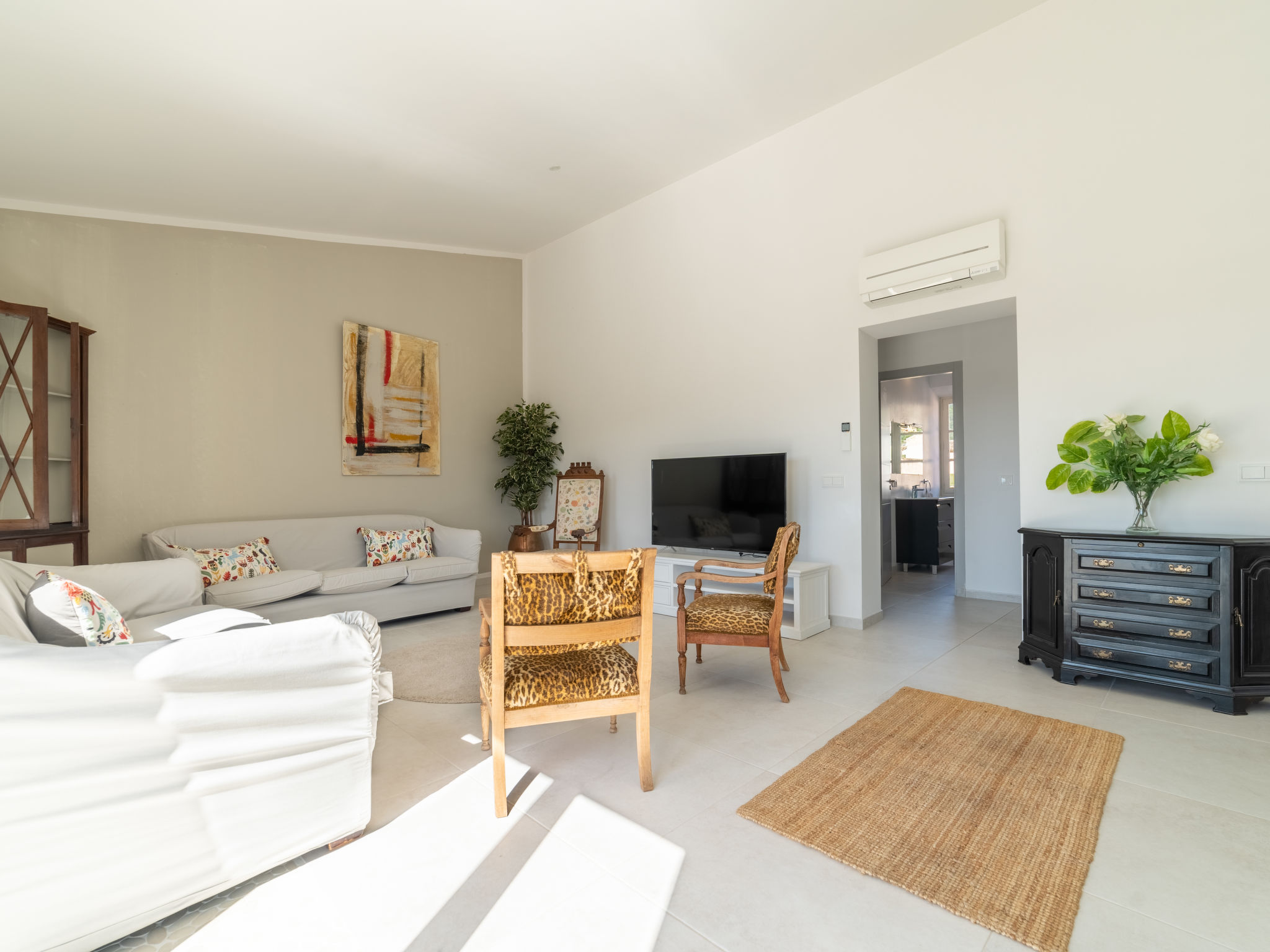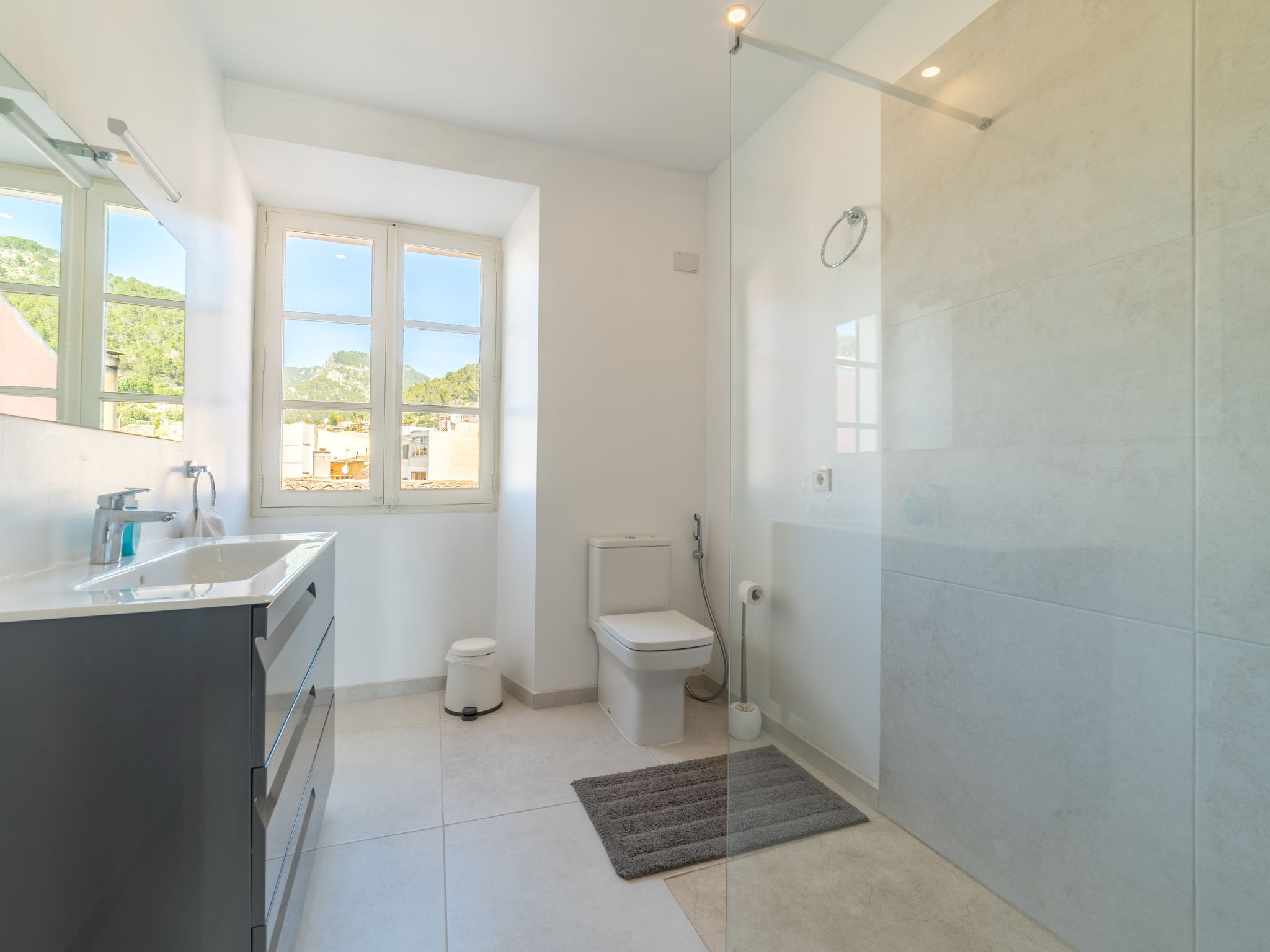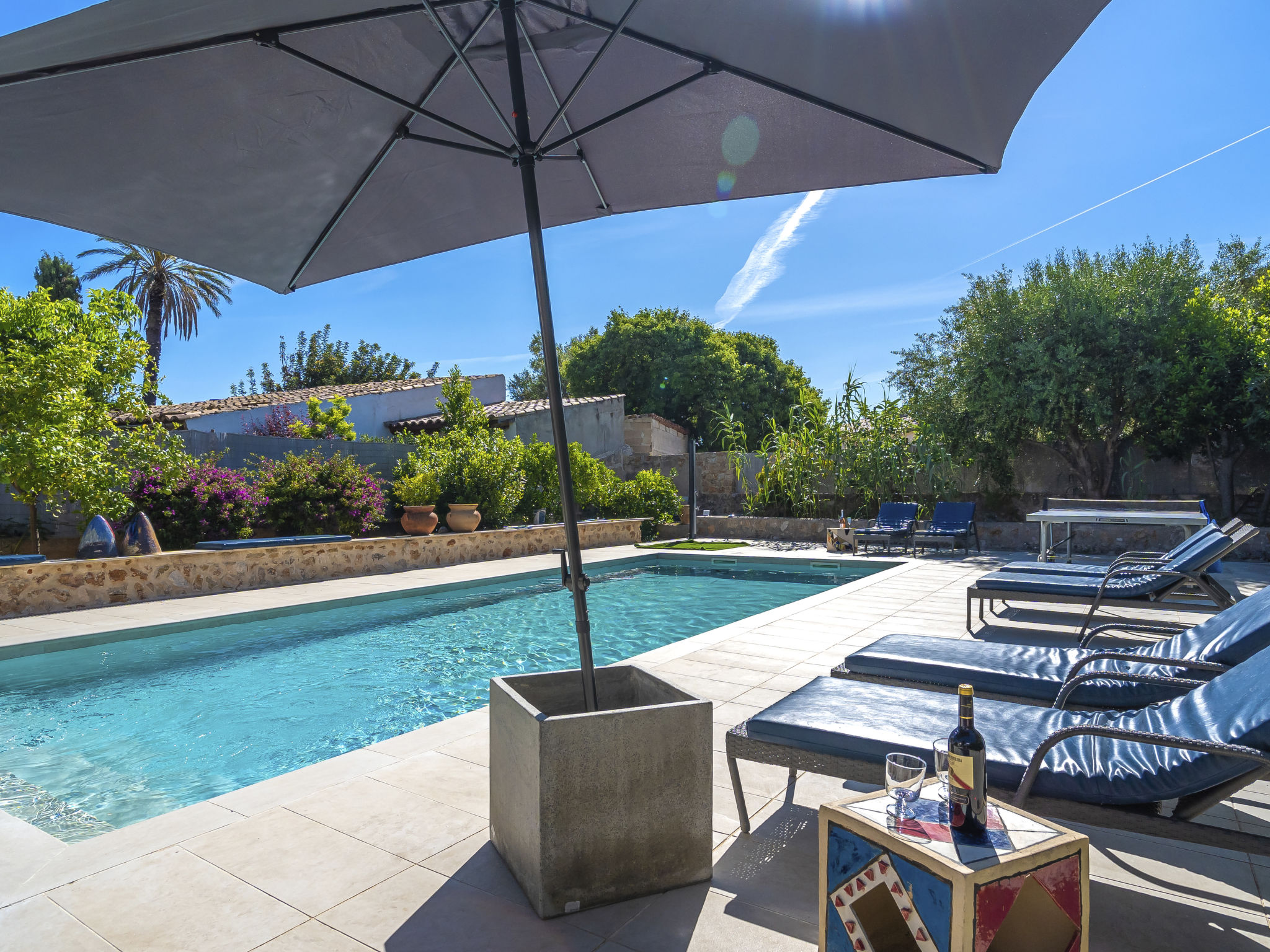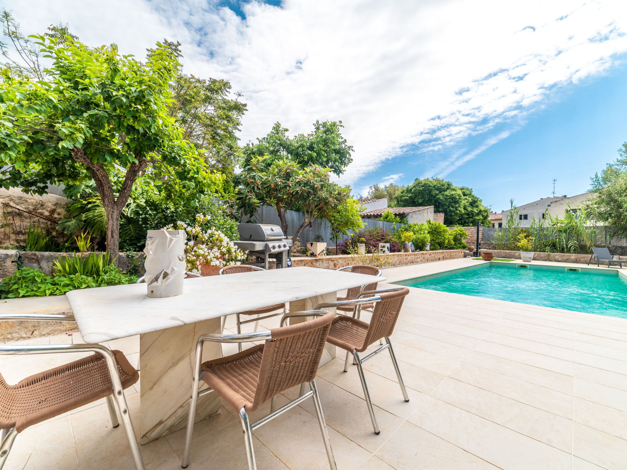 11-Zimmer-Reihenhaus 360 m2 auf 3 Stockwerken. Modern und geschmackvoll eingerichtet: Eingang. Wohnzimmer mit Klimaanlage und Warmluftheizung. Esszimmer mit Esstisch, Klimaanlage und Warmluftheizung. Ausgang zur Terrasse. 1 Zimmer mit 2 Betten (90 cm, Länge 200 cm), Klimaanlage und Warmluftheizung. Offene Küche (Backofen, Geschirrspüler, 3 Glaskeramikherd Platten, Toaster, Wasserkocher, Mikrowelle, elektrische Kaffeemaschine) mit kleinem Esstisch, Küchenblock. Ausgang zur Terrasse. Dusche/WC. Obergeschoss: Wohnzimmer mit Sat-TV und Digital-TV. 1 Zimmer mit 1 franz. Bett (1 x 140 cm, Länge 200 cm), Klimaanlage und Warmluftheizung. 1 Zimmer mit 1 Doppelbett (1 x 180 cm, Länge 200 cm), Klimaanlage und Warmluftheizung. Ausgang zum Balkon. 1 Zimmer mit 1 Doppelbett (1 x 180 cm, Länge 200 cm), Klimaanlage und Warmluftheizung. 1 Zimmer mit 1 Doppelbett (1 x 180 cm, Länge 200 cm), Klimaanlage und Warmluftheizung. 1 Zimmer mit 2 Betten (90 cm, Länge 200 cm), Klimaanlage und Warmluftheizung. 3 Duschen/WC. 2. Obergeschoss: 1 Zimmer mit 1 Doppelbett (1 x 180 cm, Länge 200 cm), Klimaanlage und Warmluftheizung. Wohnzimmer mit Sat-TV und Digital-TV. Dusche/WC. Grosse Terrasse 50 m2. Terrassenmöbel, Gartengrill (mobil), Liegestühle. Schöne Sicht auf die Berge und die Ortschaft. Zur Verfügung: Waschmaschine, Wäschetrockner, Kinderhochstuhl, Babybett bis 2 Jahre (extra), Haartrockner. Internet (Wireless LAN, gratis). Garage auf dem Grundstück (2 Autos). Bitte beachten: Nichtraucher-Haus. L12E11630