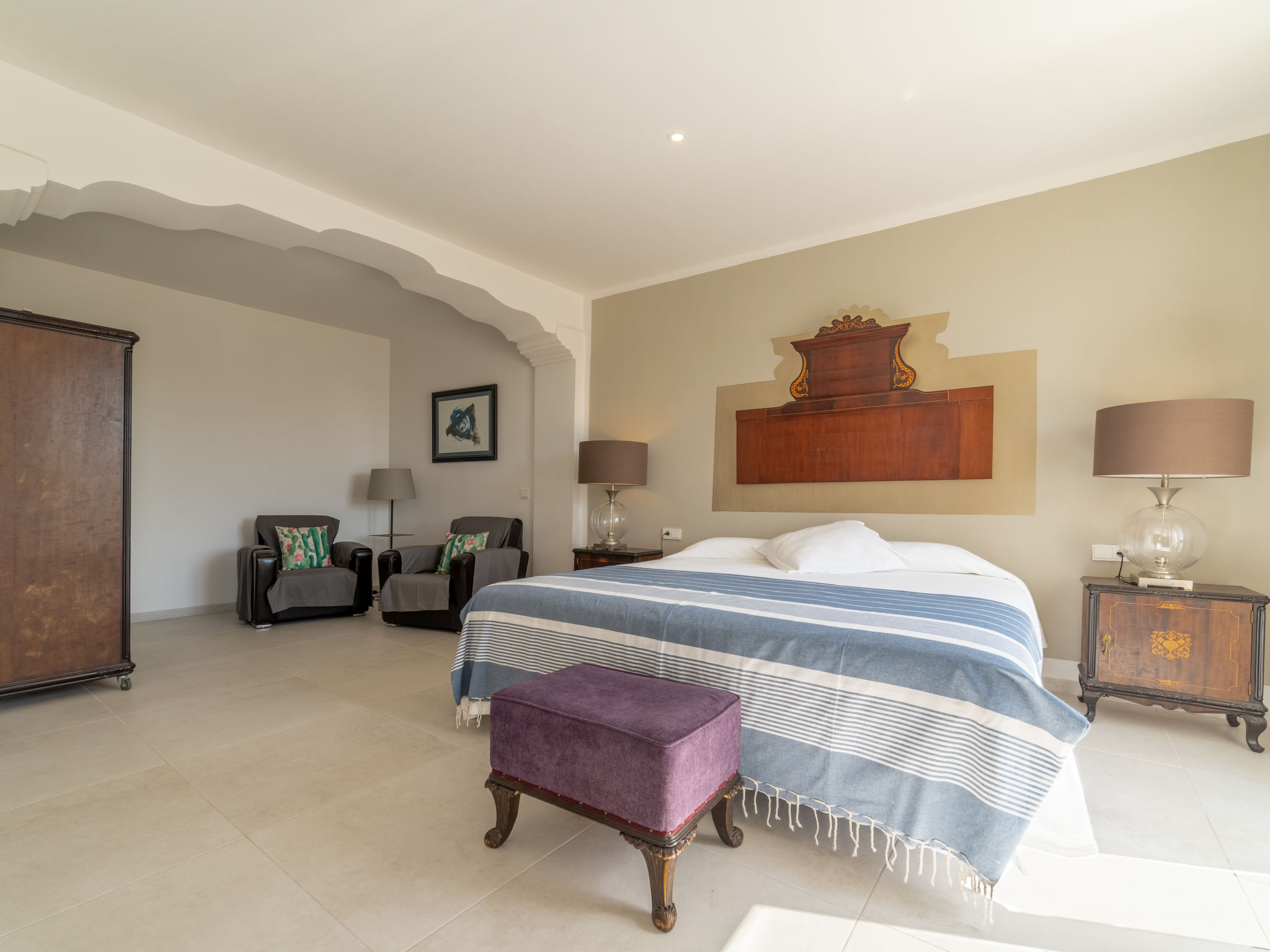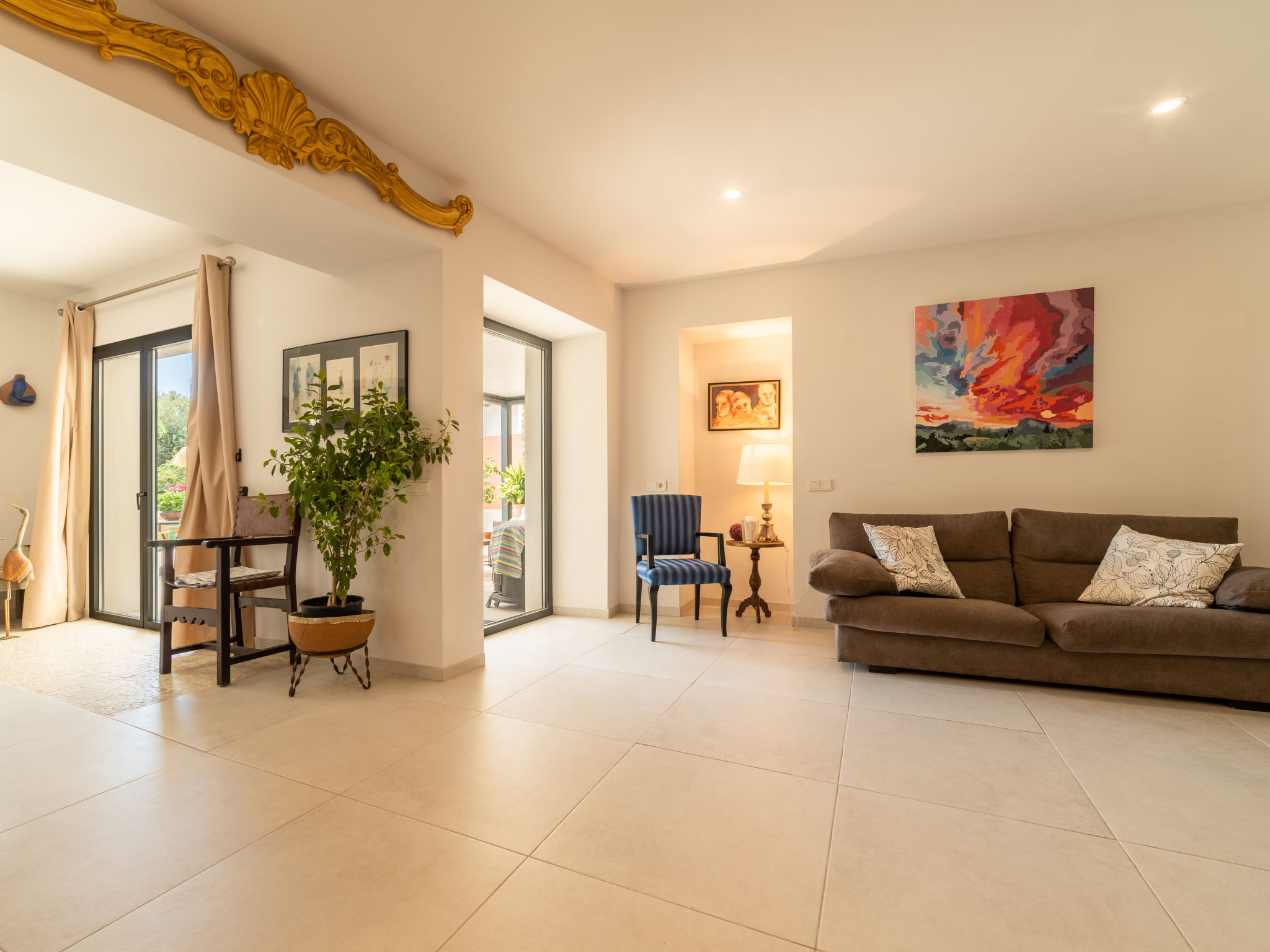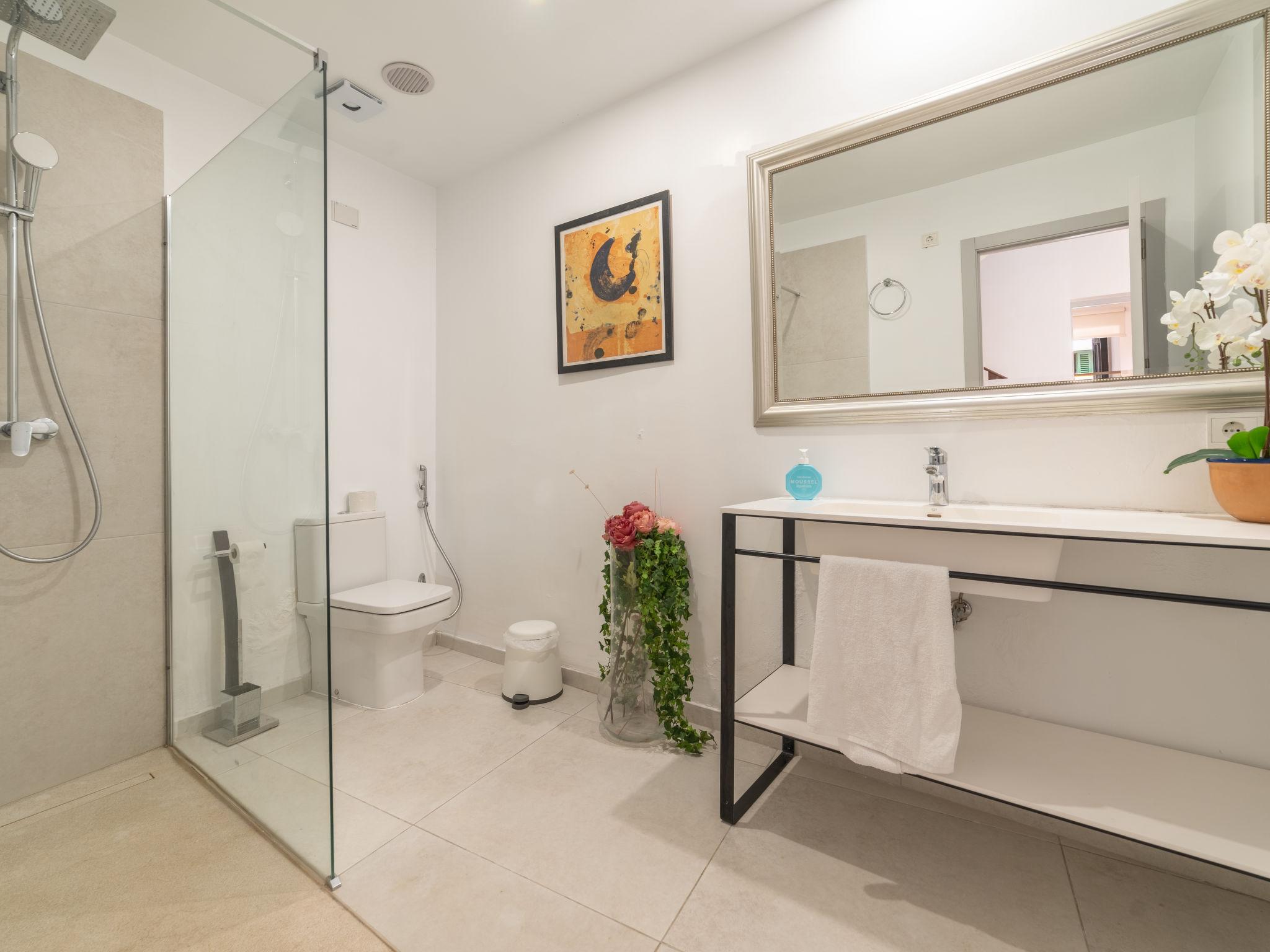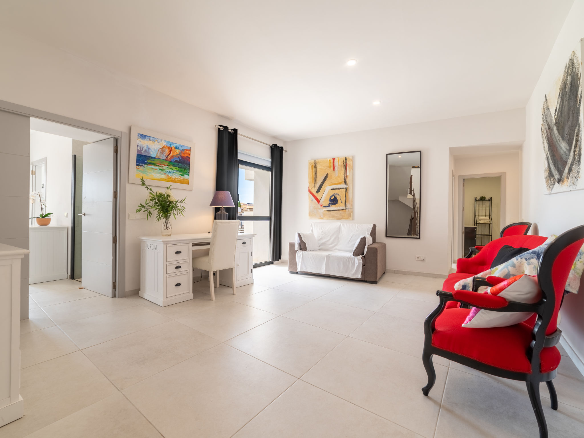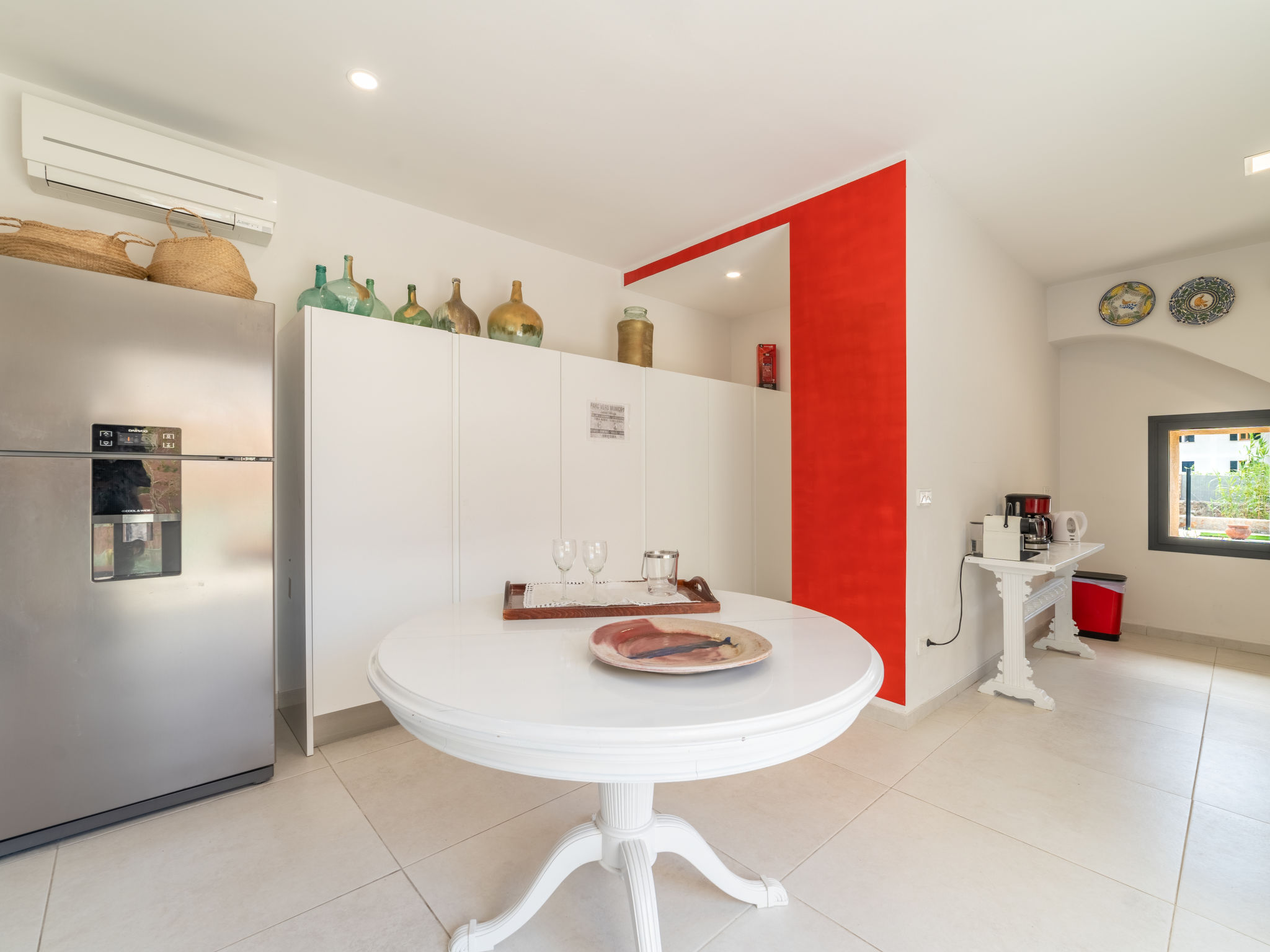 11-Zimmer-Reihenhaus 360 m2 auf 3 Stockwerken. Modern und geschmackvoll eingerichtet: Eingang. Wohnzimmer mit Klimaanlage und Warmluftheizung. Esszimmer mit Esstisch, Klimaanlage und Warmluftheizung. Ausgang zur Terrasse. 1 Zimmer mit 2 Betten (90 cm, Länge 200 cm), Klimaanlage und Warmluftheizung. Offene Küche (Backofen, Geschirrspüler, 3 Glaskeramikherd Platten, Toaster, Wasserkocher, Mikrowelle, elektrische Kaffeemaschine) mit kleinem Esstisch, Küchenblock. Ausgang zur Terrasse. Dusche/WC. Obergeschoss: Wohnzimmer mit Sat-TV und Digital-TV. 1 Zimmer mit 1 franz. Bett (1 x 140 cm, Länge 200 cm), Klimaanlage und Warmluftheizung. 1 Zimmer mit 1 Doppelbett (1 x 180 cm, Länge 200 cm), Klimaanlage und Warmluftheizung. Ausgang zum Balkon. 1 Zimmer mit 1 Doppelbett (1 x 180 cm, Länge 200 cm), Klimaanlage und Warmluftheizung. 1 Zimmer mit 1 Doppelbett (1 x 180 cm, Länge 200 cm), Klimaanlage und Warmluftheizung. 1 Zimmer mit 2 Betten (90 cm, Länge 200 cm), Klimaanlage und Warmluftheizung. 3 Duschen/WC. 2. Obergeschoss: 1 Zimmer mit 1 Doppelbett (1 x 180 cm, Länge 200 cm), Klimaanlage und Warmluftheizung. Wohnzimmer mit Sat-TV und Digital-TV. Dusche/WC. Grosse Terrasse 50 m2. Terrassenmöbel, Gartengrill (mobil), Liegestühle. Schöne Sicht auf die Berge und die Ortschaft. Zur Verfügung: Waschmaschine, Wäschetrockner, Kinderhochstuhl, Babybett bis 2 Jahre (extra), Haartrockner. Internet (Wireless LAN, gratis). Garage auf dem Grundstück (2 Autos). Bitte beachten: Nichtraucher-Haus. L12E11630