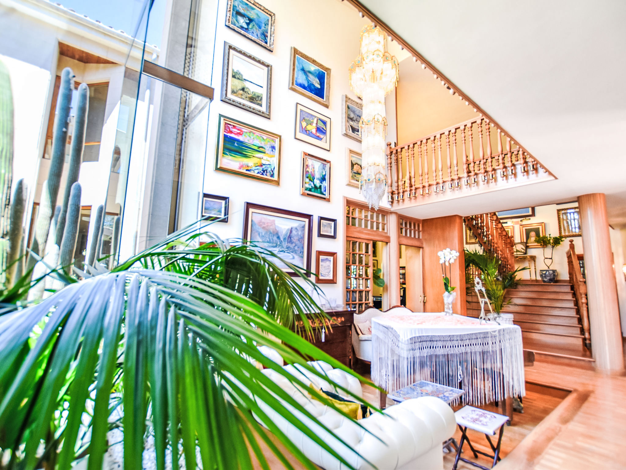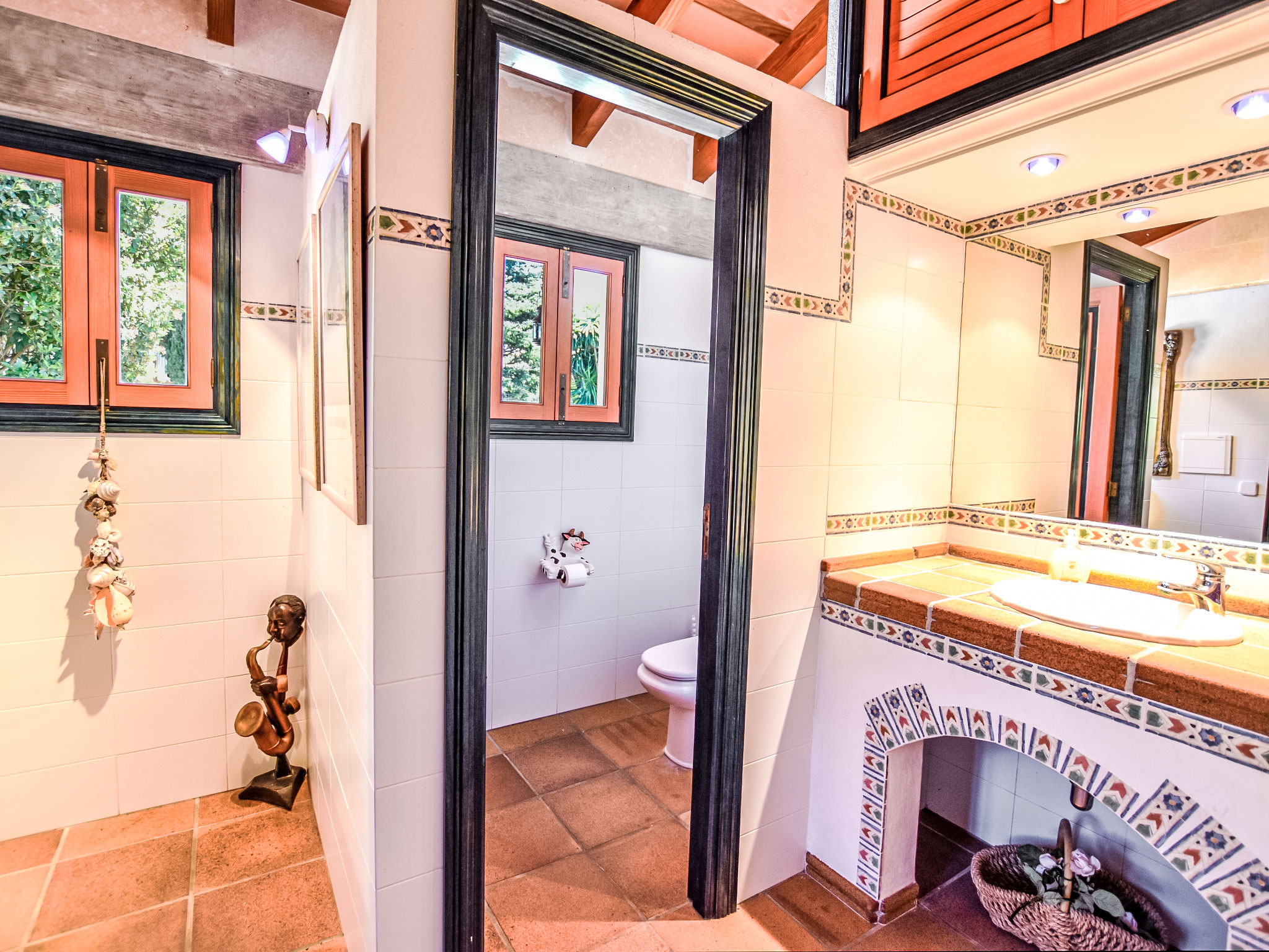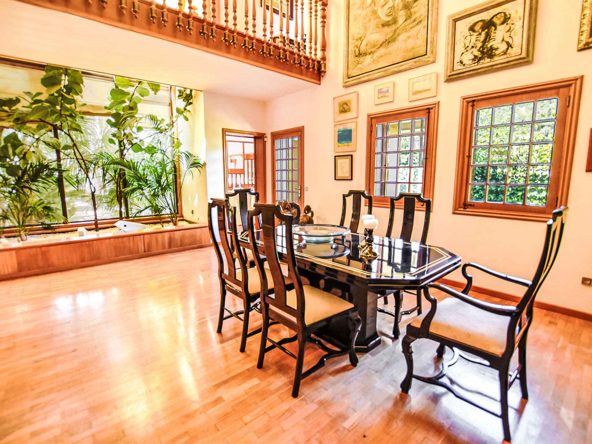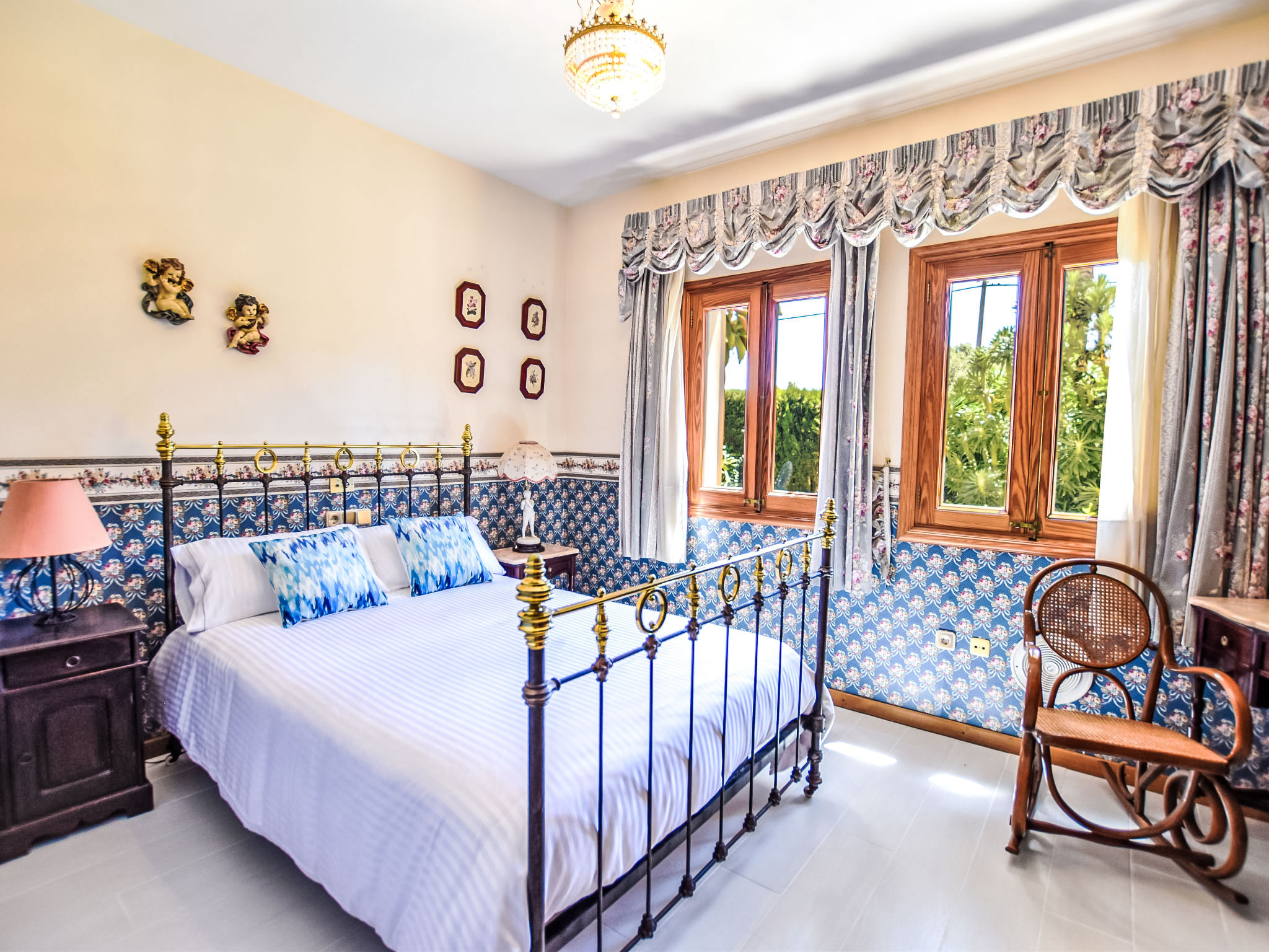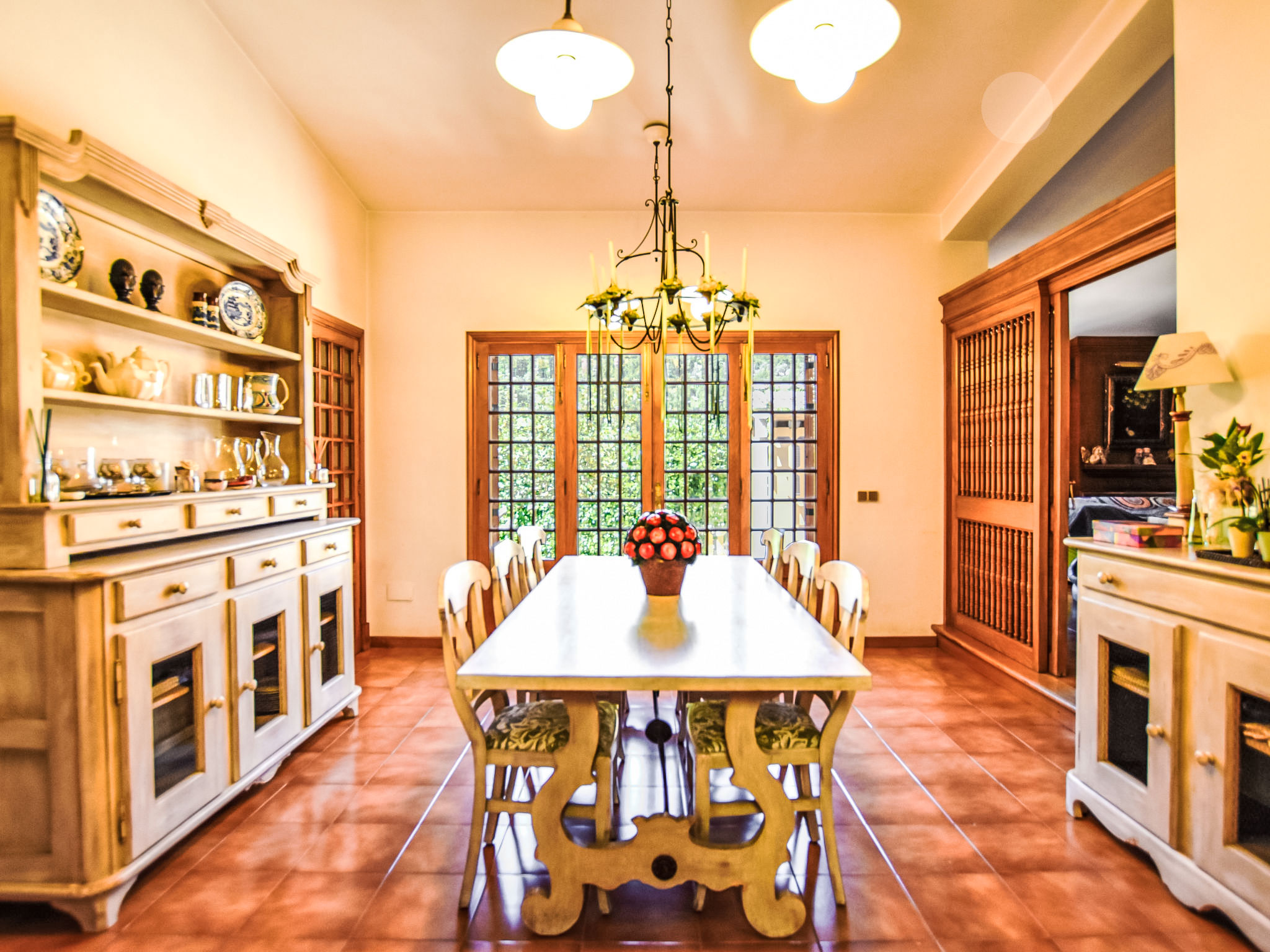 "Can Joan", 9-Zimmer-Villa 450 m2 auf 2 Stockwerken. Objekt geeignet für 10 Erwachsene. Geräumig und hell, sehr komfortabel und geschmackvoll eingerichtet: offenes grosses Wohnzimmer mit Schiebetür, Panoramafenster. Ausgang zum Garten. Grosses Esszimmer mit Esstisch. Grosses Wohnzimmer mit Schiebetür, Panoramafenster mit Esstisch, Sat-TV und Flachbildschirm. Ausgang zum Gartensitzplatz. Salon mit Panoramafenster mit Sat-TV, Klimaanlage und Warmluftheizung. 1 grosses Doppelzimmer mit Panoramafenster mit 1 franz. Bett. Wohnküche (Backofen, Geschirrspüler, 3 Glaskeramikherd Platten, Toaster, Wasserkocher, Mikrowelle, Tiefkühler, elektrische Kaffeemaschine) mit Esstisch, Klimaanlage und Warmluftheizung. Ausgang zur Terrasse. Bad/WC, Bad/Dusche/WC. Obergeschoss: 1 grosses Doppelzimmer mit Panoramafenster begehbarer Kleiderschrank mit 1 Doppelbett, Bad/Dusche/WC, TV, Flachbildschirm, Klimaanlage, Ventilator und Warmluftheizung. 2 grosse Doppelzimmer mit Panoramafenster, jedes Zimmer mit 1 franz. Bett, Klimaanlage und Warmluftheizung. 1 Doppelzimmer mit Panoramafenster mit 2 Betten (90 cm), Klimaanlage und Warmluftheizung. Bad/Dusche/WC, Doppelwaschbecken mit Eckbadewanne. Komfortable Einrichtung im Landhausstil. Grosser Gartensitzplatz, Rasen. Terrassenmöbel, Gartengrill, Liegestühle (6), Loggia. Sicht auf die Berge und die Ortschaft. Zur Verfügung: Waschmaschine, Wäschetrockner, Bügeleisen, Haartrockner. Internet (Wireless LAN, gratis). Geeignet für Familien. L12E10792