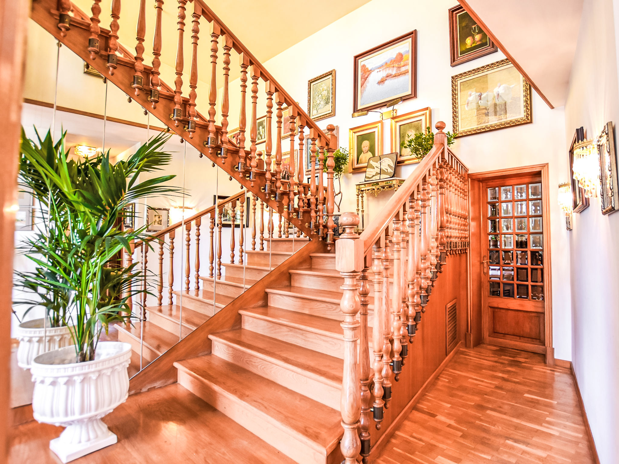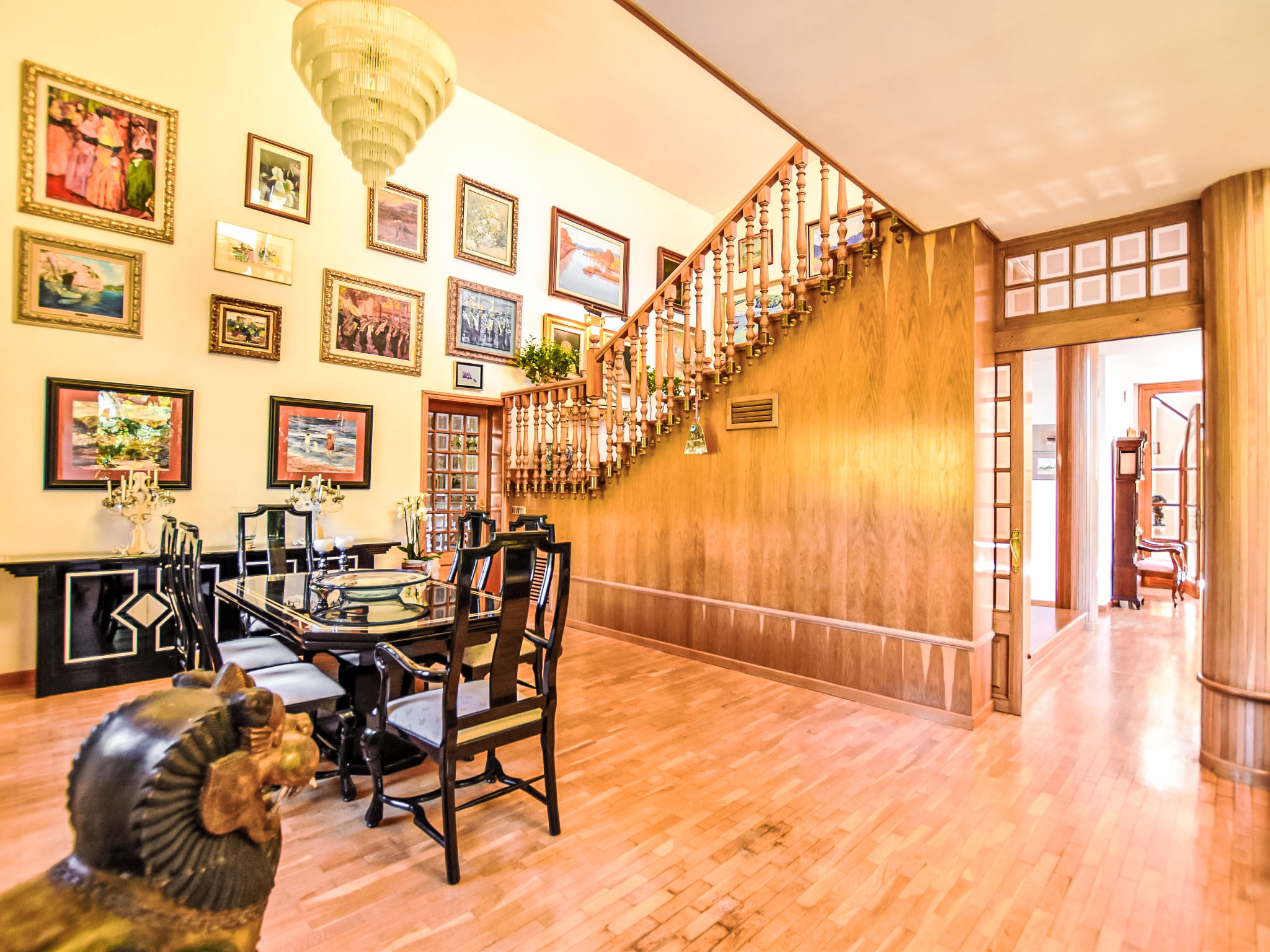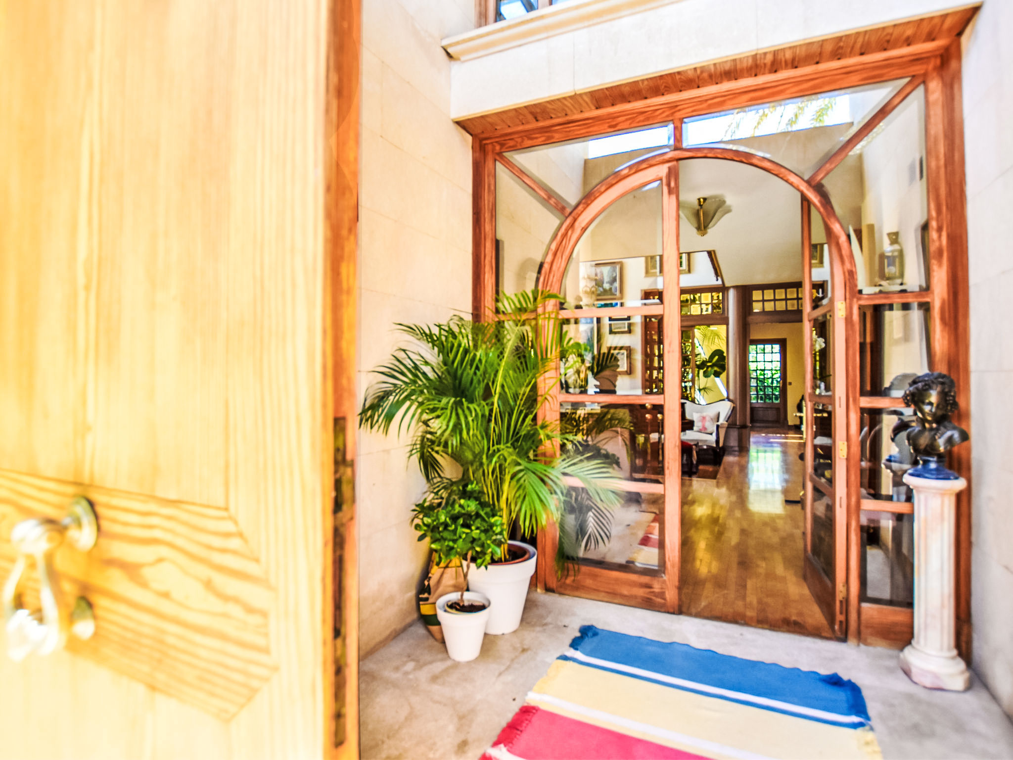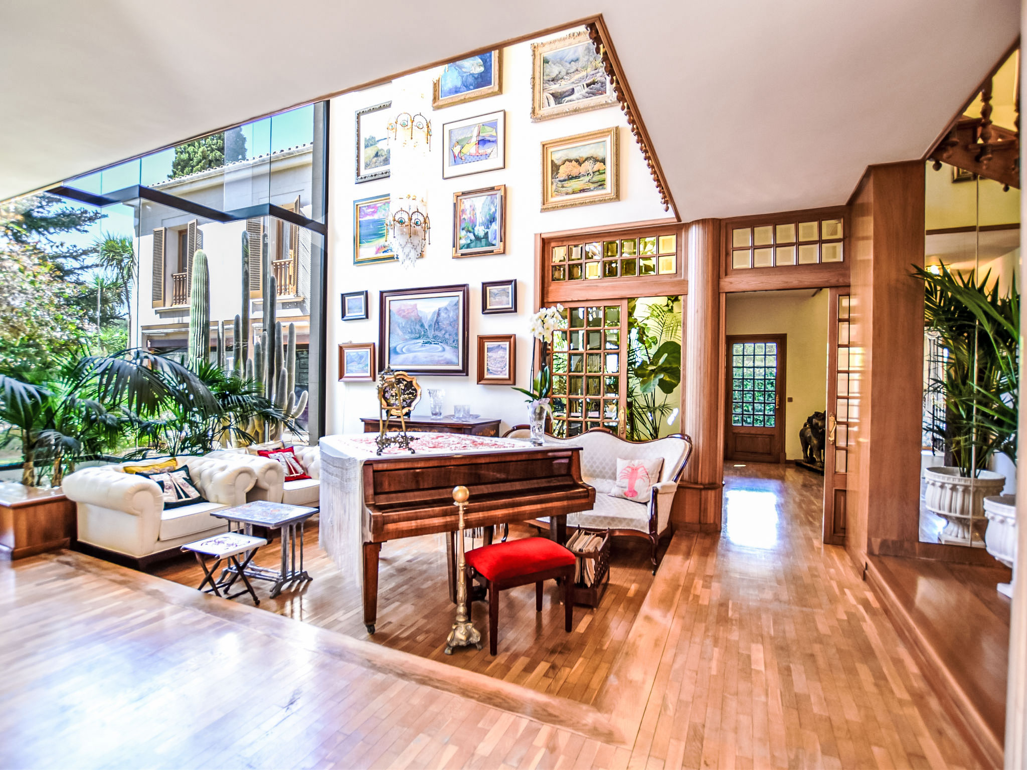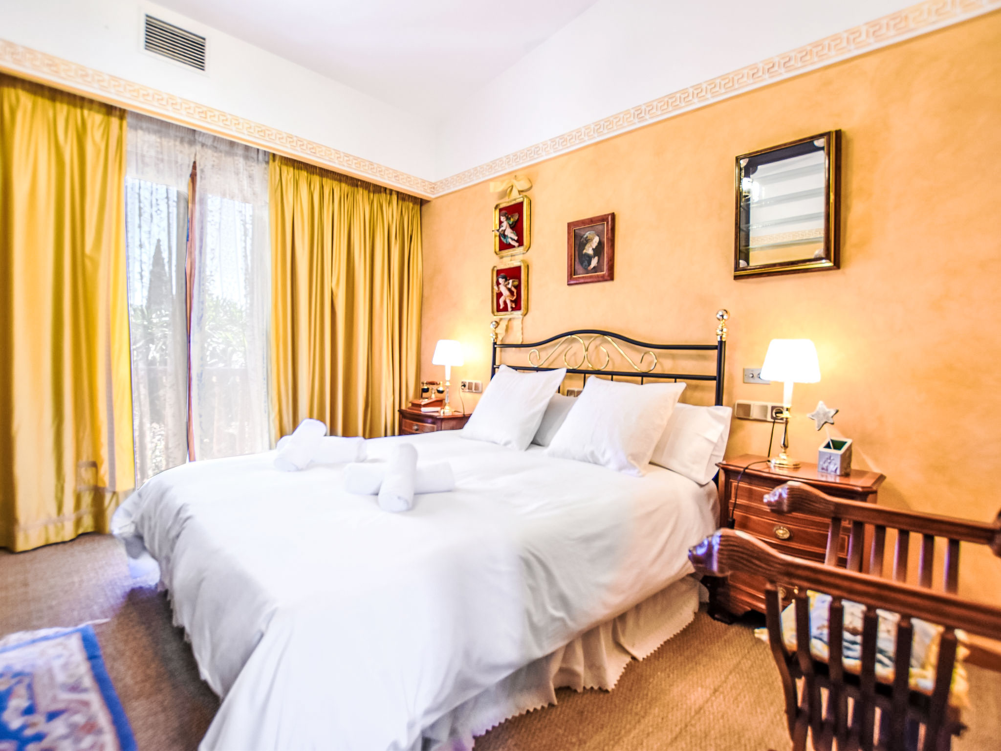 "Can Joan", 9-Zimmer-Villa 450 m2 auf 2 Stockwerken. Objekt geeignet für 10 Erwachsene. Geräumig und hell, sehr komfortabel und geschmackvoll eingerichtet: offenes grosses Wohnzimmer mit Schiebetür, Panoramafenster. Ausgang zum Garten. Grosses Esszimmer mit Esstisch. Grosses Wohnzimmer mit Schiebetür, Panoramafenster mit Esstisch, Sat-TV und Flachbildschirm. Ausgang zum Gartensitzplatz. Salon mit Panoramafenster mit Sat-TV, Klimaanlage und Warmluftheizung. 1 grosses Doppelzimmer mit Panoramafenster mit 1 franz. Bett. Wohnküche (Backofen, Geschirrspüler, 3 Glaskeramikherd Platten, Toaster, Wasserkocher, Mikrowelle, Tiefkühler, elektrische Kaffeemaschine) mit Esstisch, Klimaanlage und Warmluftheizung. Ausgang zur Terrasse. Bad/WC, Bad/Dusche/WC. Obergeschoss: 1 grosses Doppelzimmer mit Panoramafenster begehbarer Kleiderschrank mit 1 Doppelbett, Bad/Dusche/WC, TV, Flachbildschirm, Klimaanlage, Ventilator und Warmluftheizung. 2 grosse Doppelzimmer mit Panoramafenster, jedes Zimmer mit 1 franz. Bett, Klimaanlage und Warmluftheizung. 1 Doppelzimmer mit Panoramafenster mit 2 Betten (90 cm), Klimaanlage und Warmluftheizung. Bad/Dusche/WC, Doppelwaschbecken mit Eckbadewanne. Komfortable Einrichtung im Landhausstil. Grosser Gartensitzplatz, Rasen. Terrassenmöbel, Gartengrill, Liegestühle (6), Loggia. Sicht auf die Berge und die Ortschaft. Zur Verfügung: Waschmaschine, Wäschetrockner, Bügeleisen, Haartrockner. Internet (Wireless LAN, gratis). Geeignet für Familien. L12E10792