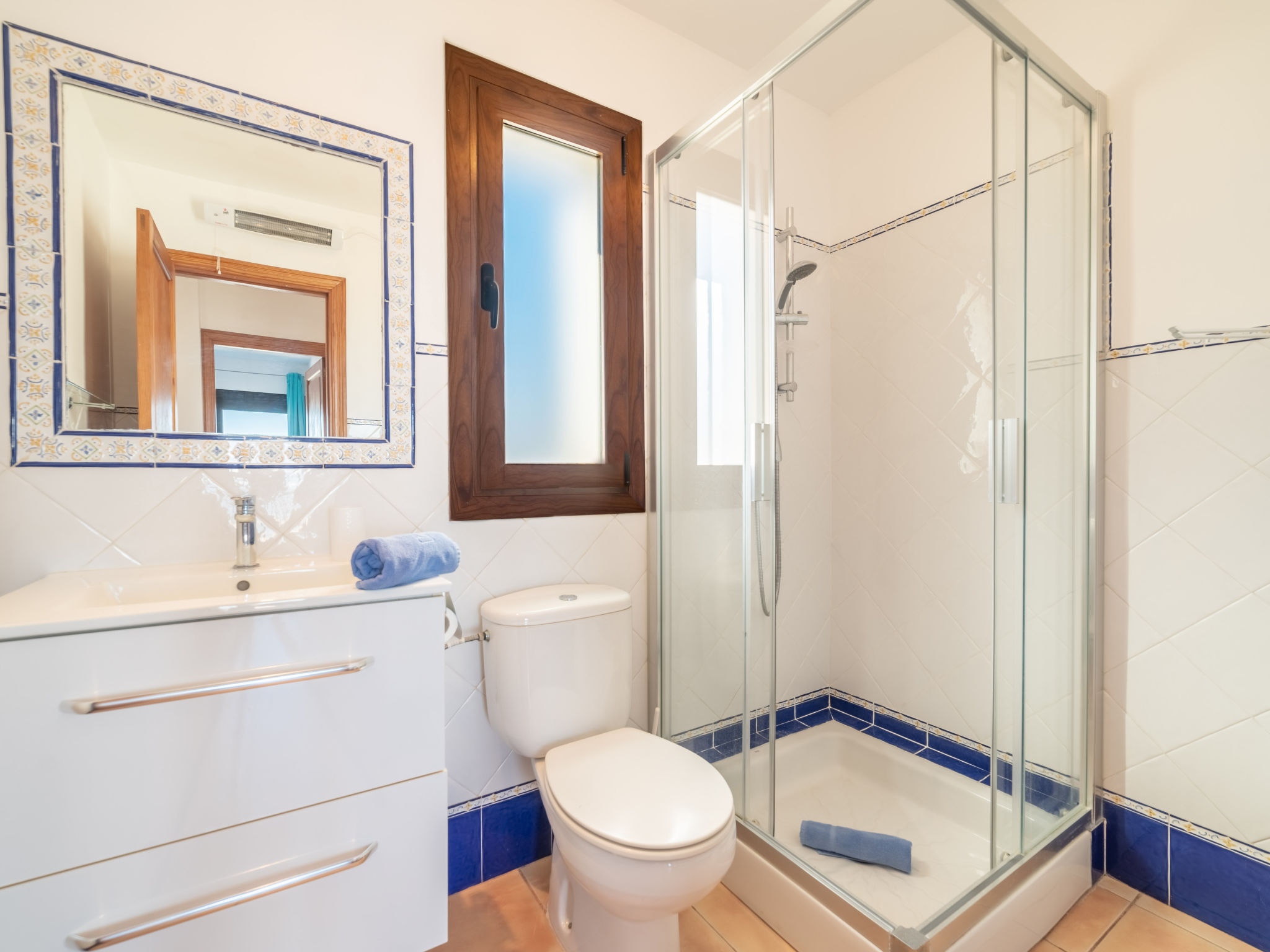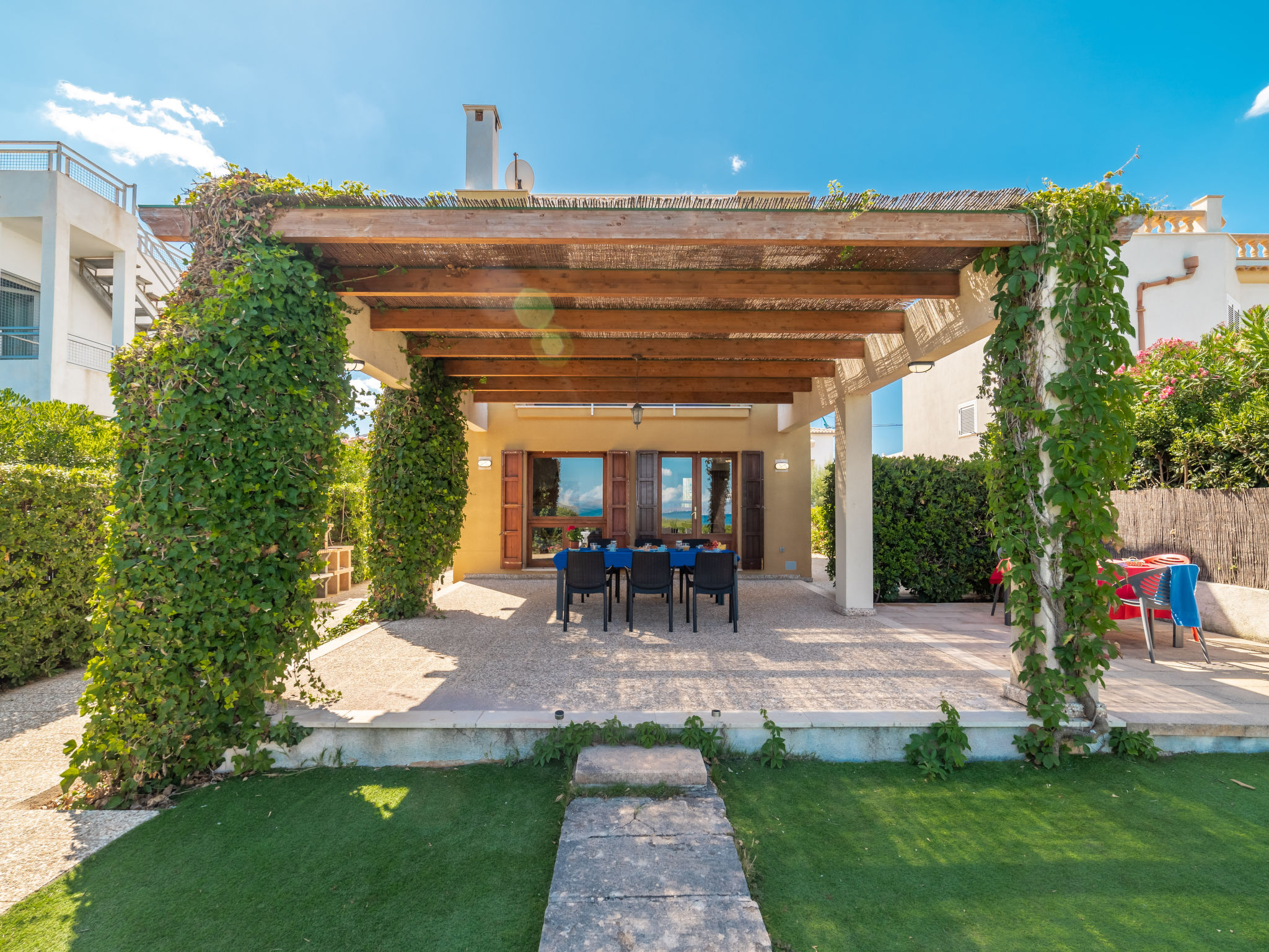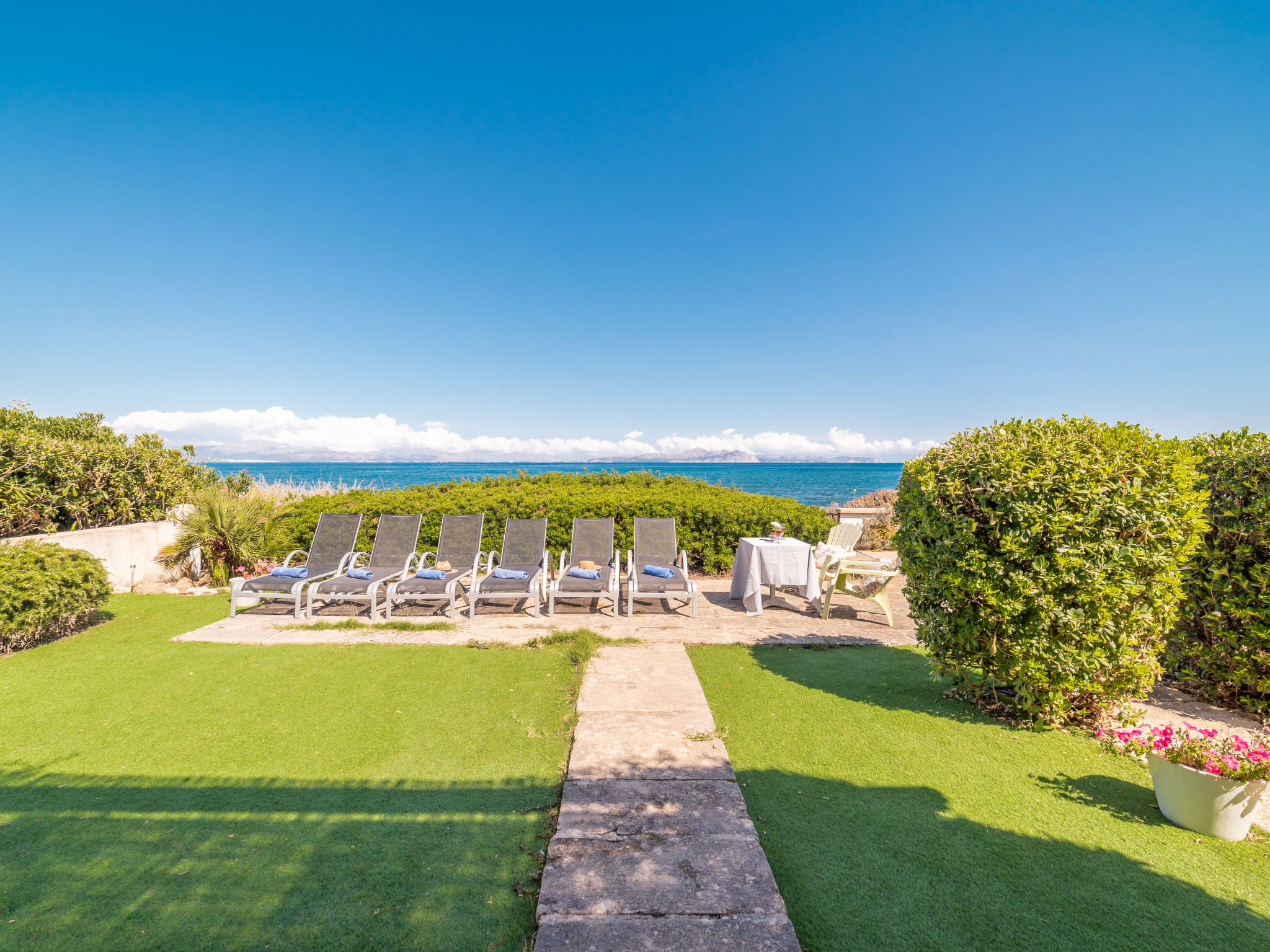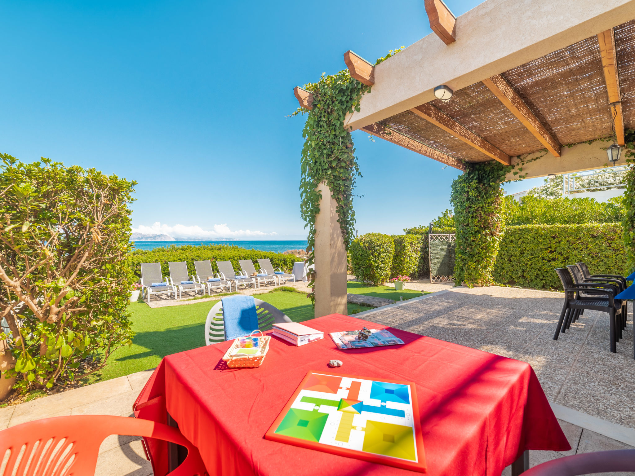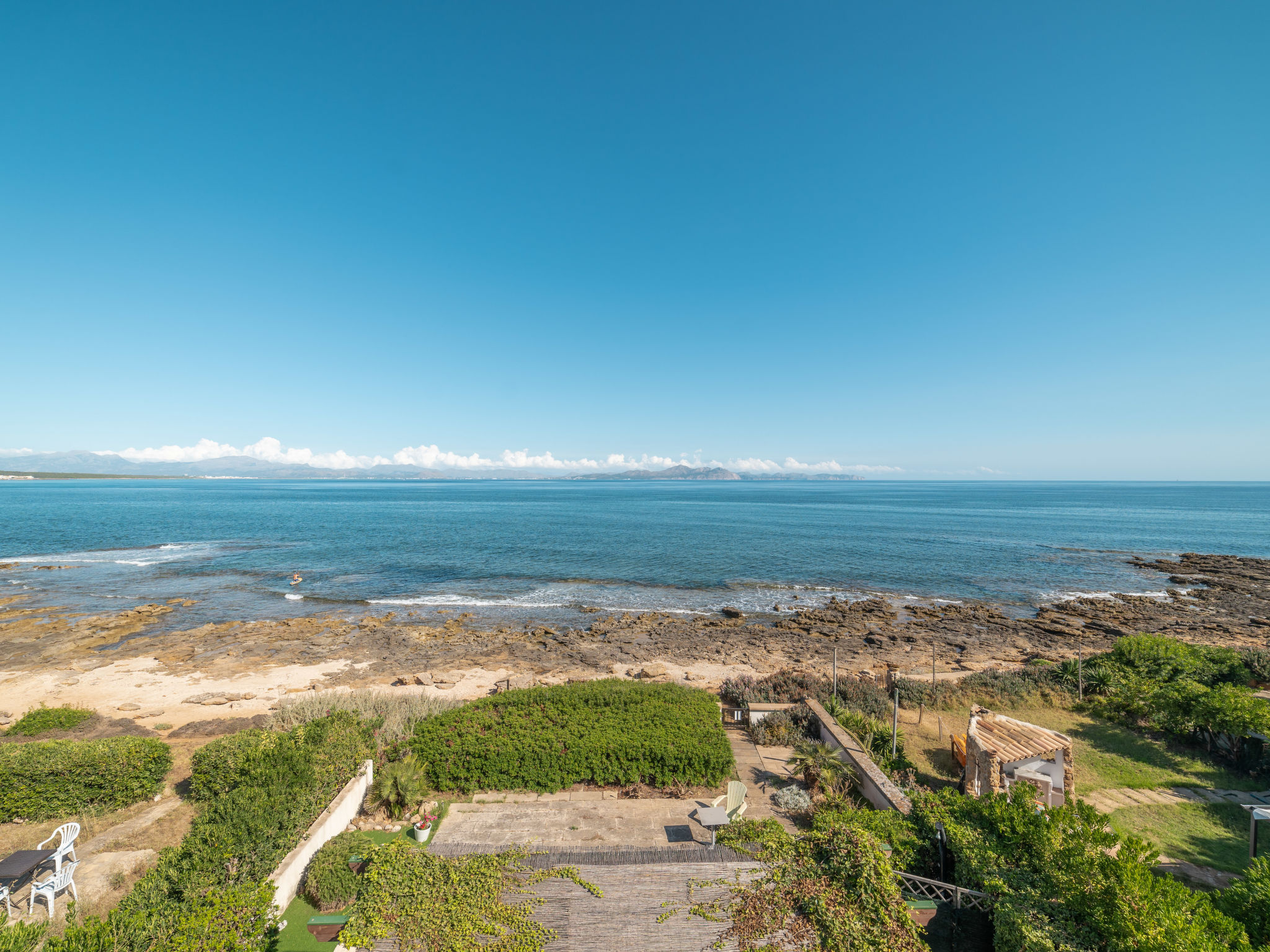 "Ran de Mar", 4-Zimmer-Haus 120 m2 auf 3 Stockwerken. Objekt geeignet für 6 Erwachsene. Geräumig und hell, sehr zweckmässig und gemütlich eingerichtet: Wohn-/Esszimmer mit Panoramafenster mit Digital-TV, Internationale TV-Sender, Holzofen, Klimaanlage und Warmluftheizung. Ausgang zum Gartensitzplatz. Offene Küche (Backofen, Geschirrspüler, 3 Glaskeramikherd Platten, Toaster, Wasserkocher, Mikrowelle, Tiefkühler, elektrische Kaffeemaschine) mit Bar. Dusche/WC. Obergeschoss: 1 grosses Doppelzimmer mit Schiebetür begehbarer Kleiderschrank mit 1 franz. Bett (180 cm, Länge 200 cm), Klimaanlage und Warmluftheizung. Ausgang zum Balkon. 1 Doppelzimmer mit Schiebetür mit 2 Betten (90 cm, Länge 190 cm), Klimaanlage und Warmluftheizung. Ausgang zum Balkon. Dusche/WC. 2. Obergeschoss: 1 abgeschrägtes grosses Doppelzimmer mit Schiebetür, Panoramafenster mit 2 Betten (90 cm, Länge 190 cm), Klimaanlage und Warmluftheizung. Ausgang zur Terrasse. Balkon, Terrasse, grosser Gartensitzplatz, Rasen, Laube. Terrassenmöbel, Balkonmöbel, Gartengrill, Liegestühle, Loggia. Herrliche Panoramasicht auf das Meer, die Berge und die Bucht. Zur Verfügung: Waschmaschine, Bügeleisen, Kinderhochstuhl, Babybett, Haartrockner. Internet (Wireless LAN, gratis). Geeignet für Familien. ETV1056