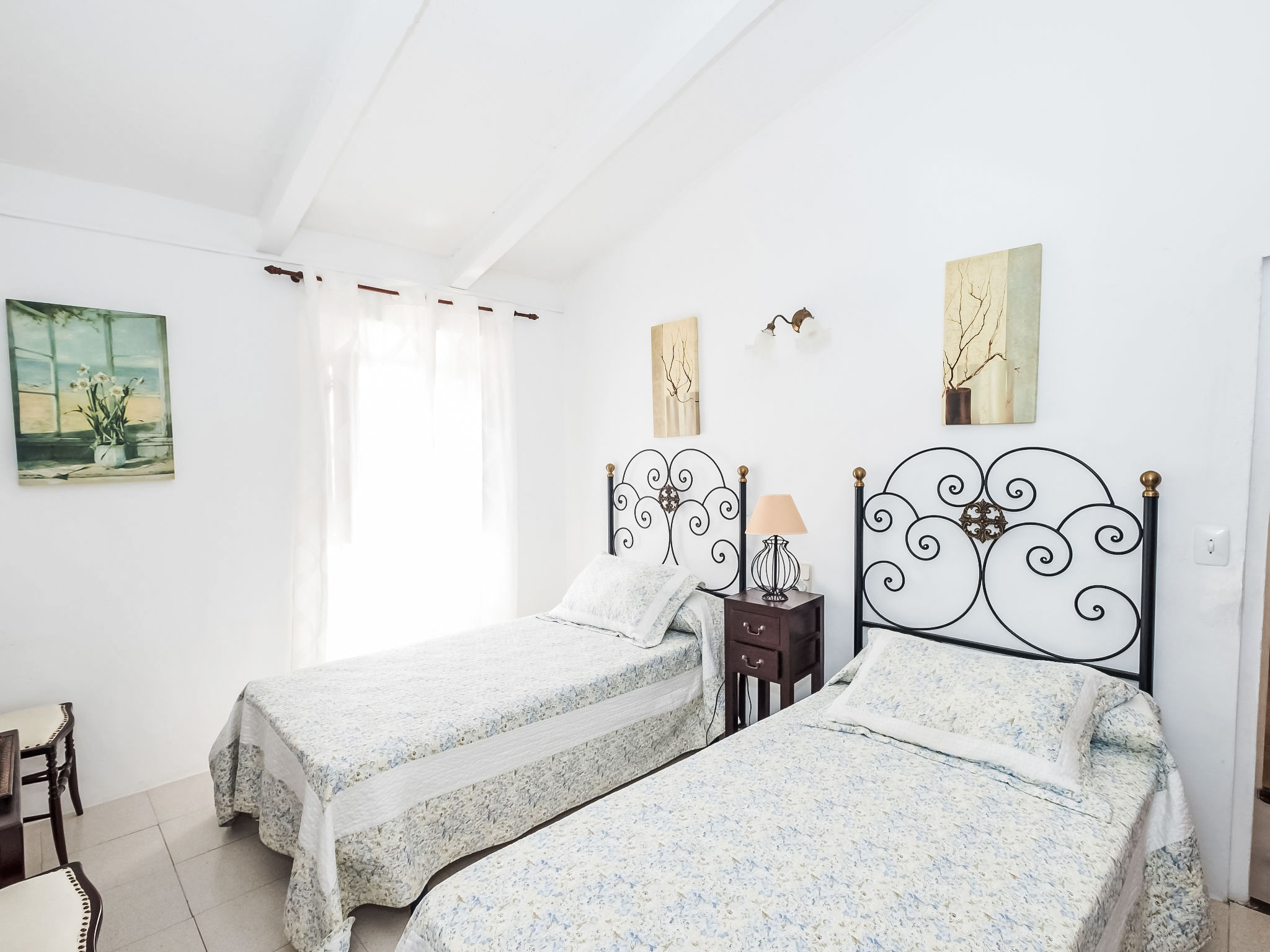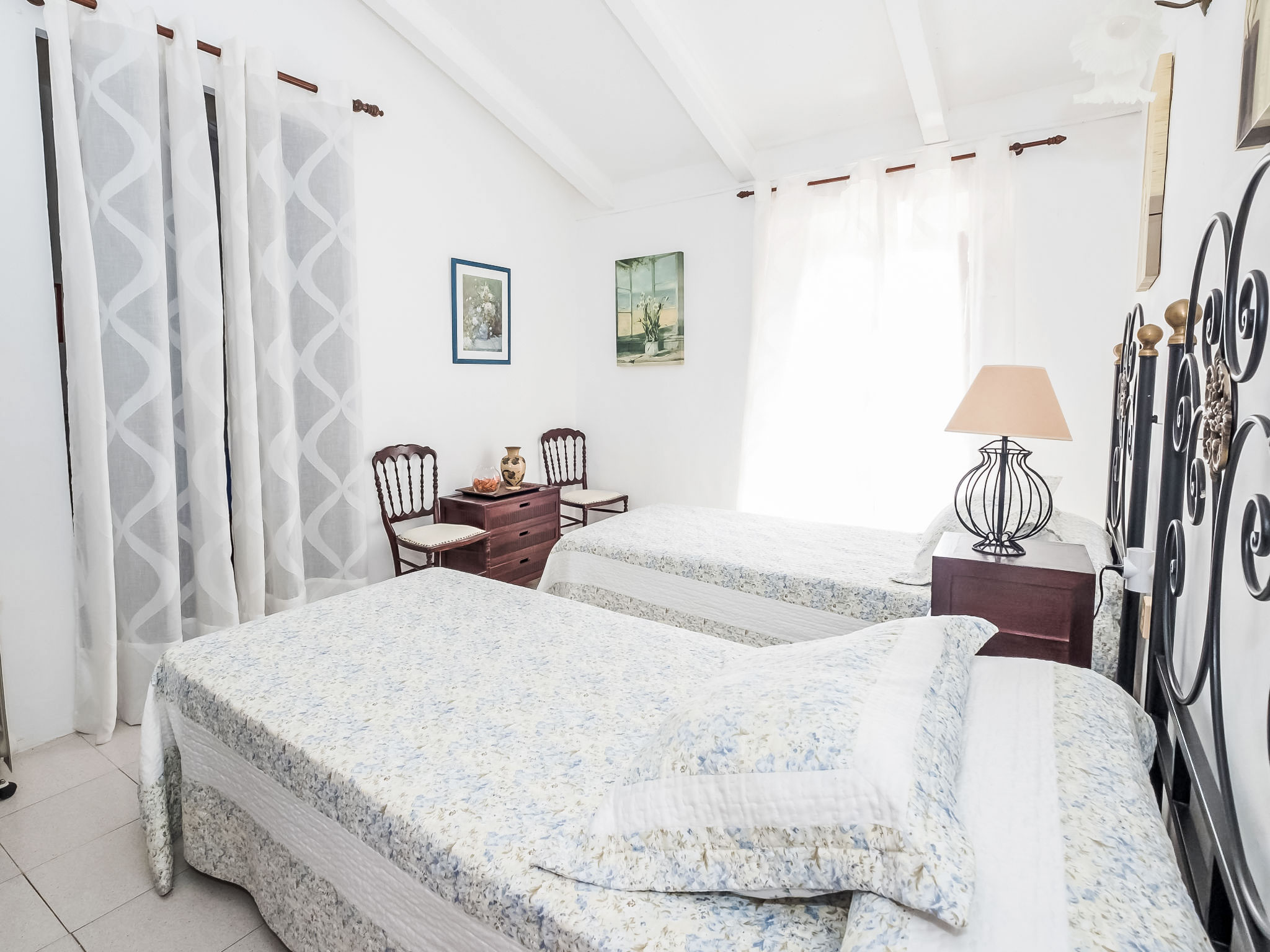 "Can Tiona", 3-Zimmer-Haus 100 m2 auf 2 Stockwerken. Objekt geeignet für 4 Erwachsene. Zweckmässig und gemütlich eingerichtet: Wohn-/Esszimmer mit Esstisch, Sat-TV und Stereoanlage. Küche (5 Kochplatten, Backofen, Mikrowelle, Tiefkühler) mit Esstisch, Radio. Ausgang zur Terrasse. Bad/WC. Obergeschoss: 1 Zimmer mit 2 Betten. 1 Zimmer mit 1 franz. Bett. Gartensitzplatz. Terrassenmöbel. Schöne Sicht auf die Berge. Zur Verfügung: Babybett, Haartrockner. Internet (Wireless LAN, gratis). Geeignet für Familien. Maximal 1 Haustier/Hund erlaubt. E-Heizkörper und Ventilatoren in sämtlichen Räumen. Ein kleiner Elektrogrill kann nur im Inneren des Hauses verwendet werden. 1373