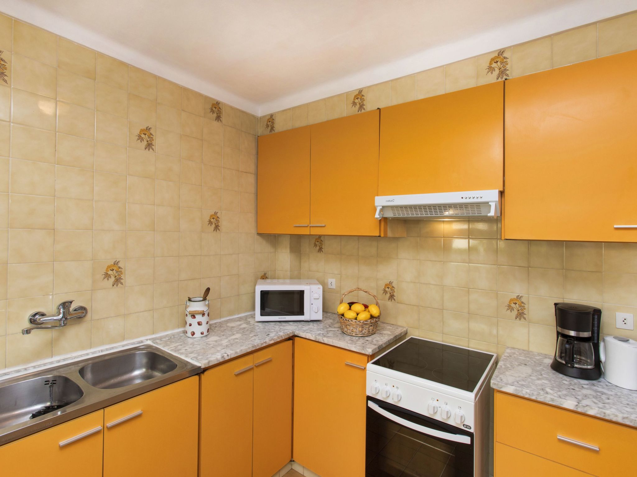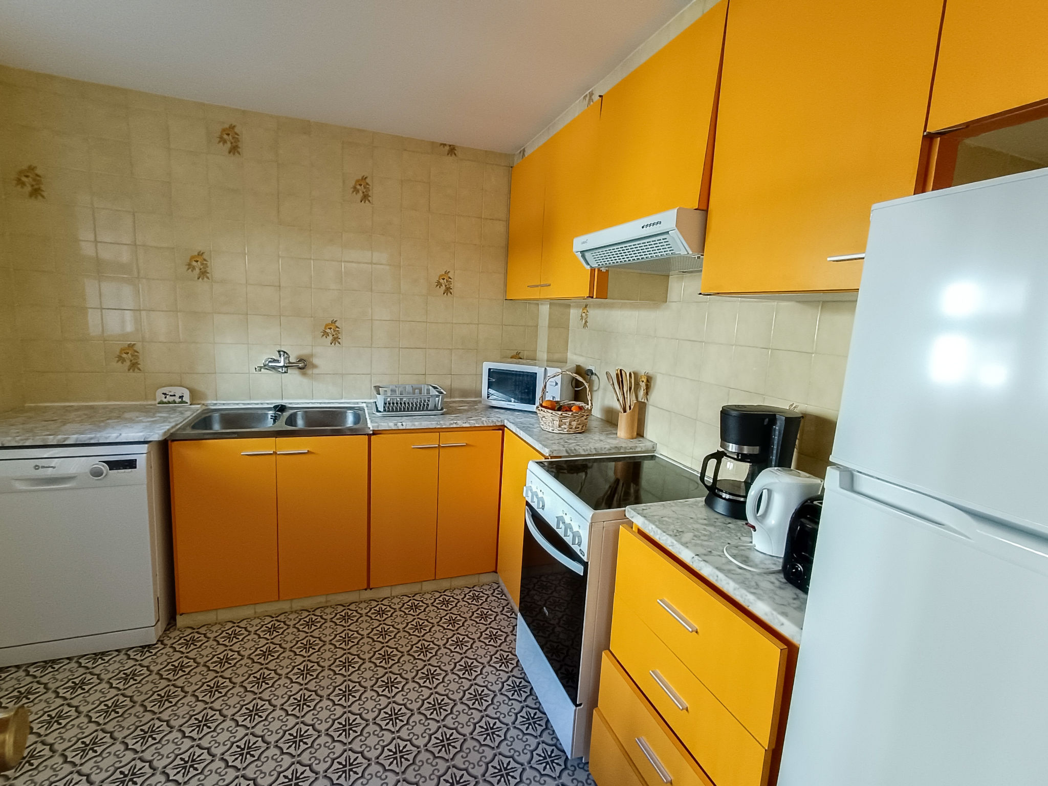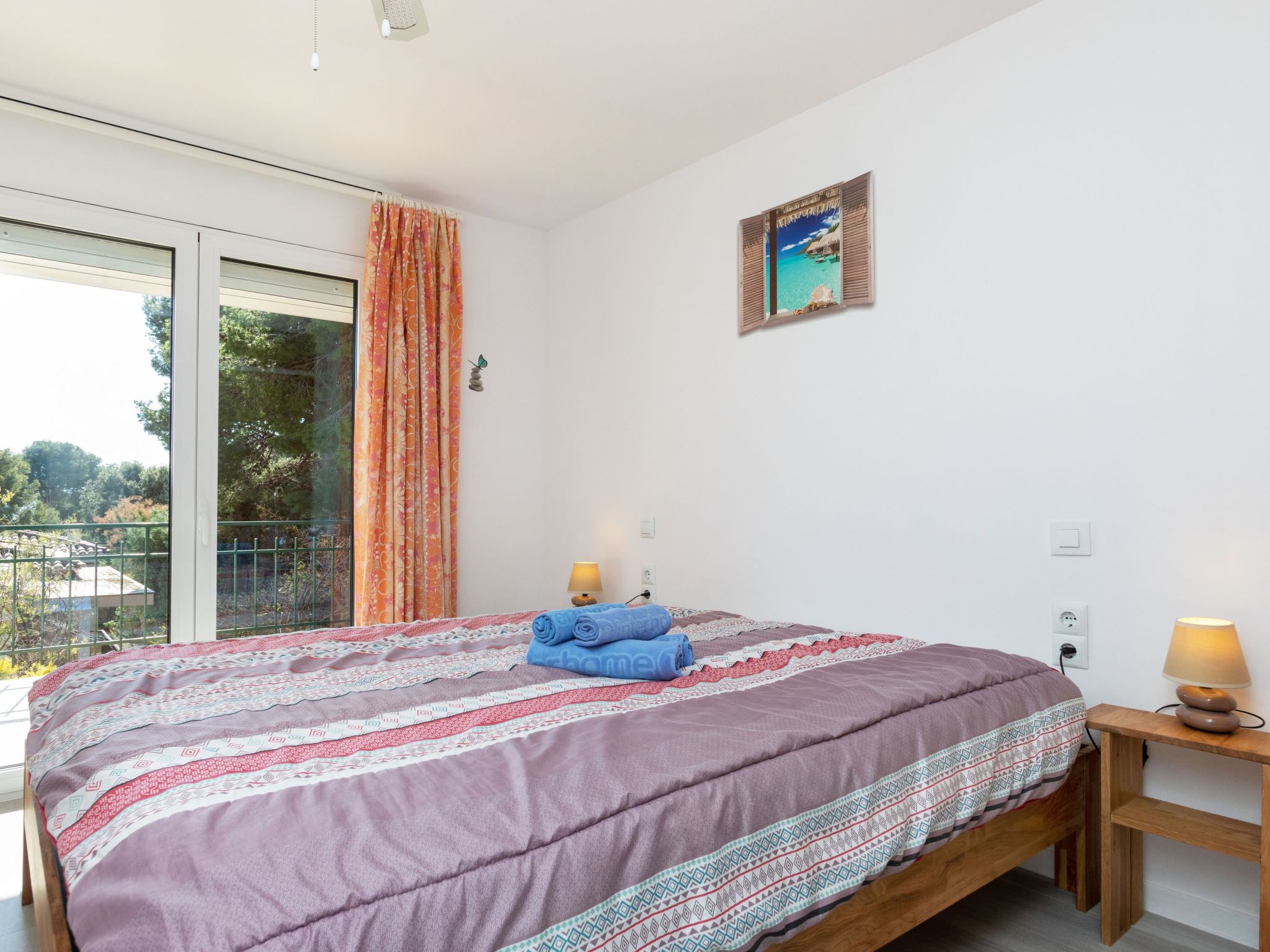 "Moré III", 3-Zimmer-Wohnung 60 m2 im 1. Stock, Südostlage. Zweckmässig und gemütlich eingerichtet: Wohn-/Esszimmer mit Esstisch, Sat-TV, Flachbildschirm und Klimaanlage. Ausgang zur Terrasse. 1 Zimmer mit 1 franz. Bett (1 x 140 cm), E-Heizofen. Ausgang zur Terrasse. 1 Zimmer mit 2 Betten (90 cm). Küche (Backofen, Geschirrspüler, 4 Glaskeramikherd Platten, Toaster, Wasserkocher, Mikrowelle, elektrische Kaffeemaschine). Bad/WC, Dusche/WC. Terrasse. Terrassenmöbel. Sicht auf das Meer und die Berge. Zur Verfügung: Waschmaschine, Bügeleisen. 1 Haustier/Hund erlaubt. HUTG032544