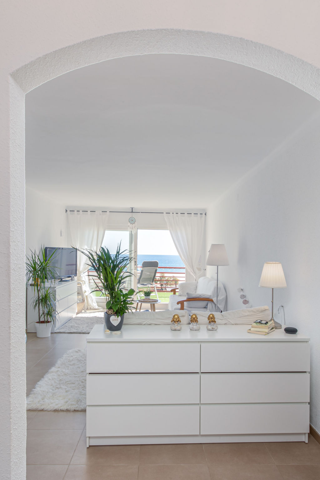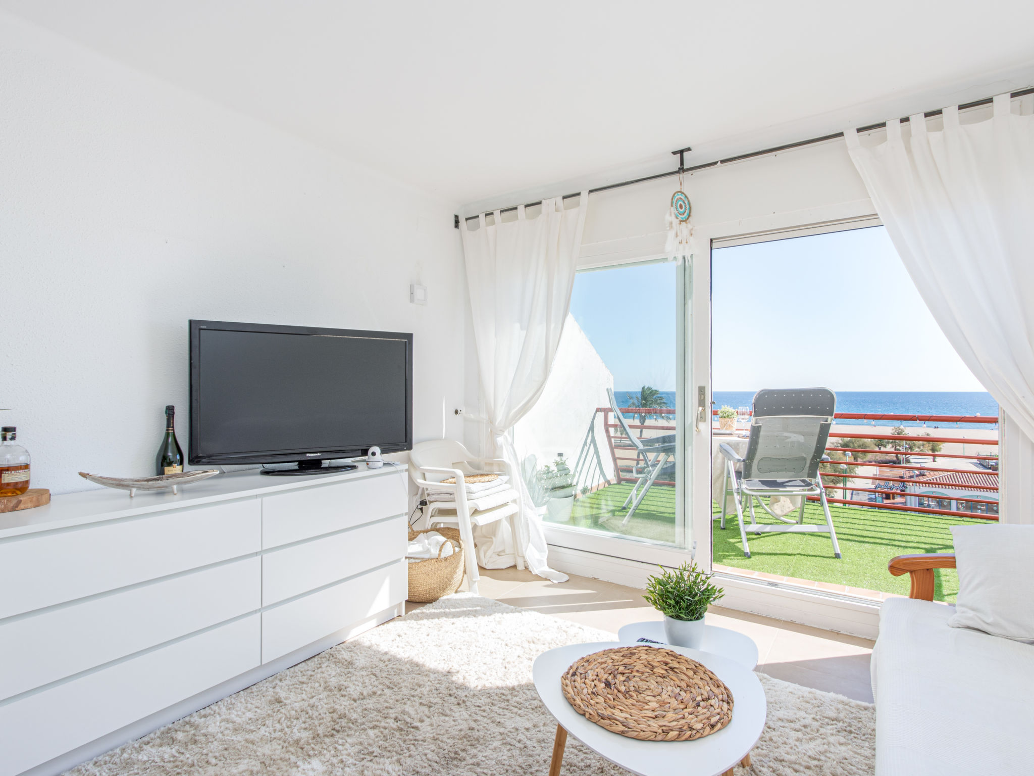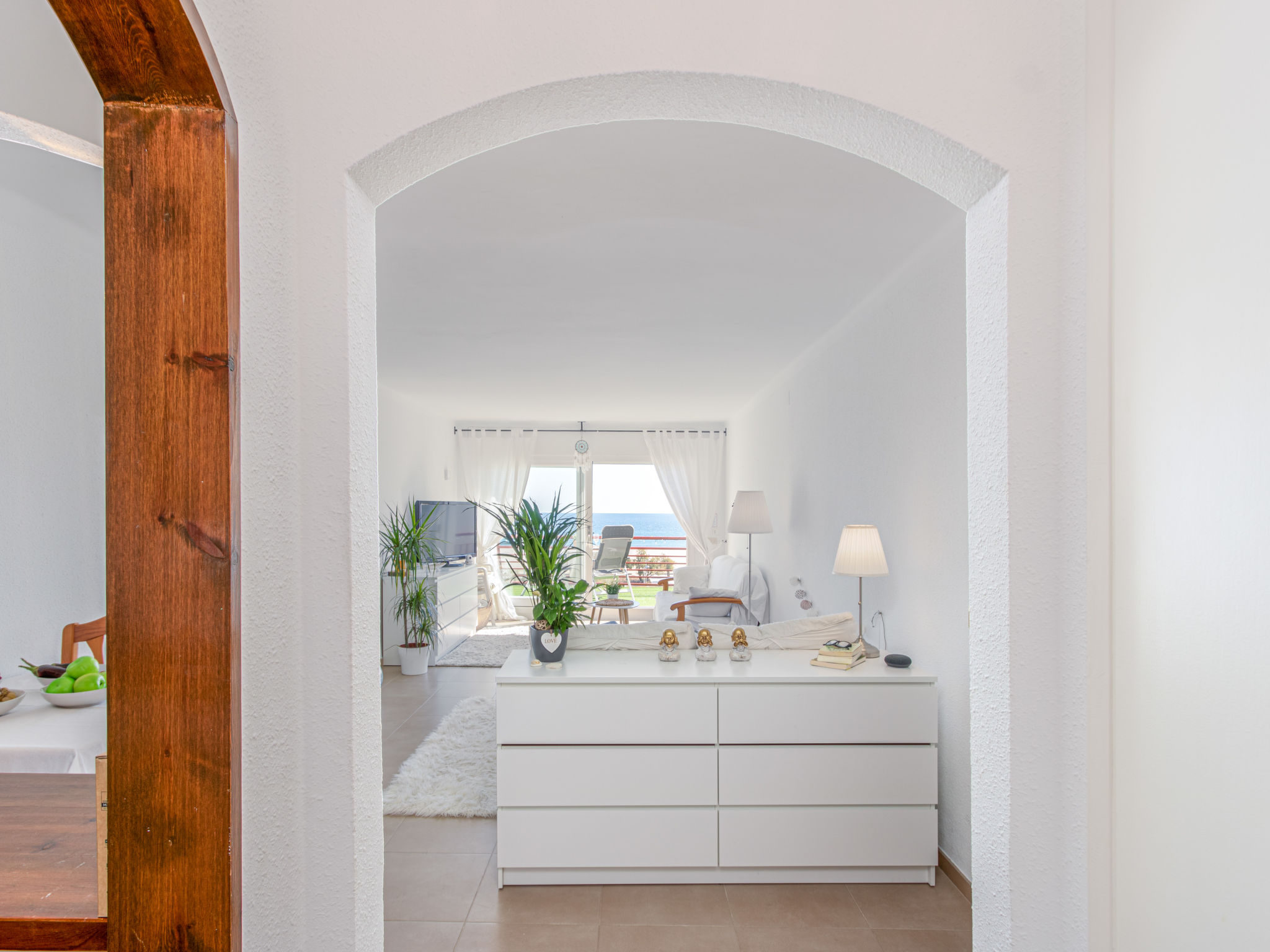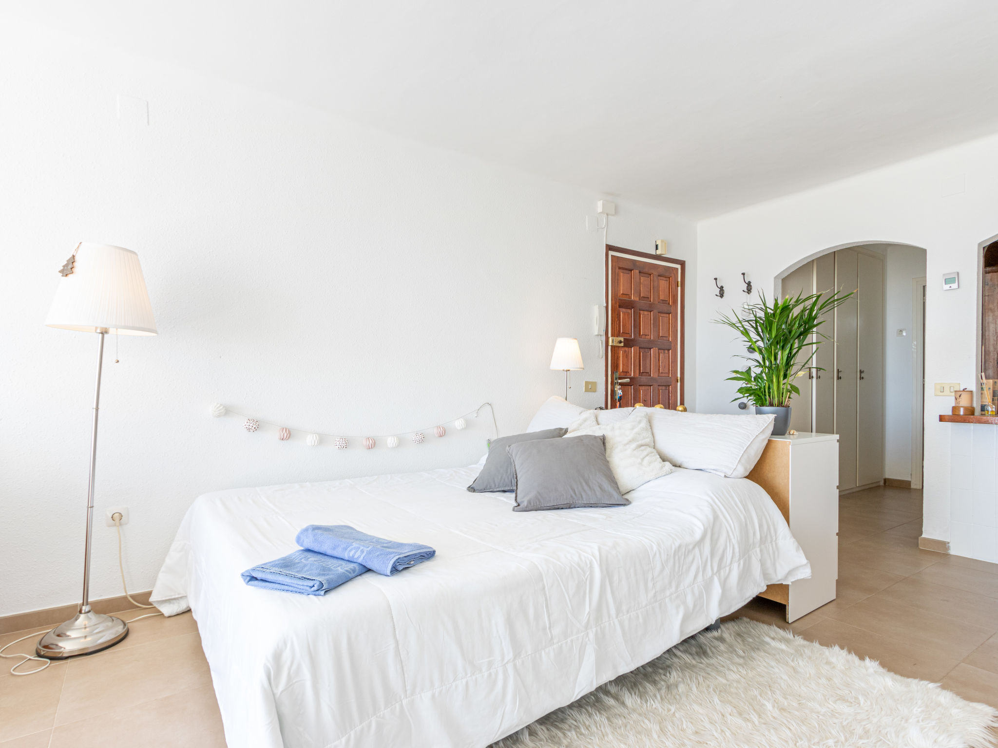 1-Zimmer-Studio 40 m2, Südostlage. Hell, zweckmässig eingerichtet: Wohn-/Schlafzimmer mit 1 franz. Bett (140 cm, Länge 190 cm), Esstisch und Ventilator. Ausgang zum Balkon, Richtung Süden und Richtung Osten. Kleine Küche (2 Kochplatten, Toaster, Wasserkocher, Mikrowelle, elektrische Kaffeemaschine). Dusche/WC. Terrasse 8 m2. Terrassenmöbel. Panoramasicht auf das Meer. Zur Verfügung: Waschmaschine, Bügeleisen, Haartrockner. Internet (Wireless LAN, gratis). Bitte beachten: Kühlschrank ohne Gefrierfach, Nichtraucher-Unterkunft. 1 kleines Haustier/Hund erlaubt. TV nur DE, ES, FR. HUTG018788