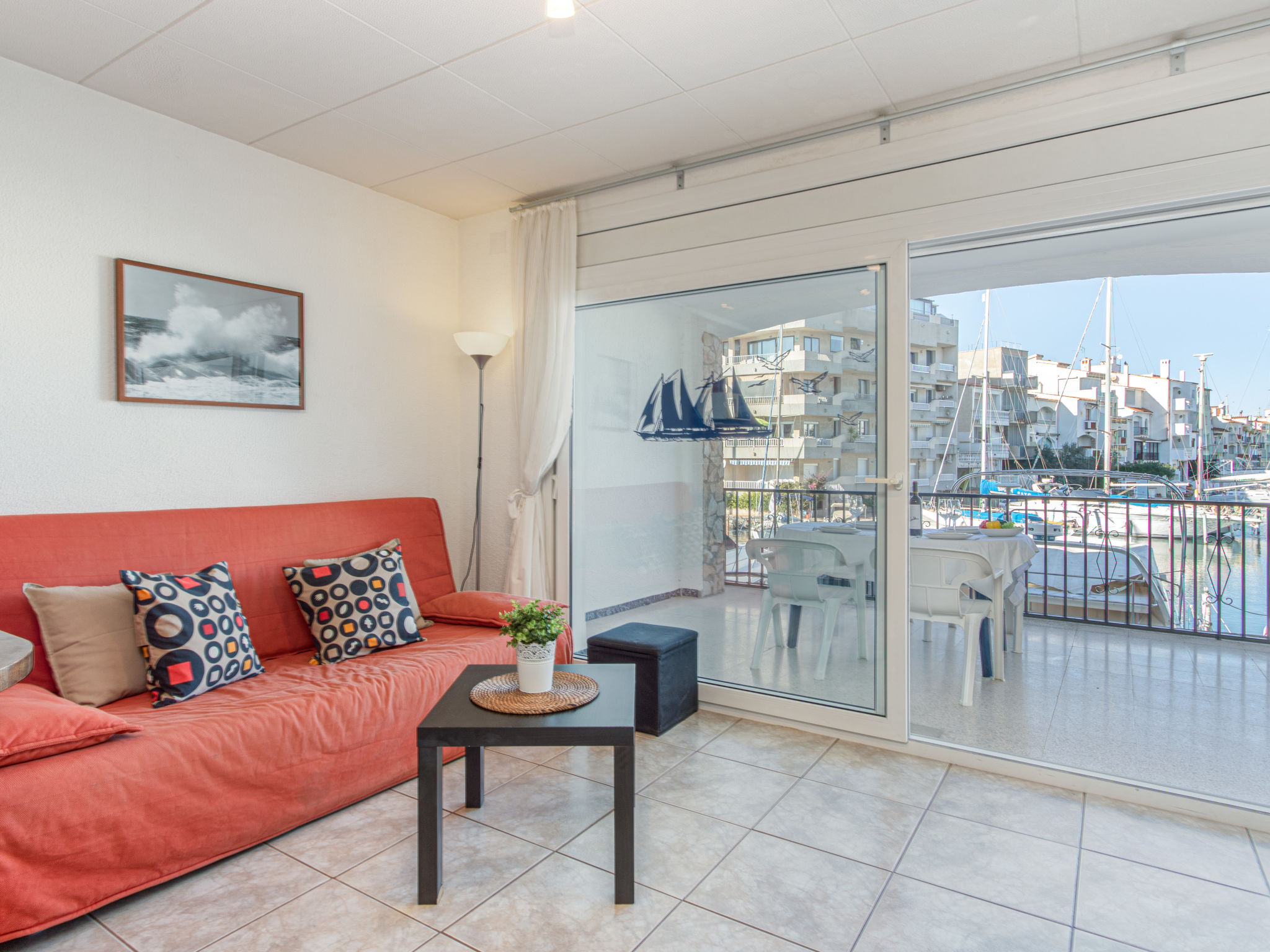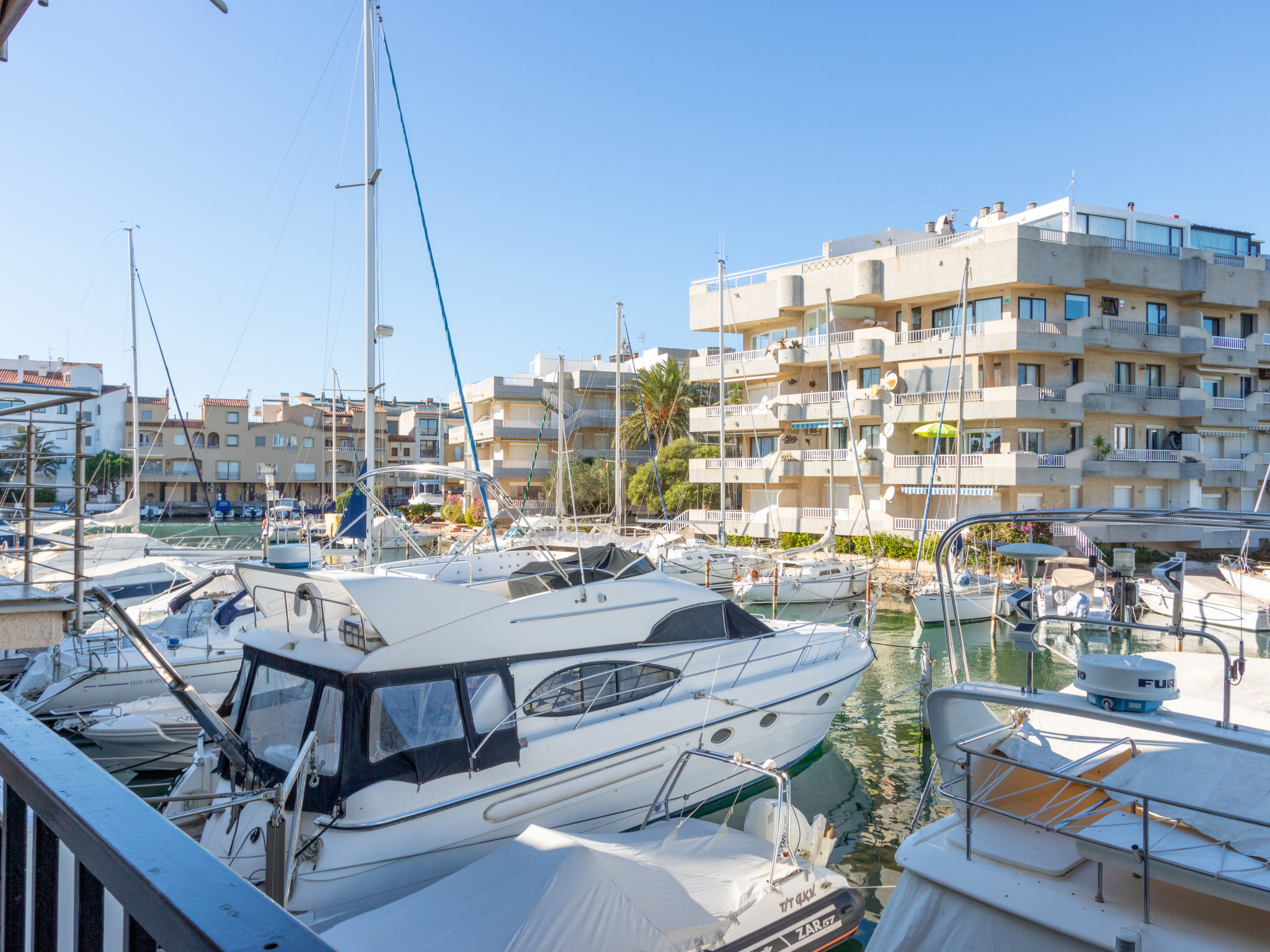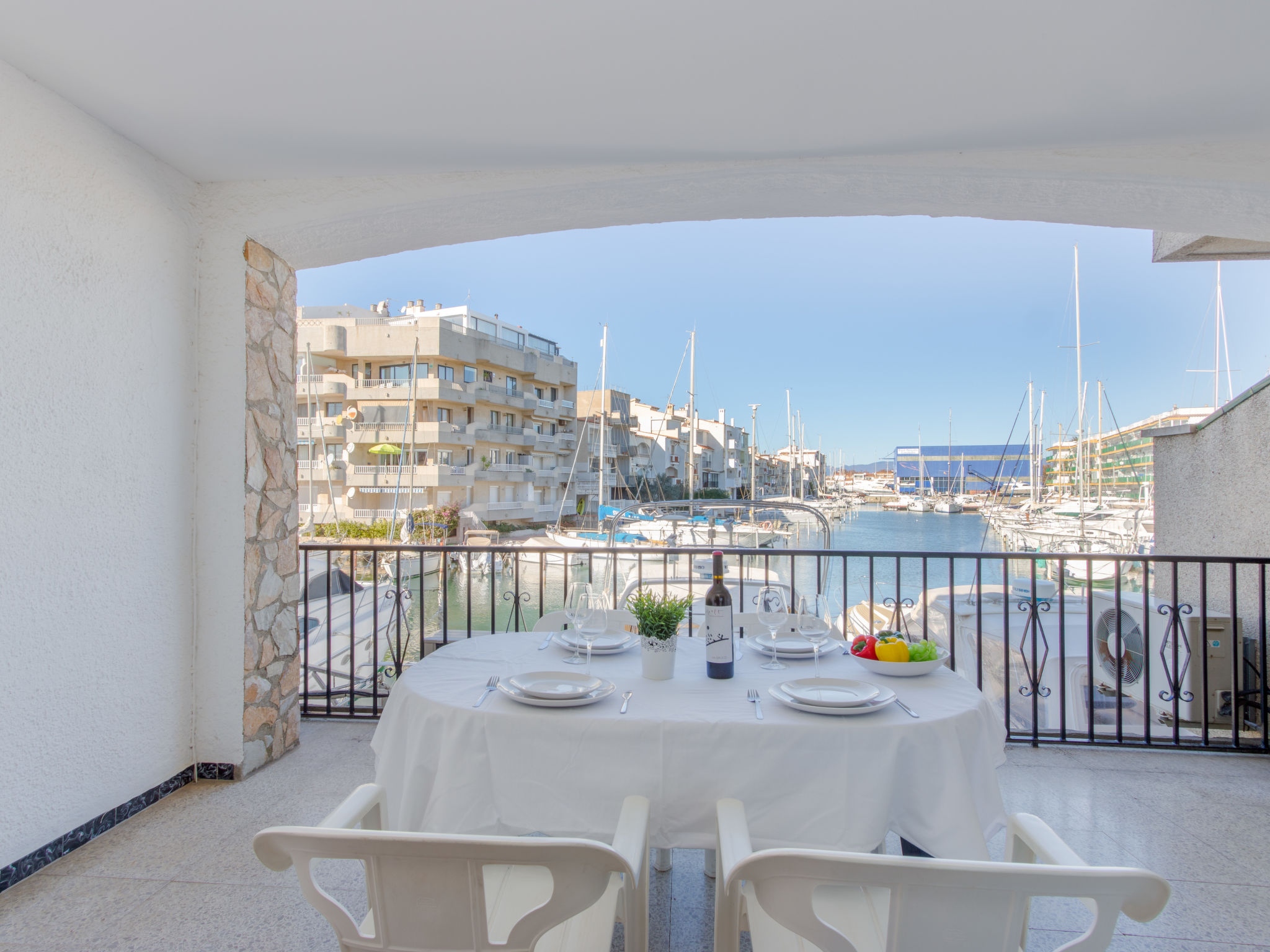 Canal: Zweifamilienhaus "Port Primer", auf 2 Stockwerken. Im Ortsteil Port Primer, 1.8 km vom Zentrum von Empuriabrava, ruhige Lage, verkehrsberuhigte Zone, 120 m vom Meer, in einer Sackgasse. Supermarkt 1.8 km, Einkaufszentrum 1.8 km, Restaurant, Bar 300 m, Fußgängerzone 50 m, Biergarten 200 m, Sandstrand "La Rubina" 200 m. Golfplatz (18 Loch) 15 km, Surfschule 2 km, Segelschule 2 km, Minigolf 1.5 km, Reitstall 500 m, Sportzentrum 2 km, Wanderwege ab Haus, Radweg 50 m. Nahe gelegene Sehenswürdigkeiten: Centro paracaidismo y túnel del viento 3 km, Parque Aquatico Roses 10 km, Castillo de Perelada 12 km, Museo Dalí Figueres 15 km, Ruïnes de Sant Martí de Empuries 21 km, Cadaqués / Cap de Creus 18 km. Bitte beachten: kein Fahrstuhl vorhanden. Jugendgruppen nur auf Anfrage. In diesem Haus sind weitere Ferienwohnungen mietbar. Ferienwohnung Ref. ES9420.666.1 befindet sich auf dem gleichen Grundstück.