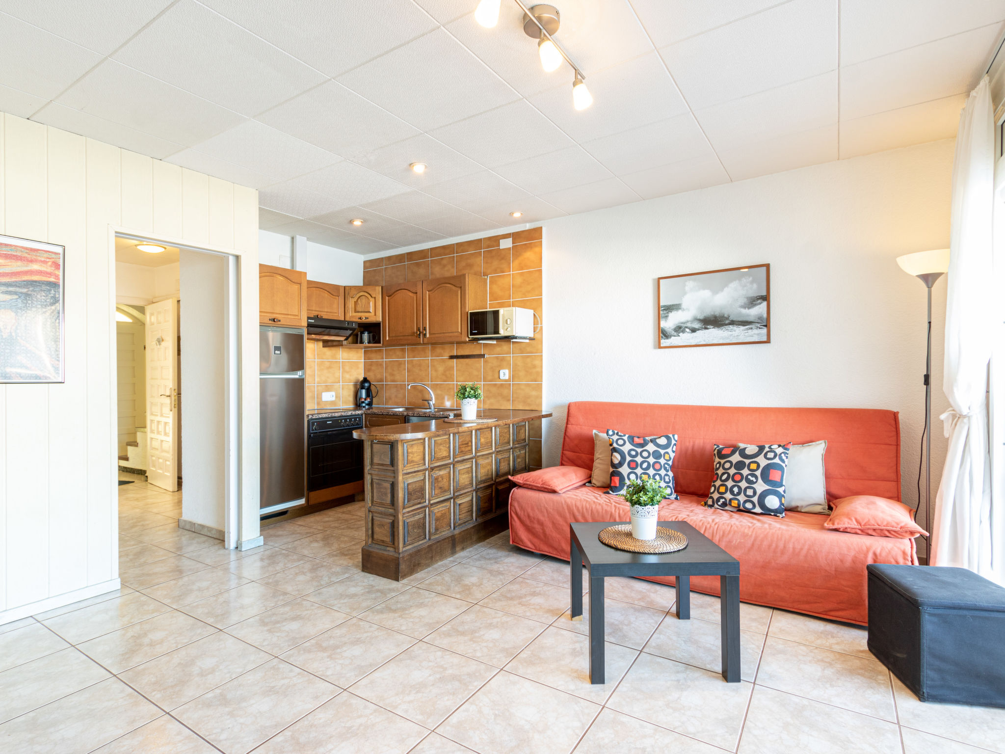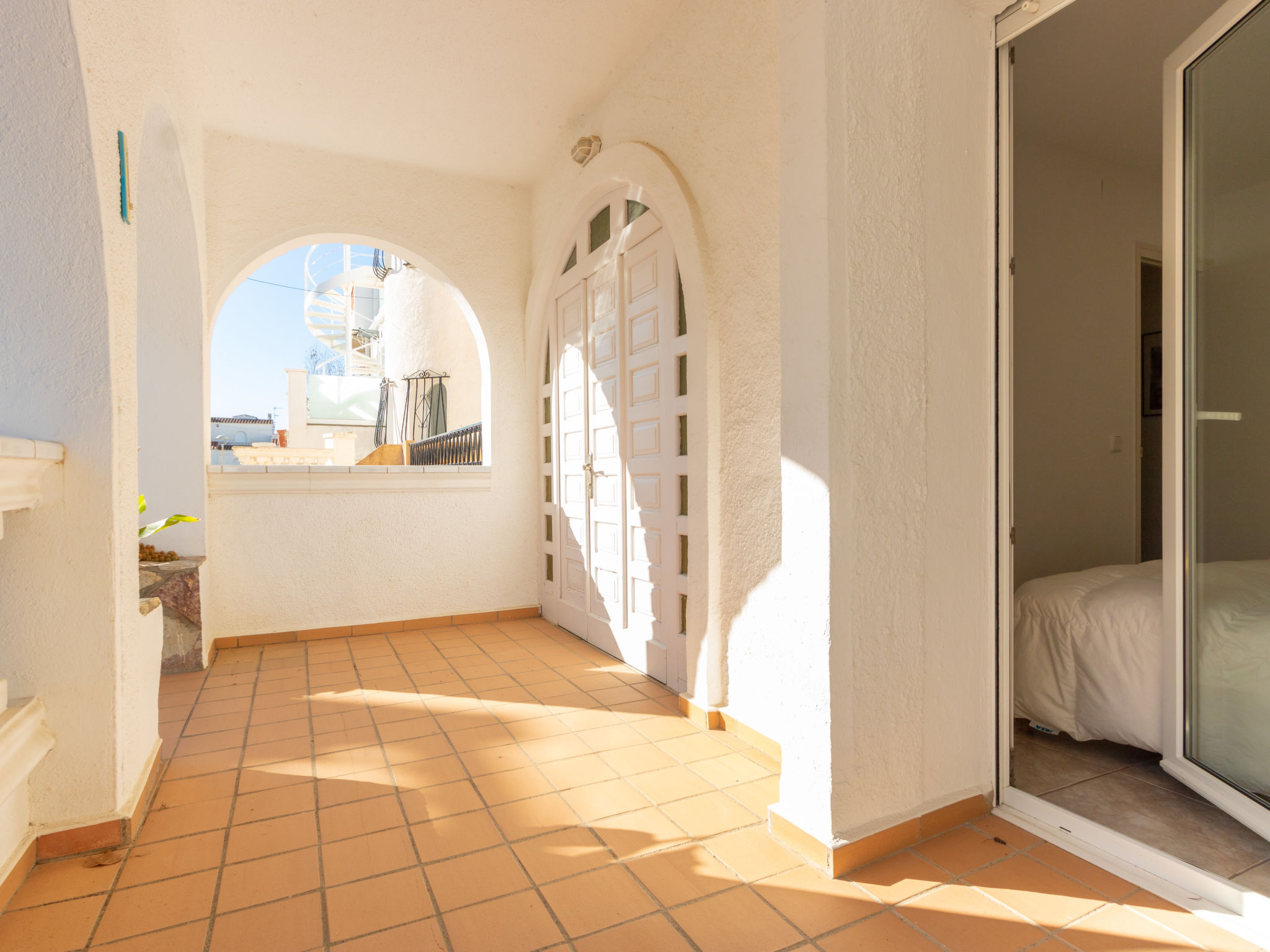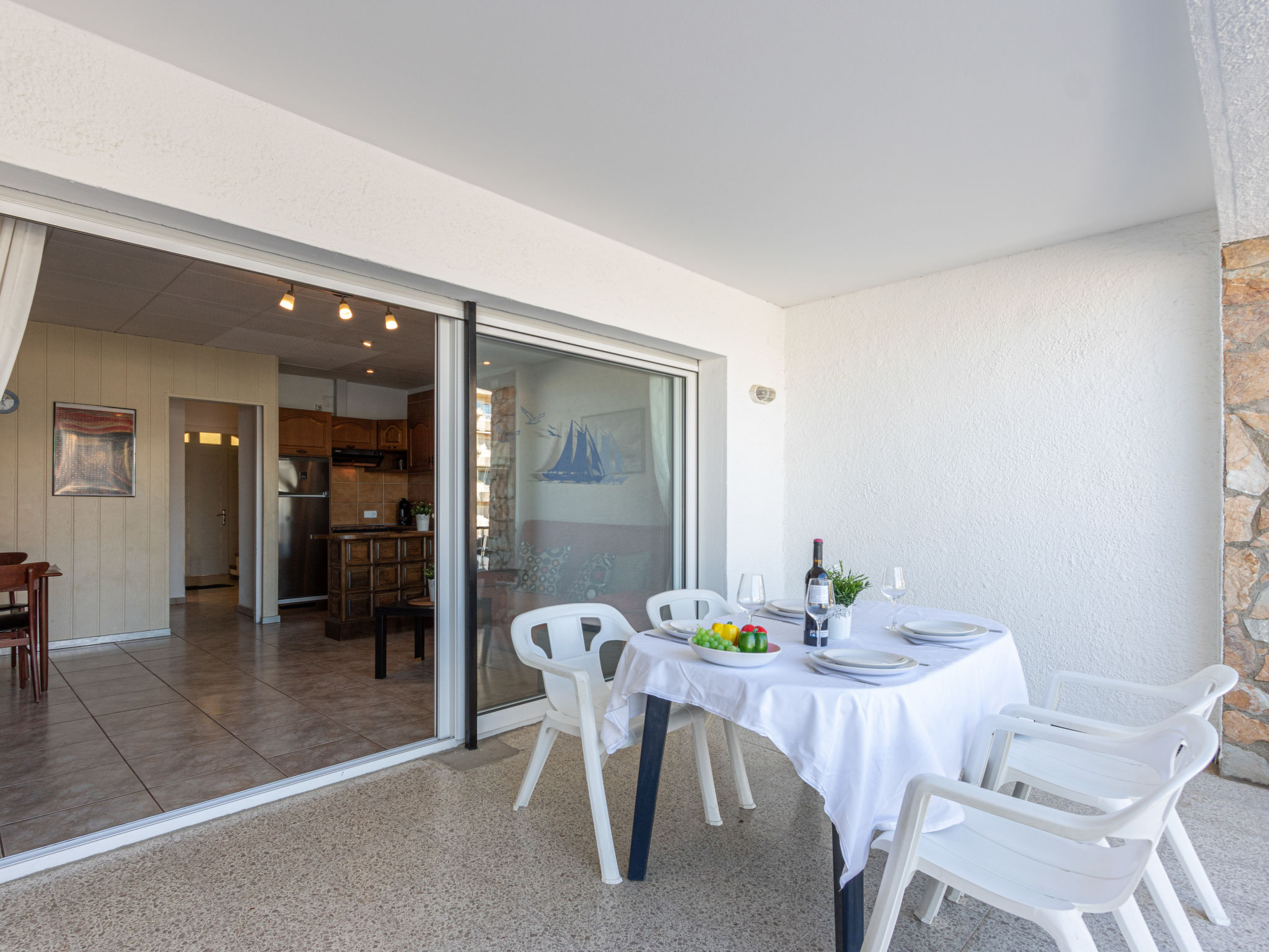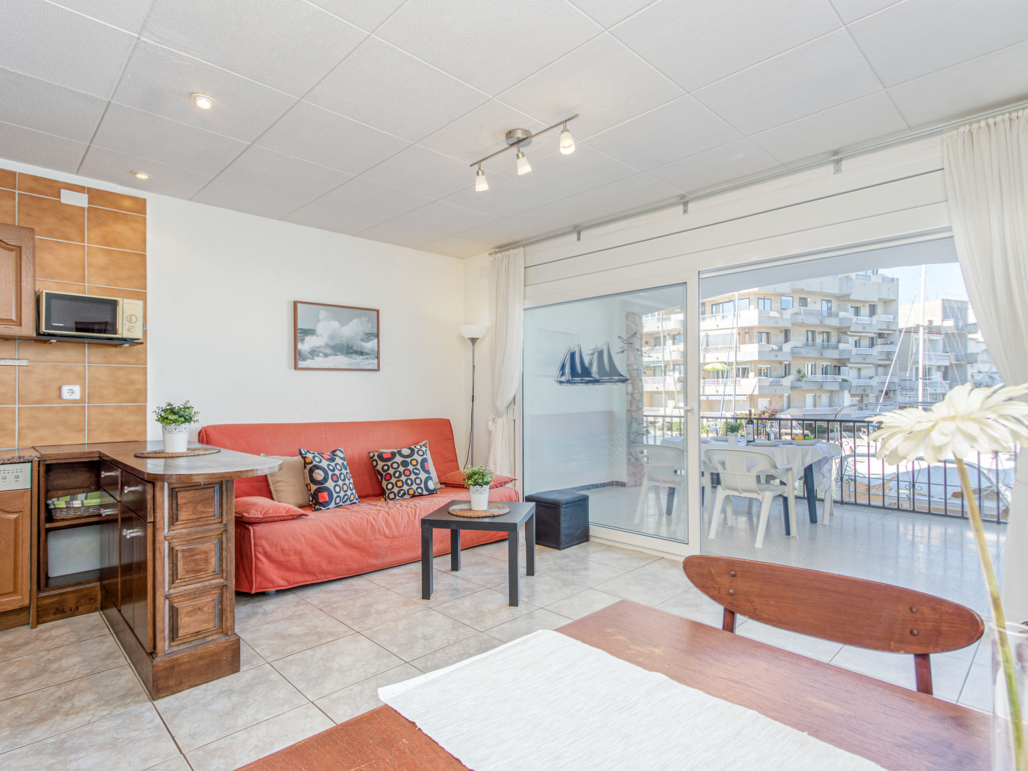 Canal: Zweifamilienhaus "Port Primer", auf 2 Stockwerken. Im Ortsteil Port Primer, 1.8 km vom Zentrum von Empuriabrava, ruhige Lage, verkehrsberuhigte Zone, 120 m vom Meer, in einer Sackgasse. Supermarkt 1.8 km, Einkaufszentrum 1.8 km, Restaurant, Bar 300 m, Fußgängerzone 50 m, Biergarten 200 m, Sandstrand "La Rubina" 200 m. Golfplatz (18 Loch) 15 km, Surfschule 2 km, Segelschule 2 km, Minigolf 1.5 km, Reitstall 500 m, Sportzentrum 2 km, Wanderwege ab Haus, Radweg 50 m. Nahe gelegene Sehenswürdigkeiten: Centro paracaidismo y túnel del viento 3 km, Parque Aquatico Roses 10 km, Castillo de Perelada 12 km, Museo Dalí Figueres 15 km, Ruïnes de Sant Martí de Empuries 21 km, Cadaqués / Cap de Creus 18 km. Bitte beachten: kein Fahrstuhl vorhanden. Jugendgruppen nur auf Anfrage. In diesem Haus sind weitere Ferienwohnungen mietbar. Ferienwohnung Ref. ES9420.666.1 befindet sich auf dem gleichen Grundstück.