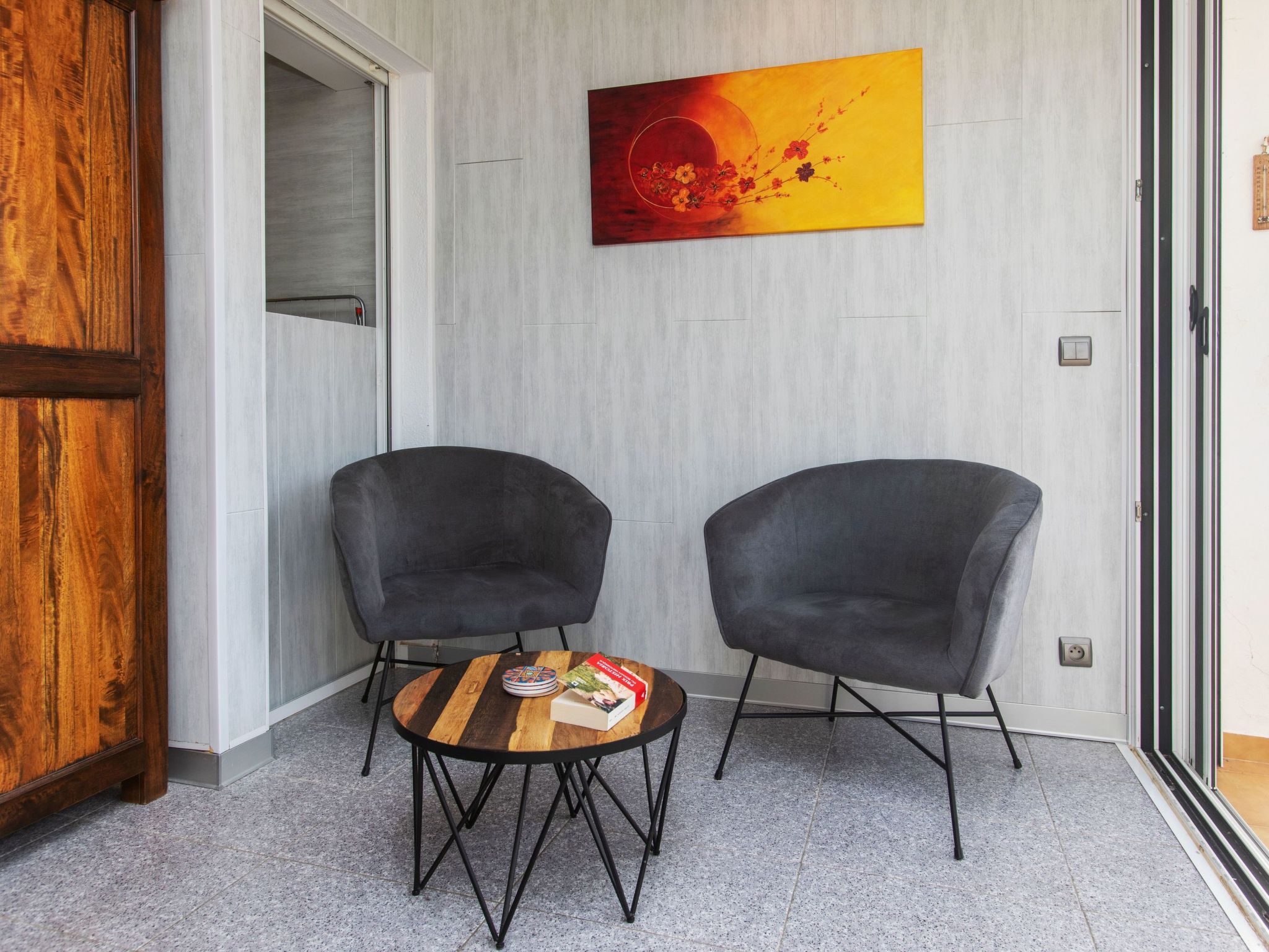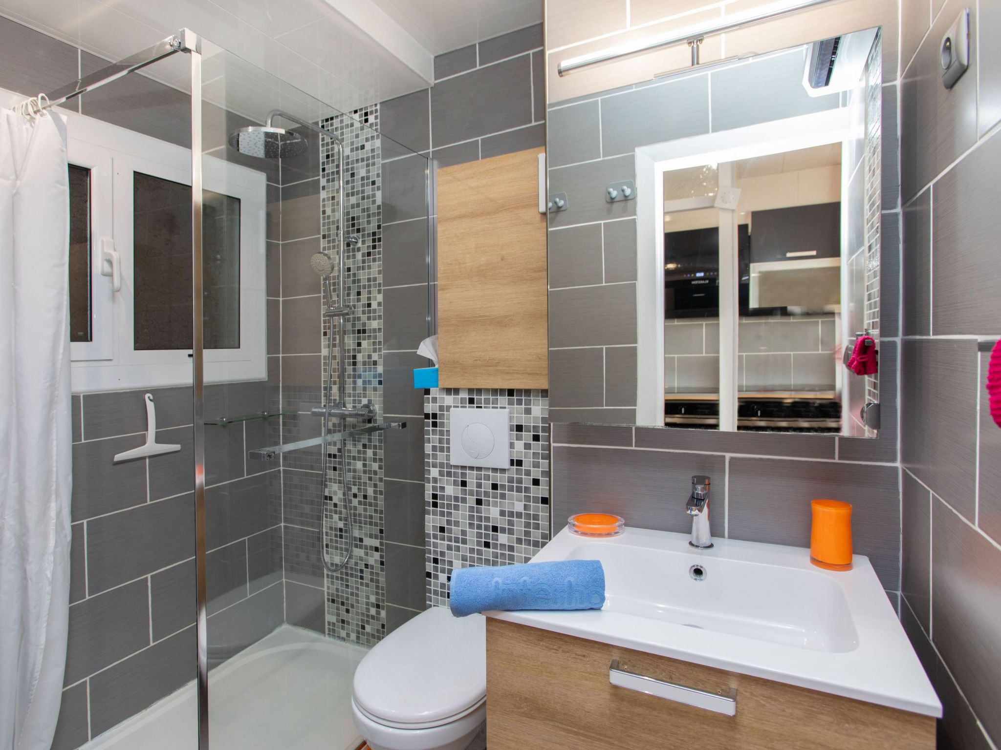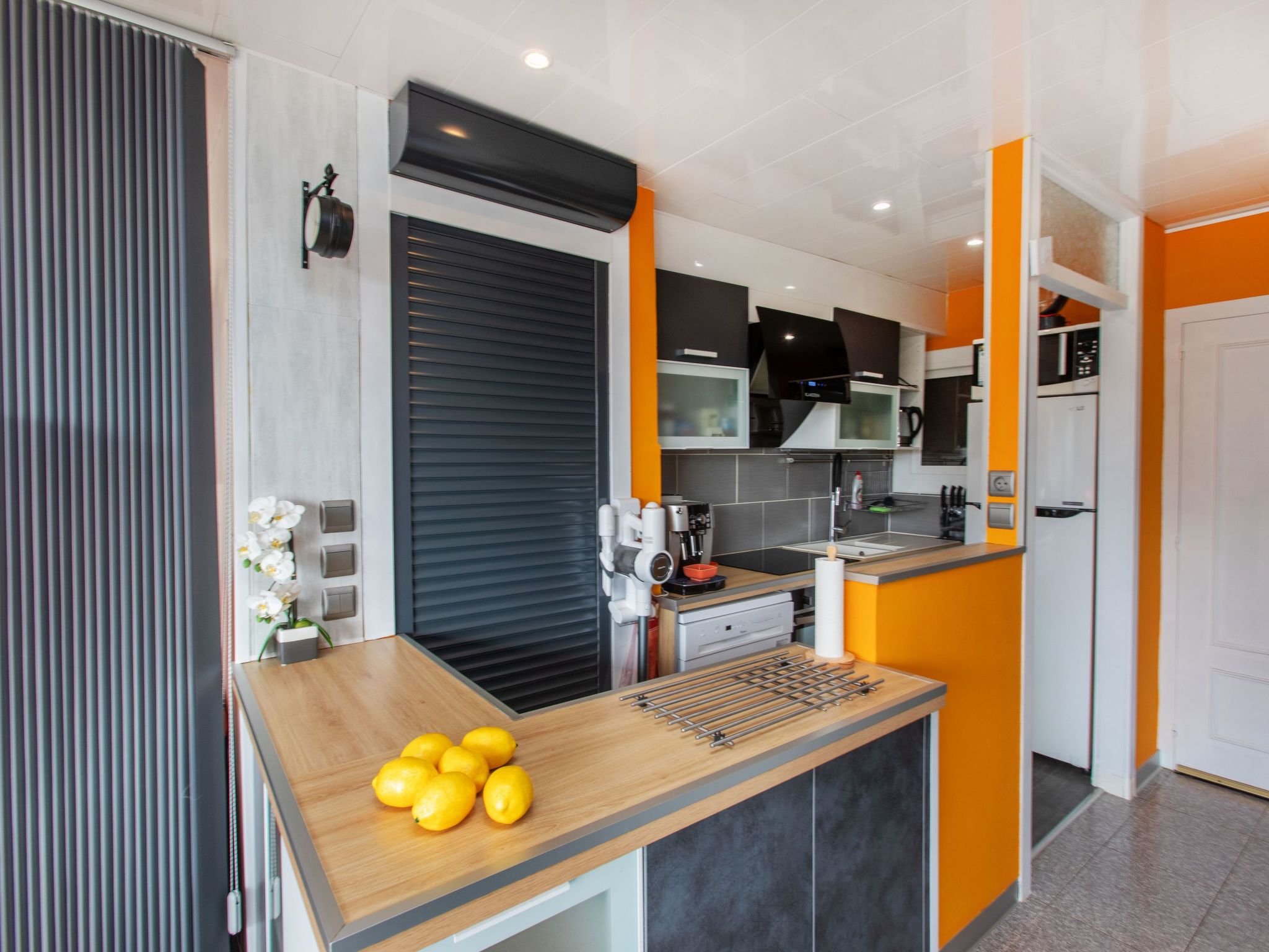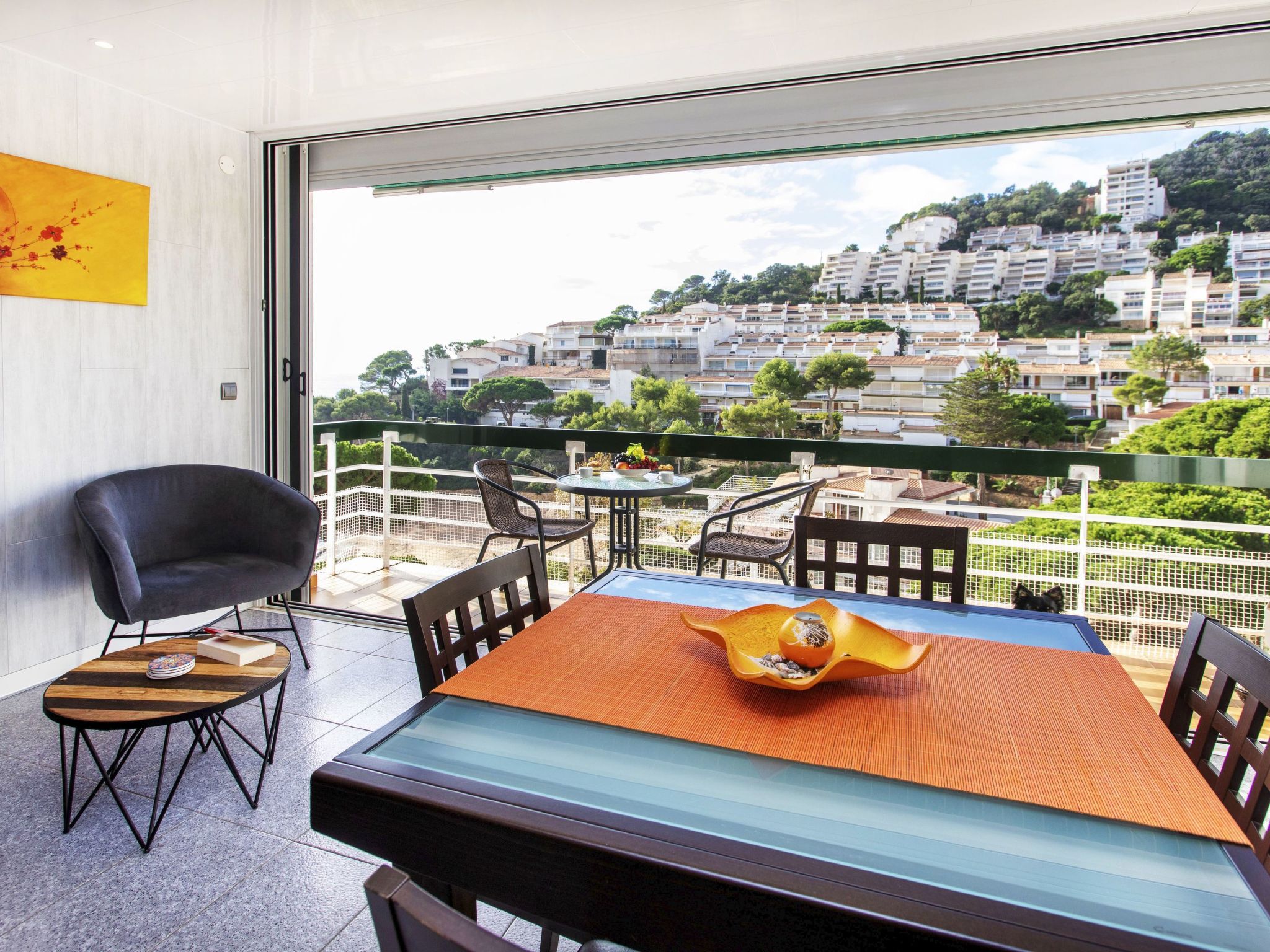 "Naranja", 2-Zimmer-Wohnung 32 m2. Geräumig und hell, zweckmässig und komfortabel eingerichtet: Wohn-/Esszimmer mit 1 Diwanbett (150 cm, Länge 190 cm), Esstisch, Sat-TV und Internationale TV-Sender. Ausgang zur Loggia. 1 Doppelzimmer mit 1 franz. Bett (150 cm, Länge 190 cm). Kochnische (Backofen, Geschirrspüler, 3 Induktionskochplatten, Toaster, Wasserkocher, Mikrowelle, Tiefkühler, elektrische Kaffeemaschine). Dusche/WC. Kleiner Balkon 8 m2. Balkonmöbel. Panoramasicht auf das Meer und die Ortschaft. Zur Verfügung: Waschmaschine, Bügeleisen, Haartrockner. Internet (Wireless LAN, gratis). Bitte beachten: geeignet für Familien. Nichtraucher-Unterkunft. TV nur FR, DE. HUTG029720