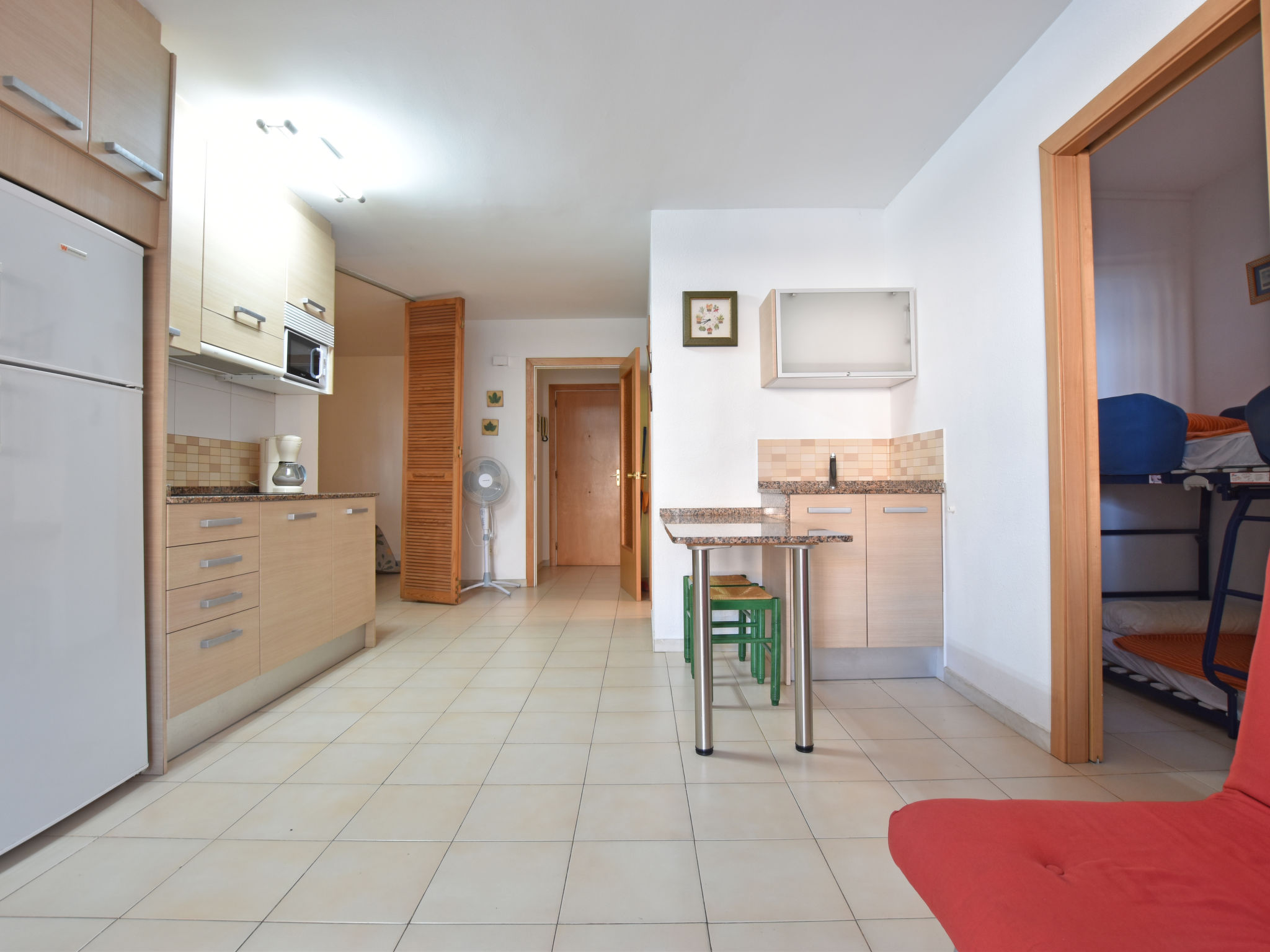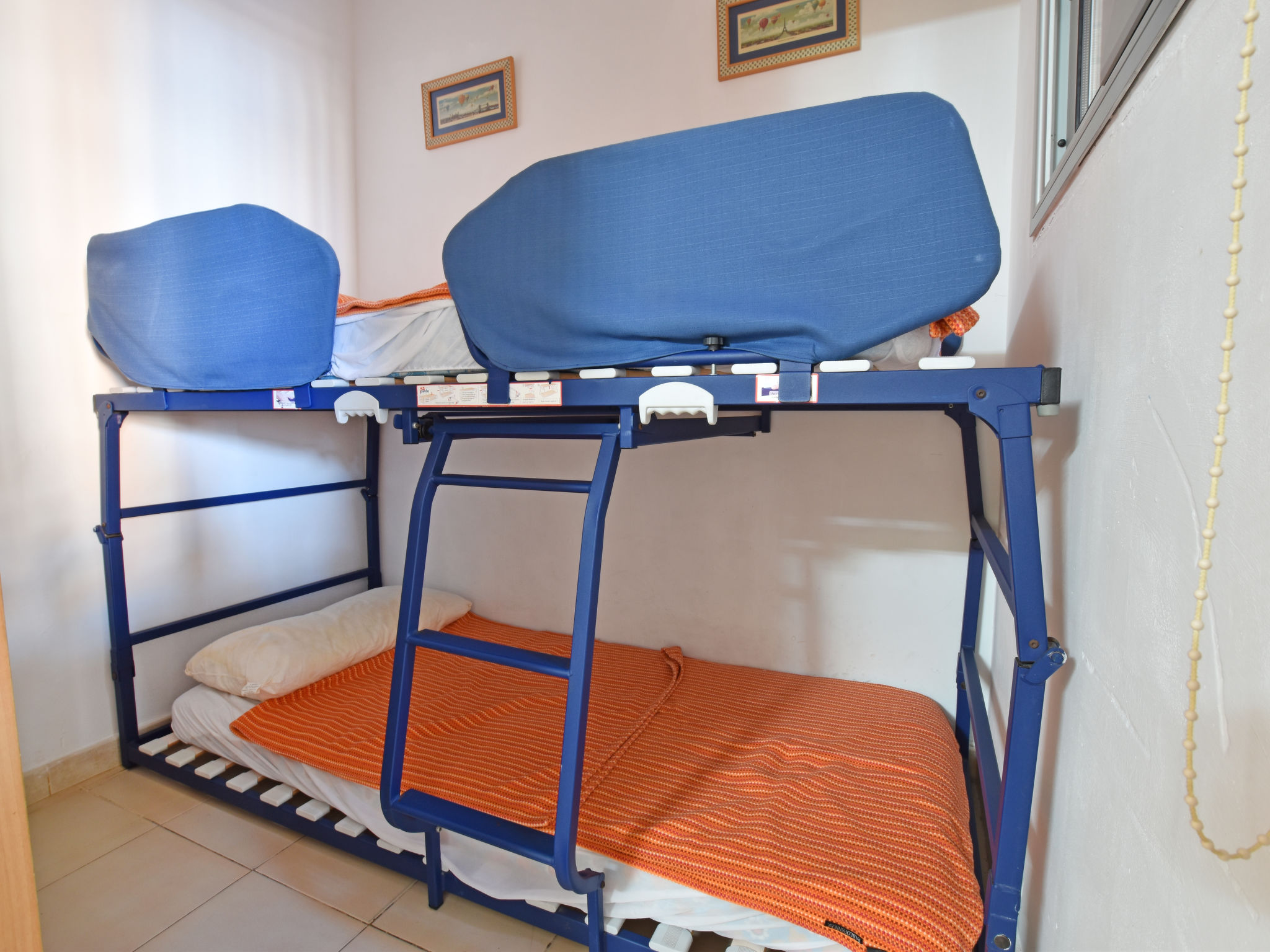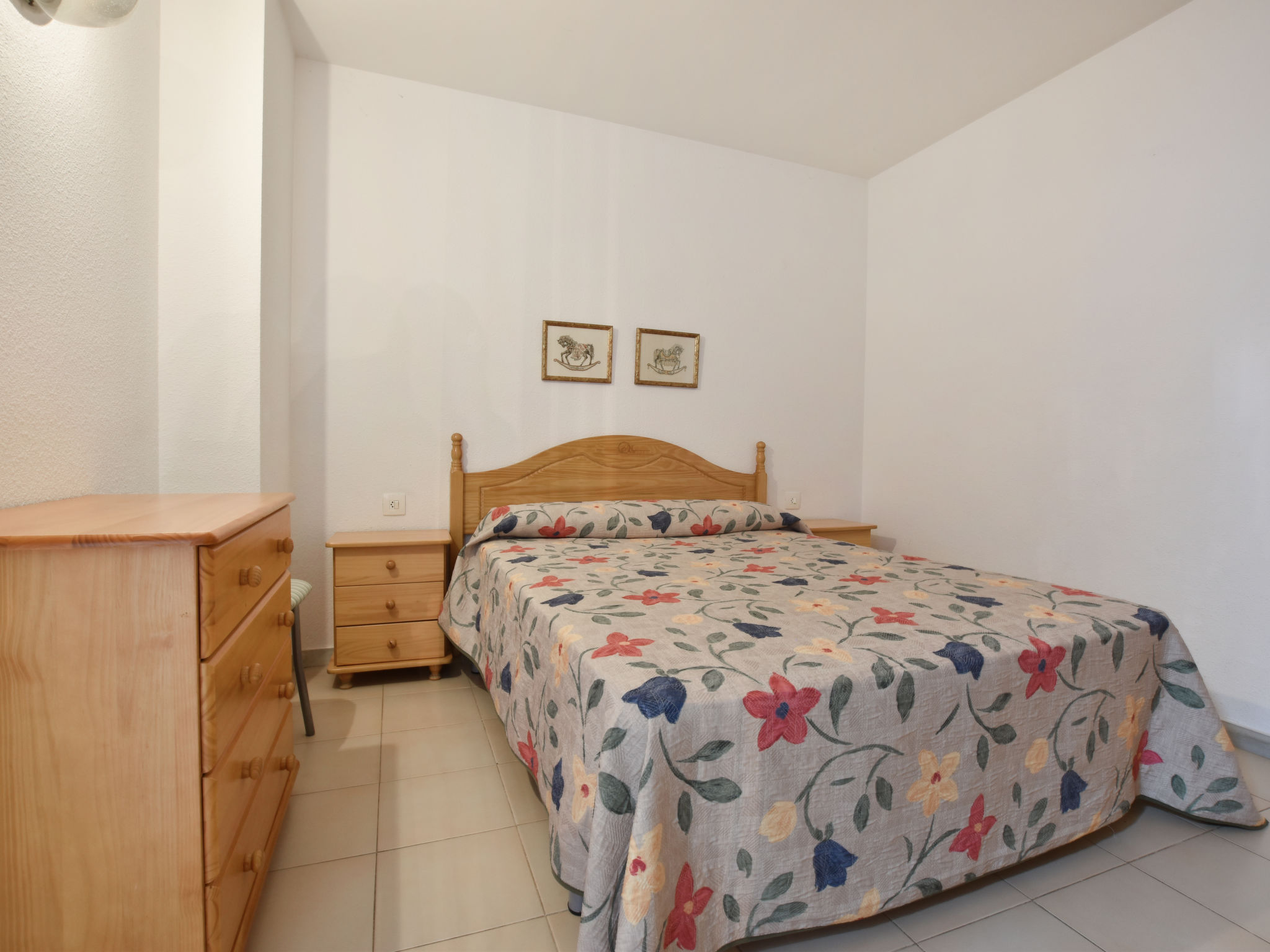 "Els Pins Eduardo", 3-Zimmer-Wohnung 45 m2 im 1. Stock. Objekt geeignet für 2 Erwachsene + 2 Kinder. Teilweise renoviert im Jahre 2017, zweckmässig und komfortabel eingerichtet: Wohn-/Esszimmer mit 1 Klappbett (80 cm, Länge 180 cm), Digital-TV und Ventilator. Ausgang zur Terrasse. 1 Zimmer, ohne Fenster mit 1 franz. Bett (150 cm, Länge 190 cm). 1 Zimmer, Fenster zum Hof, ohne Schrank mit 1 Bett (80 cm, Länge 180 cm). Offene Küche (2 Glaskeramikherd Platten, Toaster, Wasserkocher, Mikrowelle, elektrische Kaffeemaschine). Dusche/WC. Terrasse. Terrassenmöbel. Sicht auf das Meer und das Schwimmbad. Zur Verfügung: Waschmaschine, Bügeleisen, Kinderhochstuhl, Babybett bis 2 Jahre, Haartrockner. Internet (Wireless LAN, gratis). Parkplatz Nr. 25 (1 Auto) beim Haus. Bitte beachten: geeignet für Familien. Nichtraucher-Unterkunft. Der ausgeschriebene Pool ist zur alleinigen Nutzung. HUTT004210