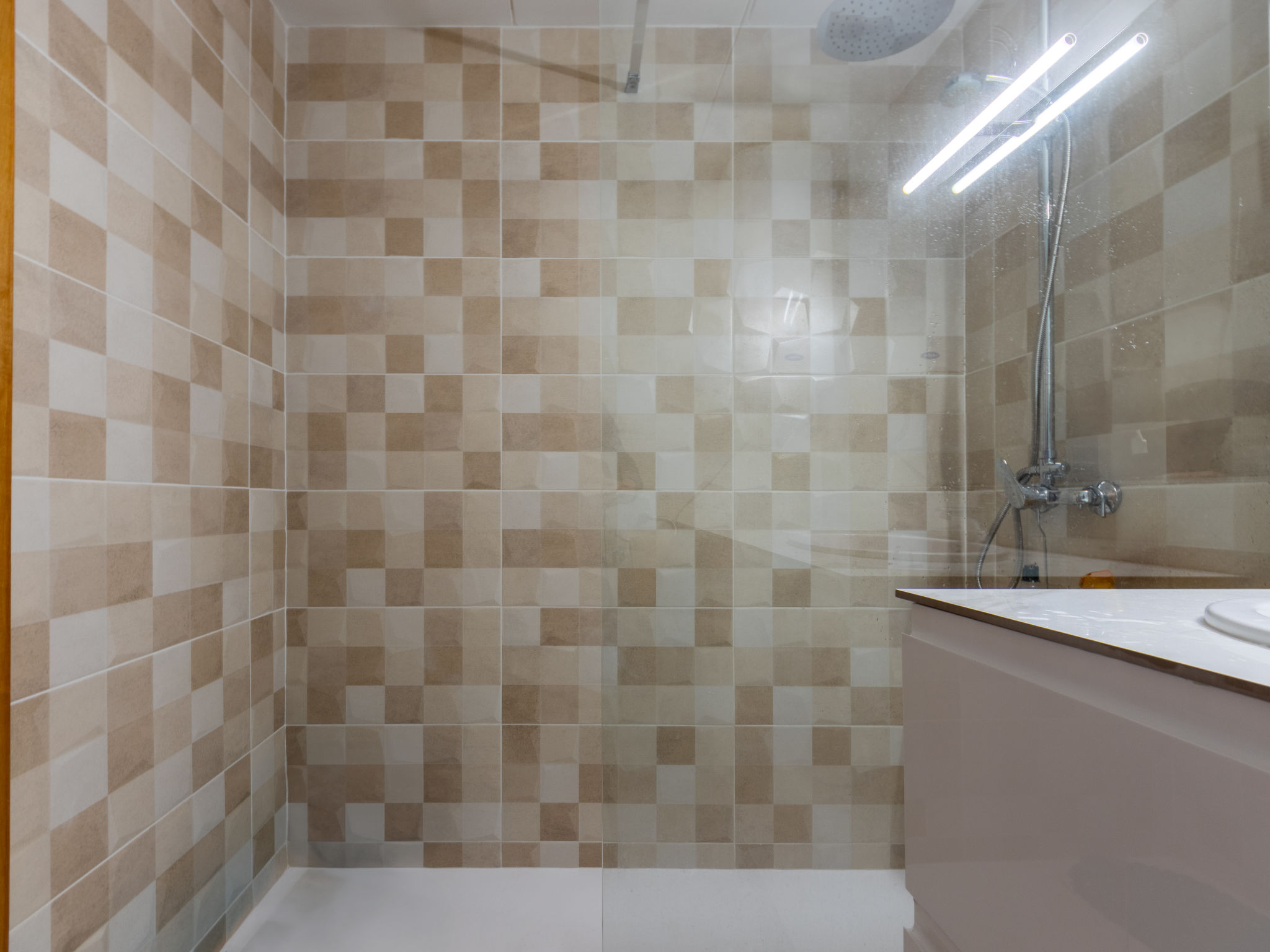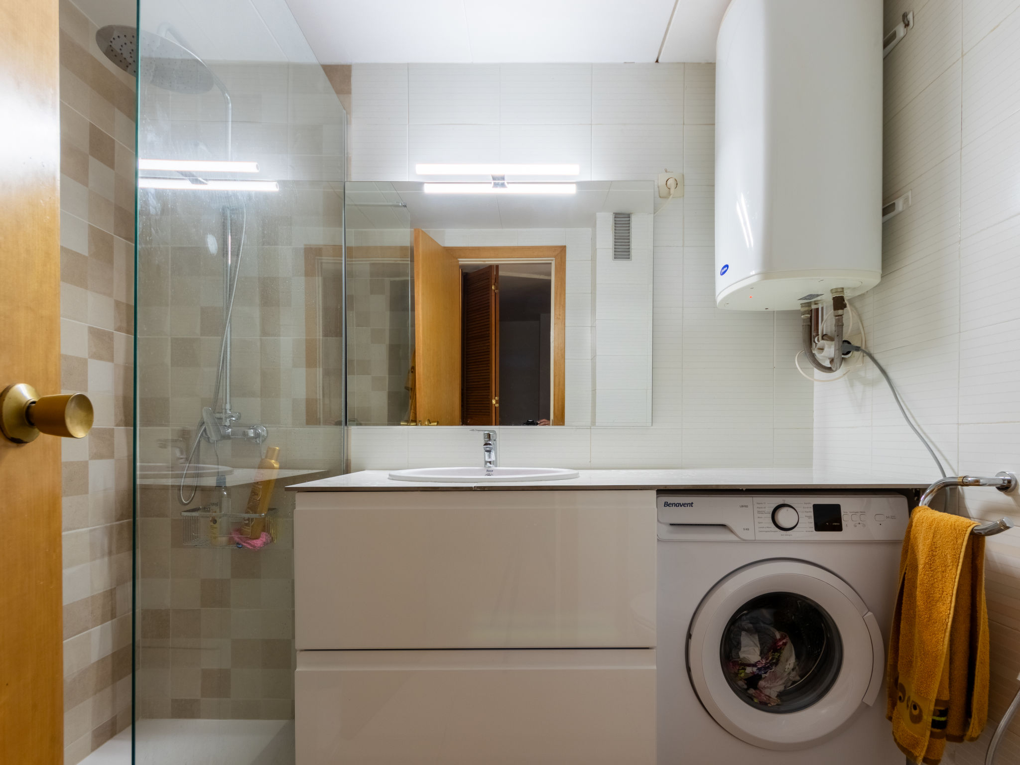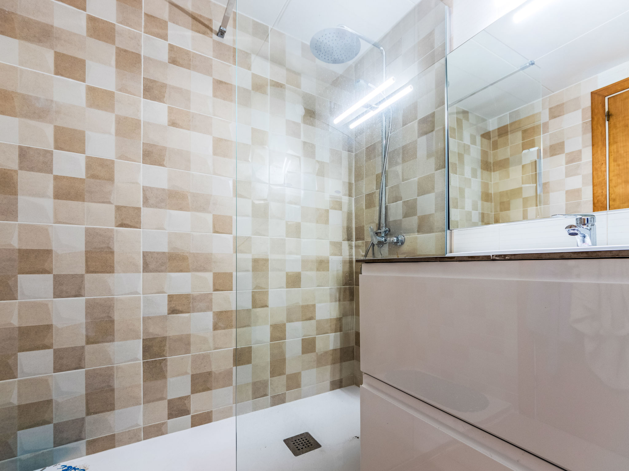 "Els Pins Eduardo", 3-Zimmer-Wohnung 45 m2 im 1. Stock. Objekt geeignet für 2 Erwachsene + 2 Kinder. Teilweise renoviert im Jahre 2017, zweckmässig und komfortabel eingerichtet: Wohn-/Esszimmer mit 1 Klappbett (80 cm, Länge 180 cm), Digital-TV und Ventilator. Ausgang zur Terrasse. 1 Zimmer, ohne Fenster mit 1 franz. Bett (150 cm, Länge 190 cm). 1 Zimmer, Fenster zum Hof, ohne Schrank mit 1 Bett (80 cm, Länge 180 cm). Offene Küche (2 Glaskeramikherd Platten, Toaster, Wasserkocher, Mikrowelle, elektrische Kaffeemaschine). Dusche/WC. Terrasse. Terrassenmöbel. Sicht auf das Meer und das Schwimmbad. Zur Verfügung: Waschmaschine, Bügeleisen, Kinderhochstuhl, Babybett bis 2 Jahre, Haartrockner. Internet (Wireless LAN, gratis). Parkplatz Nr. 25 (1 Auto) beim Haus. Bitte beachten: geeignet für Familien. Nichtraucher-Unterkunft. Der ausgeschriebene Pool ist zur alleinigen Nutzung. HUTT004210
