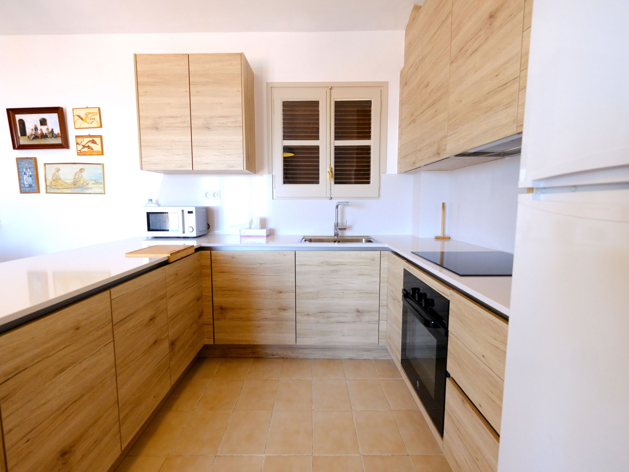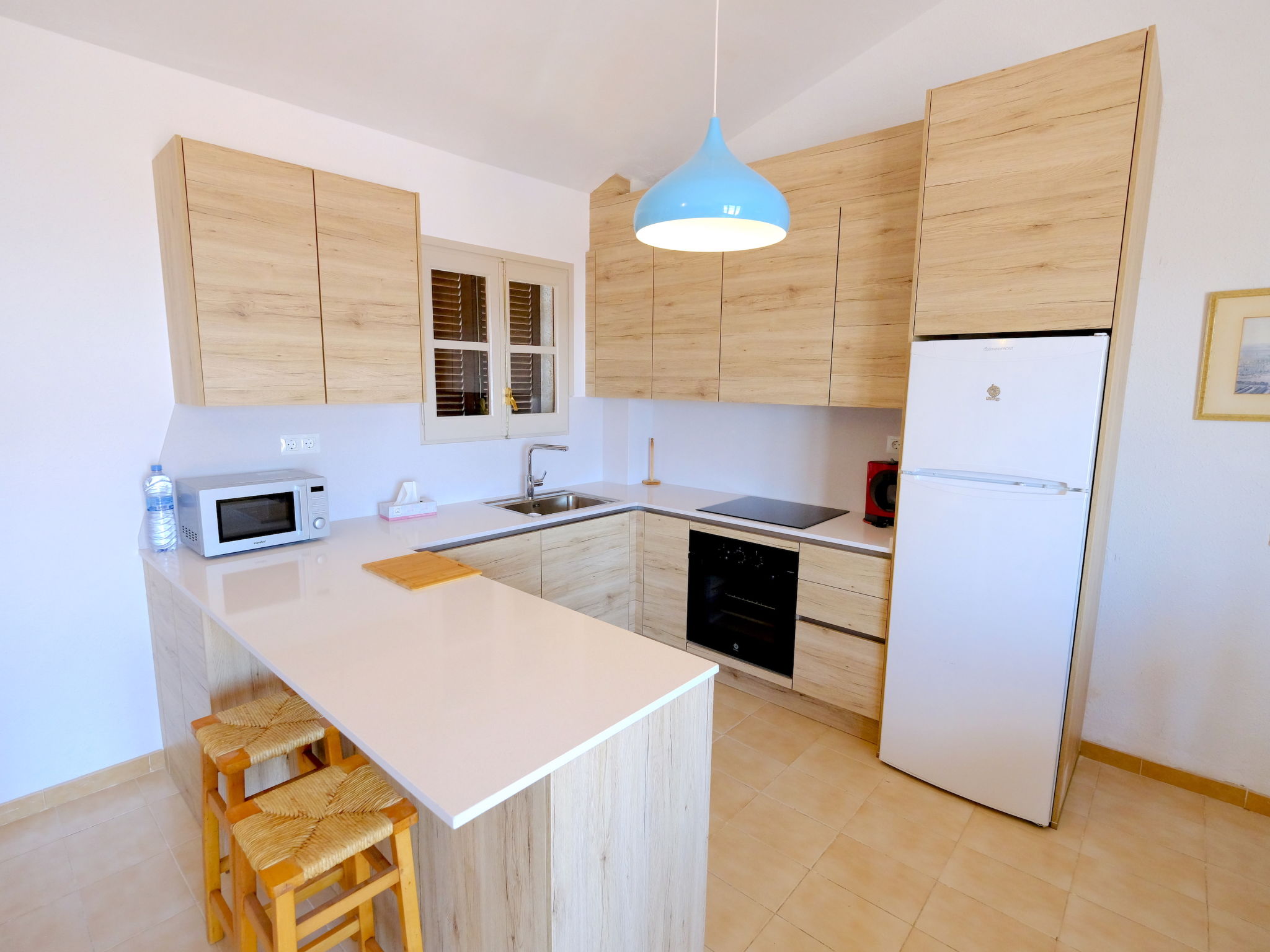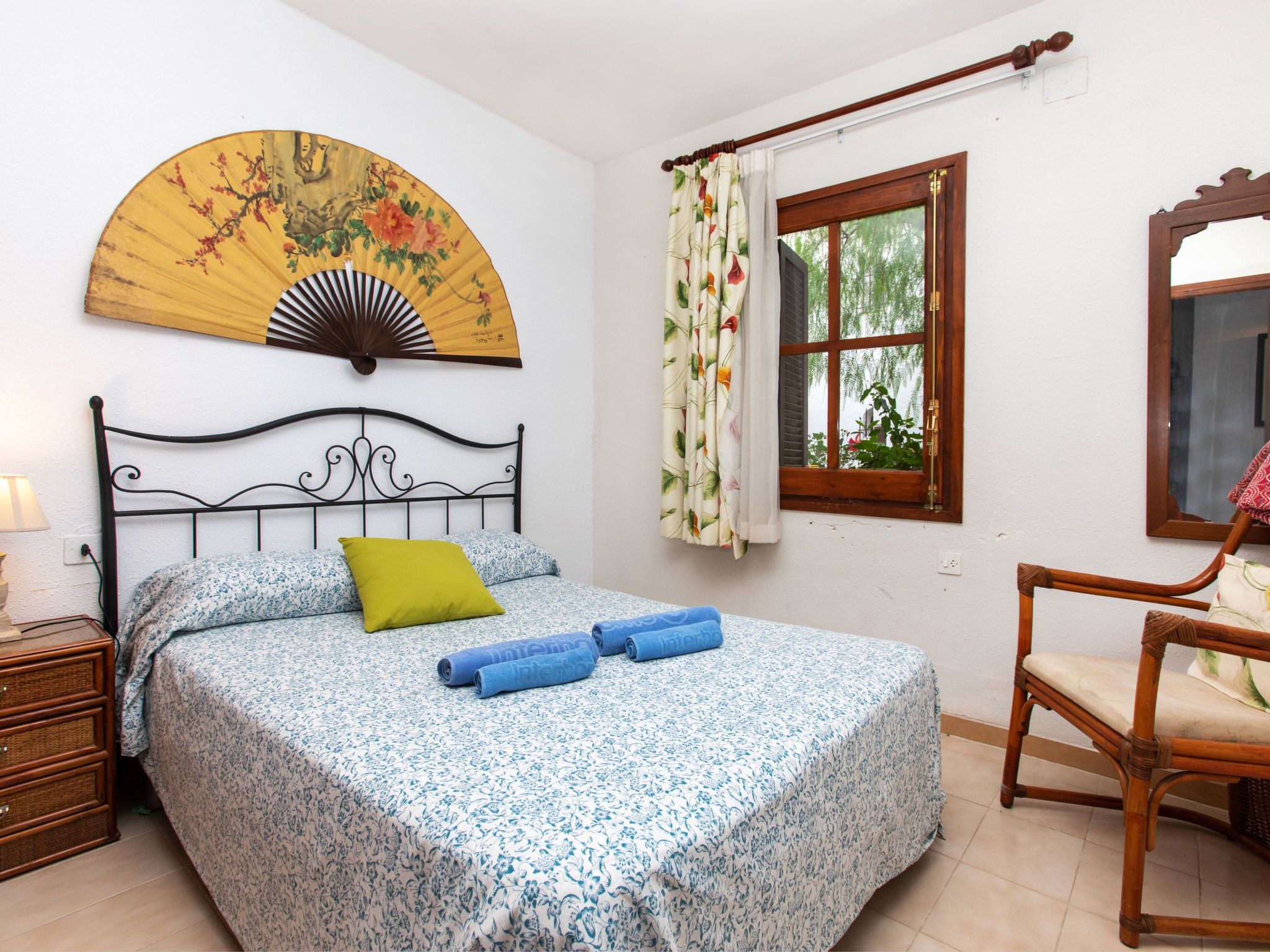 "Casas Blancas Mediterraneas", 4-Zimmer-Villa 110 m2 auf 3 Stockwerken. Komfortabel und gemütlich eingerichtet: 1 Zimmer mit 1 franz. Bett (135 cm). Sep. WC. Obergeschoss: 1 Zimmer mit 1 franz. Bett (135 cm). 1 Zimmer mit 2 Betten (90 cm). Bad/Bidet/WC. 2. Obergeschoss: Wohnküche (Backofen, 4 Glaskeramikherd Platten, Toaster, Wasserkocher, Mikrowelle, elektrische Kaffeemaschine) mit Esstisch und Digital-TV. Ausgang zur Terrasse. Gartensitzplatz. Terrassenmöbel, Gartengrill. Sicht auf das Meer. Zur Verfügung: Waschmaschine, Bügeleisen, Haartrockner. R000000001
