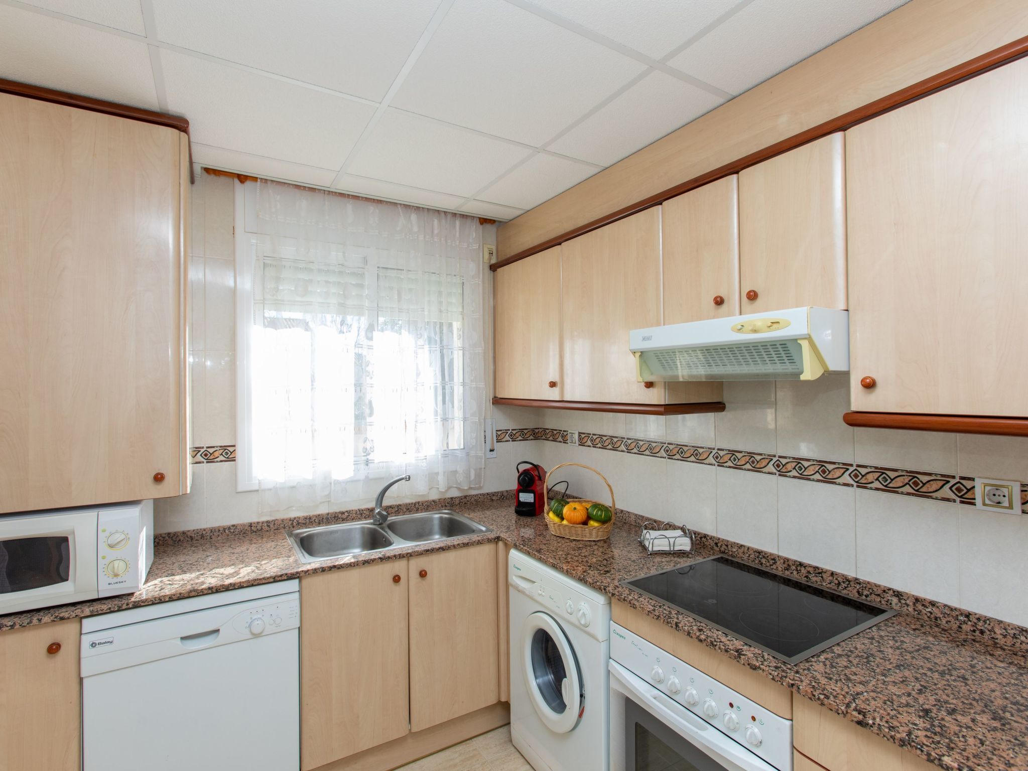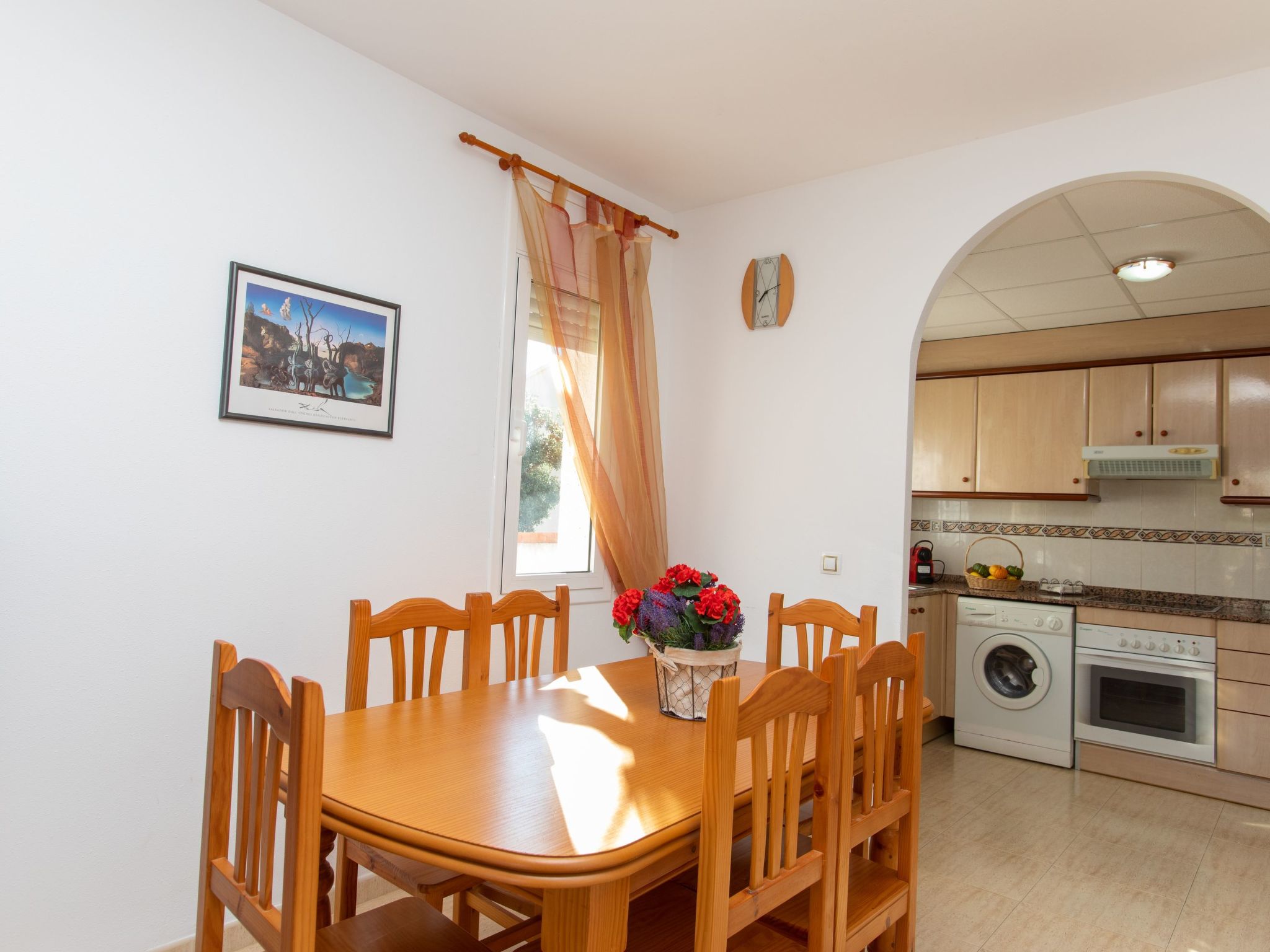 El Casalot: Schöne Ferienanlage "Residencial Eurosol de los Monteros", auf 2 Stockwerken, Baujahr 2003. Am Ortsrand, 3 km vom Zentrum von Miami, sonnige Lage, 3.5 km vom Meer, 3.5 km vom Strand. Zur Mitbenutzung: Grundstück (eingezäunt), Schwimmbad (12 x 5 m, 80 - 190 cm tief, saisonale Verfügbarkeit: 01.Apr.-30.Okt. Öffnungszeiten Schwimmbad: 10:00-21:00) mit Innentreppe. Aussendusche, Poolpflege durch den Besitzer/Gärtner, öffentliche Parkplätze auf der Strasse. Supermarkt 3 km, Einkaufszentrum 3 km, Restaurant 3 km, Bar 1 km, Bahnstation "Hospitalet" 5 km, Sandstrand 3.5 km. Nahe gelegene Sehenswürdigkeiten: Parque Portaventura 28 km, parque acuático Aquopolis 31 km, parque Natural del Delta del Ebro 53 km, Tarragona 37 km, Reus 30 km, Barcelona 132 km. Bitte beachten: Fahrzeug empfohlen. Jugendgruppen nur auf Anfrage. In diesem Haus sind weitere Ferienwohnungen mietbar.