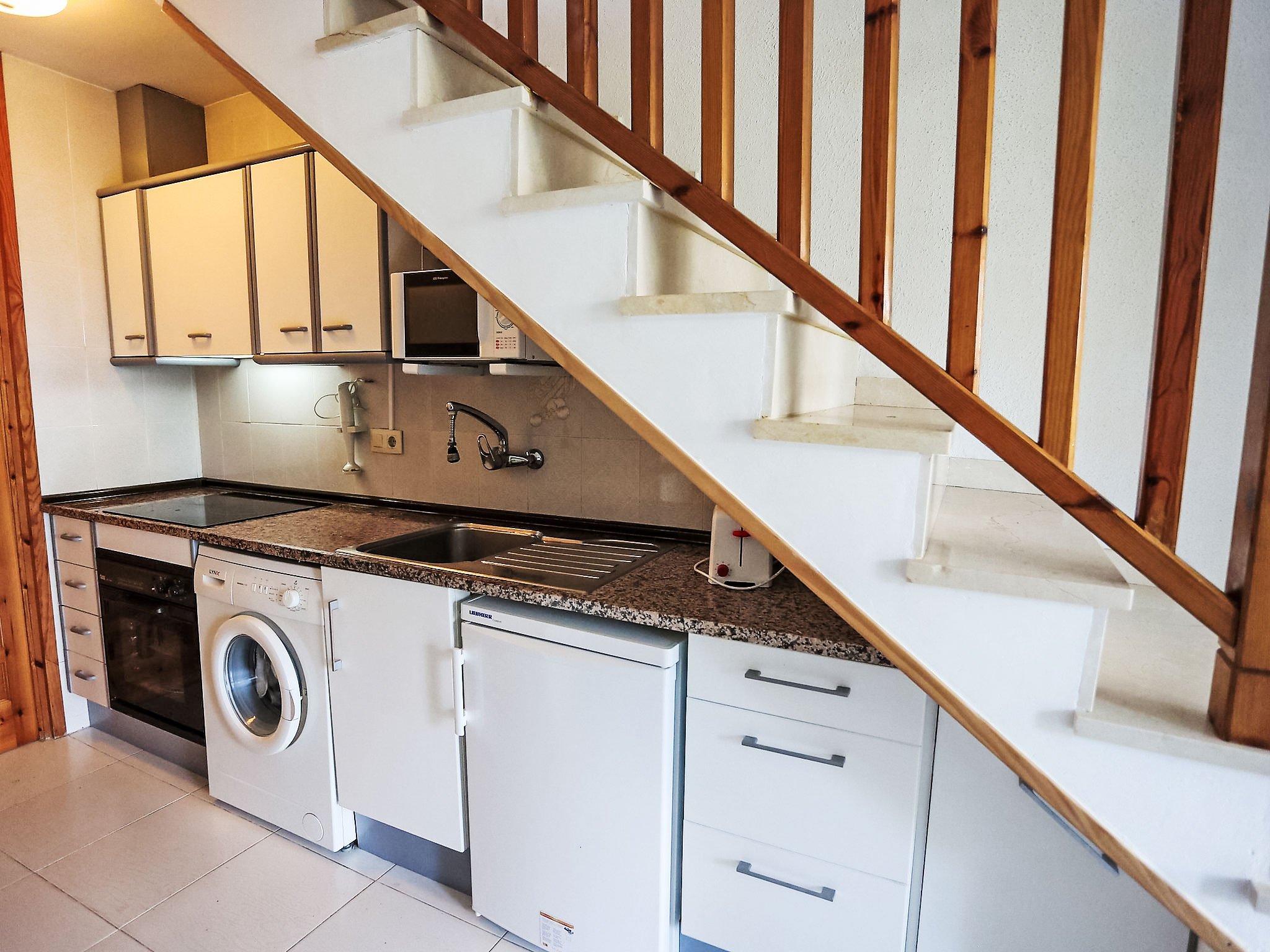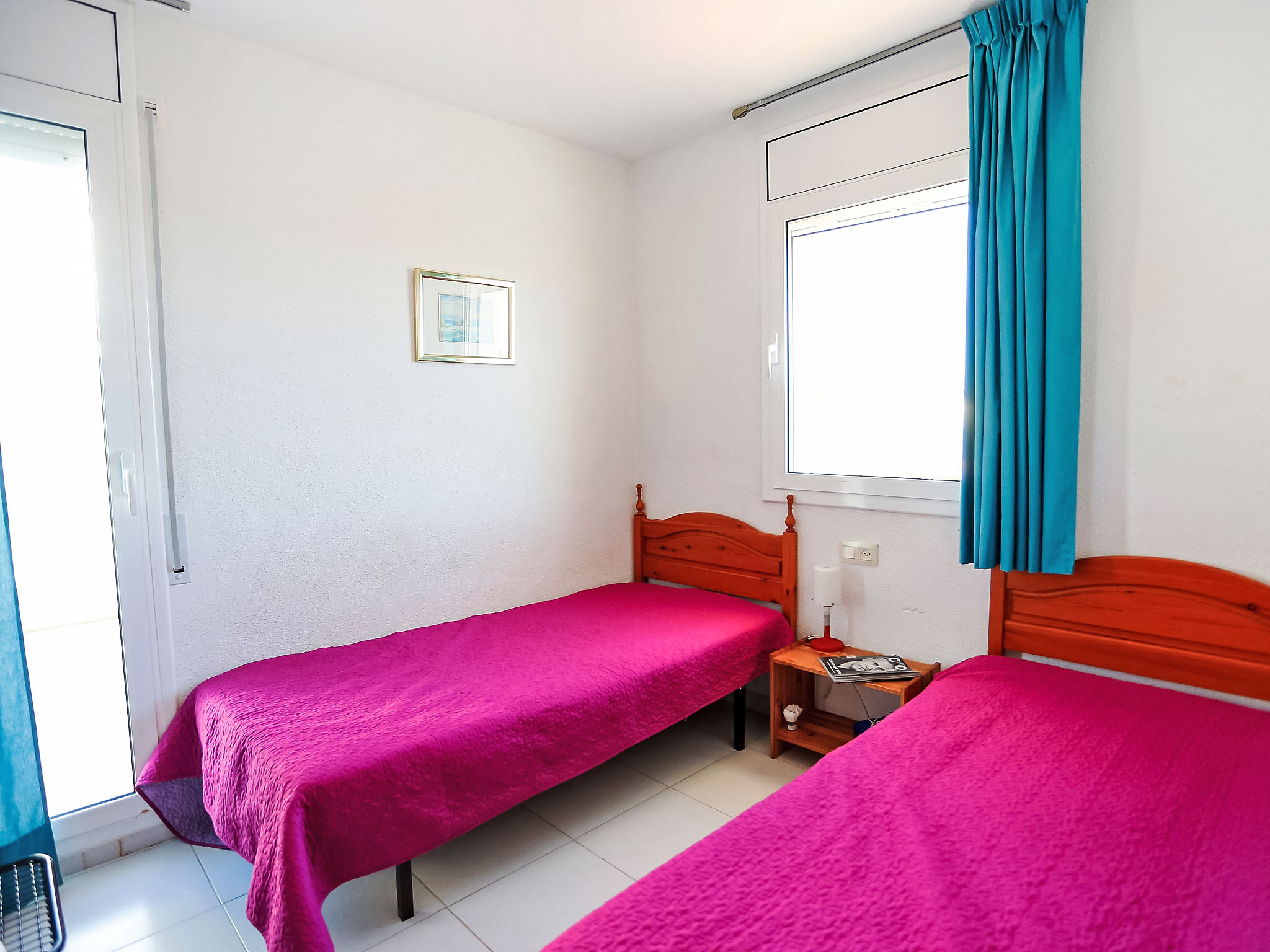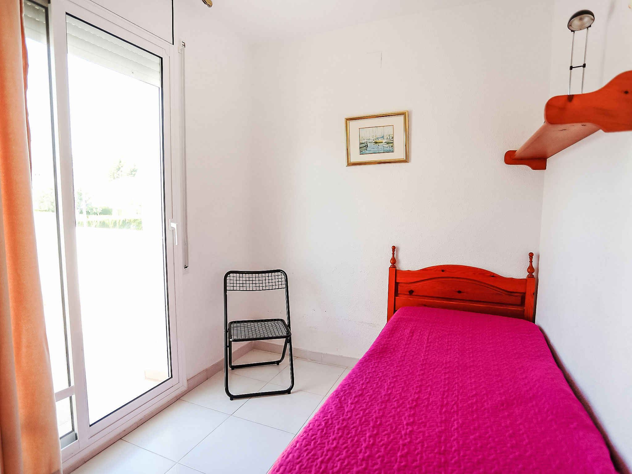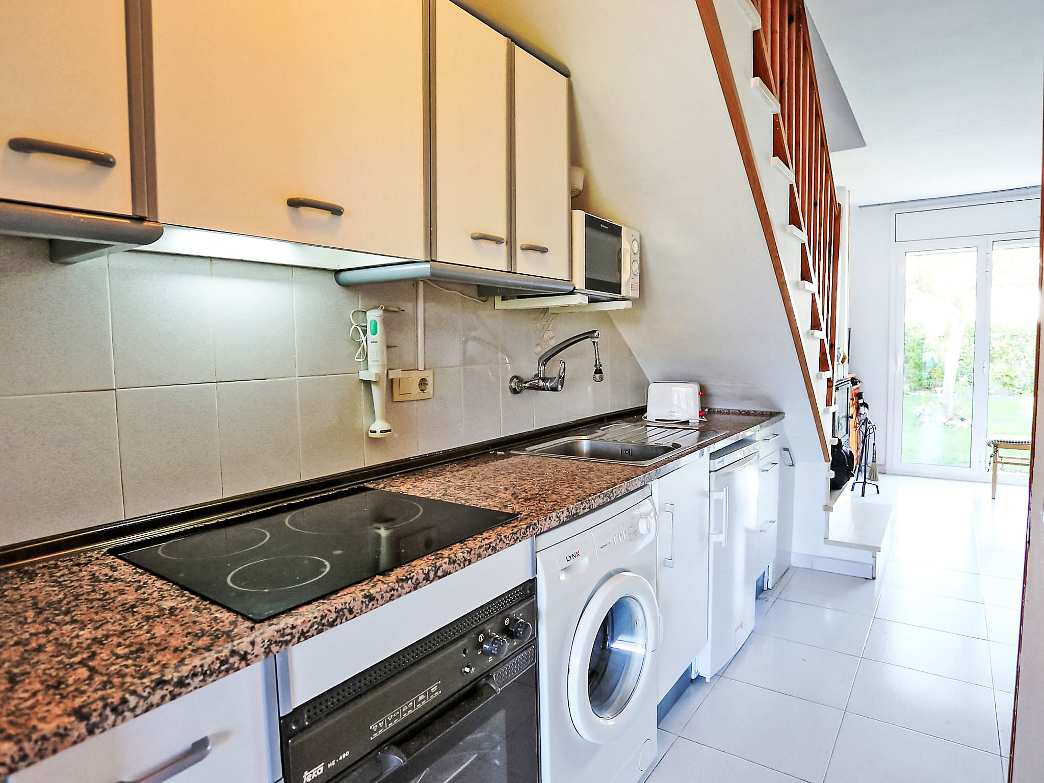 4-Zimmer-Reihenhaus 65 m2 auf 2 Stockwerken. Einfach eingerichtet: Wohn-/Esszimmer mit offenem Kamin, Esstisch, Sat-TV und Digital-TV. Ausgang zum Garten. 1 Zimmer 12 m2 mit 1 franz. Bett (135 cm), Bad/Bidet/WC. Ausgang zum Gartensitzplatz, zum Schwimmbad. Kochnische (Backofen, 4 Glaskeramikherd Platten, Toaster, Wasserkocher, Mikrowelle). Obergeschoss: 1 offenes Zimmer mit 1 Ausziehbett (2 Pers. 2 x 80 cm). Ausgang zur Terrasse. 1 Zimmer 10 m2 mit 2 Betten (90 cm). Ausgang zur Terrasse. Dusche/WC. Terrasse 6 m2, Terrasse 10 m2. Terrassenmöbel, Gartengrill. Zur Verfügung: Waschmaschine, Bügeleisen, Haartrockner. Internet (Wireless LAN, gratis). Parkplatz (eingezäunt, 2 Autos), Garage. Bitte beachten: Maximal 1 Haustier/Hund erlaubt. TV nur ES, DE, FR. HUTT004608
