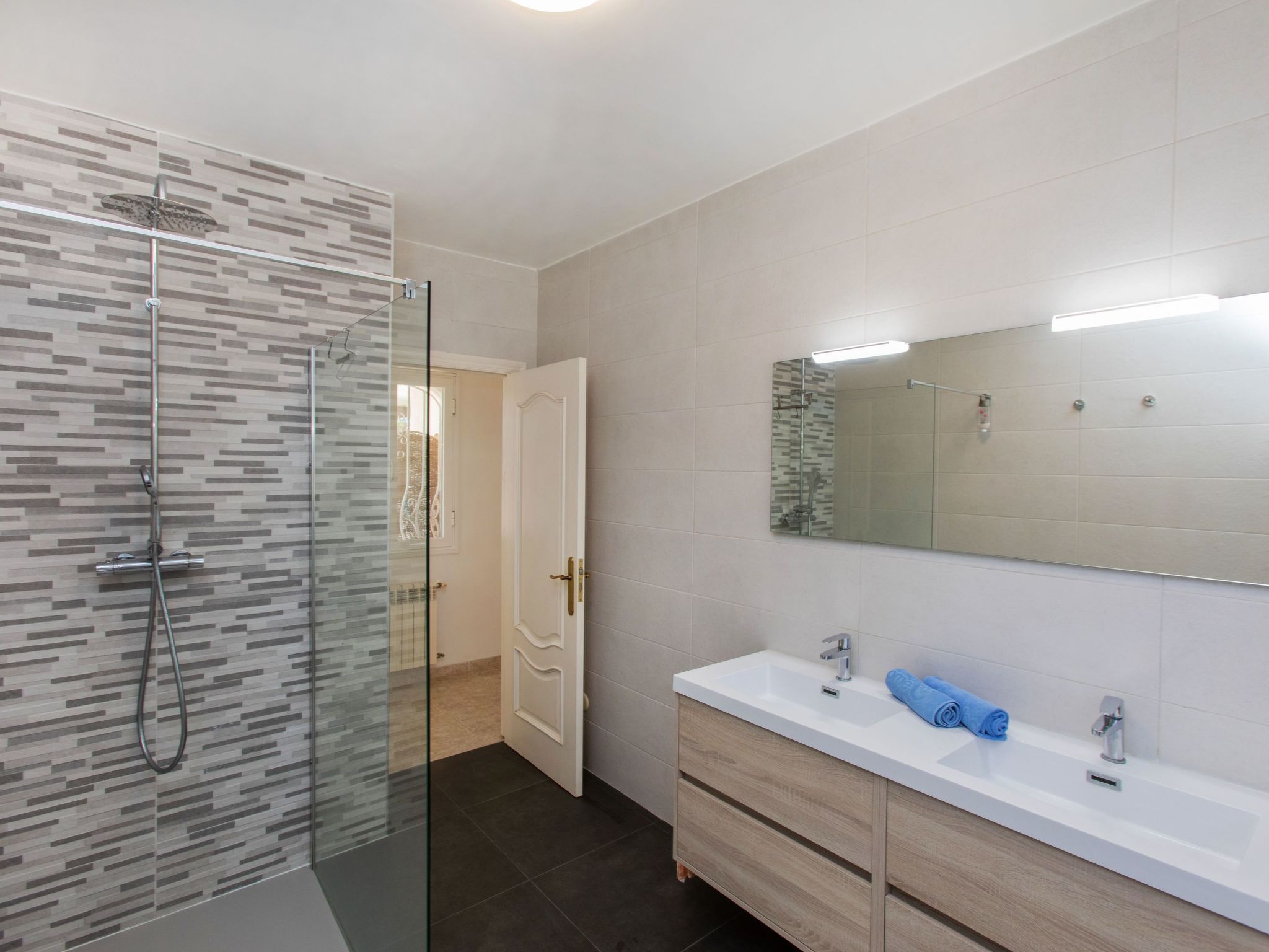 "Villa Mys", 4-Zimmer-Villa 135 m2. Komfortabel und gemütlich eingerichtet: Wohn-/Esszimmer 38 m2 mit Esstisch, Sat-TV und Digital-TV. Ausgang zum Gartensitzplatz. 1 Zimmer mit 1 franz. Bett (160 cm), Bad/Bidet/WC. 1 Zimmer mit 2 Betten (90 cm). 1 Zimmer mit 1 franz. Bett (160 cm). Küche (Backofen, Geschirrspüler, 4 Glaskeramikherd Platten, Toaster, Wasserkocher, Mikrowelle, Tiefkühler, elektrische Kaffeemaschine). Dusche/Bidet/WC. Klimaanlage. Terrassenmöbel, Gartengrill. Schöne Sicht auf das Schwimmbad und den Garten. Zur Verfügung: Waschmaschine, Safe, Bügeleisen, Kinderhochstuhl, Babybett, Haartrockner. Internet (Wireless LAN, gratis). Parkplatz beim Haus. Bitte beachten: TV nur ES, DE, FR. HUTT005920