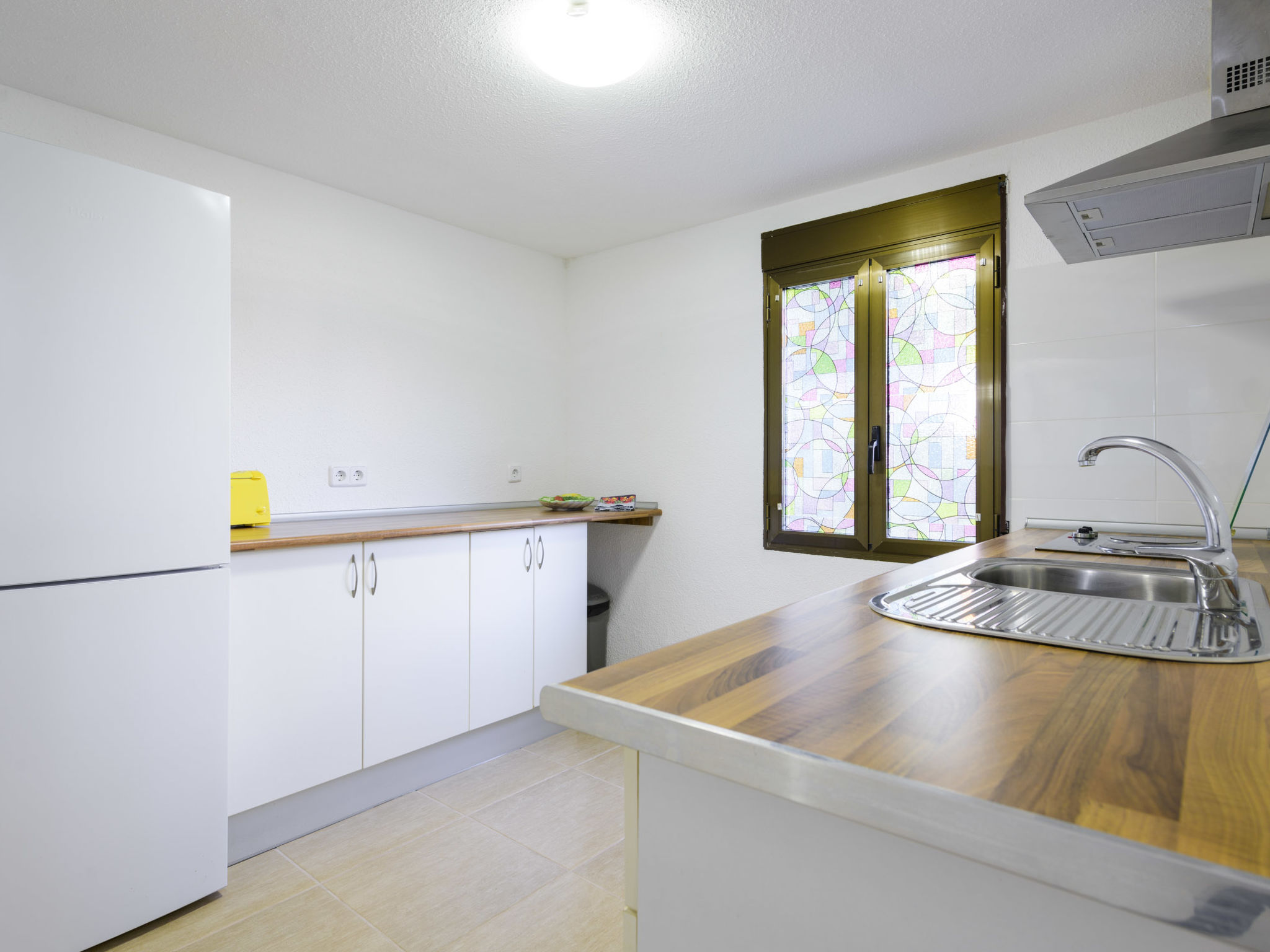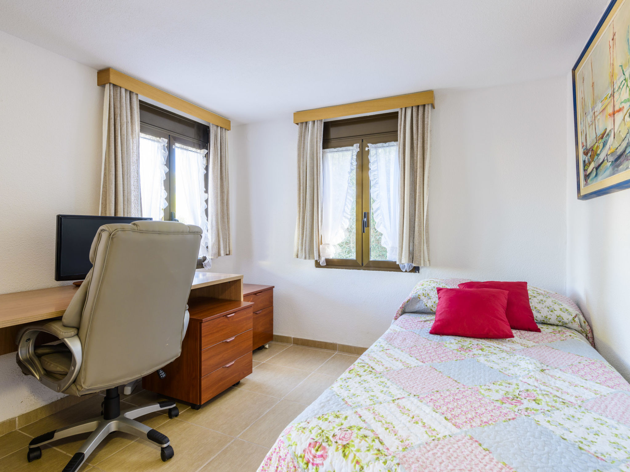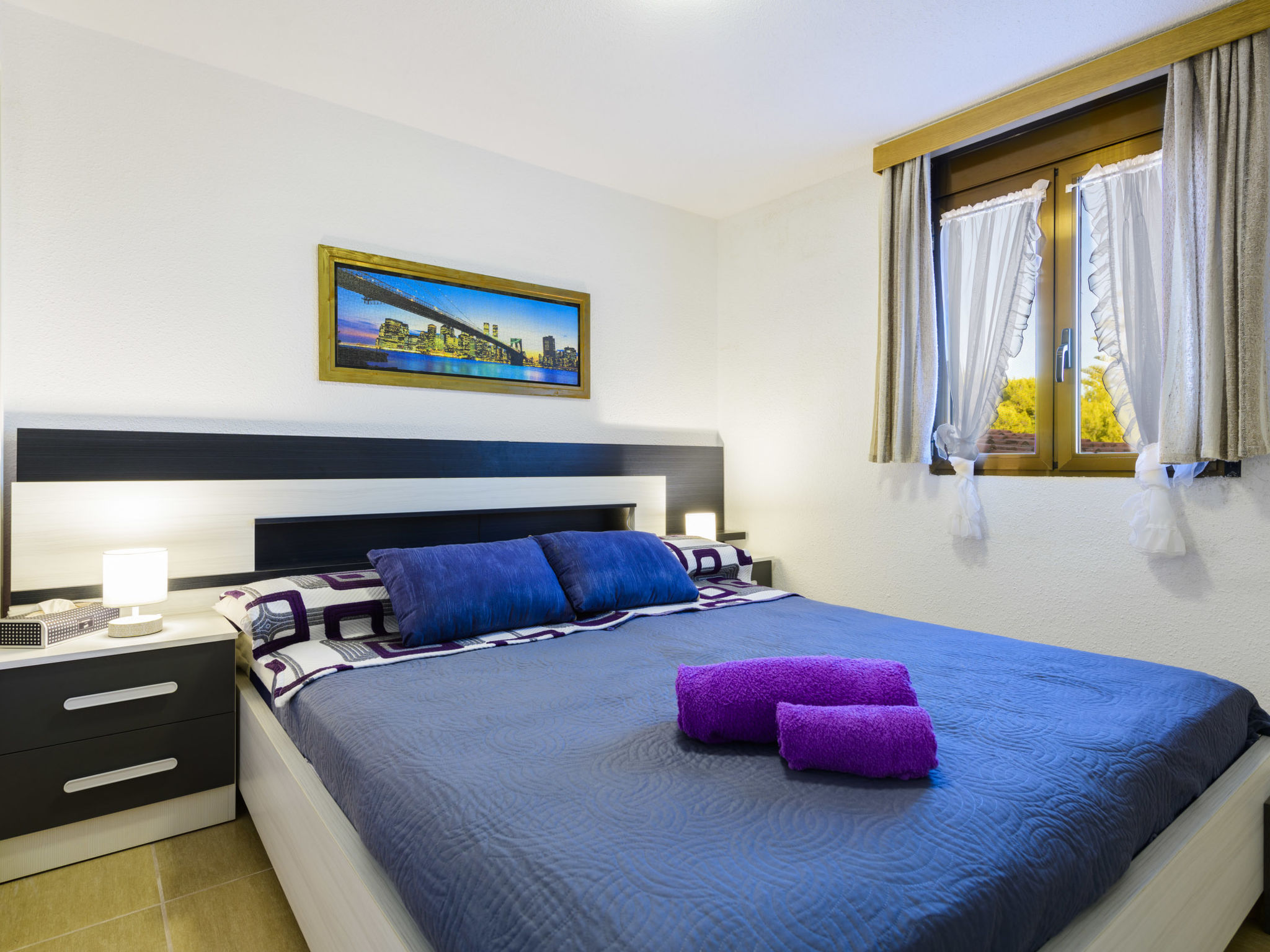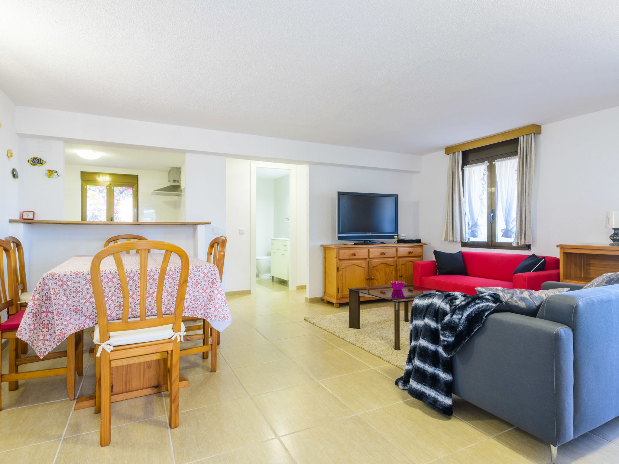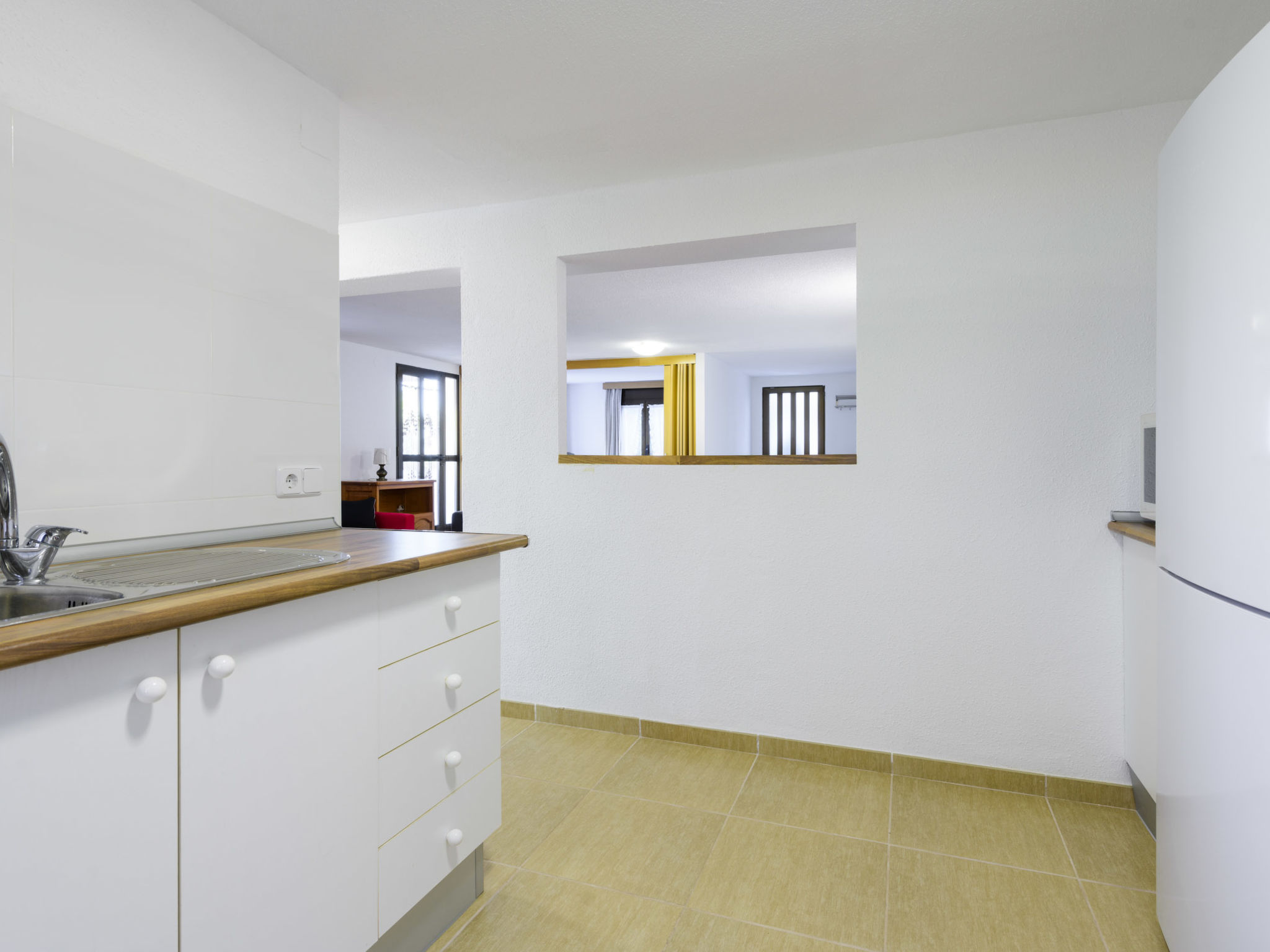 "El Refugio II", 2-Zimmer-Wohnung 45 m2 im 2. Stock. Objekt geeignet für 2 Erwachsene + 1 Kind. Einfach und zweckmässig eingerichtet: Wohn-/Esszimmer mit Esstisch, Digital-TV, Flachbildschirm und Ventilator. Ausgang zur Terrasse. Kleines Durchgangszimmer mit 1 Bett (90 cm, Länge 190 cm). 1 Zimmer mit 1 franz. Bett (150 cm, Länge 190 cm). Küche (2 Kochplatten, Toaster, Mikrowelle, Tiefkühler, elektrische Kaffeemaschine). Dusche/WC. G-Heizung. Heizung nicht in allen Räumen. Terrasse. Terrassenmöbel. Sicht auf das Meer, das Schwimmbad, den Garten und die Ortschaft. Zur Verfügung: Bügeleisen, Kinderhochstuhl, Babybett bis 2 Jahre, Haartrockner. Internet (Wireless LAN, gratis). Garage auf dem Grundstück (1 Auto). Maximal 1 Haustier/Hund erlaubt. R000000001
