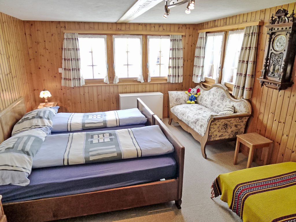 Rustikales Chalet "Meisen", Baujahr 1912, renoviert im Jahre 2002. Im Ort, zentrale, ruhige, sonnige Lage, 300 m vom Skigebiet. Im Hause: Skiraum, Zentralheizung. Schmale Zufahrt bis zum Haus. Im Winter bitte Schneeketten mitbringen, im Winter 4x4 empfohlen. Parkplatz (extra) beim Haus. Einkaufsgeschäft 200 m, Lebensmittelgeschäft 50 m, Restaurant 150 m, Bushaltestelle 500 m. Sessellift, Skisportanlagen, Skipisten 300 m, Skischule 500 m, Eisfeld 100 m.