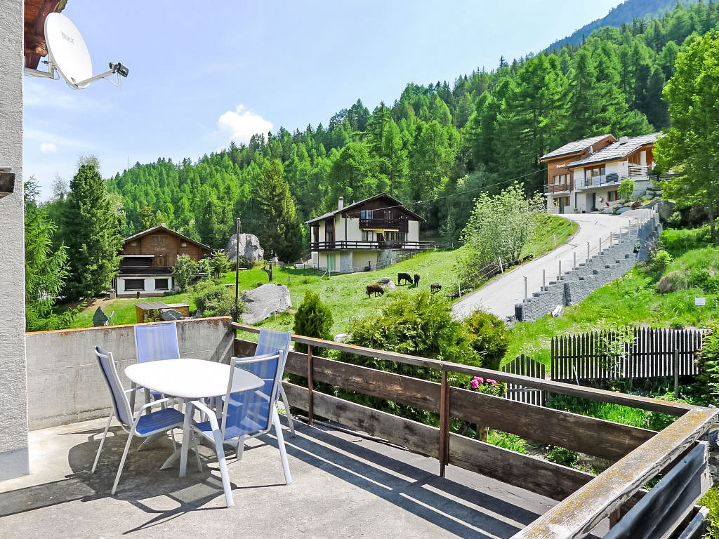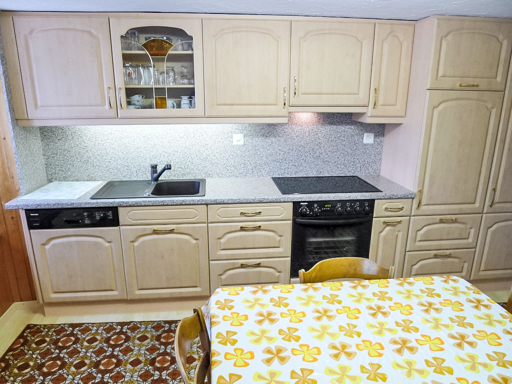 2-Zimmer-Wohnung 70 m2 im 1. Stock. Gemütlich eingerichtet: Wohn-/Schlafzimmer mit 1 Doppelbett und Sat-TV. Ausgang zum Balkon, Richtung Süden. 1 Zimmer mit 3 Betten. Ausgang zum Balkon. Wohnküche (Backofen, Geschirrspüler, 4 Glaskeramikherd Platten) mit Esstisch, Radio. Dusche/WC. E-Heizung. Balkon. Terrassenmöbel, Sitzplatz. Sehr schöne Sicht auf die Berge, die Landschaft und die Ortschaft. Parkplatz (extra). 1 Haustier/Hund erlaubt.