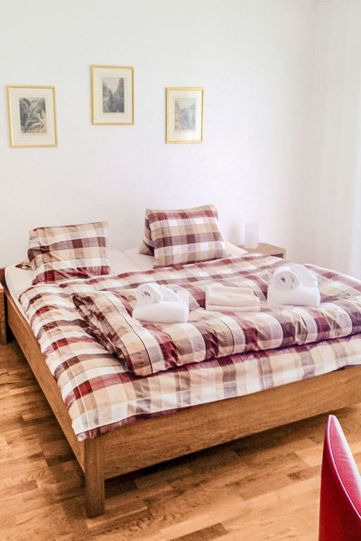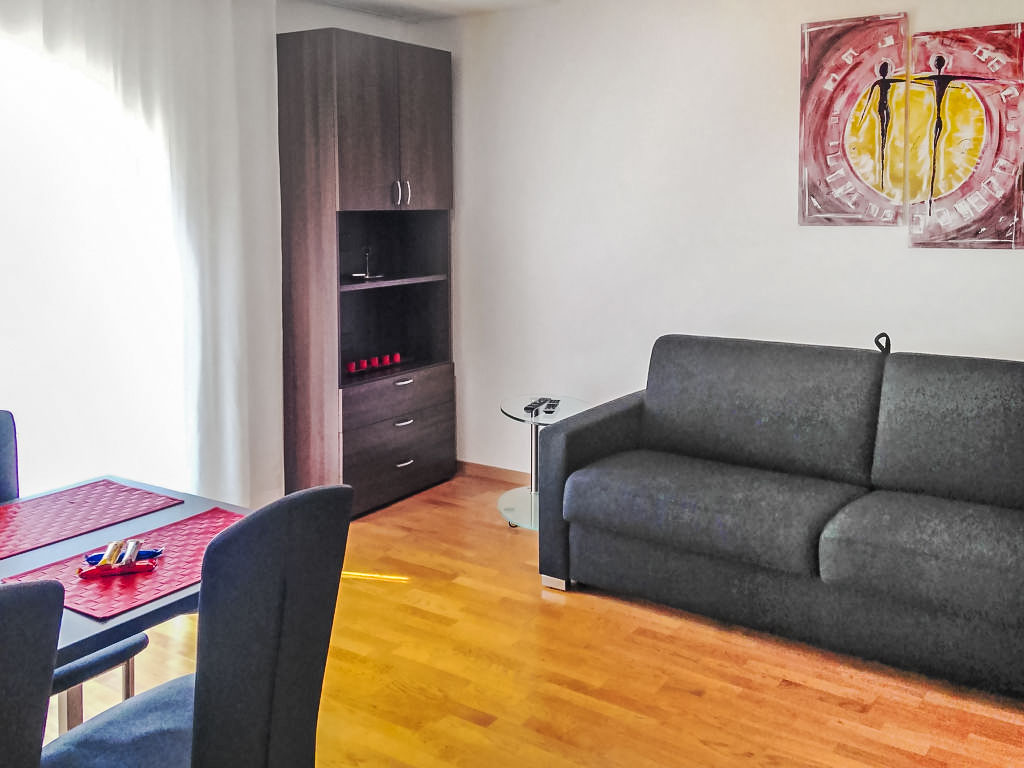 "A02", 2-Zimmer-Wohnung 49 m2, im Erdgeschoss. Komfortabel und geschmackvoll eingerichtet: Wohn-/Esszimmer mit Essecke, Kabel-TV, CD und DVD. Ausgang zum Balkon, Richtung Süden und Richtung Westen. 1 Doppelzimmer mit 2 Betten. Offene Küche (Backofen, Geschirrspüler, 4 Glaskeramikherd Platten, Mikrowelle). 2 Duschen/WC. Terrasse 29 m2. Terrassenmöbel. Sehr schöne Sicht auf die Berge und die Ortschaft. Zur Verfügung: Kinderhochstuhl. Internet (Wireless LAN, gratis). Parkplatz (überdacht). Bitte beachten: Nichtraucher-Unterkunft.
