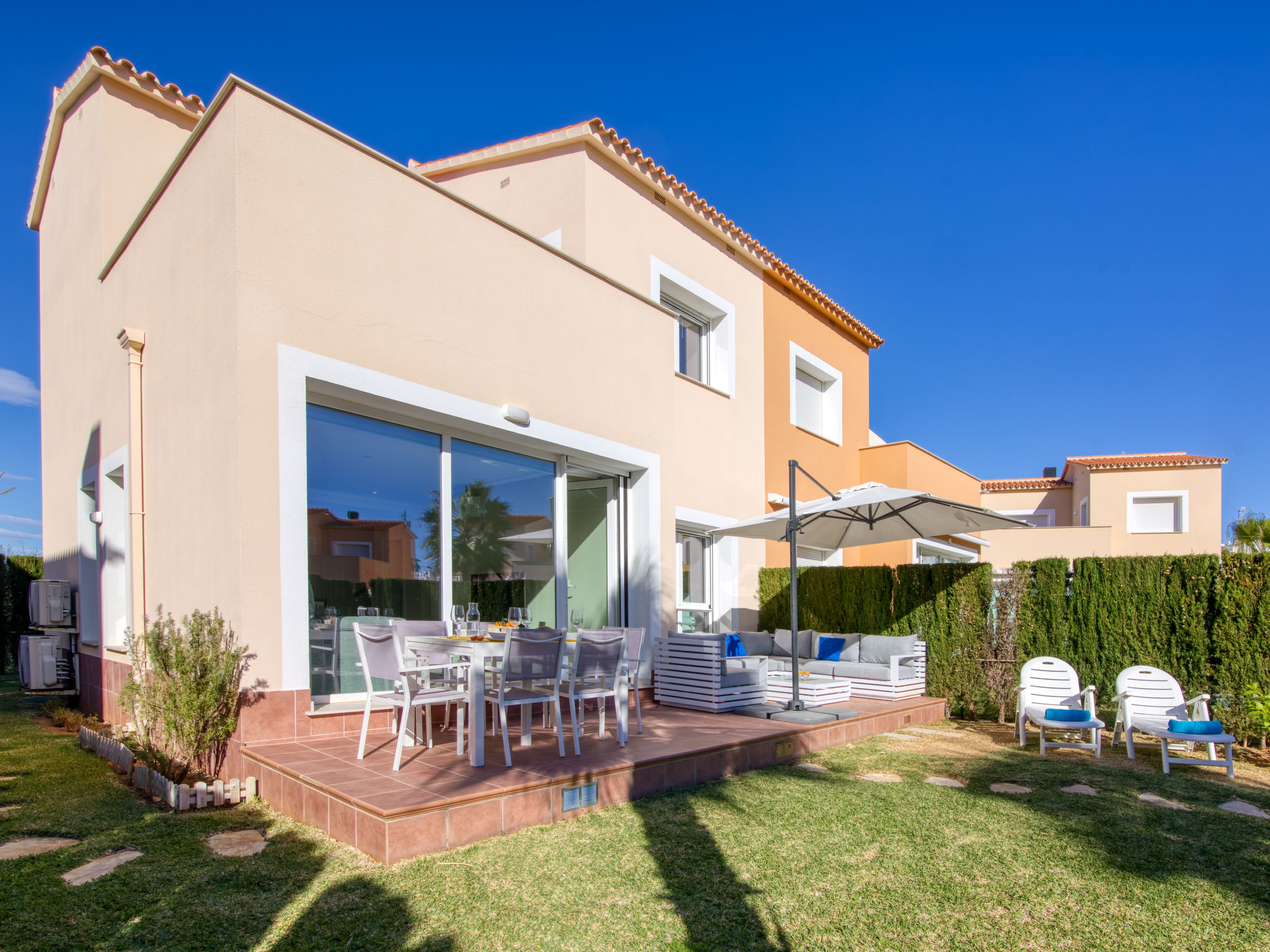 "Malibu Beach", 4-Zimmer-Doppelhaushälfte 115 m2 auf 2 Stockwerken. Geräumig und hell, sehr schön und modern eingerichtet: Wohn-/Esszimmer mit Digital-TV, Klimaanlage und Warmluftheizung. Ausgang zum Gartensitzplatz. 1 Zimmer mit 1 franz. Bett (180 cm, Länge 200 cm), Klimaanlage und Warmluftheizung. Offene Küche (Backofen, Geschirrspüler, 3 Induktionskochplatten, Toaster, Mikrowelle, Tiefkühler, elektrische Kaffeemaschine). Dusche/WC. Obergeschoss: 1 Zimmer mit 2 Betten (90 cm, Länge 190 cm), Klimaanlage und Warmluftheizung. Ausgang zur Terrasse. 1 Zimmer mit 1 franz. Bett (180 cm, Länge 200 cm), Klimaanlage und Warmluftheizung. Ausgang zur Terrasse. Dusche/WC. Grosser Gartensitzplatz 100 m2. Terrassenmöbel, Gartengrill, Liegestühle. Zur Verfügung: Waschmaschine, Bügeleisen, Kinderhochstuhl, Babybett, Haartrockner. Internet (Wireless LAN, gratis). Parkplatz Nr. 16. Bitte beachten: TV nur ES. VT-50204-V