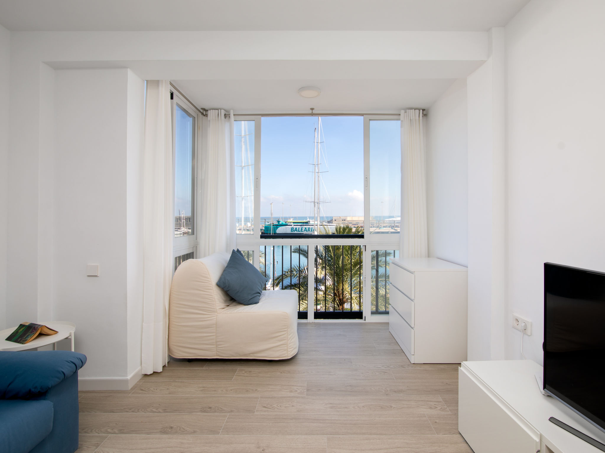 "Puerto Denia", 2-Zimmer-Wohnung 45 m2. Hell, renoviert im Jahre 2021, sehr schön und geschmackvoll eingerichtet: Wohn-/Esszimmer mit Digital-TV, Klimaanlage und Warmluftheizung. 1 Zimmer mit 1 franz. Bett (140 cm, Länge 190 cm). Offene Küche (Backofen, 3 Induktionskochplatten, Toaster, Mikrowelle, Tiefkühler, elektrische Kaffeemaschine). Dusche/WC. Herrliche Sicht auf das Meer und den Hafen. Zur Verfügung: Waschmaschine, Bügeleisen, Kinderhochstuhl, Babybett, Haartrockner. Internet (Wireless LAN, gratis). Bitte beachten: TV nur ES. R000000001