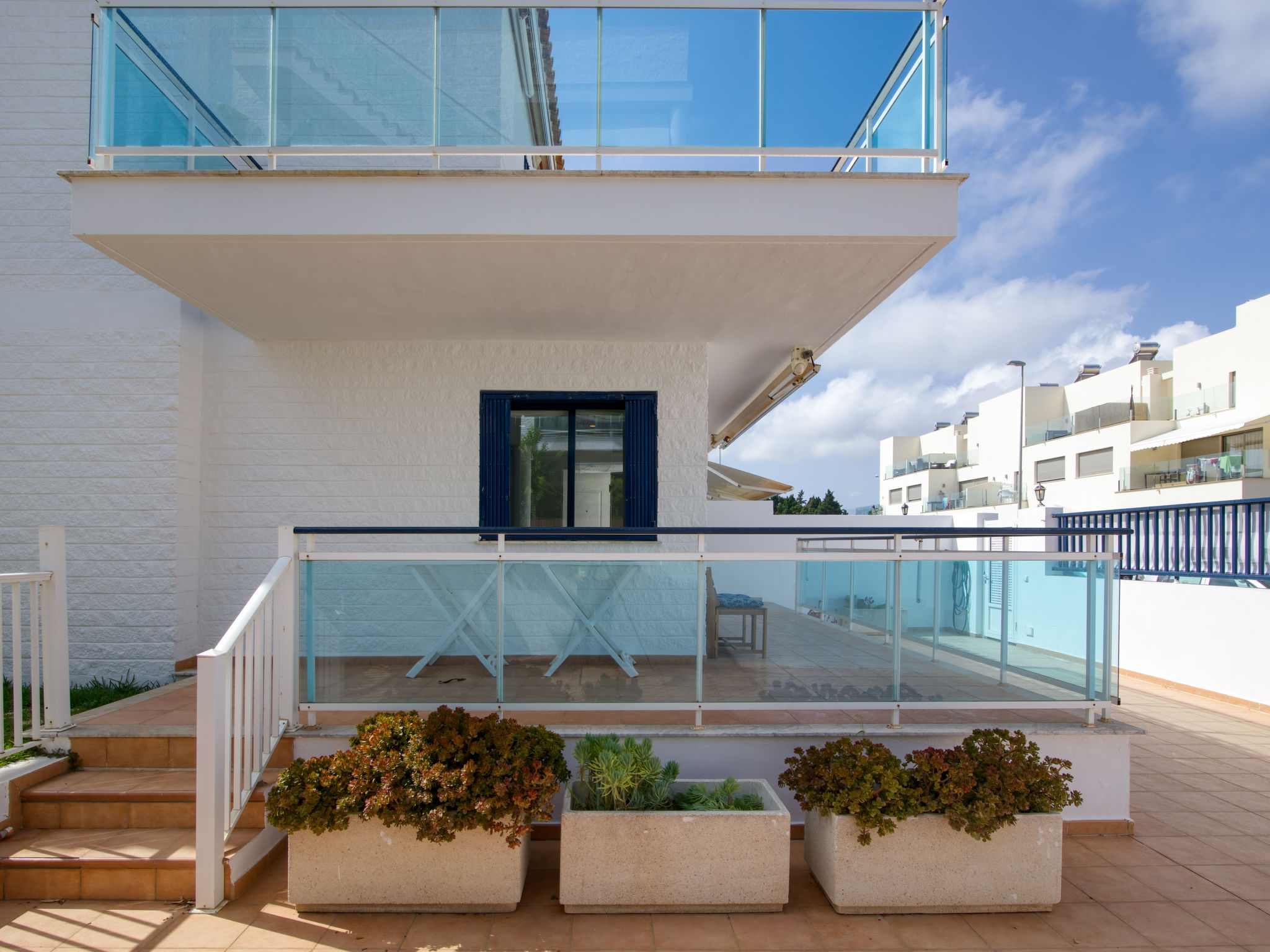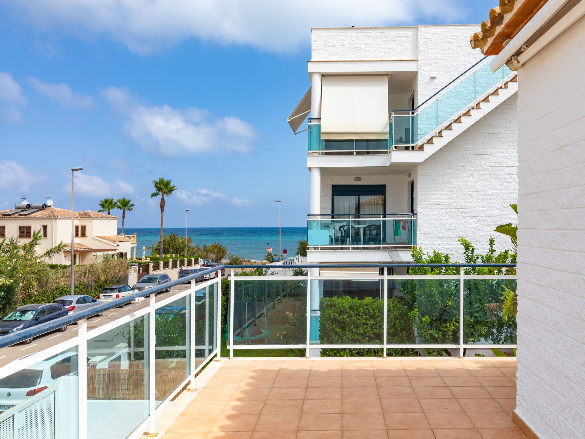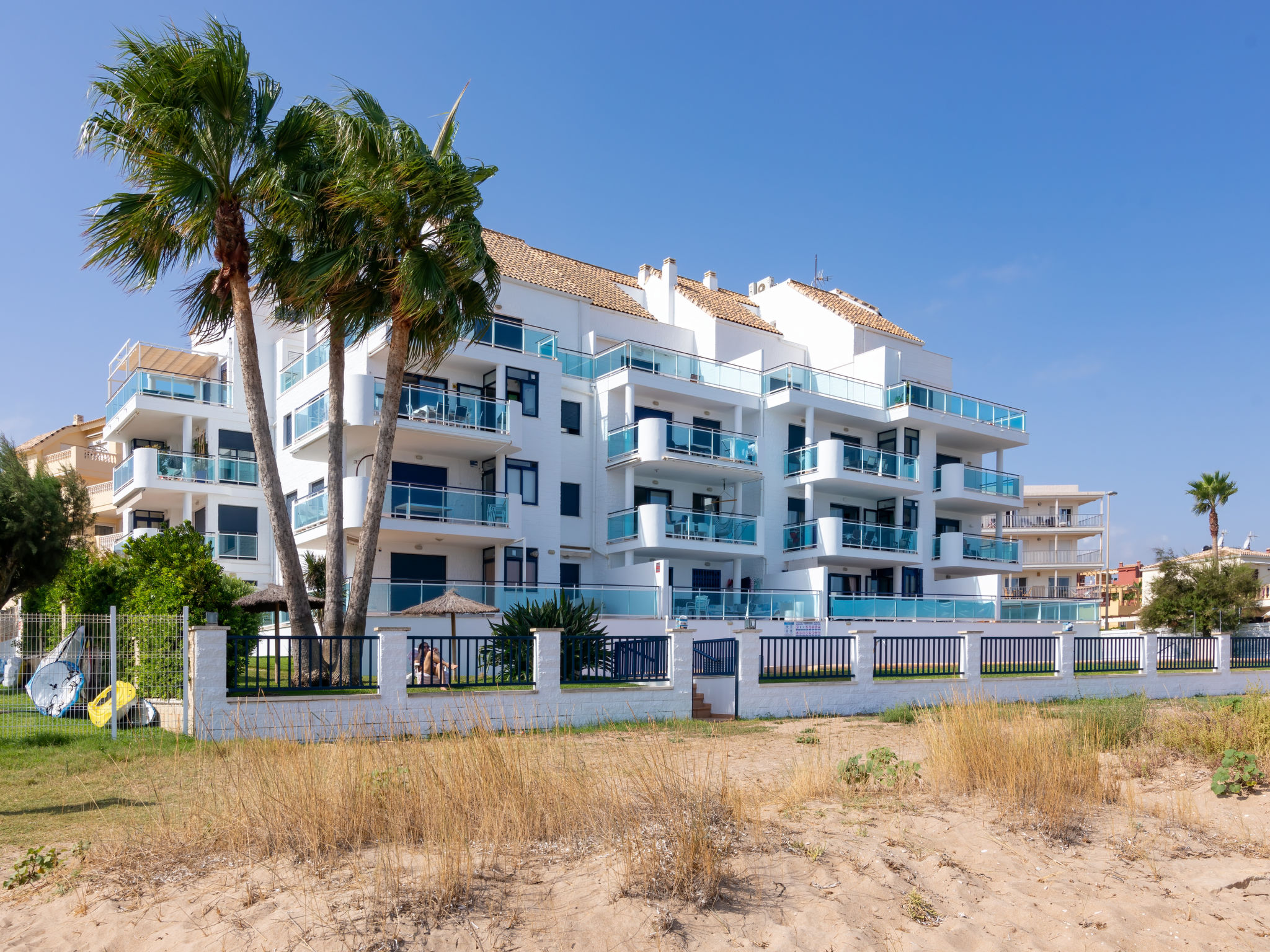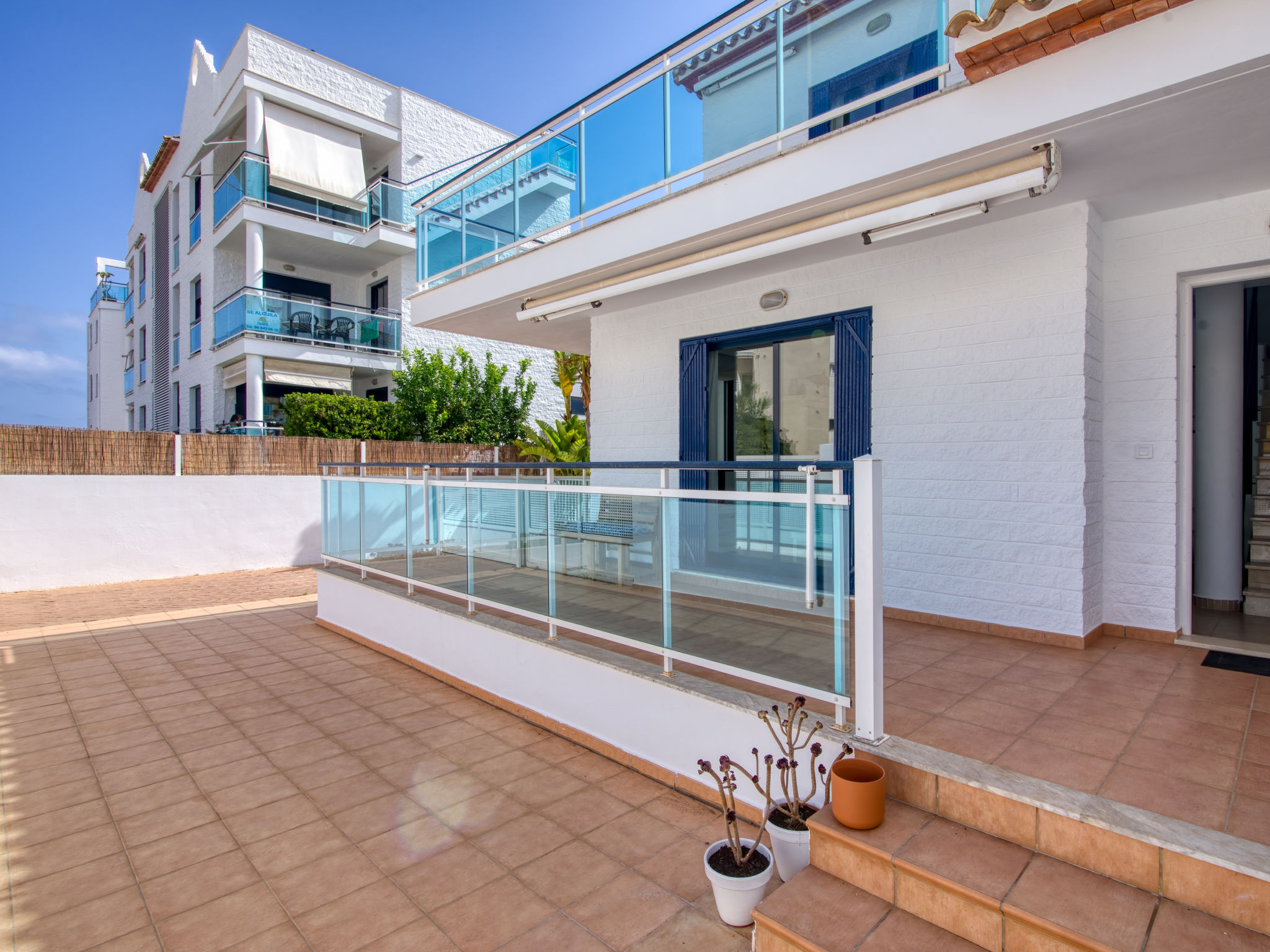 Grosses, sehr schönes, sehr komfortables Doppelhaus "Jardines de Denia V", auf 2 Stockwerken. Les Marines, 7 km vom Zentrum von Denia, ruhige, sonnige Lage, 50 m vom Meer, 50 m vom Strand, direkter Zugang zum Strand. Zur Mitbenutzung: Grundstück (eingezäunt) mit Rasen und Bäumen, Schwimmbad (15 x 7 m, 110 - 210 cm tief, saisonale Verfügbarkeit: 01.Jan.-31.Dez.) mit Innentreppe. Kinderbecken, Aussendusche. Zur Alleinbenutzung: mit Rasen und Bäumen. Gartenmöbel, Grill, Parkplatz auf dem Grundstück. Supermarkt 1.2 km, Restaurant, Café 450 m, Sandstrand "Platja de l'Estanyó" 50 m. Sporthafen 7.5 km, Jacht-Hafen 7.5 km, Surfschule 3 km, Segelschule 3 km, Tennis 6 km. Der Besitzer akzeptiert keine Jugendgruppen.