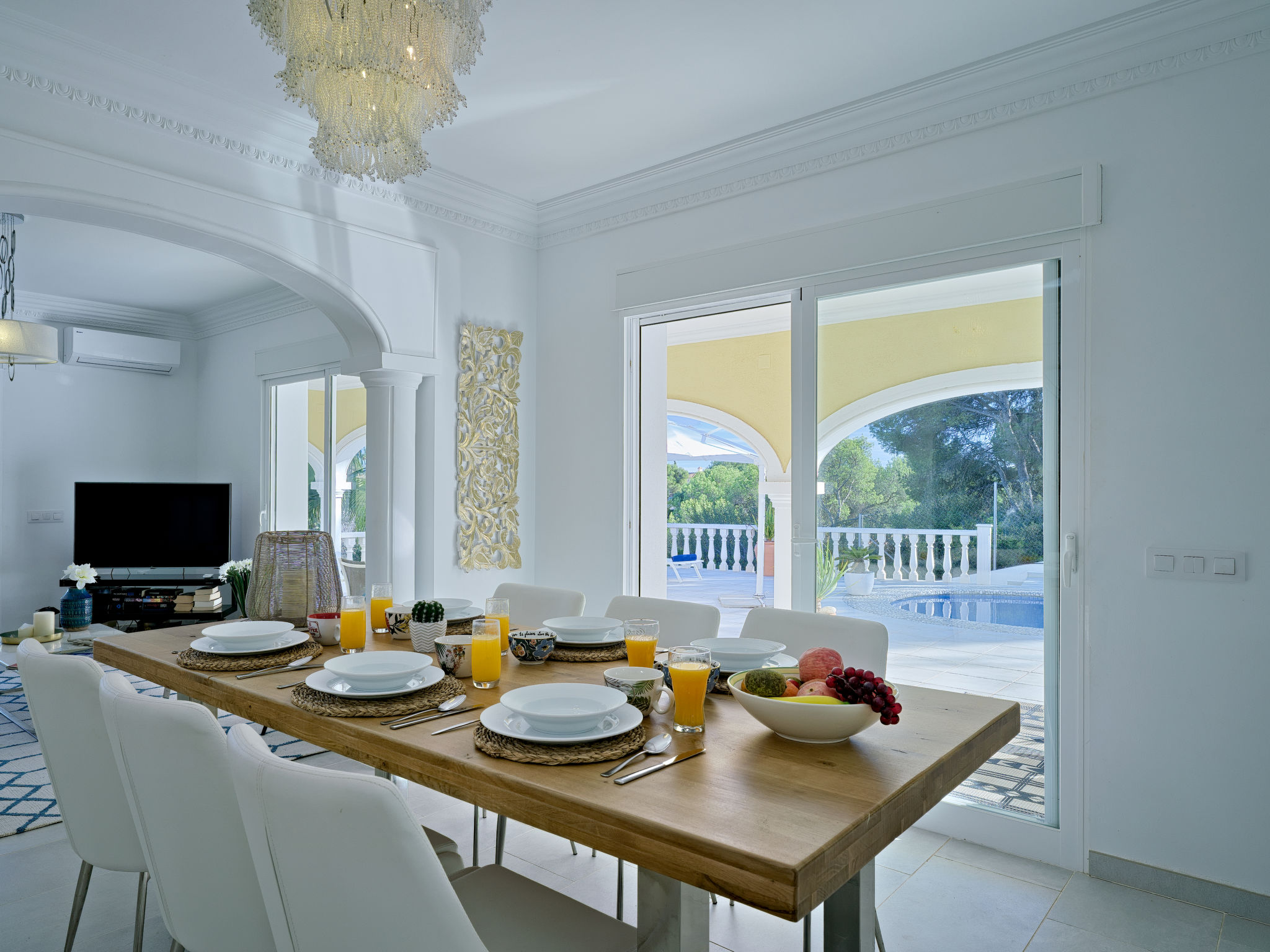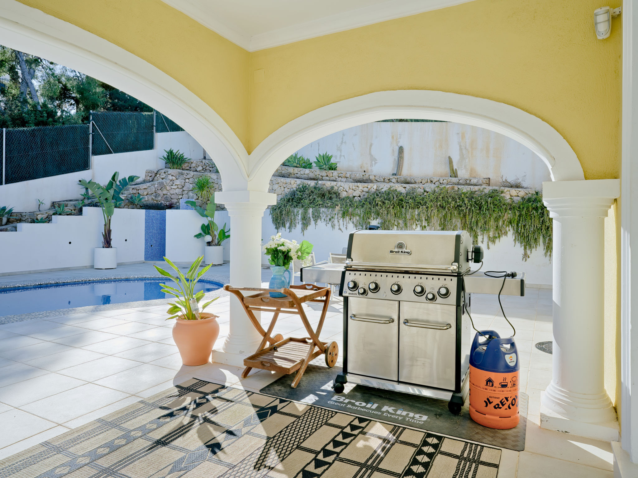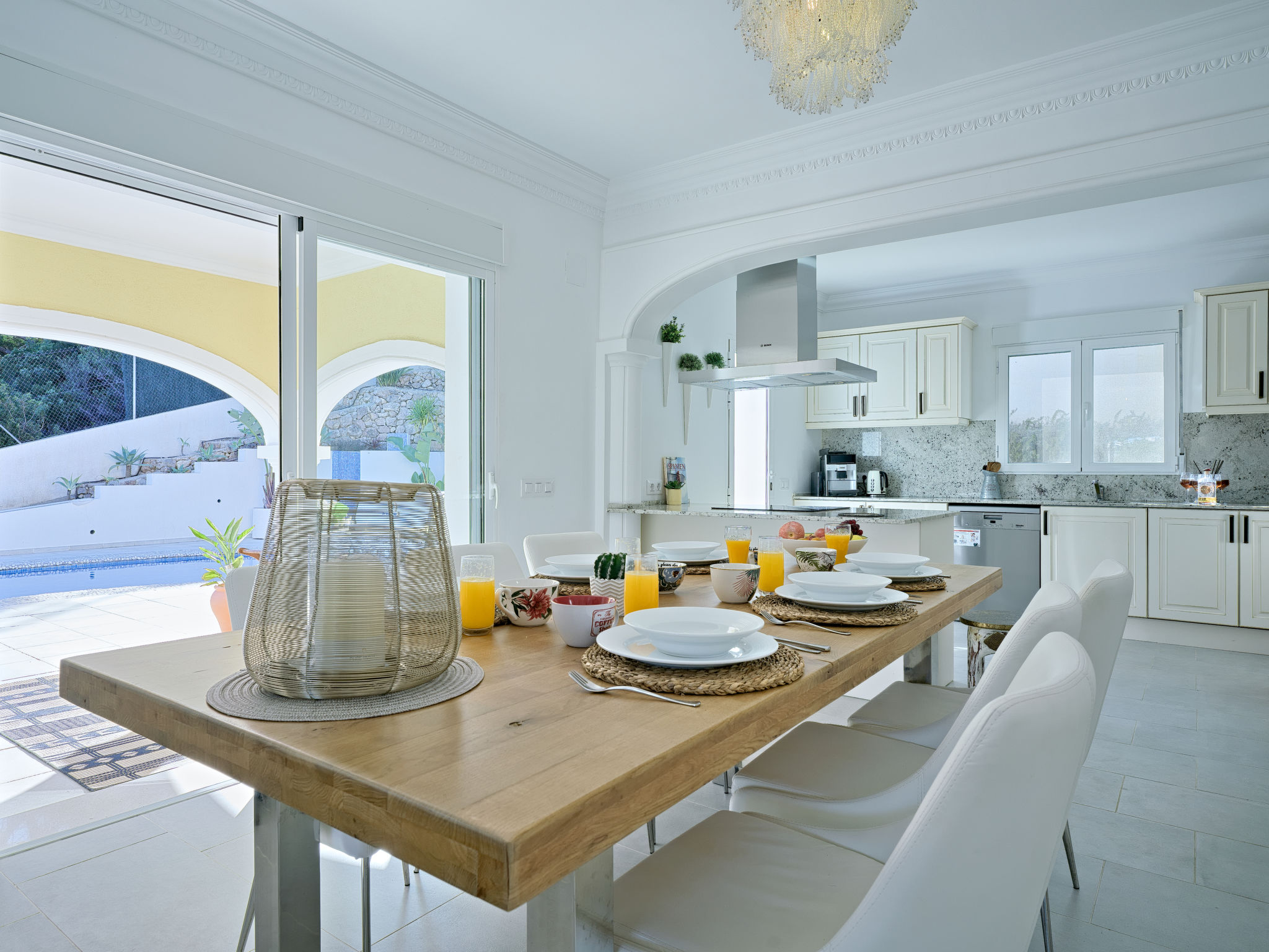 "Villa Ewa", 4-Zimmer-Villa 200 m2. Geräumig und hell, sehr schön und luxuriös eingerichtet: Wohn-/Esszimmer mit Sat-TV, Klimaanlage und Warmluftheizung. Ausgang zur Terrasse, zum Schwimmbad. 1 Zimmer mit 1 franz. Bett (2 x 90 cm, Länge 200 cm), Dusche/Bidet/WC, Klimaanlage und Warmluftheizung. 1 Zimmer mit 1 franz. Bett (150 cm, Länge 200 cm), Klimaanlage und Warmluftheizung mit 1 franz. Bett (2 x 90 cm, Länge 200 cm), Klimaanlage und Warmluftheizung. Offene Küche (Backofen, Geschirrspüler, 3 Glaskeramikherd Platten, Toaster, Tiefkühler, elektrische Kaffeemaschine) mit Klimaanlage und Warmluftheizung. Ausgang zur Terrasse, zum Schwimmbad. Dusche/Bidet/WC, sep. WC. Grosse Terrasse. Terrassenmöbel, Gartengrill, Liegestühle, Loggia. Zur Verfügung: Waschmaschine, Bügeleisen, Kinderhochstuhl, Babybett, Haartrockner. Internet (Wireless LAN, gratis). VT487795A