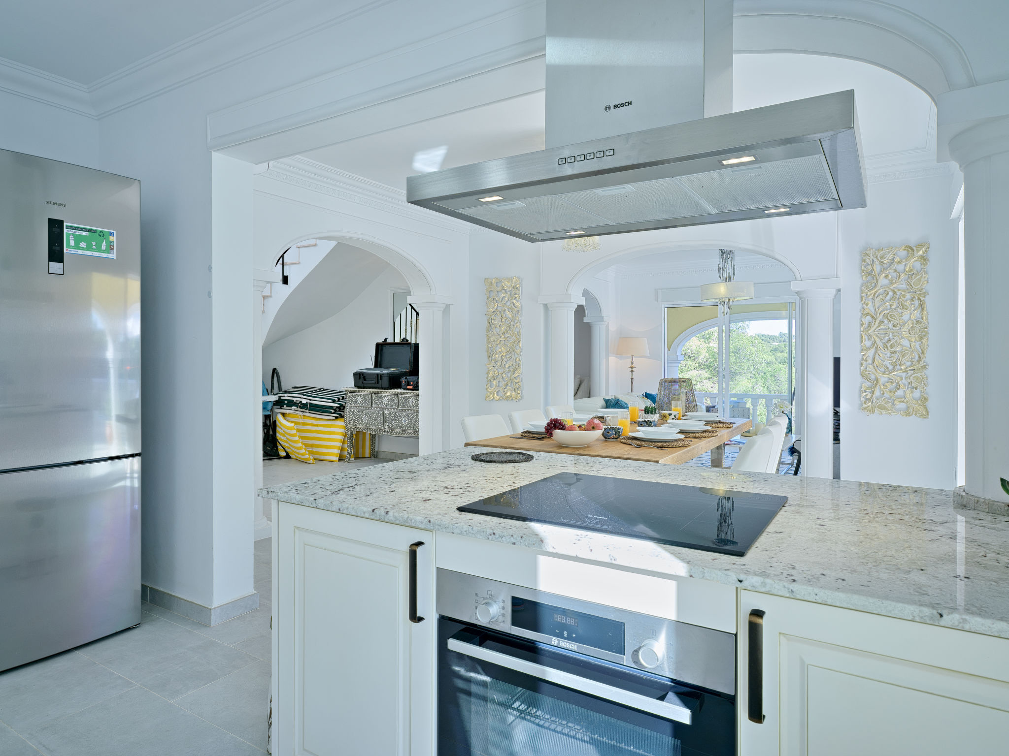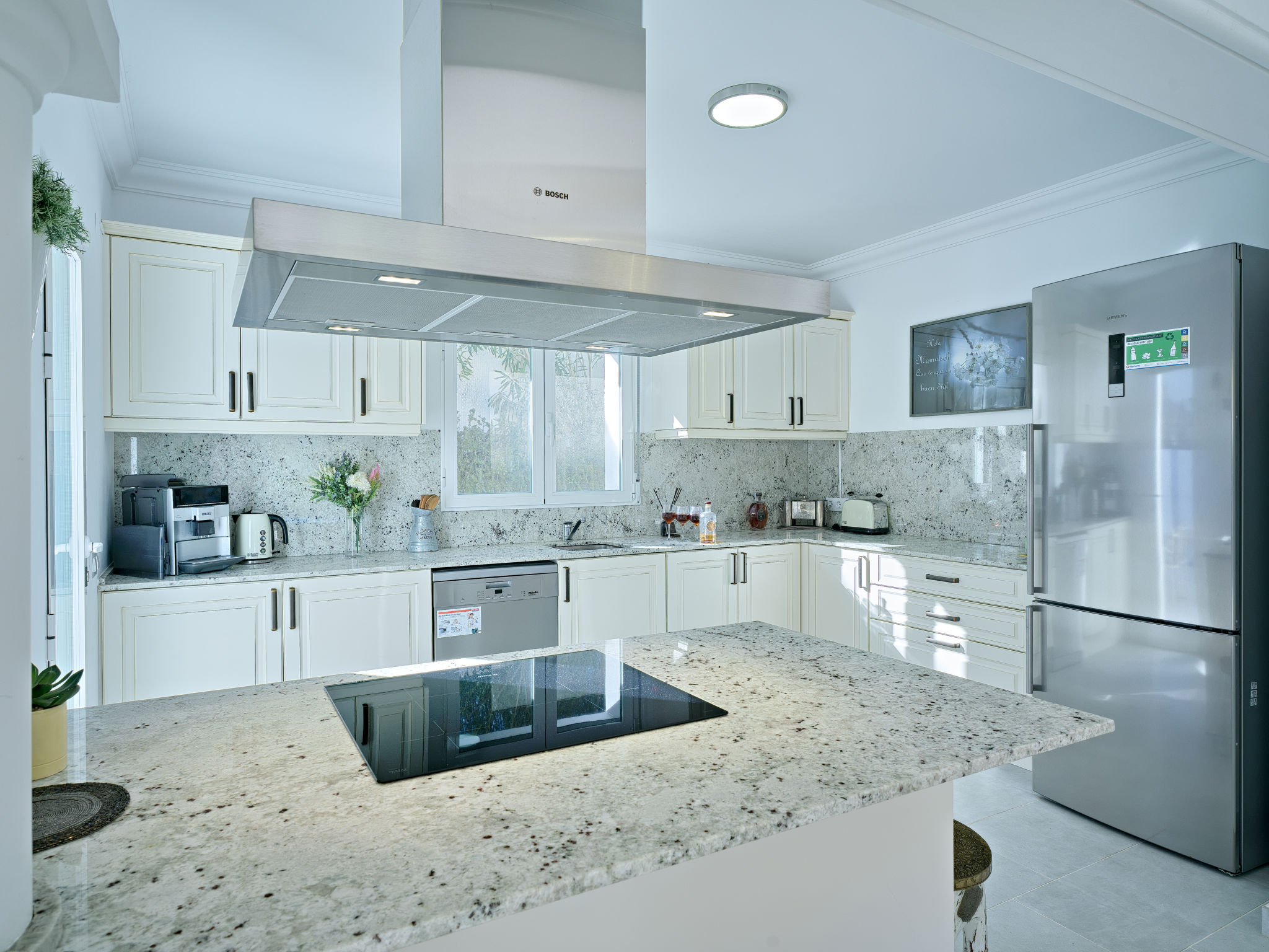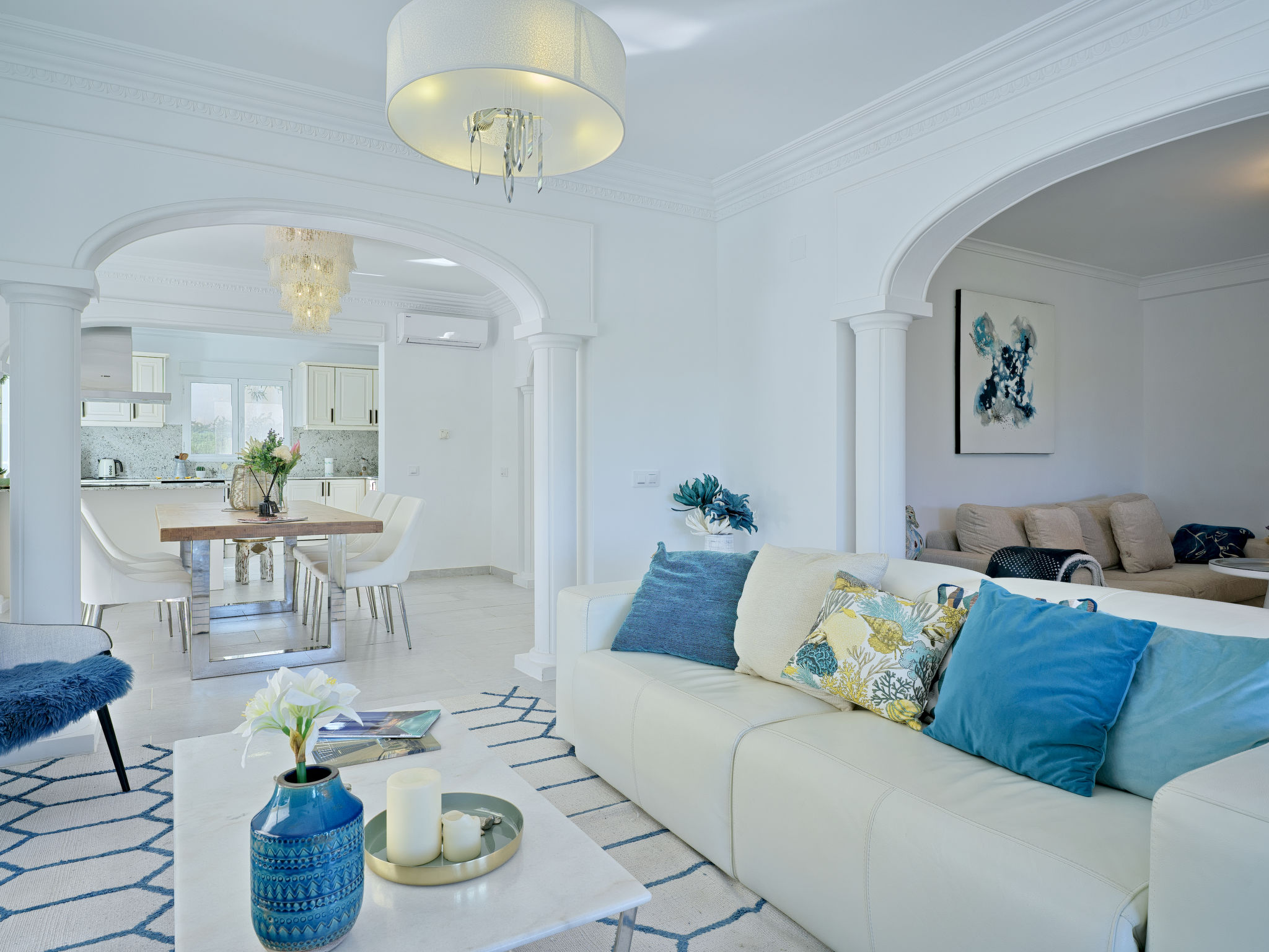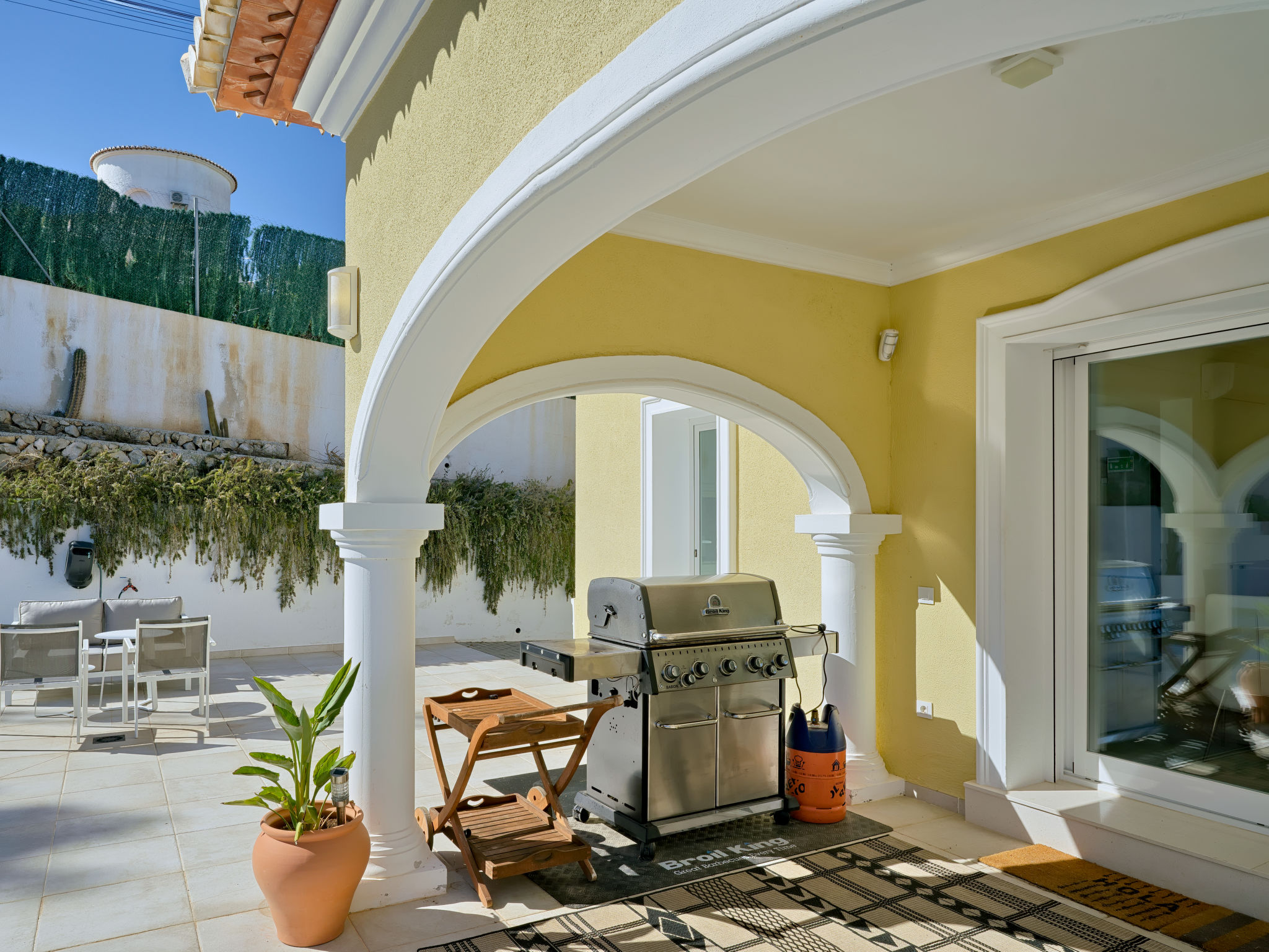 "Villa Ewa", 4-Zimmer-Villa 200 m2. Geräumig und hell, sehr schön und luxuriös eingerichtet: Wohn-/Esszimmer mit Sat-TV, Klimaanlage und Warmluftheizung. Ausgang zur Terrasse, zum Schwimmbad. 1 Zimmer mit 1 franz. Bett (2 x 90 cm, Länge 200 cm), Dusche/Bidet/WC, Klimaanlage und Warmluftheizung. 1 Zimmer mit 1 franz. Bett (150 cm, Länge 200 cm), Klimaanlage und Warmluftheizung mit 1 franz. Bett (2 x 90 cm, Länge 200 cm), Klimaanlage und Warmluftheizung. Offene Küche (Backofen, Geschirrspüler, 3 Glaskeramikherd Platten, Toaster, Tiefkühler, elektrische Kaffeemaschine) mit Klimaanlage und Warmluftheizung. Ausgang zur Terrasse, zum Schwimmbad. Dusche/Bidet/WC, sep. WC. Grosse Terrasse. Terrassenmöbel, Gartengrill, Liegestühle, Loggia. Zur Verfügung: Waschmaschine, Bügeleisen, Kinderhochstuhl, Babybett, Haartrockner. Internet (Wireless LAN, gratis). VT487795A