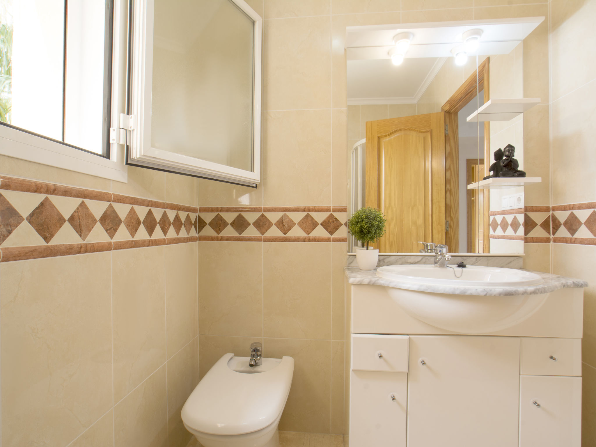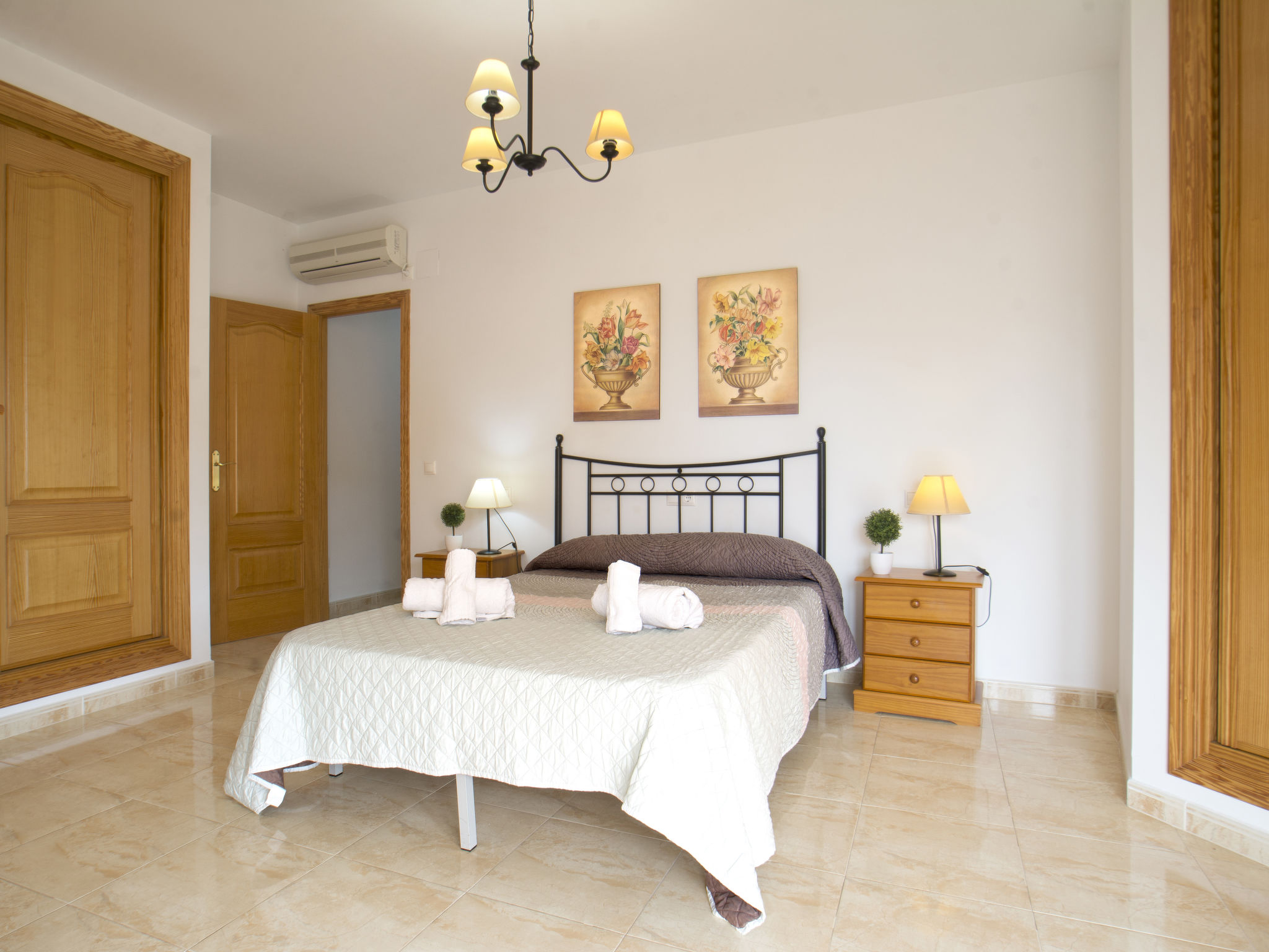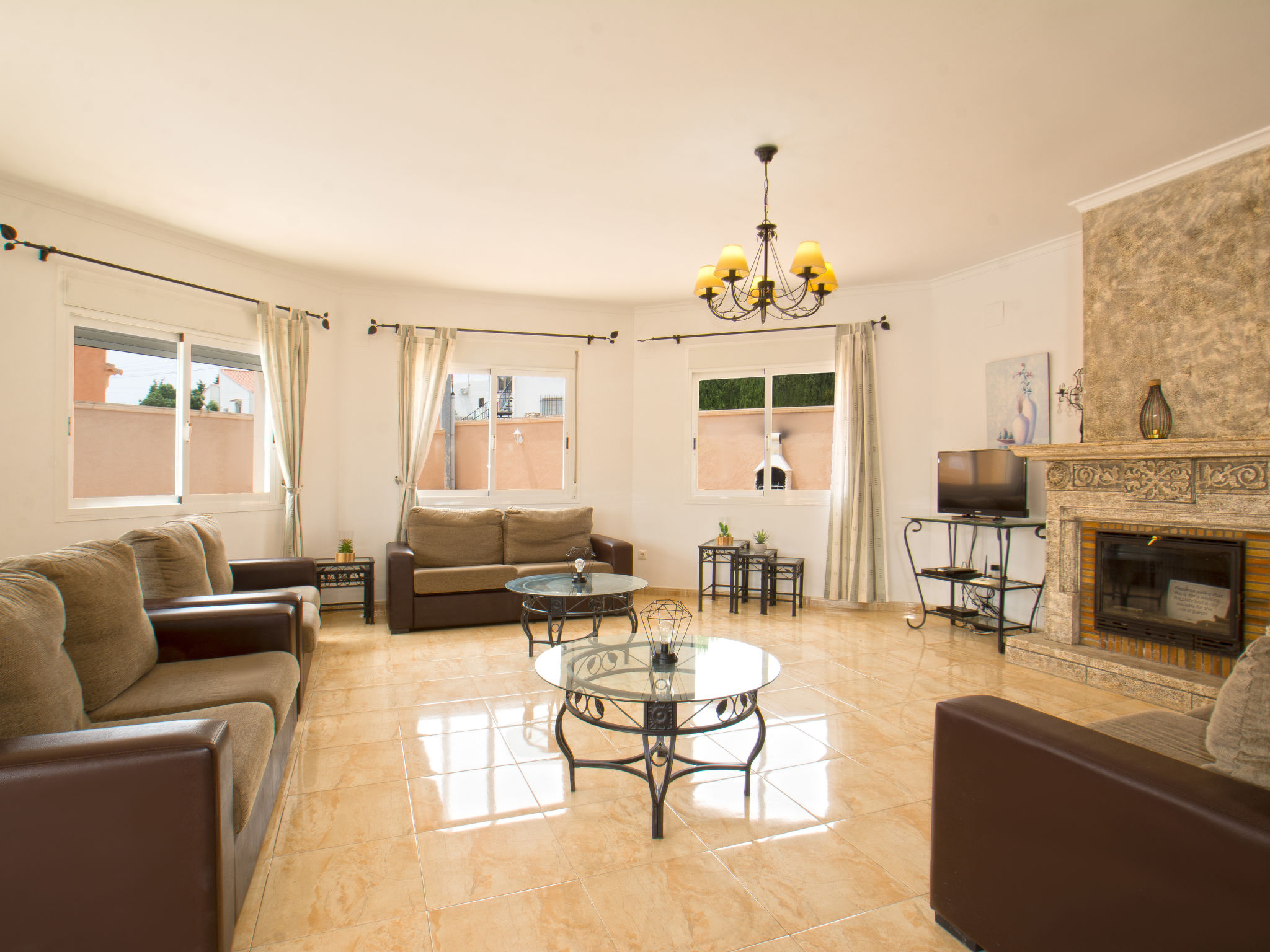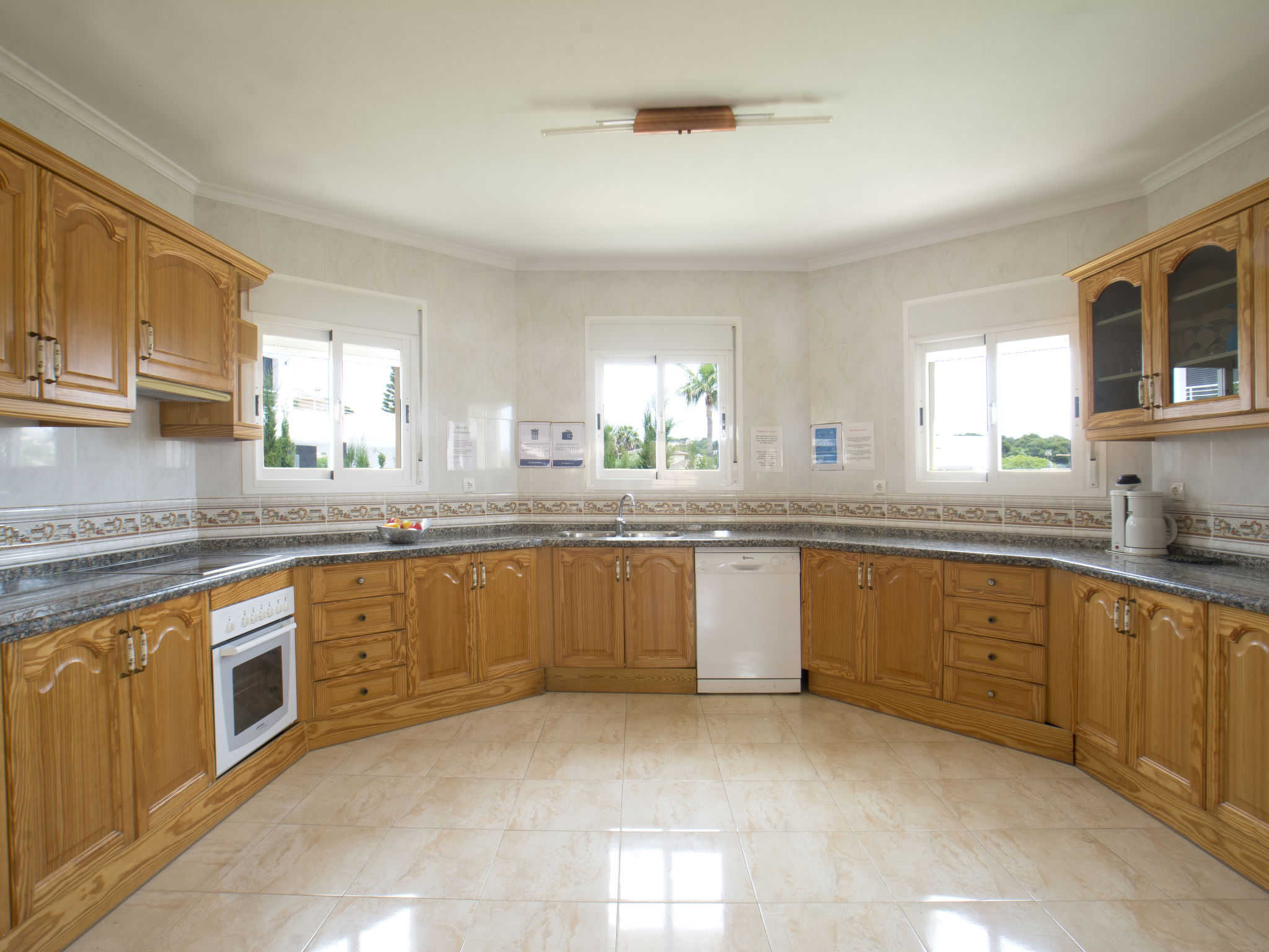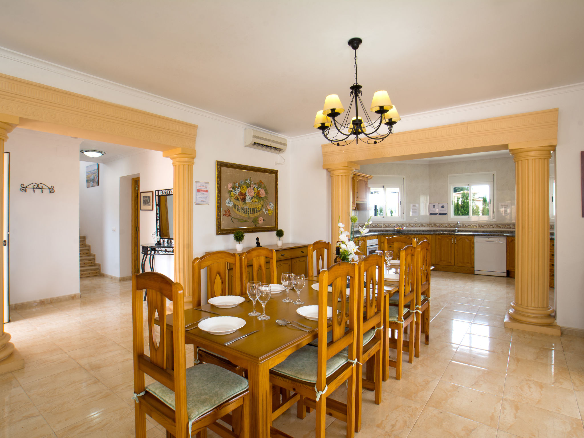 "Calpetenis", 5-Zimmer-Villa 311 m2. Wohn-/Esszimmer mit Esstisch, Sat-TV, Internationale TV-Sender und Klimaanlage. 2 Zimmer, jedes Zimmer mit 1 franz. Bett und Klimaanlage. 3 Zimmer, jedes Zimmer mit 2 Betten und Klimaanlage. Küche (Backofen, Geschirrspüler, 4 Glaskeramikherd Platten, Toaster, Wasserkocher, Mikrowelle, Tiefkühler, elektrische Kaffeemaschine). Bad/Bidet/WC, 3 Duschen/WC. Gartensitzplatz. Terrassenmöbel, Gartengrill. Sicht auf das Schwimmbad. Zur Verfügung: Waschmaschine, Bügeleisen. Internet (Wireless LAN, gratis). Garage auf dem Grundstück. AT-456320-A