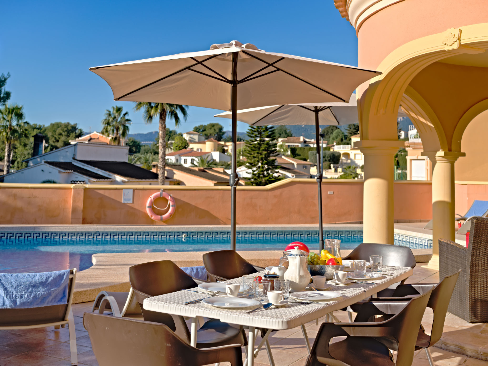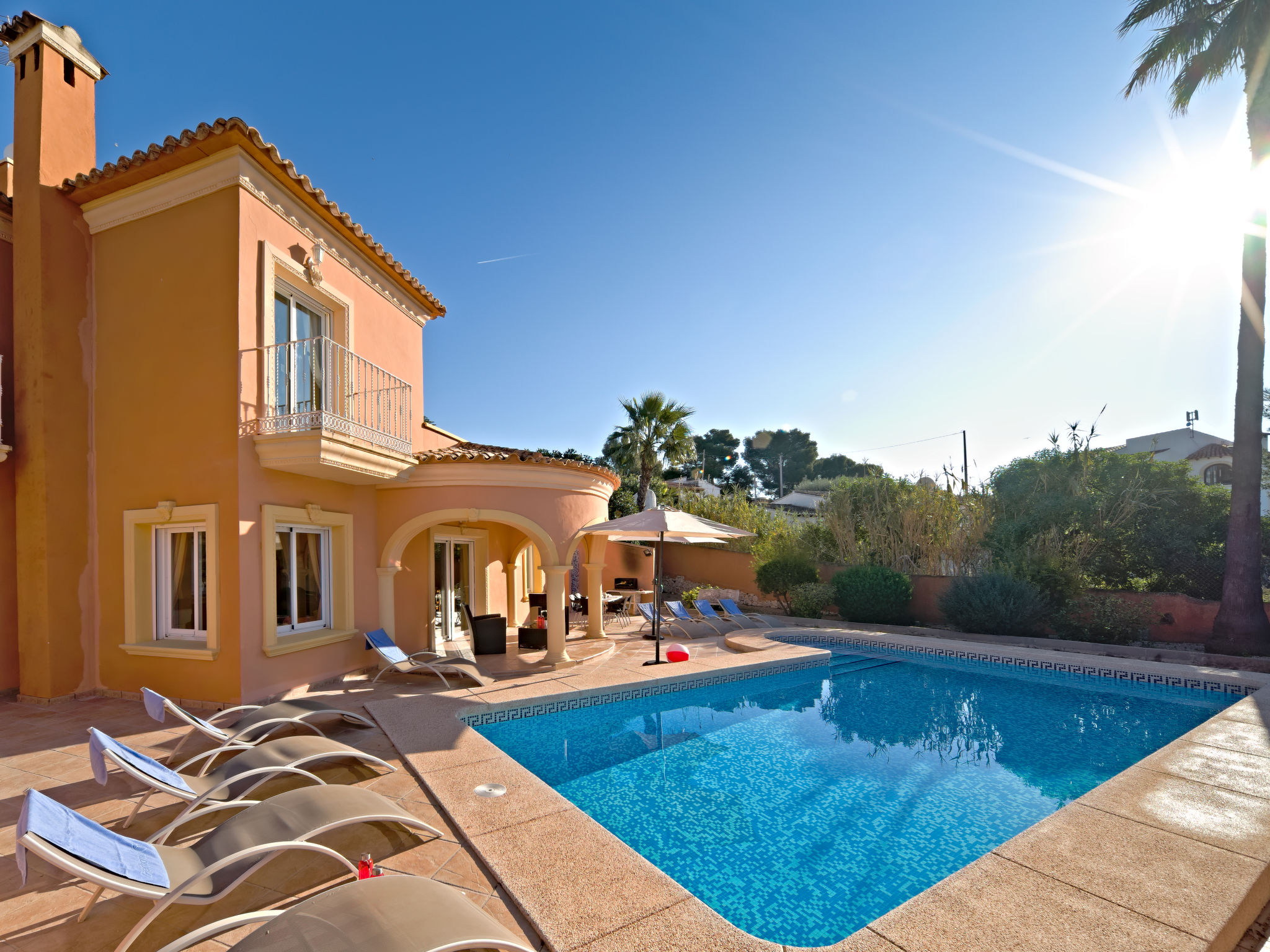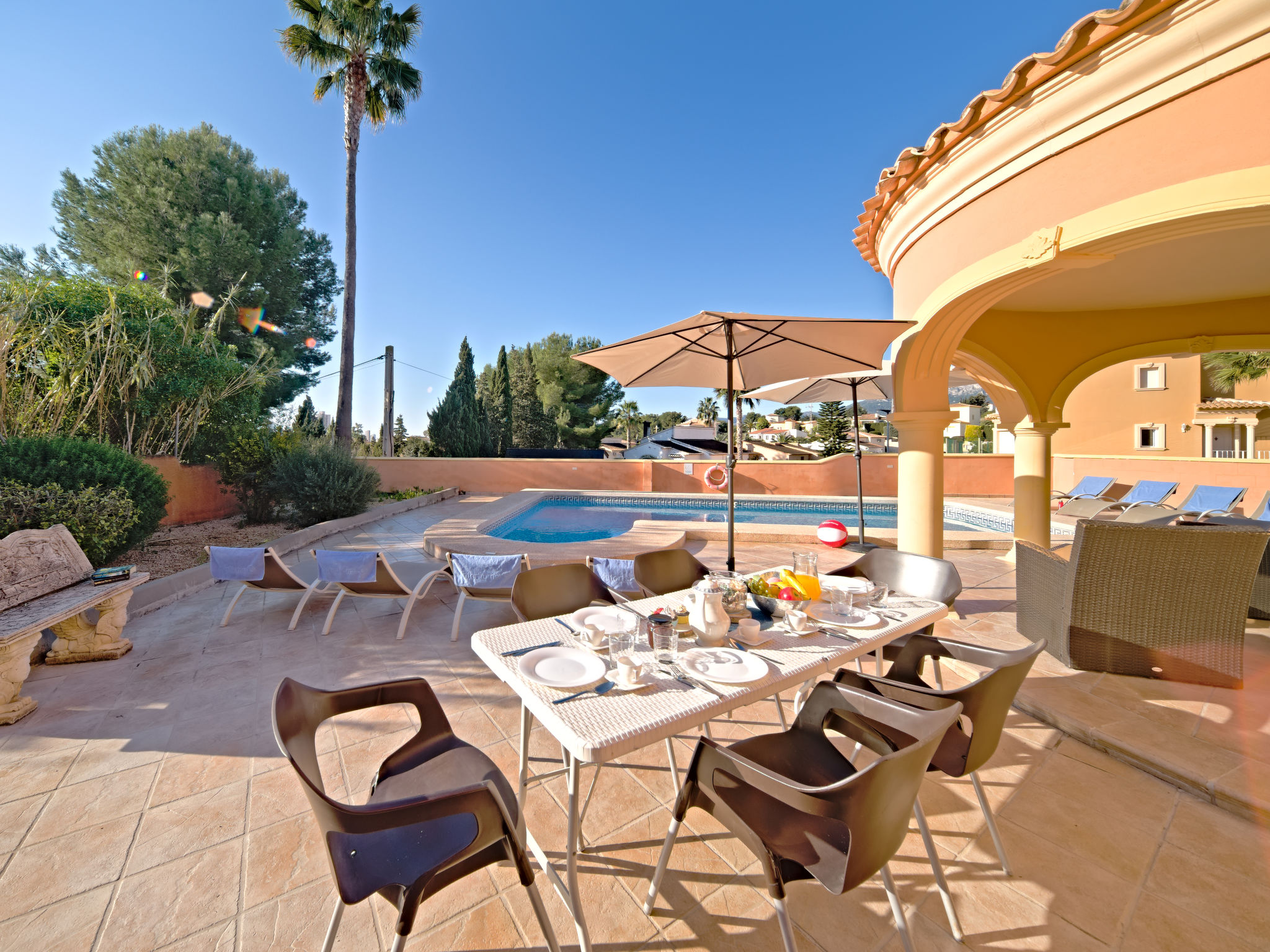 Villa. 1 km vom Meer, 1 km vom Strand. Zur Alleinbenutzung: Garten (eingezäunt), Schwimmbad eckig (8 x 4 m, 125 - 175 cm tief, 01.01.-31.12.). Gartenmöbel, Parkplatz auf dem Grundstück. Supermarkt 1 km, Sandstrand "La Fossa" 1 km. Nahe gelegene Sehenswürdigkeiten: Peñon de Ifach 2 km, Aqualandia 25 km, Terra Mitica 35 km, Aeropuerto El Altet Alicante-Elche 75 km. Der Besitzer akzeptiert keine Jugendgruppen.