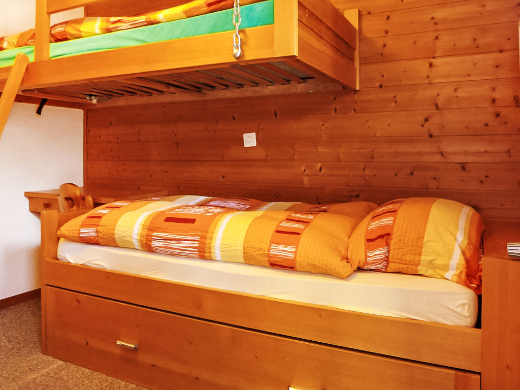 "Lò Batcho", 4-Zimmer-Chalet auf 3 Stockwerken. Objekt geeignet für 4 Erwachsene + 3 Kinder. Einfach und zweckmässig eingerichtet: Wohn-/Esszimmer mit offenem Kamin, TV und Flachbildschirm. Ausgang zum Balkon. Galerie mit 2 Schlafmöglichkeiten. Offene Küche (4 Kochplatten, Backofen, Geschirrspüler, Toaster, Wasserkocher, elektrische Kaffeemaschine, Racletteofen, Fondue Set (Käse)). Ausgang zur Terrasse. Sep. WC. Unteres Geschoss: 1 Zimmer mit 1 Doppelbett. Ausgang zum Garten. 1 Zimmer mit 1 x 1 Etagenbetten, 1 Ausziehbett (2 Pers.). Ausgang zum Garten. Bad, Dusche, sep. WC, Whirlbadewanne, Sauna. Terrasse, grosser Gartensitzplatz. Balkonmöbel, Gartengrill. Sehr schöne Sicht auf die Berge und die Landschaft. Zur Verfügung: Internet (Wireless LAN). Bitte beachten: Nichtraucher-Unterkunft.