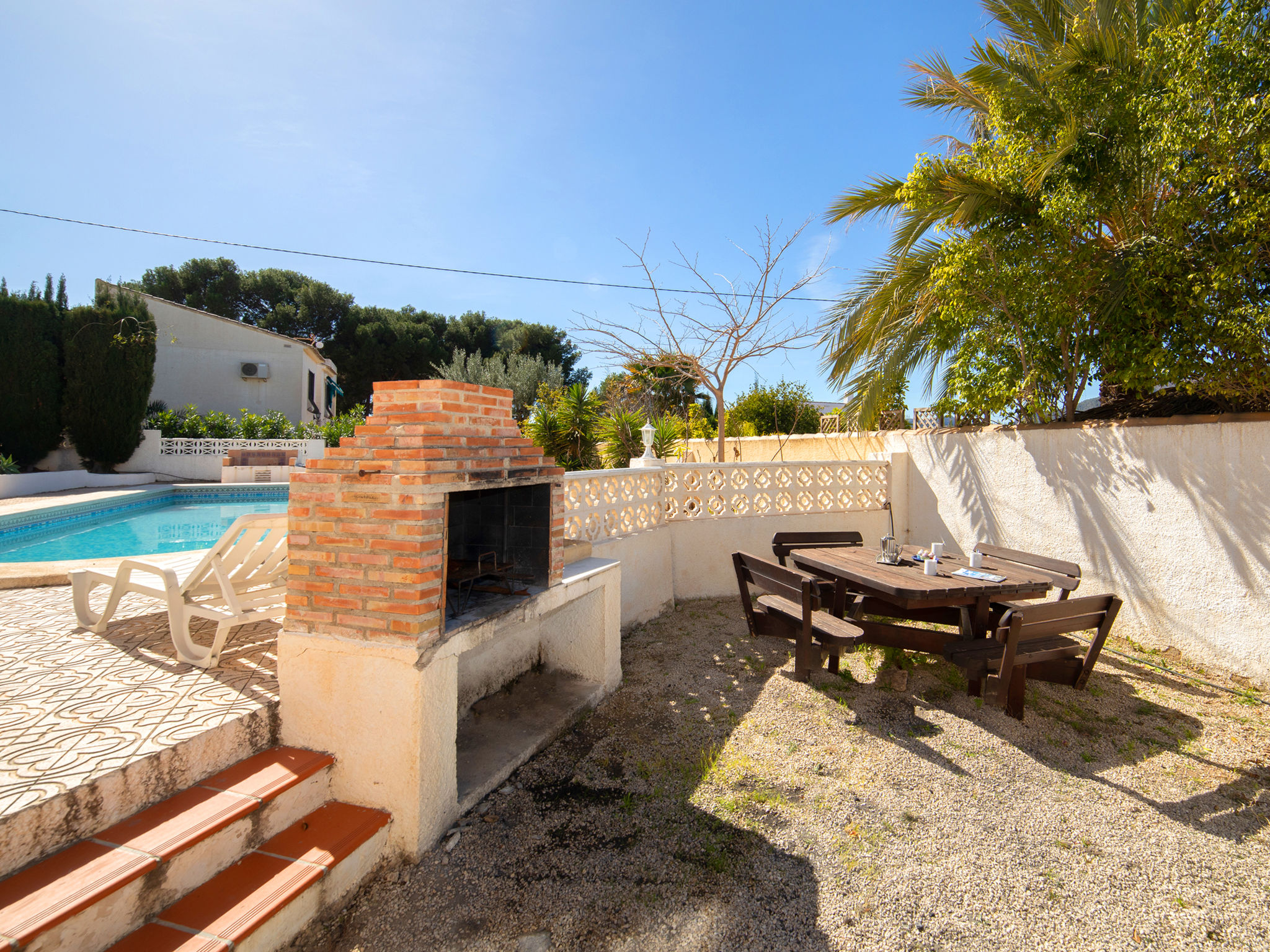 Die VILLA MARFILENIA steht im Ortsteil Los Pinos, auf einem ca. 1200 m² großen, teils gekiesten, teils gefliesten, mit Palmen, Bougainvilleen, Pinien und Sträuchern angelegten, geschlossenen Grundstück. Restaurant und Einkaufsmöglichkeit ca. 500 m. Strand 2 km. Ortsmitte Calpe 3 km. Parkmöglichkeit für 4 Pkw auf dem Grundstück. Pool (ca. 10 x 5 m, gesamte Saison geöffnet) mit Poolterrasse, gemauerten Bänken, 6 Liegestühlen, Sonnenschirm und Außendusche. 2 überdachte Terrassen mit Gartenmöbeln. Gemauerter Grill. Zweckmäßige, rustikale, ländliche Einrichtung im kastilischen Stil. Fliesenböden. Sat-TV. Internetzugang (WLAN, inklusive). Waschmaschine. Elektroradiator oder Gasofen (Bestellung). Hinweis: Rauchen ist im Haus nicht gestattet.