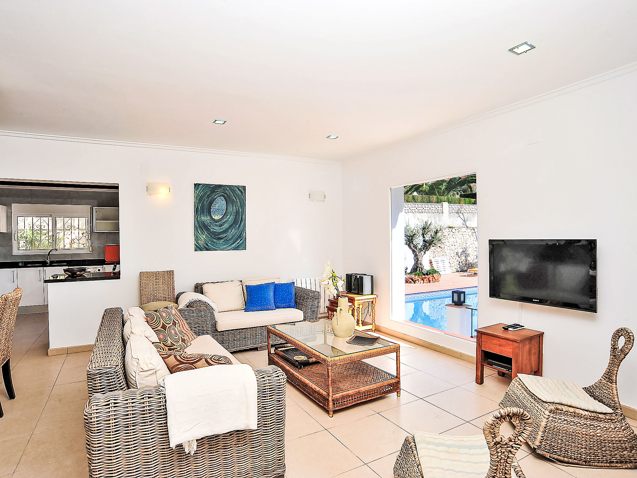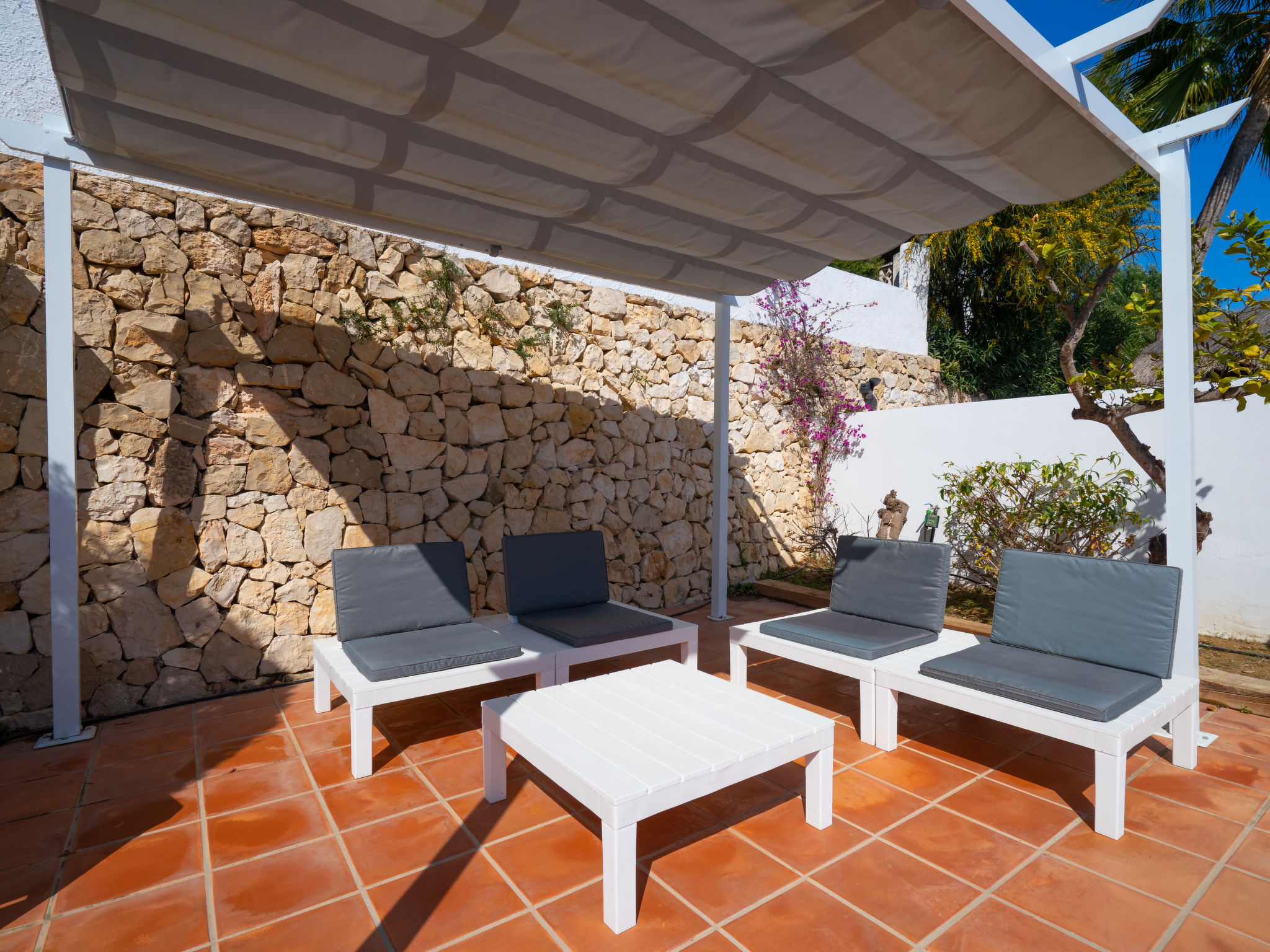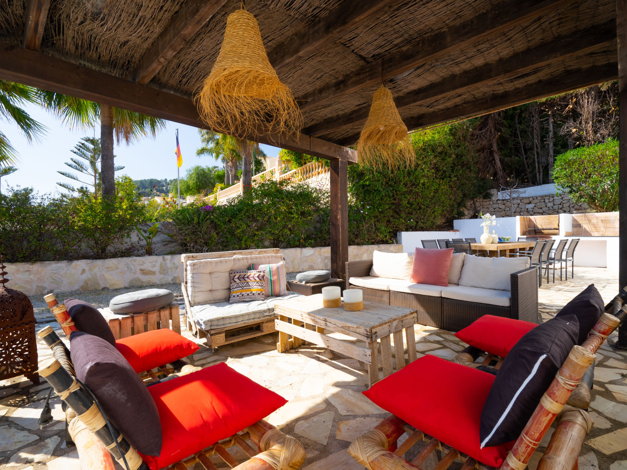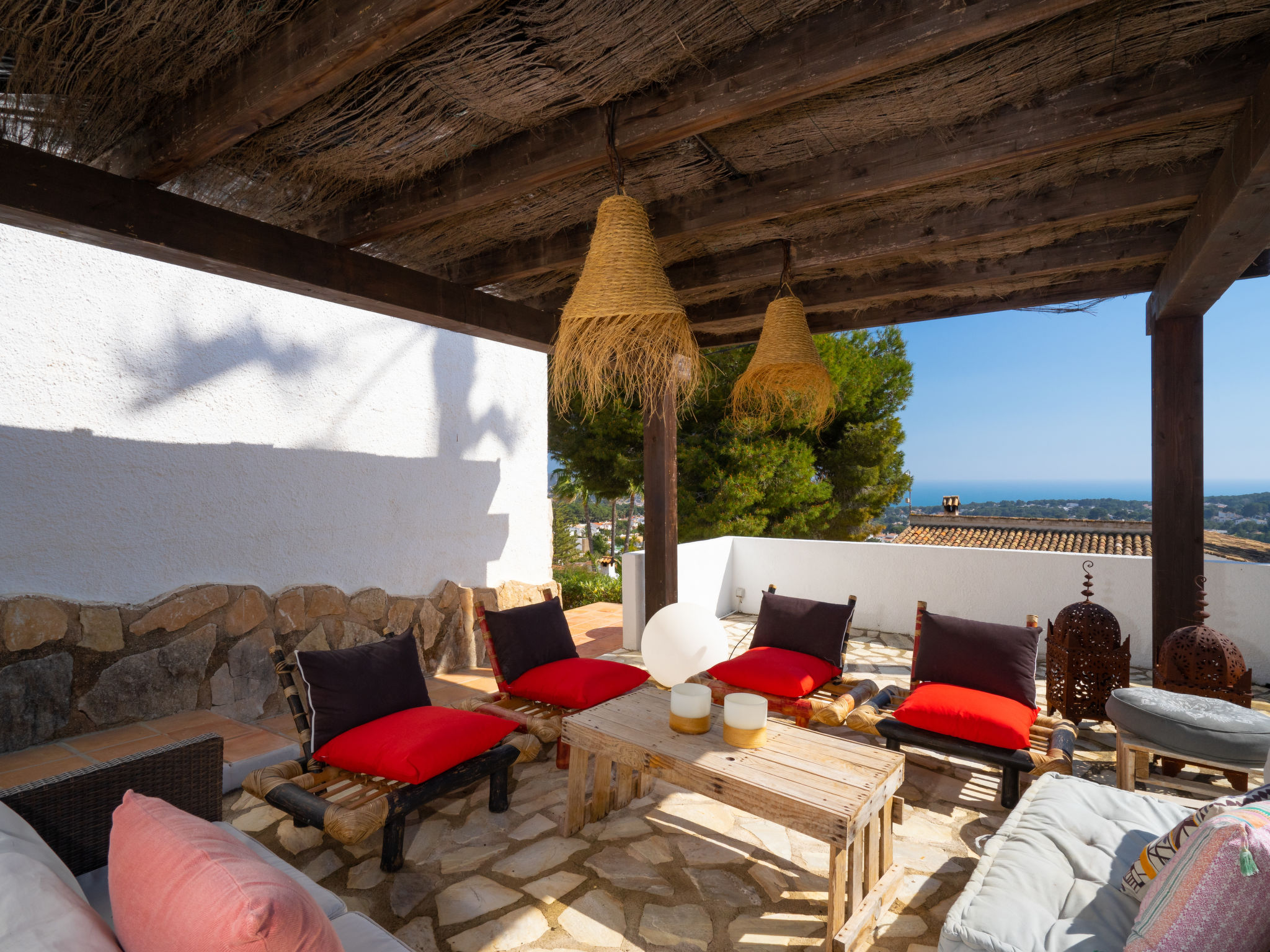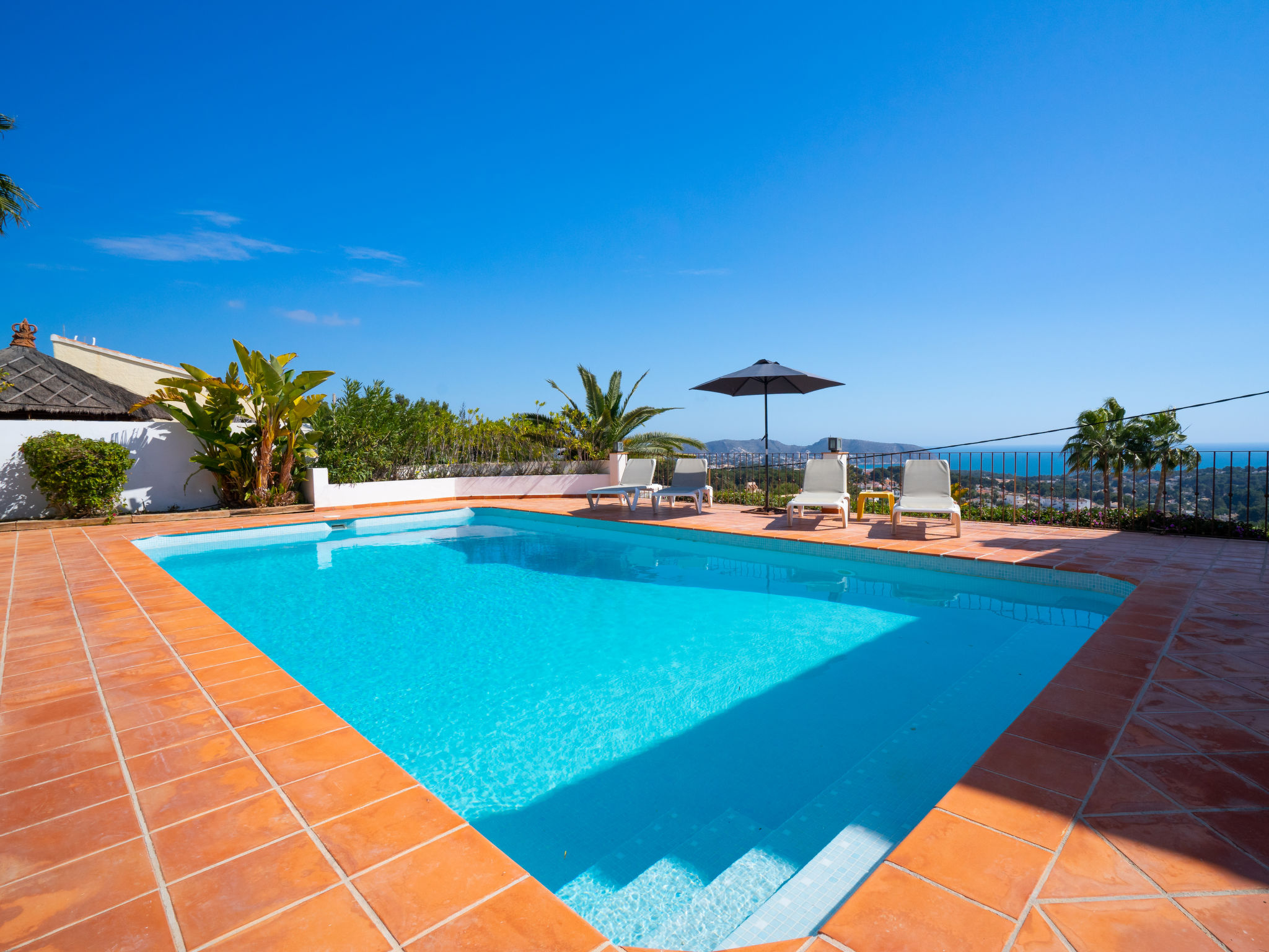 Sehr schönes, komfortables Haus "El Olivo", renoviert im Jahre 2012. Im Ortsteil Benimeit, 3 km vom Zentrum von Moraira, ruhige, sonnige, erhöhte Lage am Hang, 3 km vom Meer, 3 km vom Strand, in einer Sackgasse. Zur Alleinbenutzung: Grundstück 1'000 m2, Schwimmbad eckig (5 x 10 m, 01.01.-31.12.) mit Innentreppe. Aussendusche, Boccia, Grill. Im Hause: Zentralheizung, Klimaanlage. Parkplatz (überdacht) auf dem Grundstück. Einkaufsgeschäft 3 km, Lebensmittelgeschäft 1.6 km, Supermarkt 1.6 km, Restaurant 1.5 km, Sandstrand "L'Ampolla" 3 km. Golfplatz 2.5 km, Tennis 4 km.